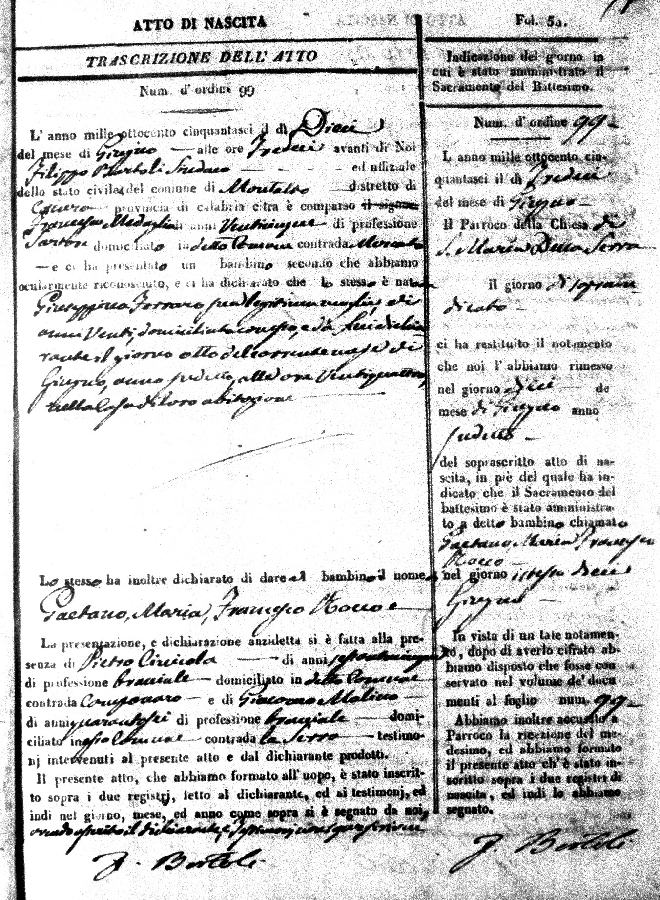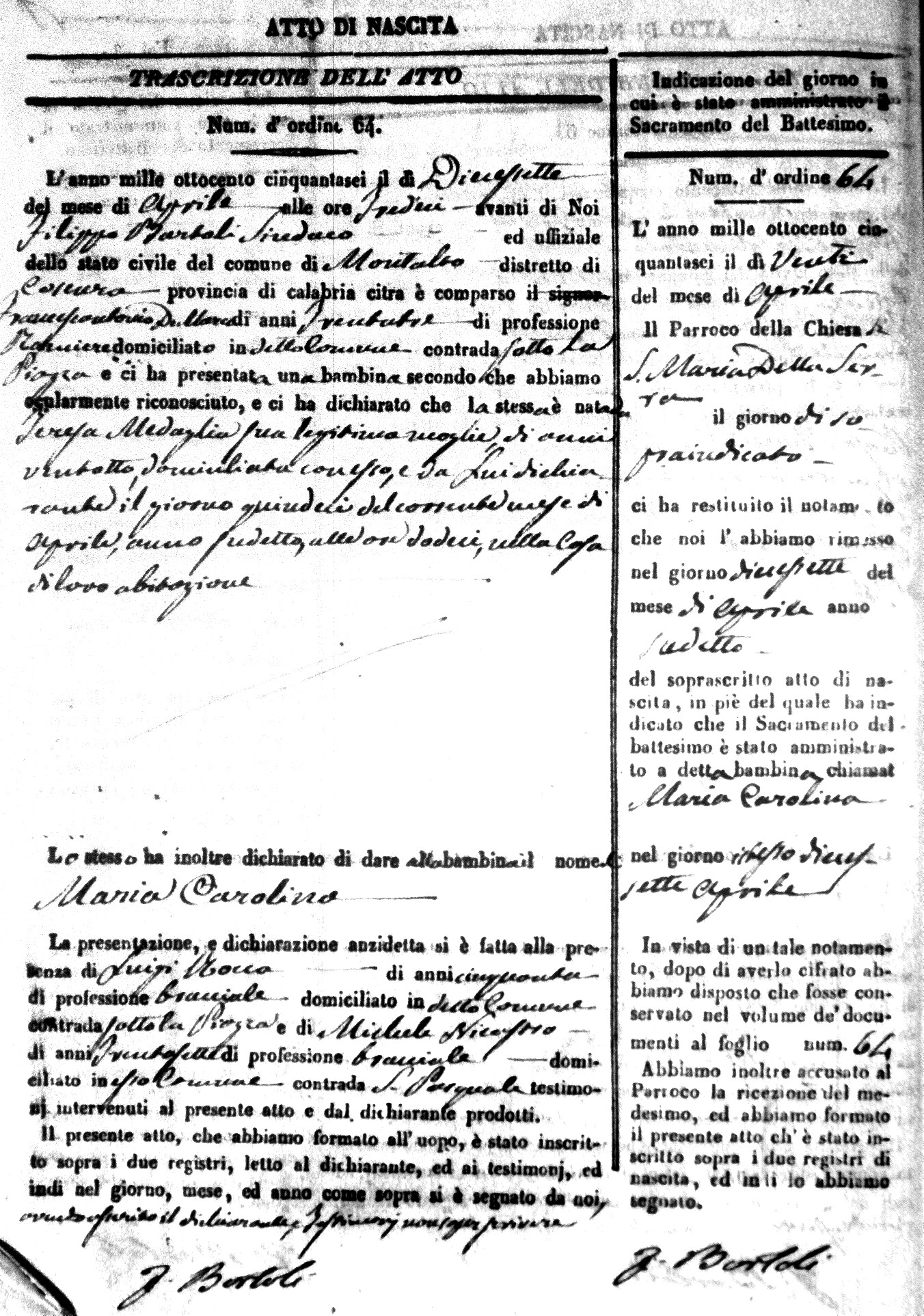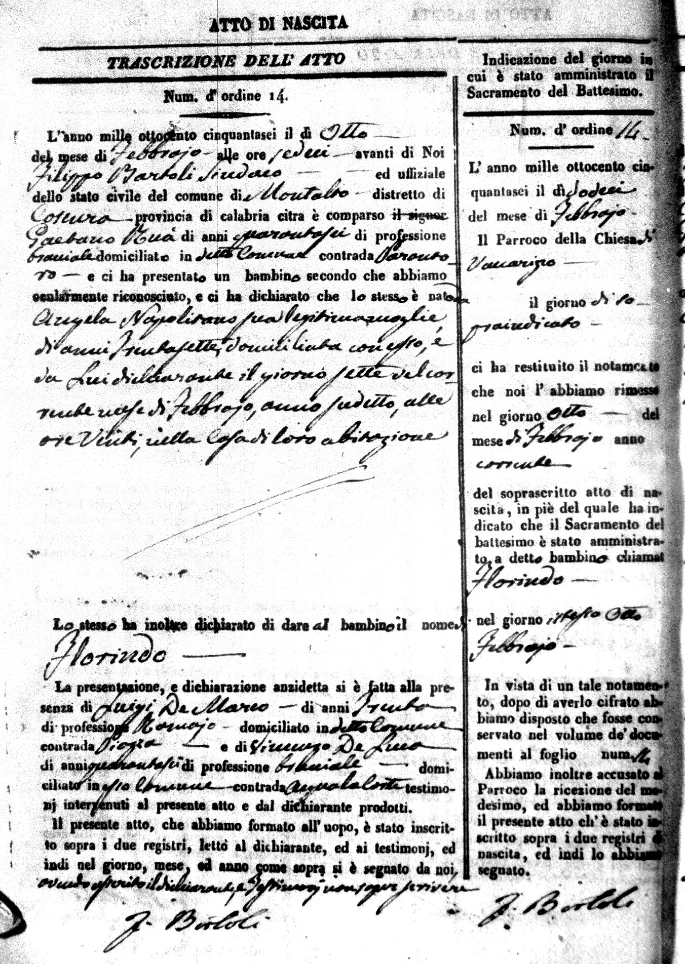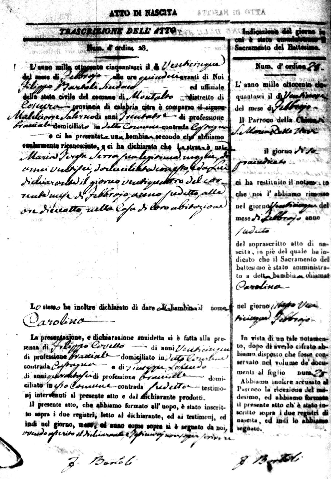 | Coscarella | Francesco Napoleone | Bartolo | ?? | Fullone | Carolina | 20 |