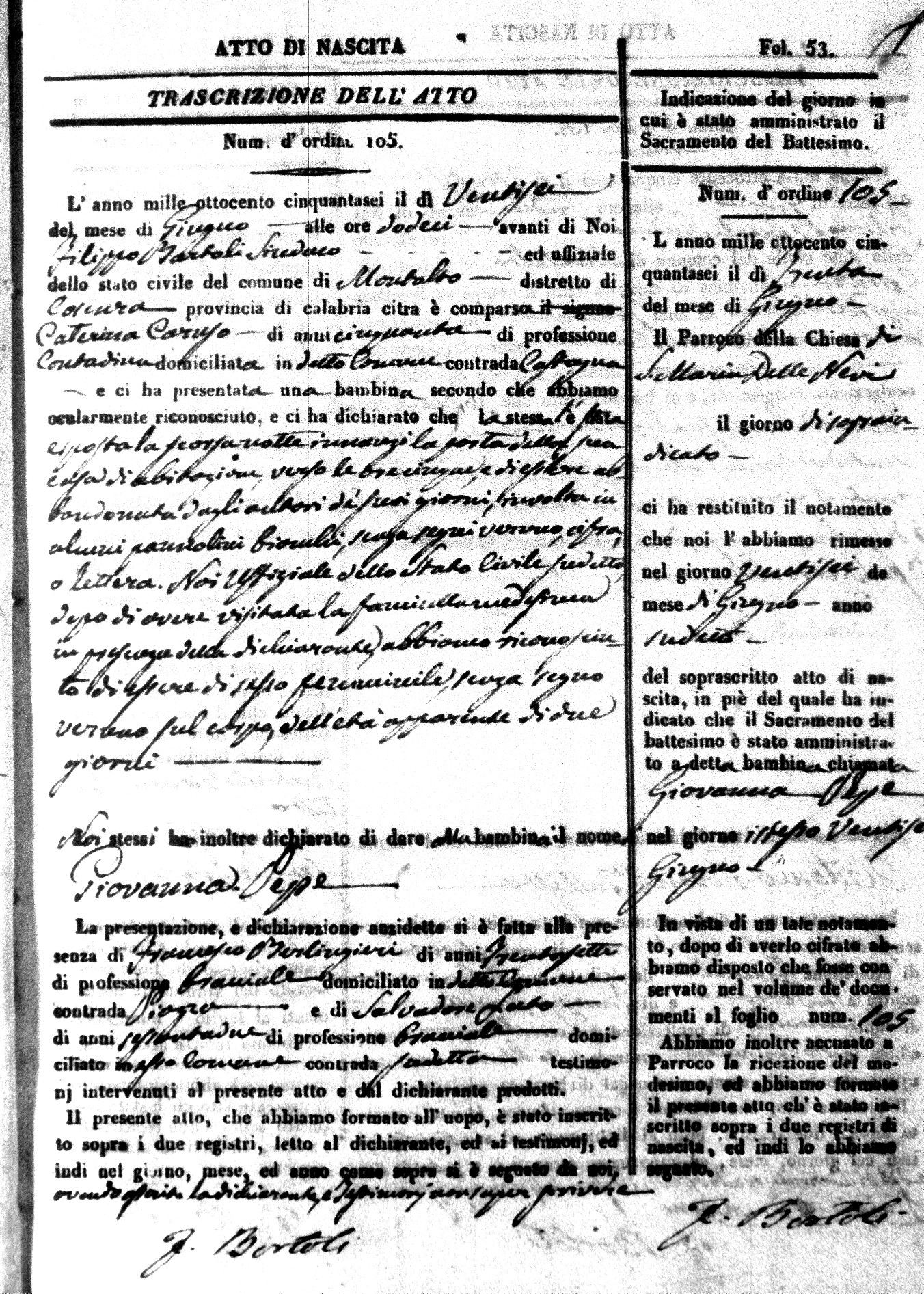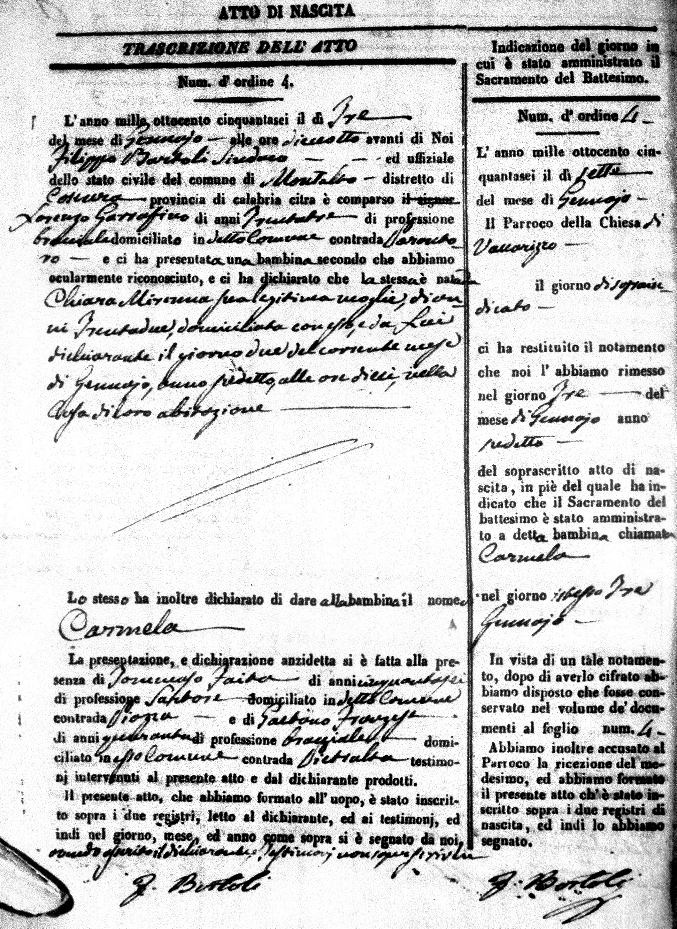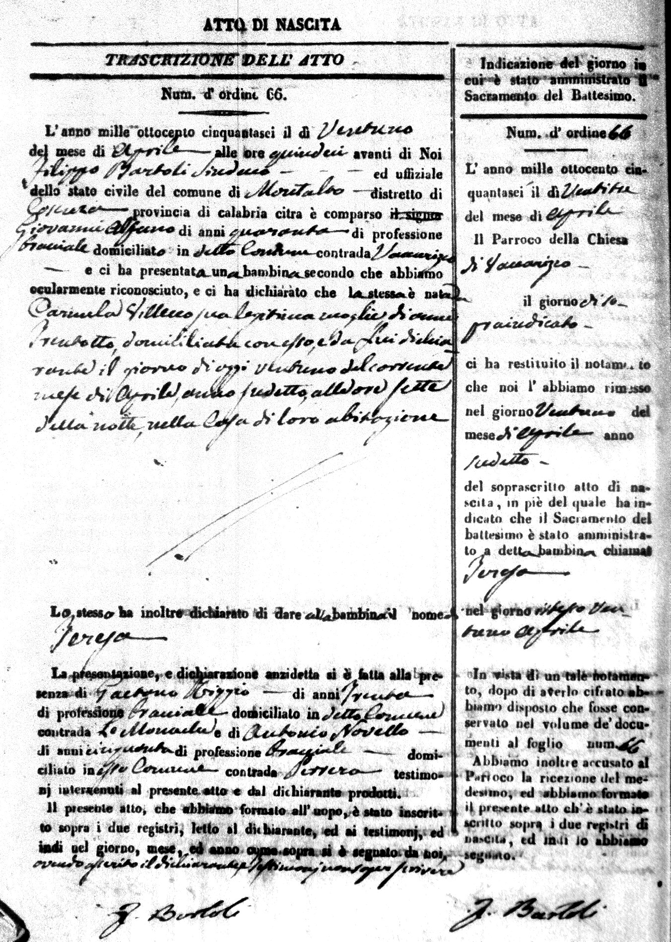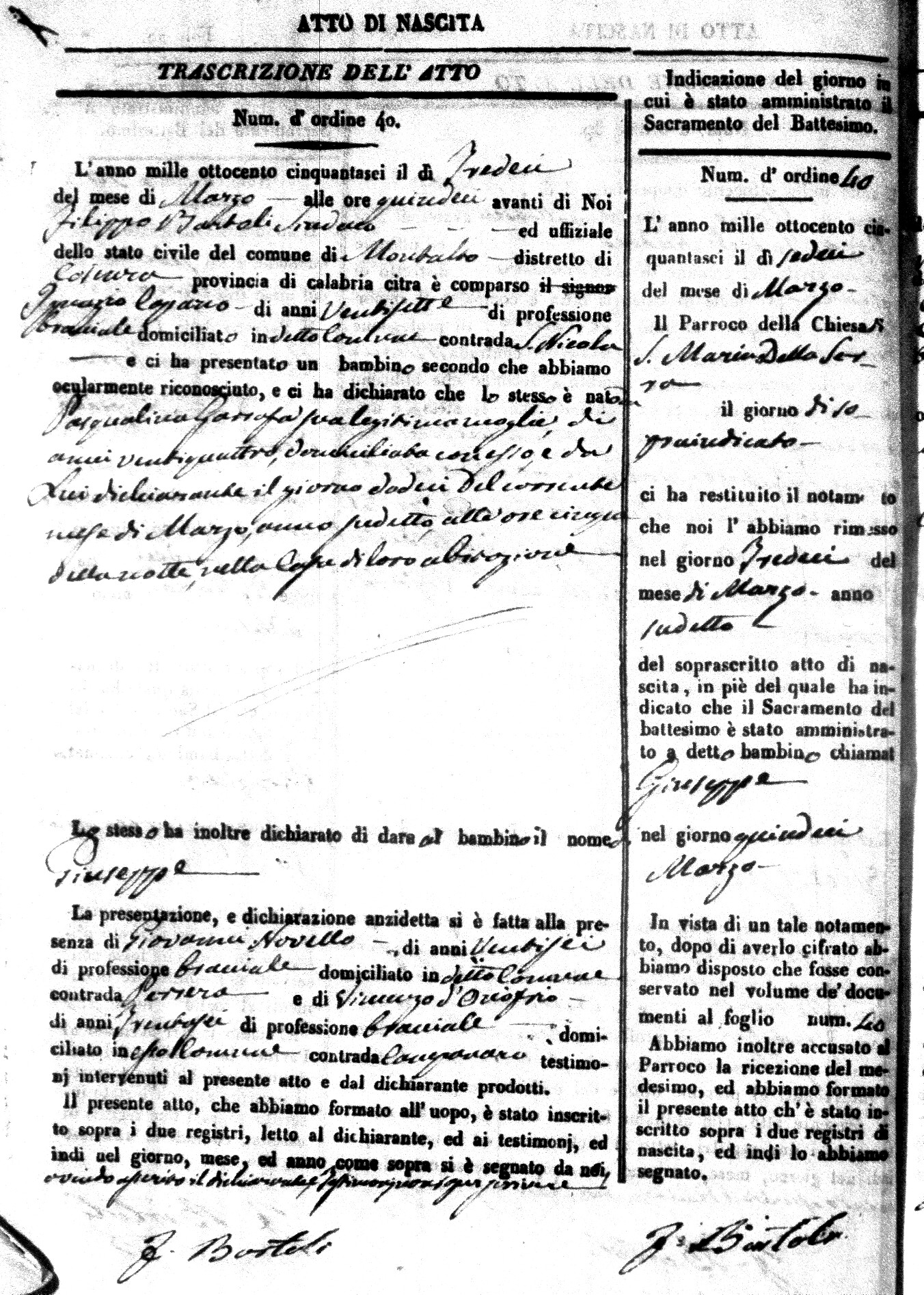 | Coscarella | Francesco Napoleone | Bartolo | ?? | Fullone | Carolina | 20 |