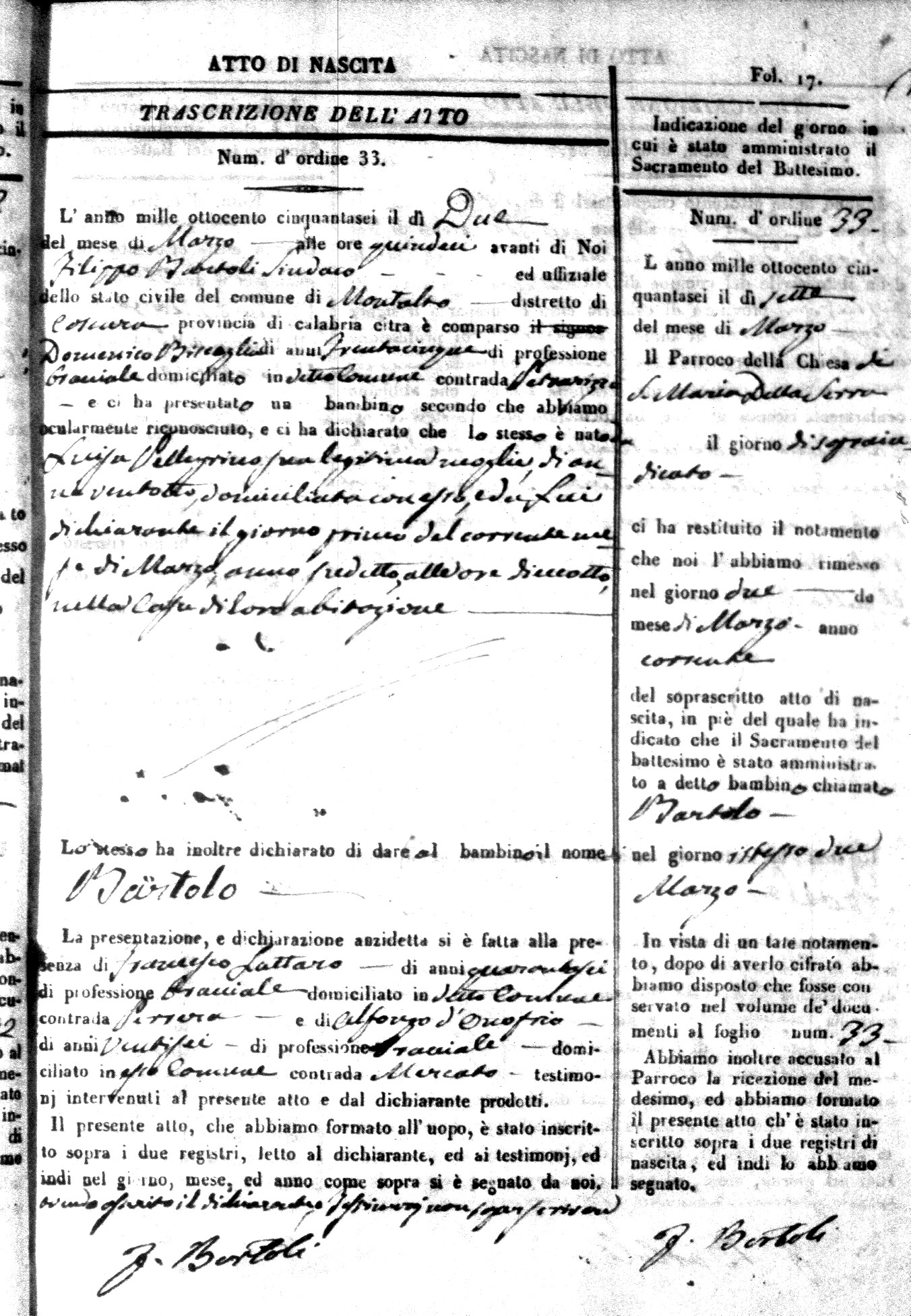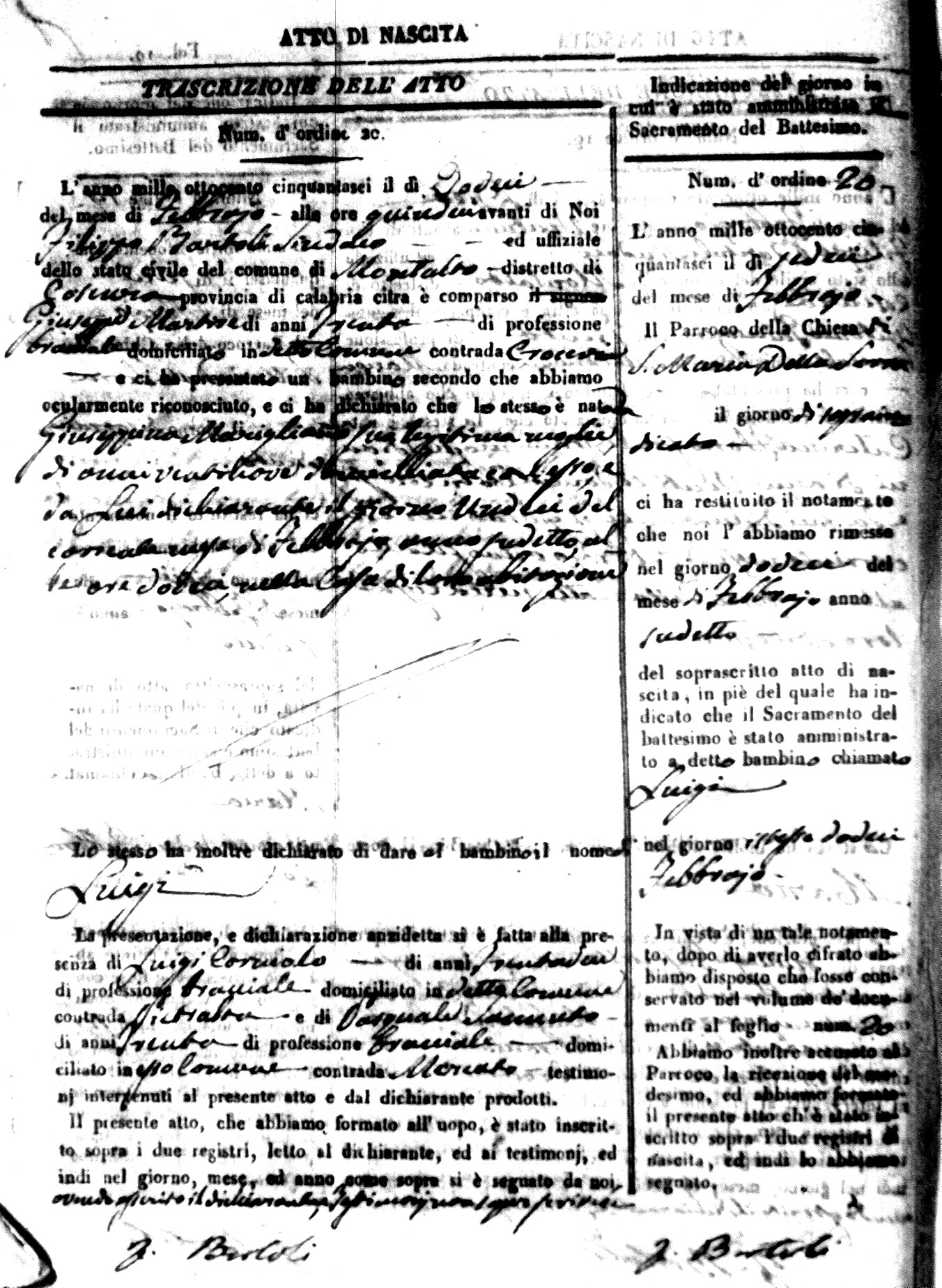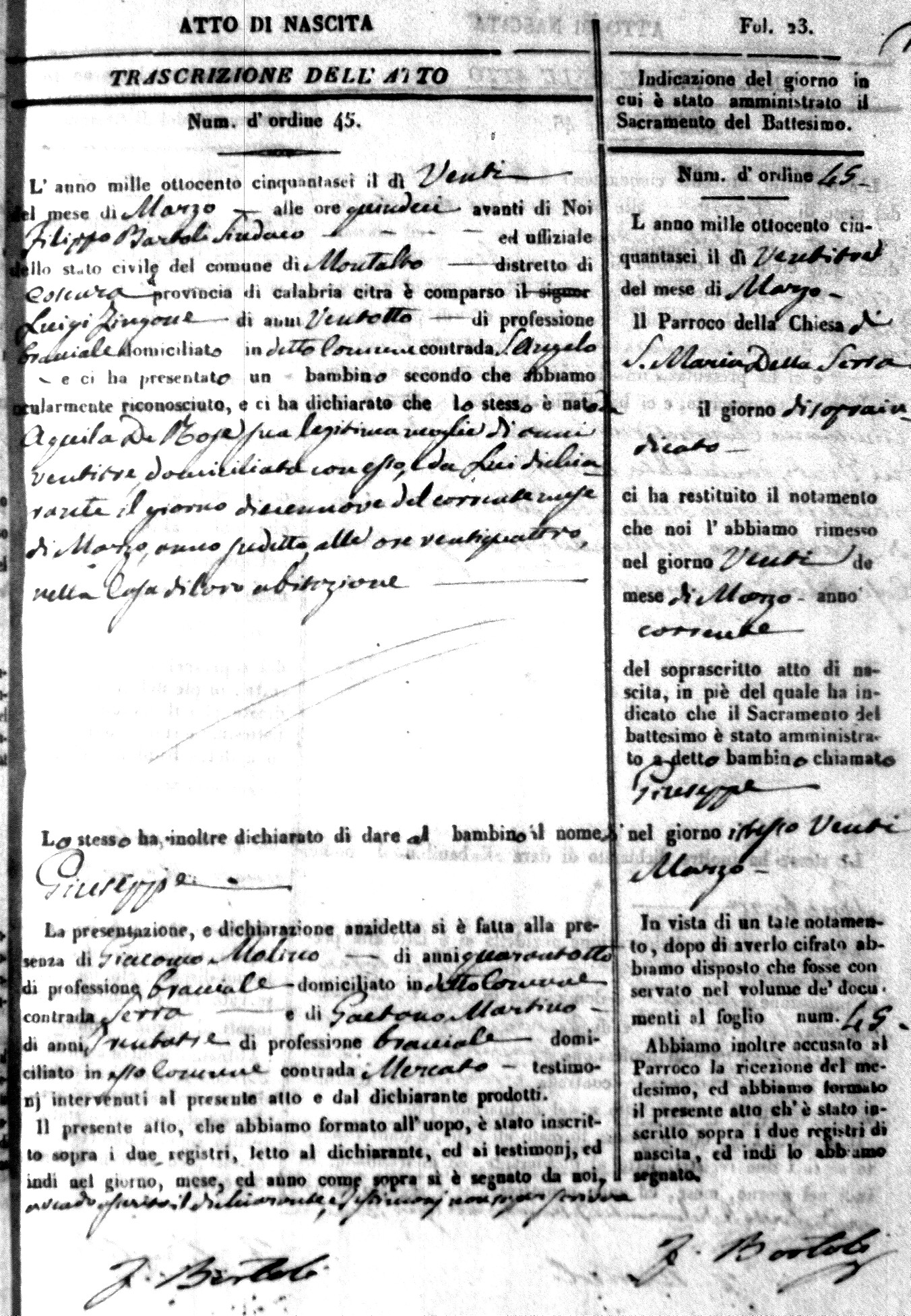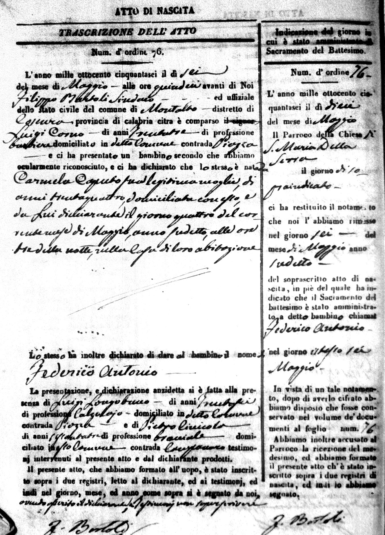 | Coscarella | Francesco Napoleone | Bartolo | ?? | Fullone | Carolina | 20 |