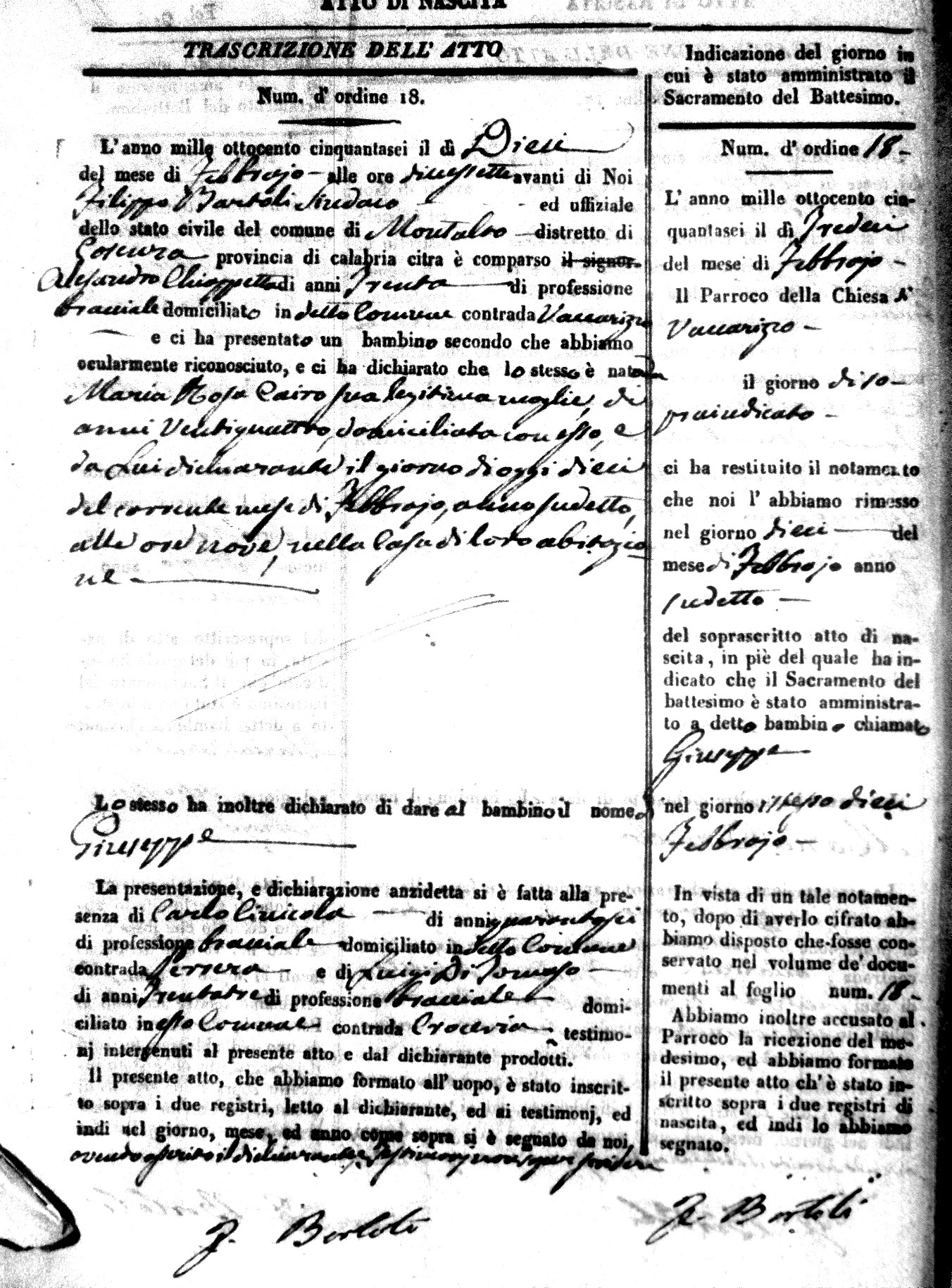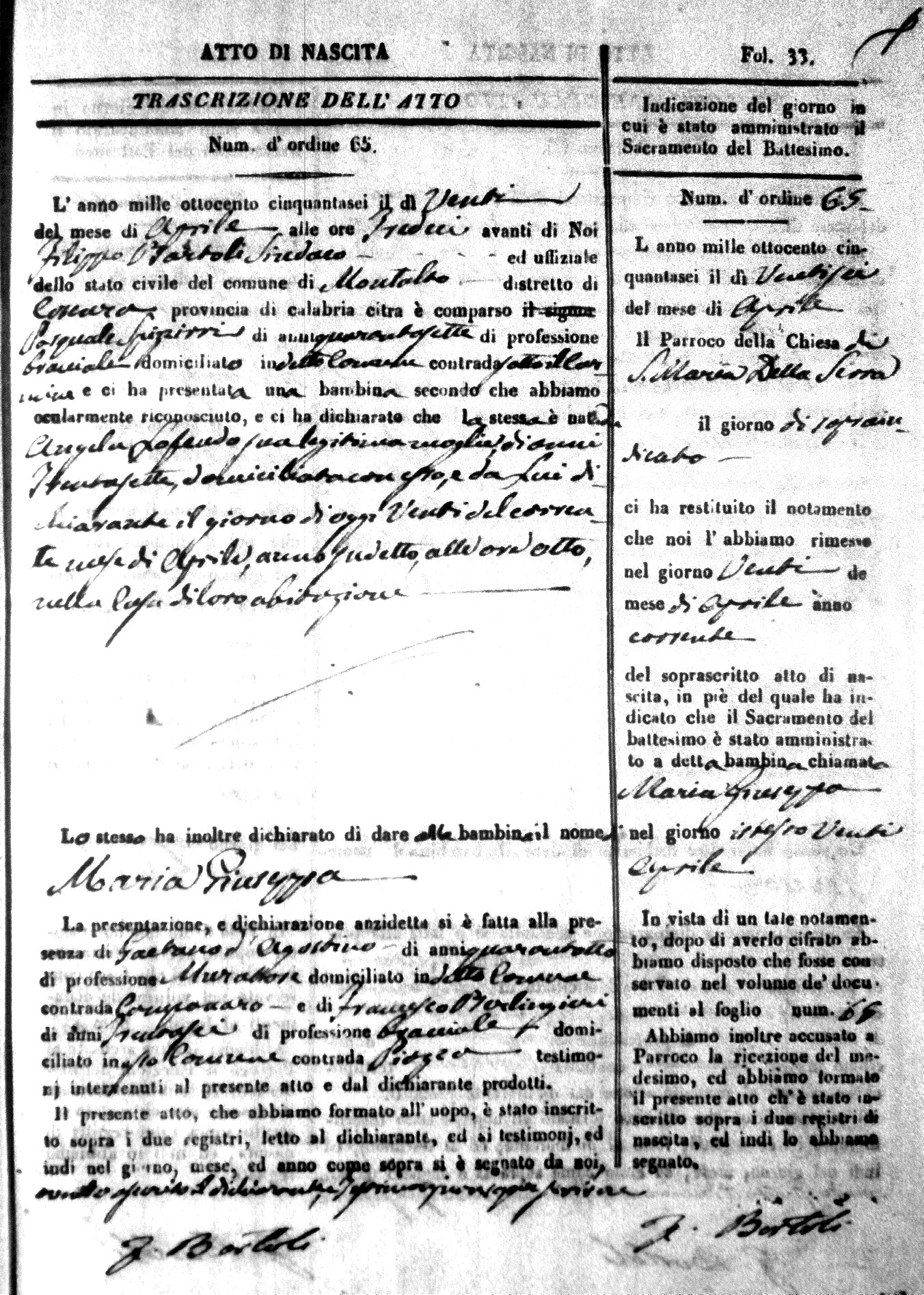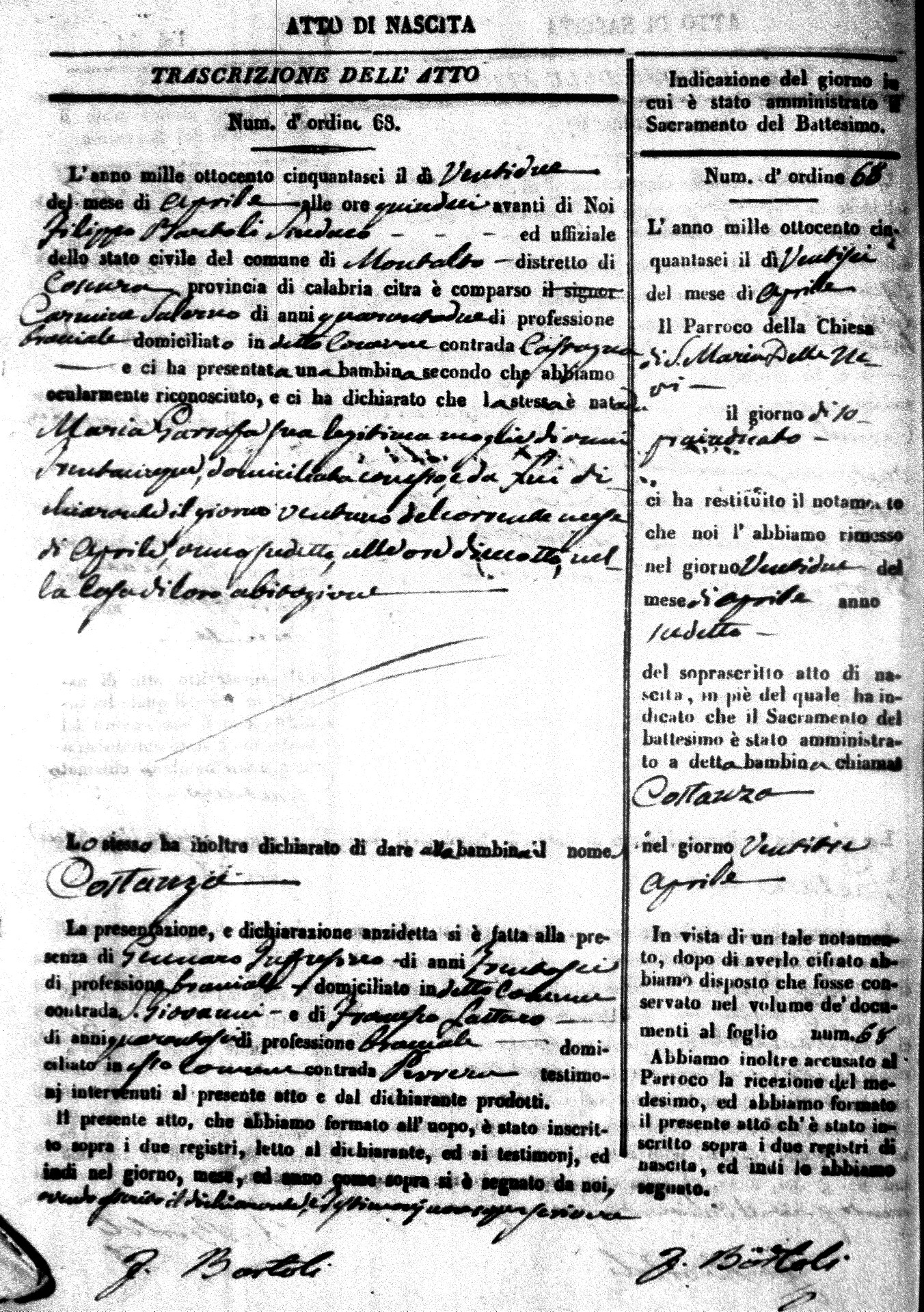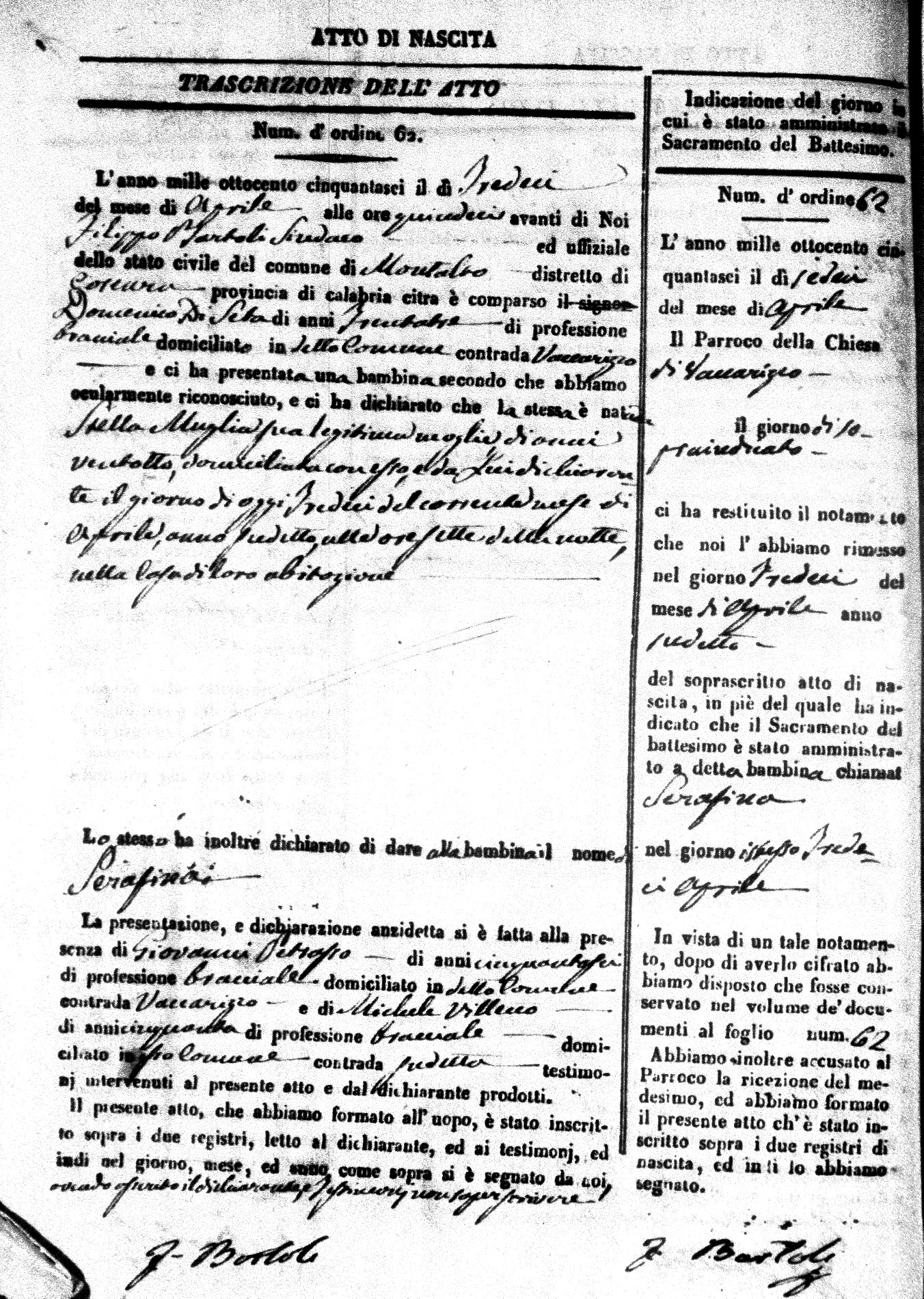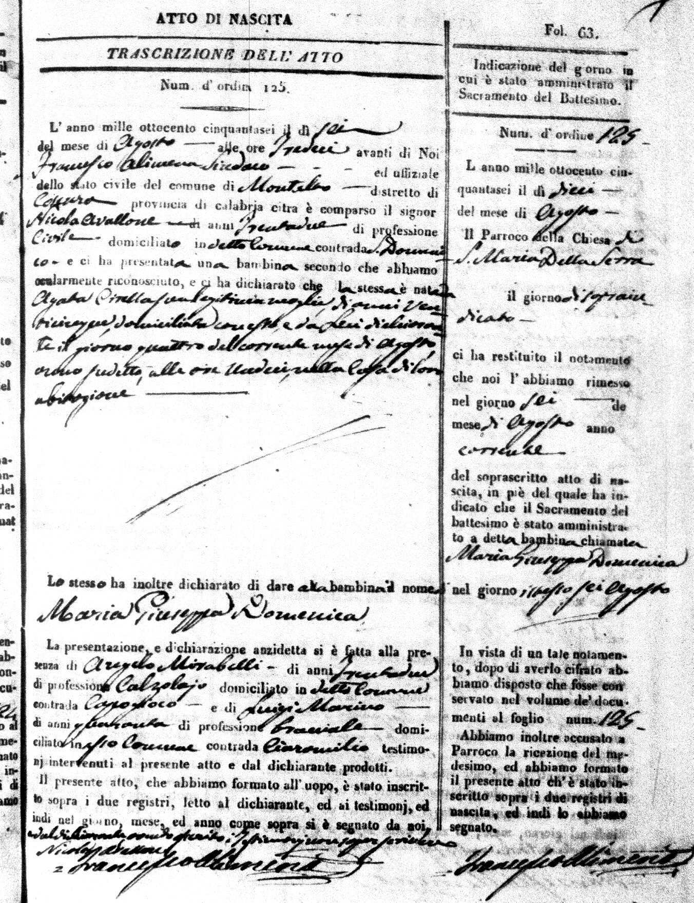 | Avallone | Maria Giuseppa Domenica | Nicolo | 32 | Cirella | Agota | 25 |