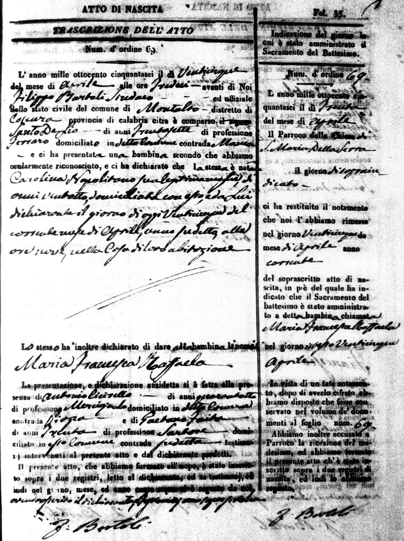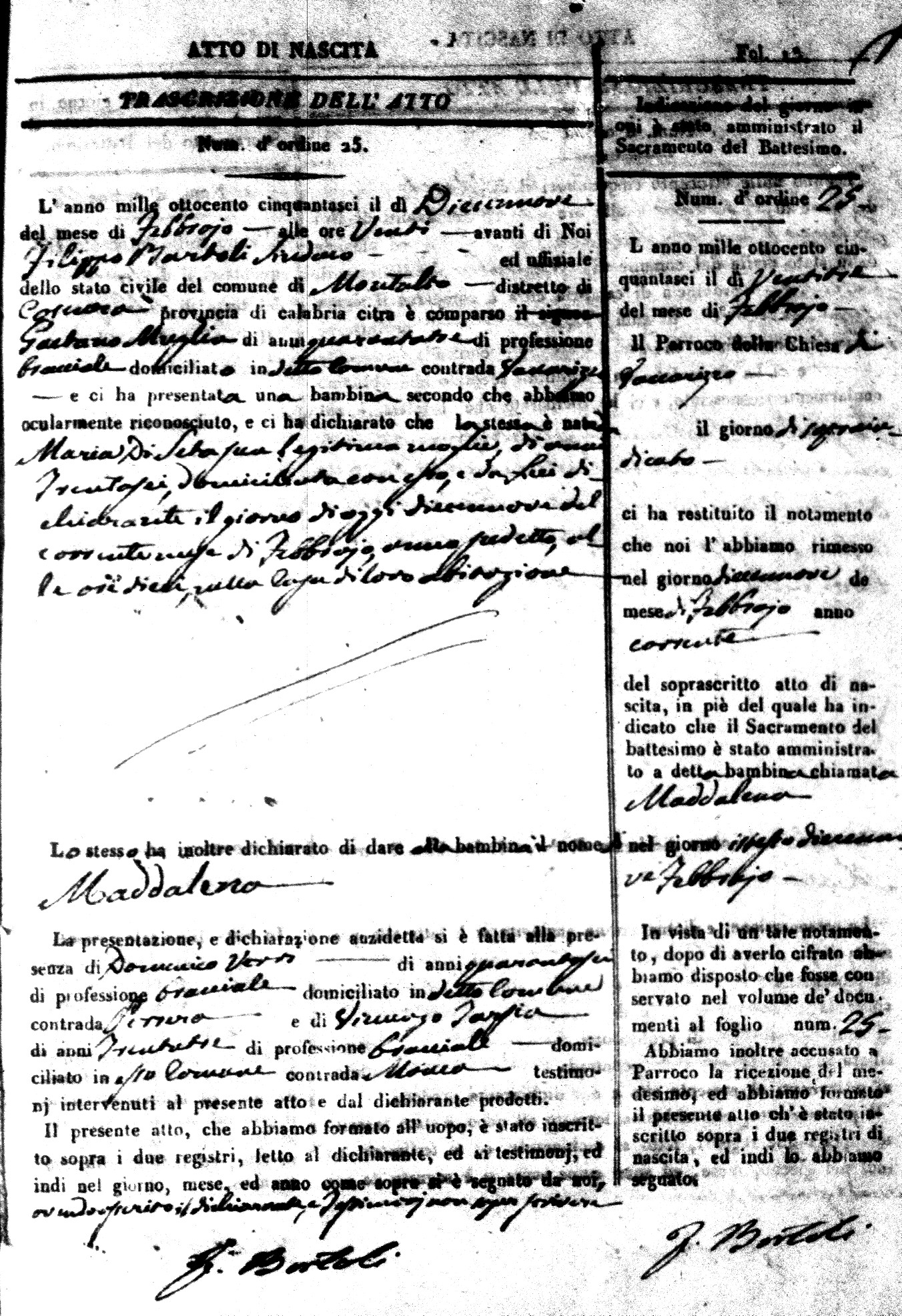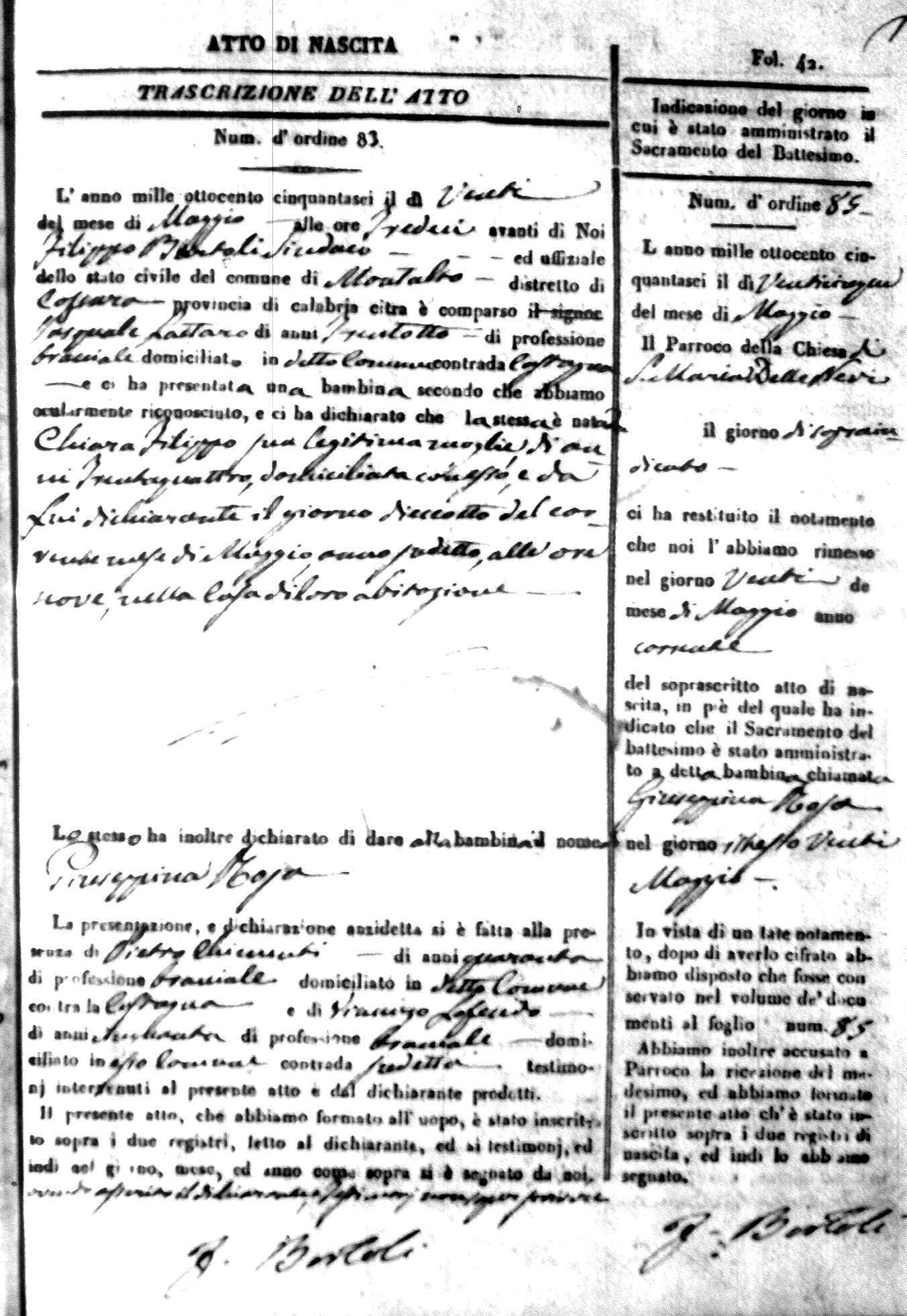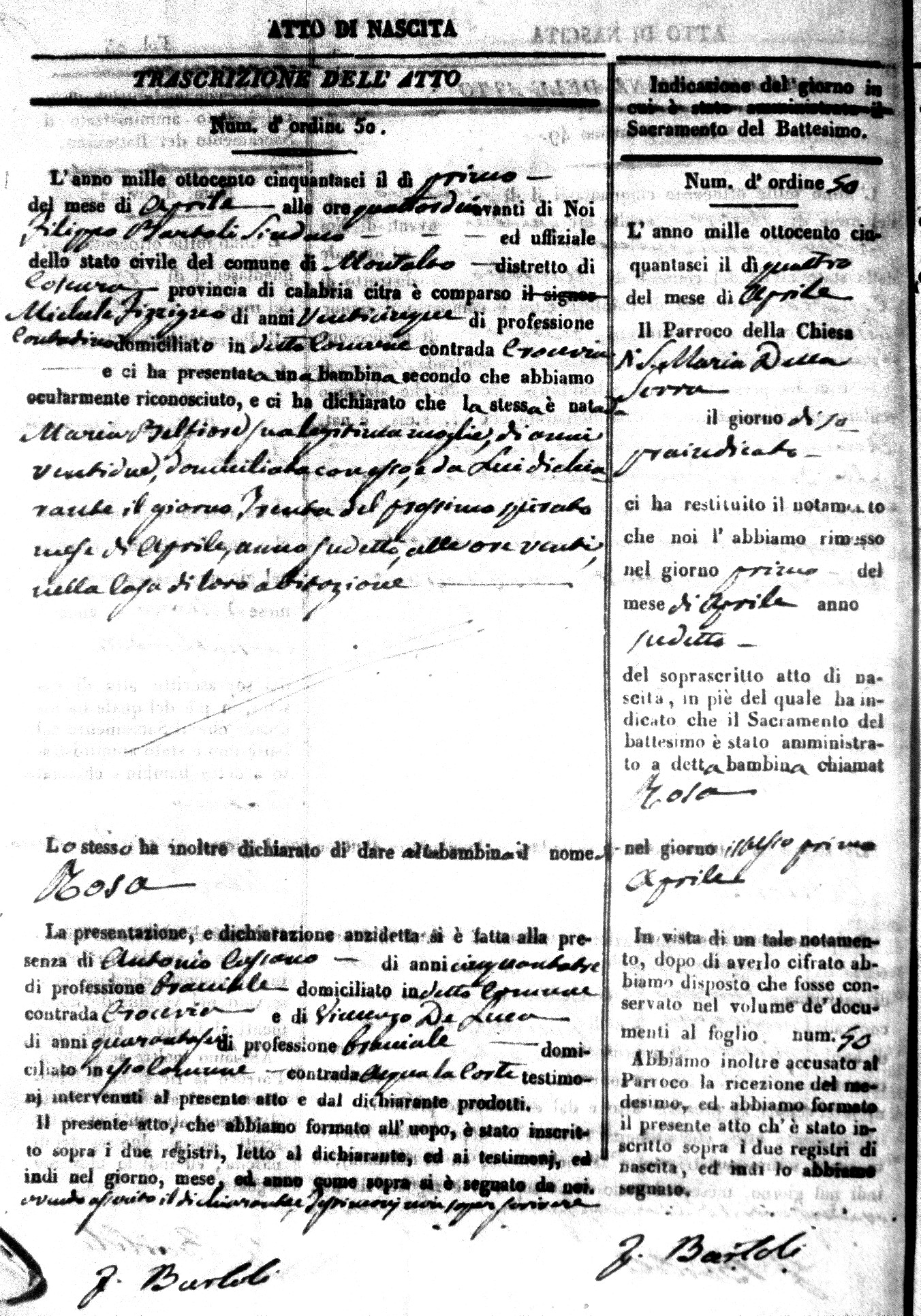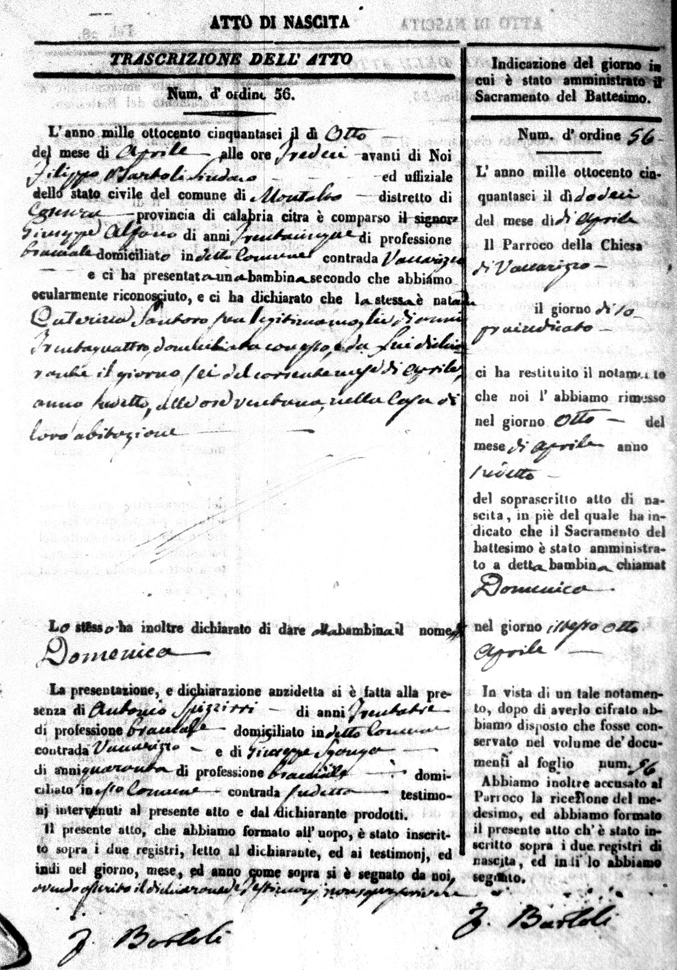 | Avallone | Maria Giuseppa Domenica | Nicolo | 32 | Cirella | Agota | 25 |
