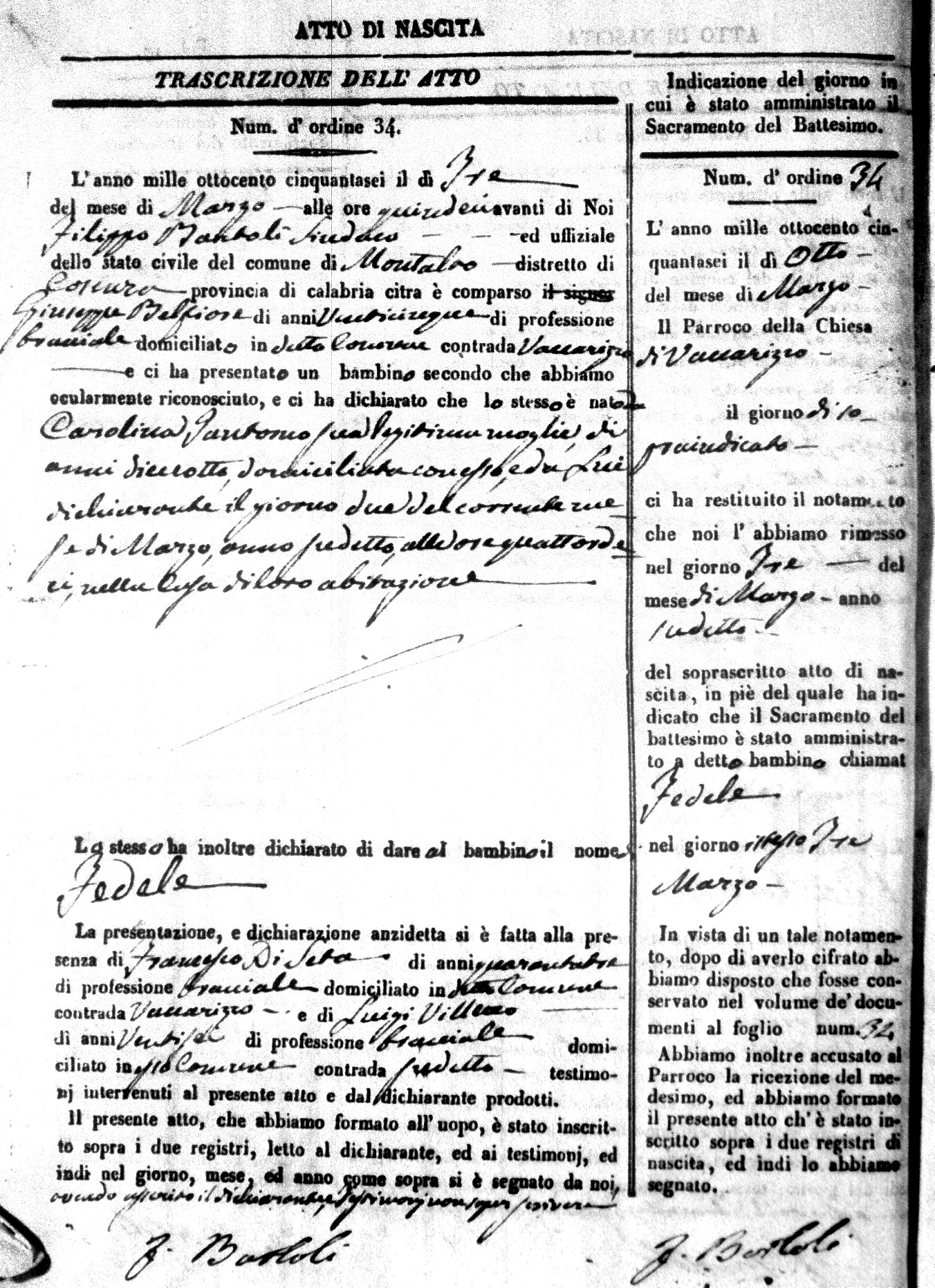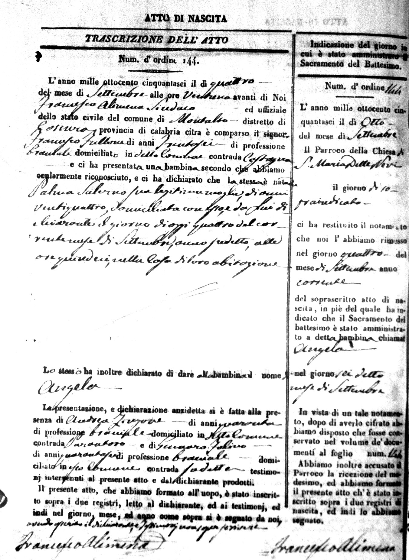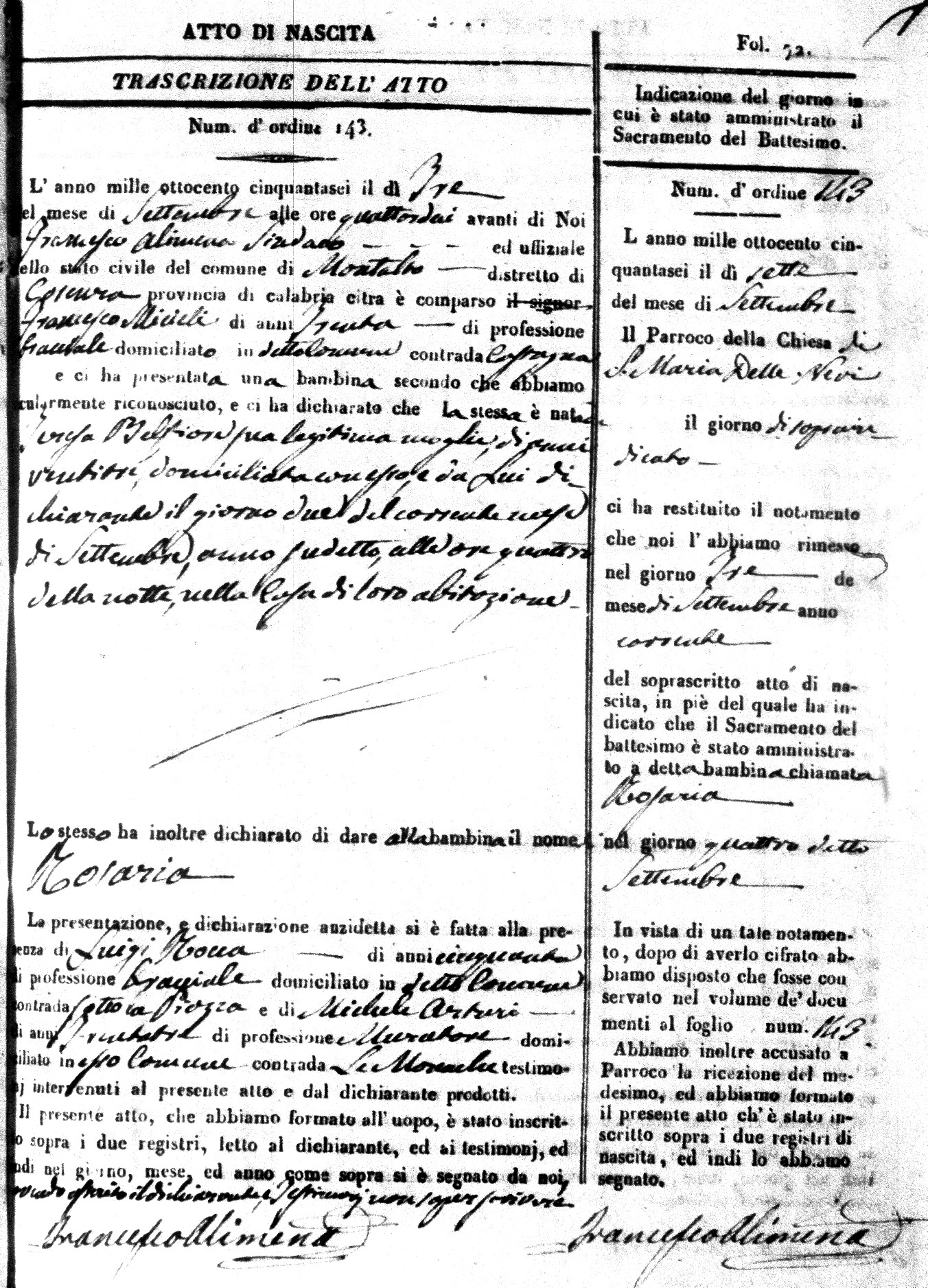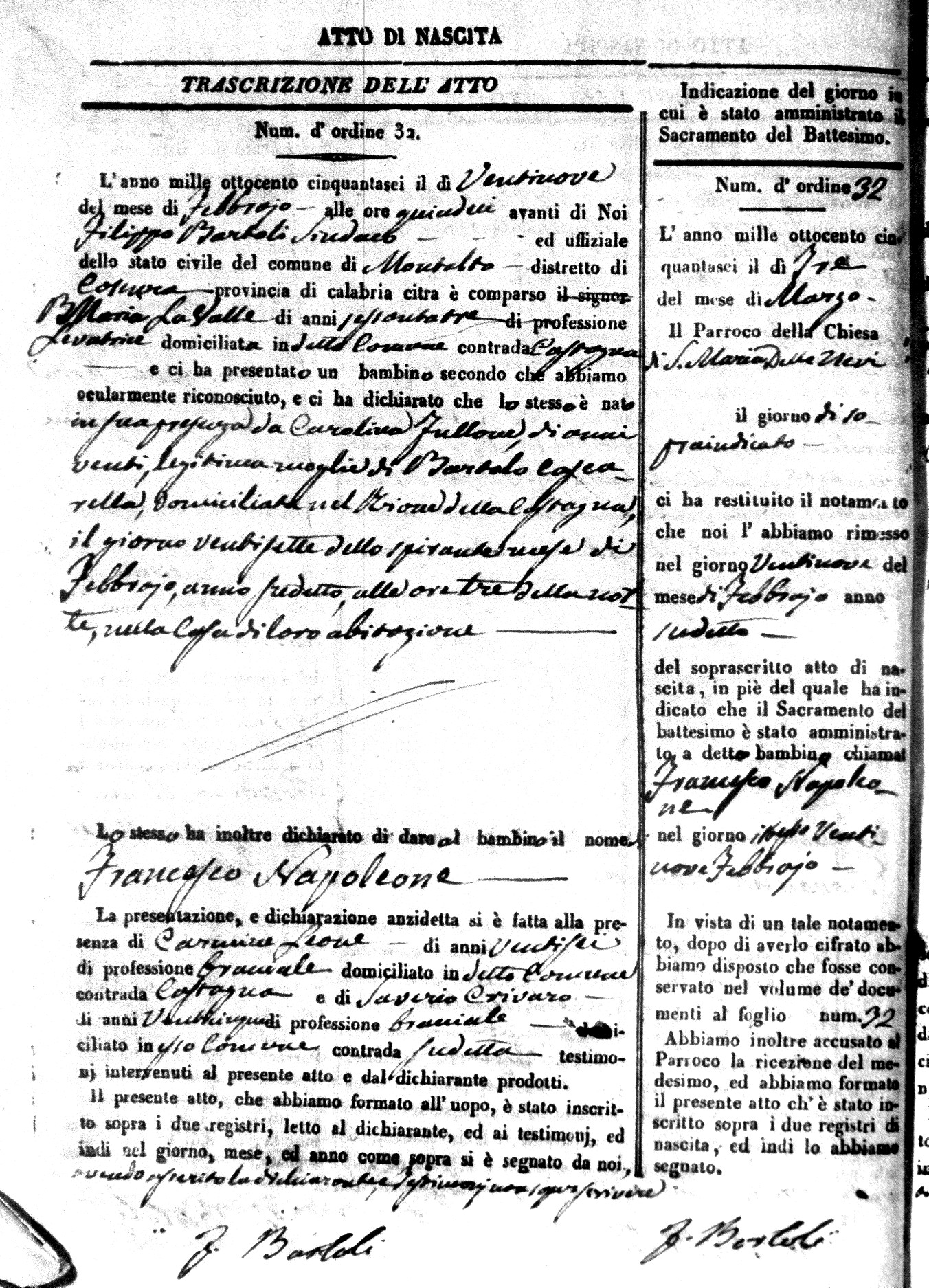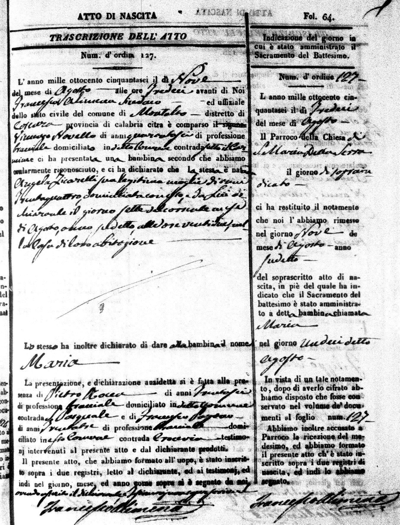| Avallone | Maria Giuseppa Domenica | Nicolo | 32 | Cirella | Agota | 25 |