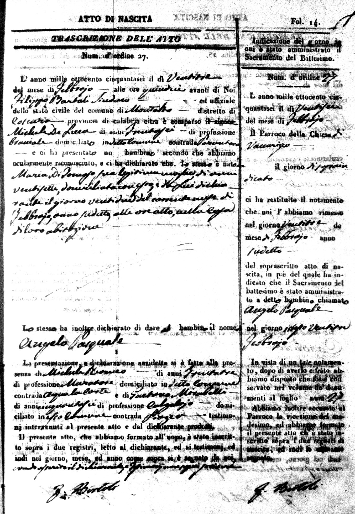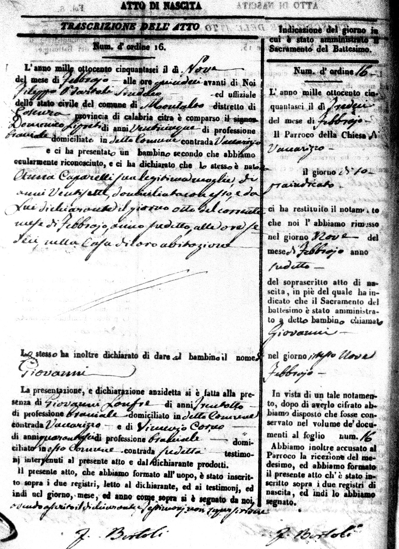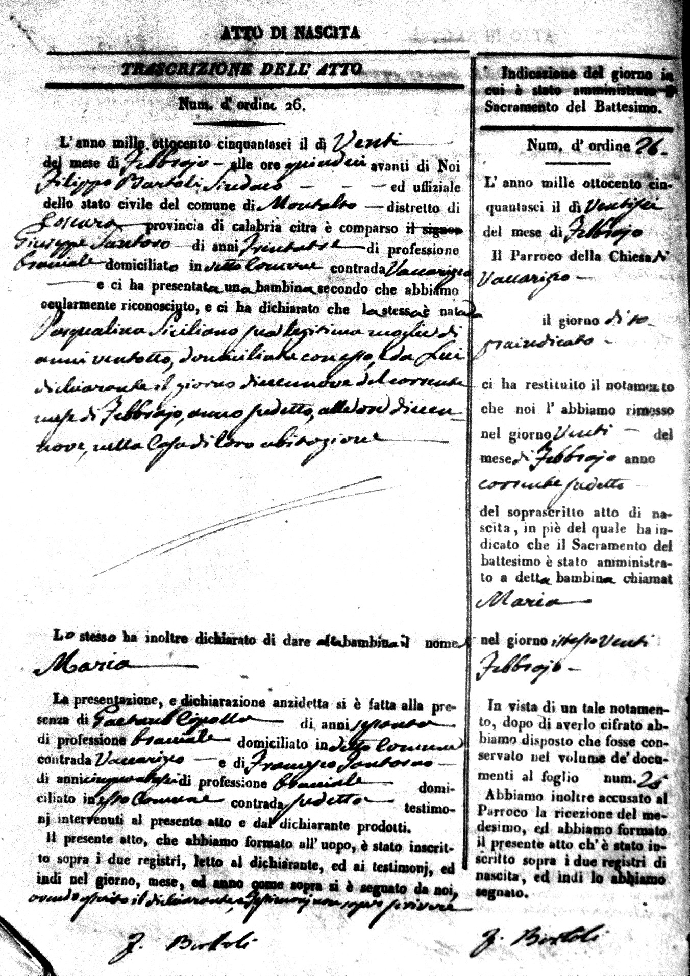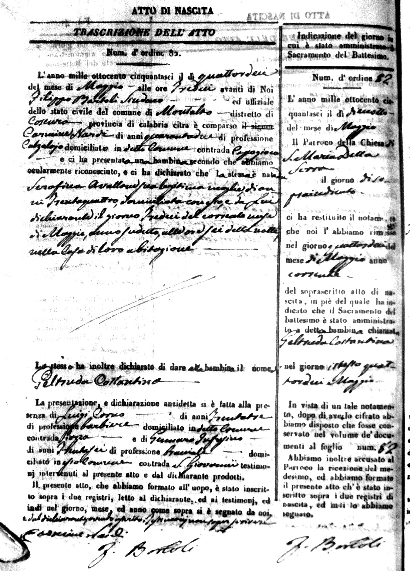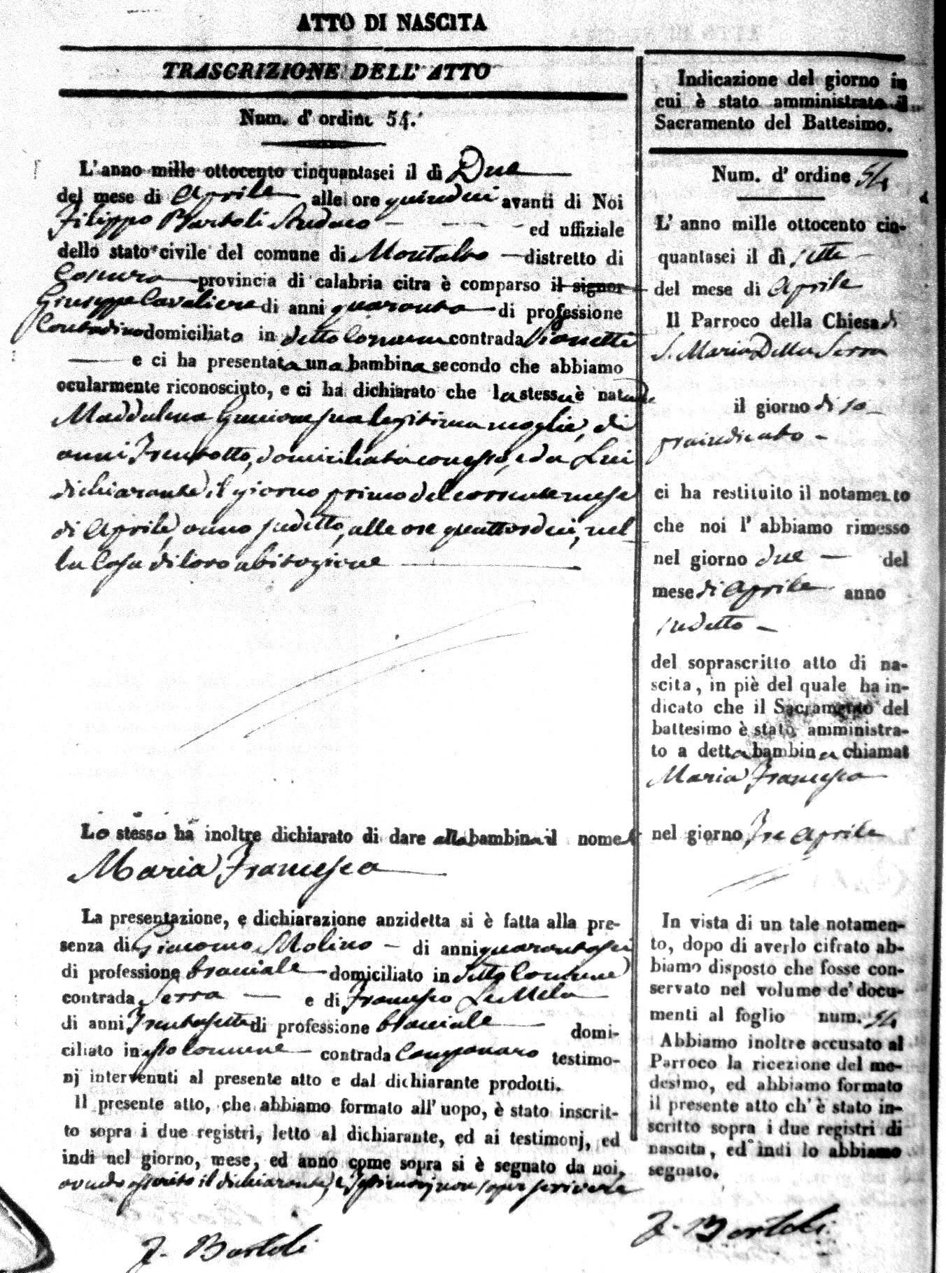 | Avallone | Maria Giuseppa Domenica | Nicolo | 32 | Cirella | Agota | 25 |