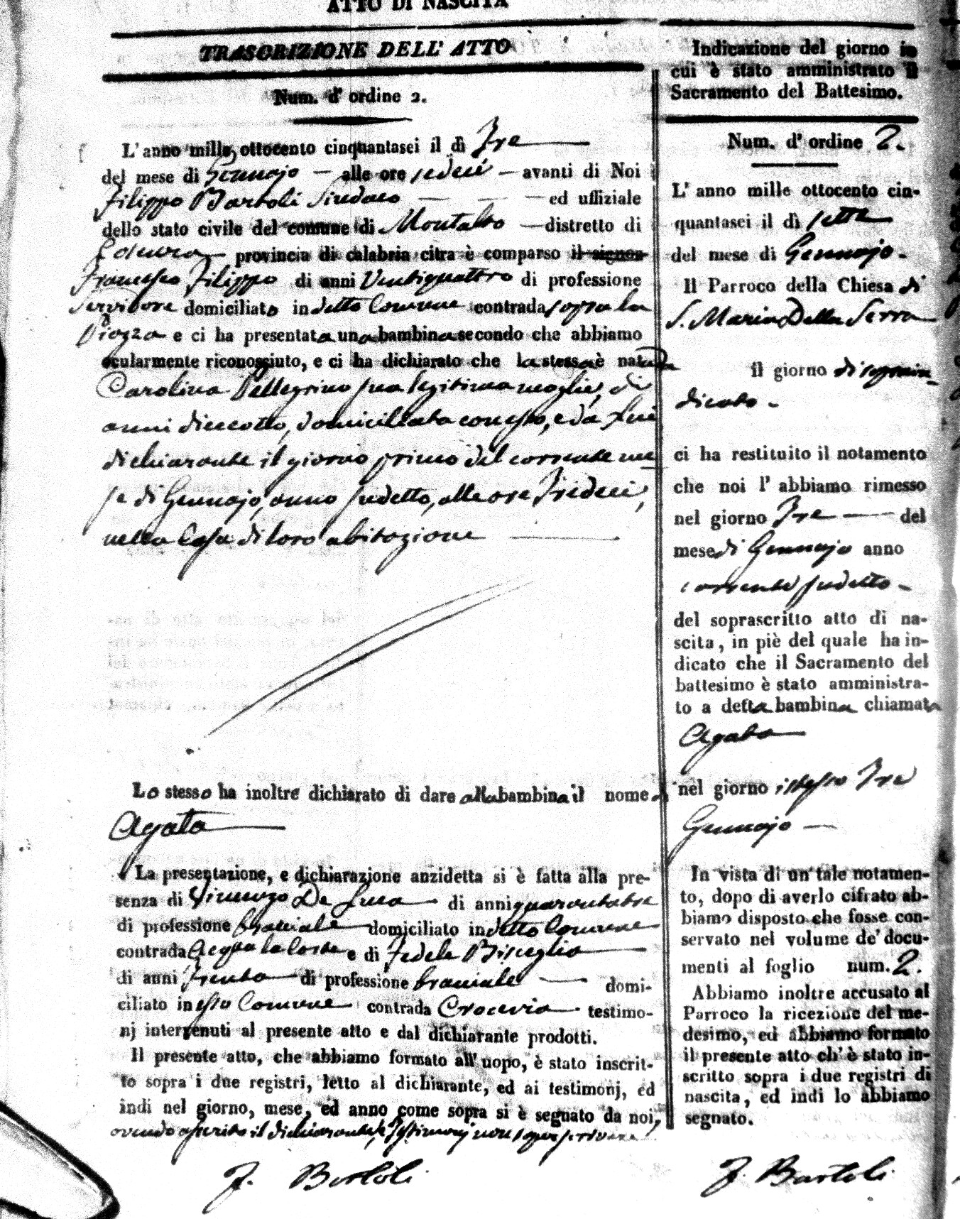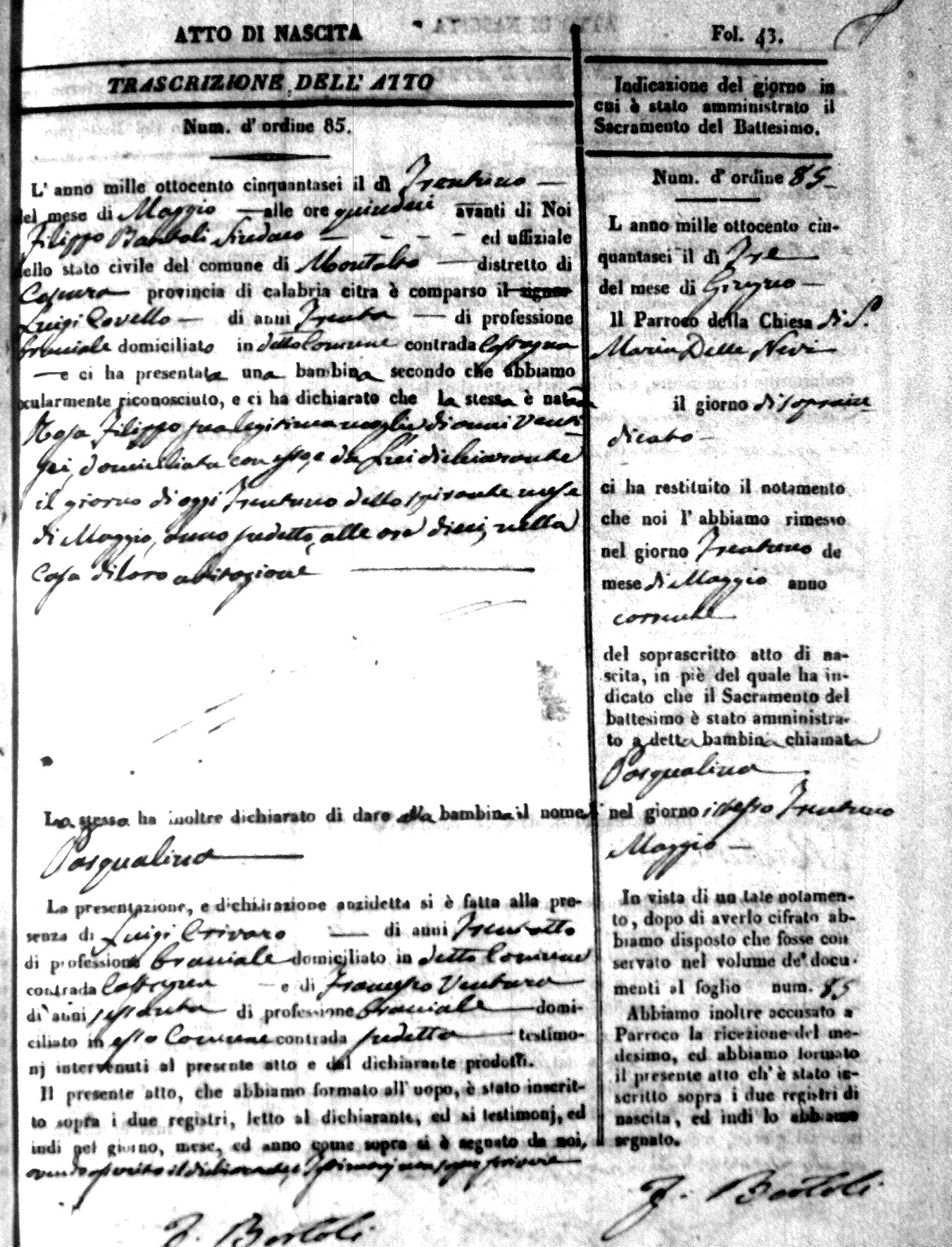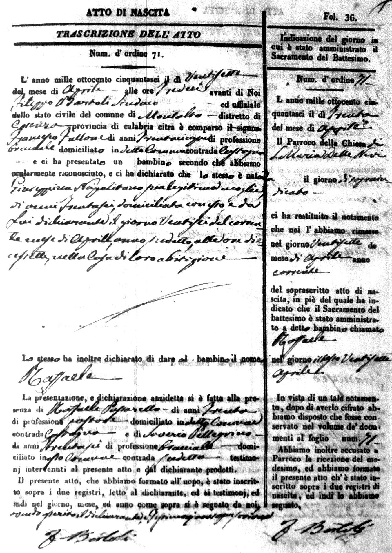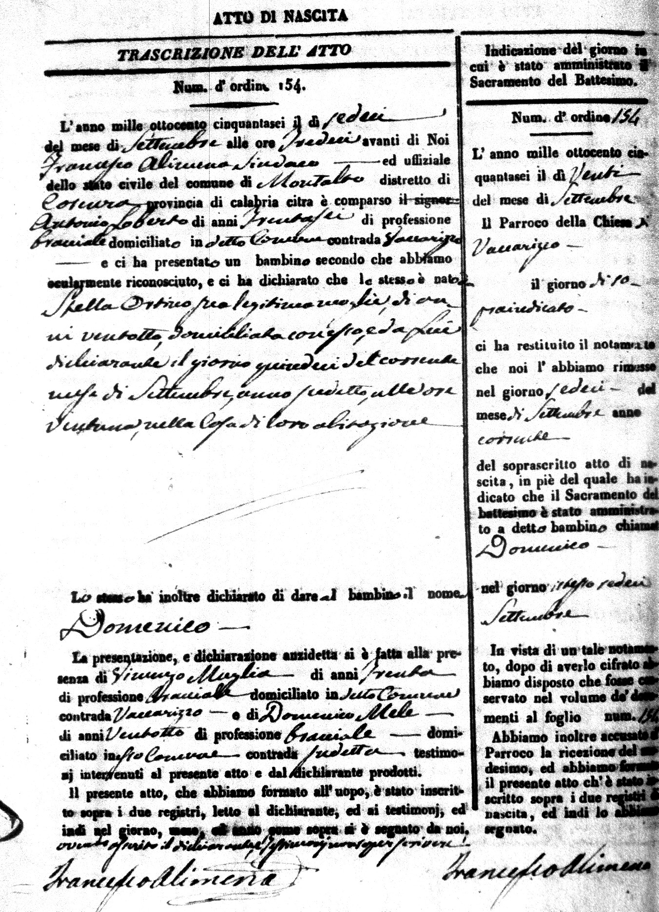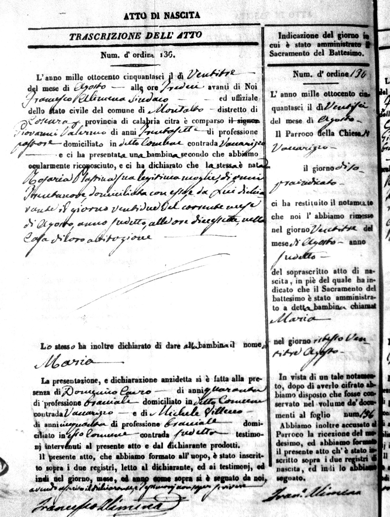 | Avallone | Maria Giuseppa Domenica | Nicolo | 32 | Cirella | Agota | 25 |