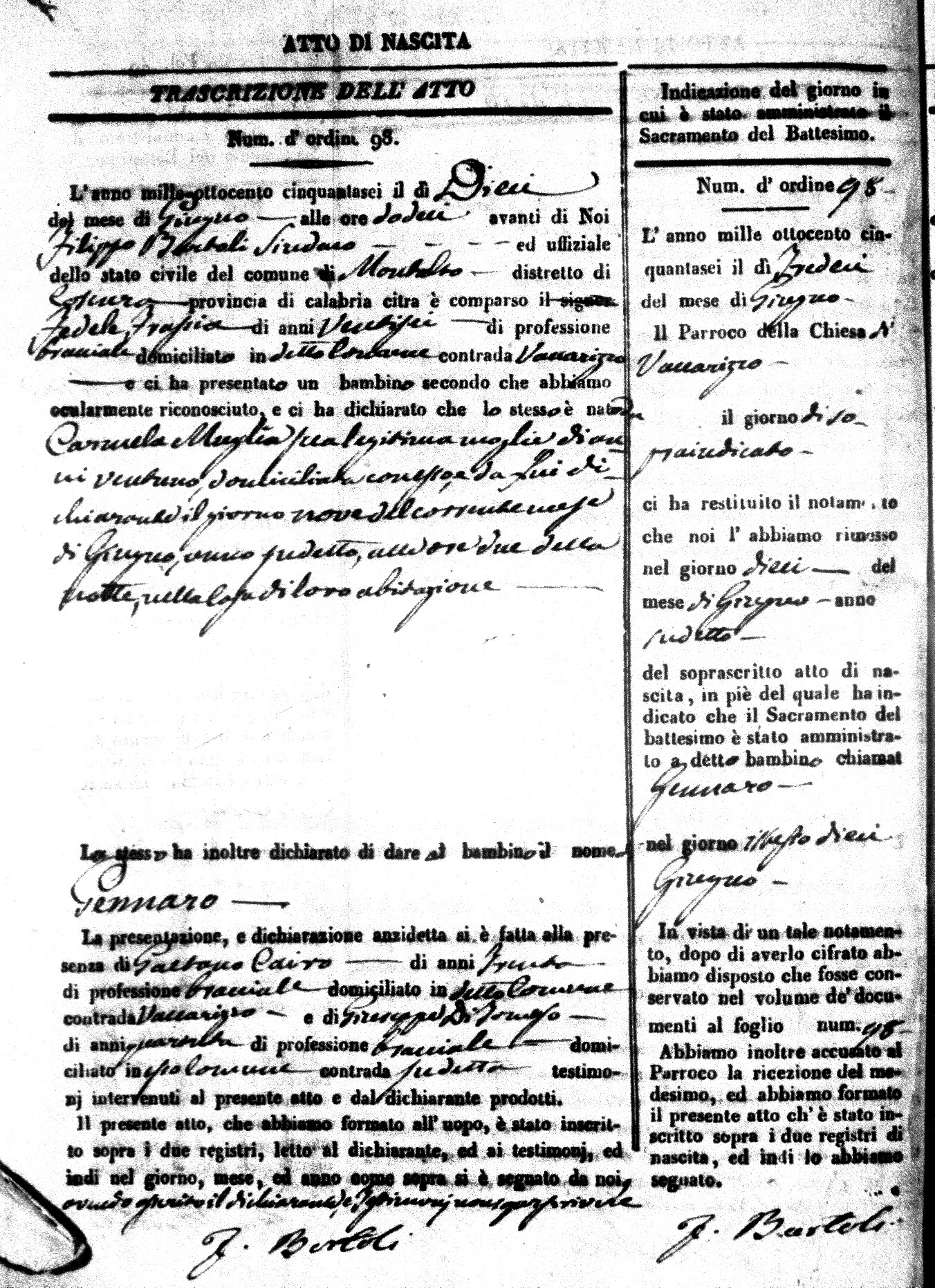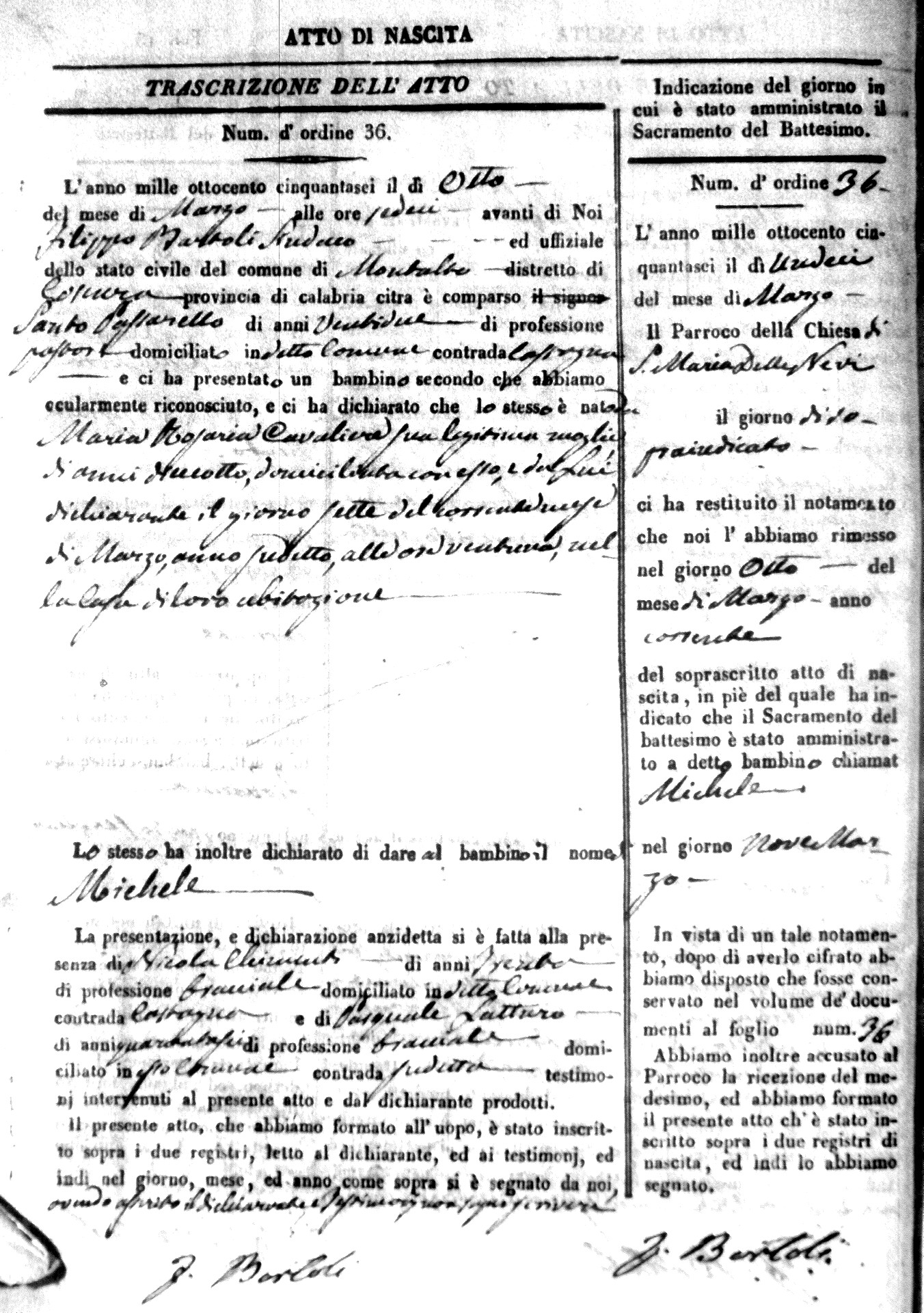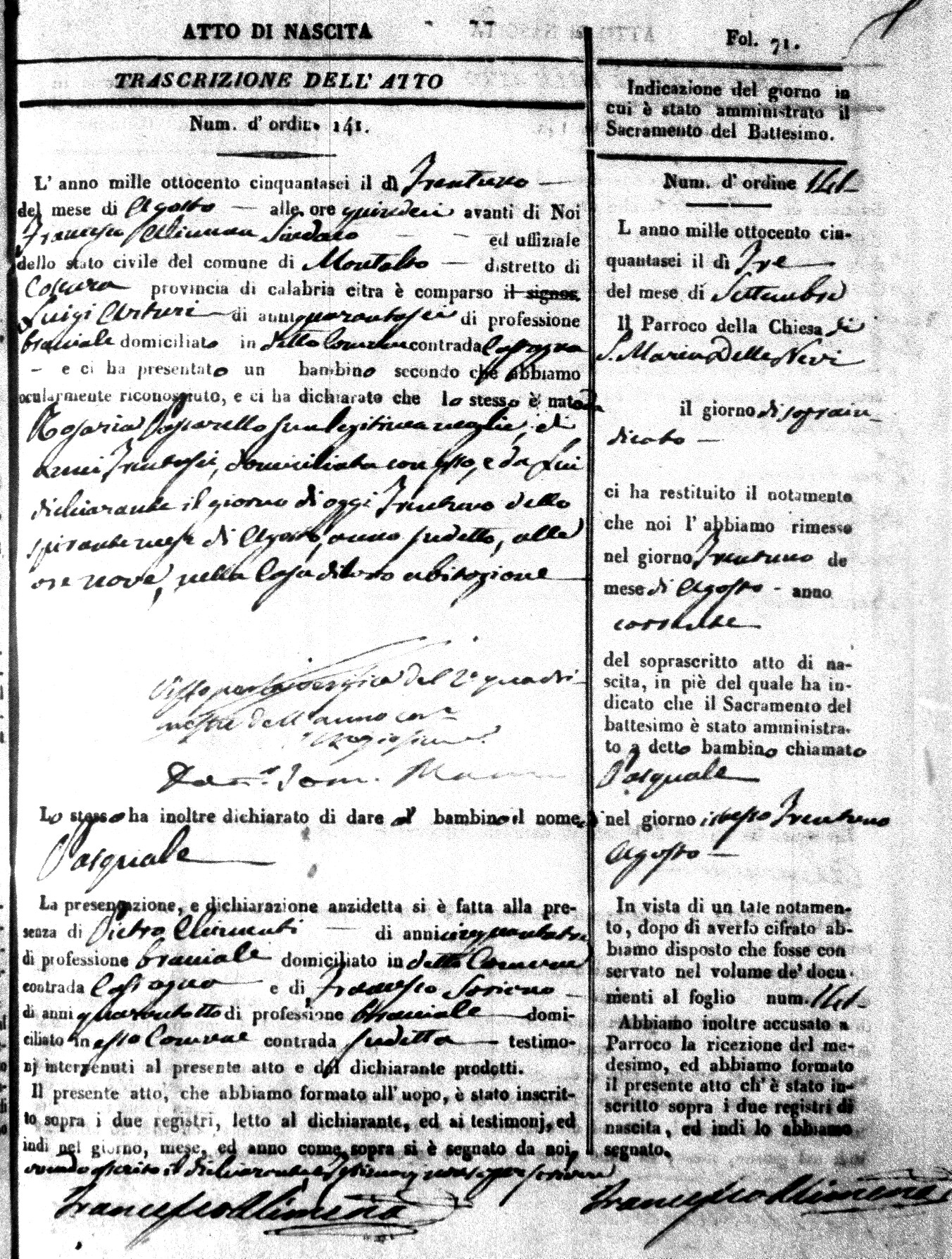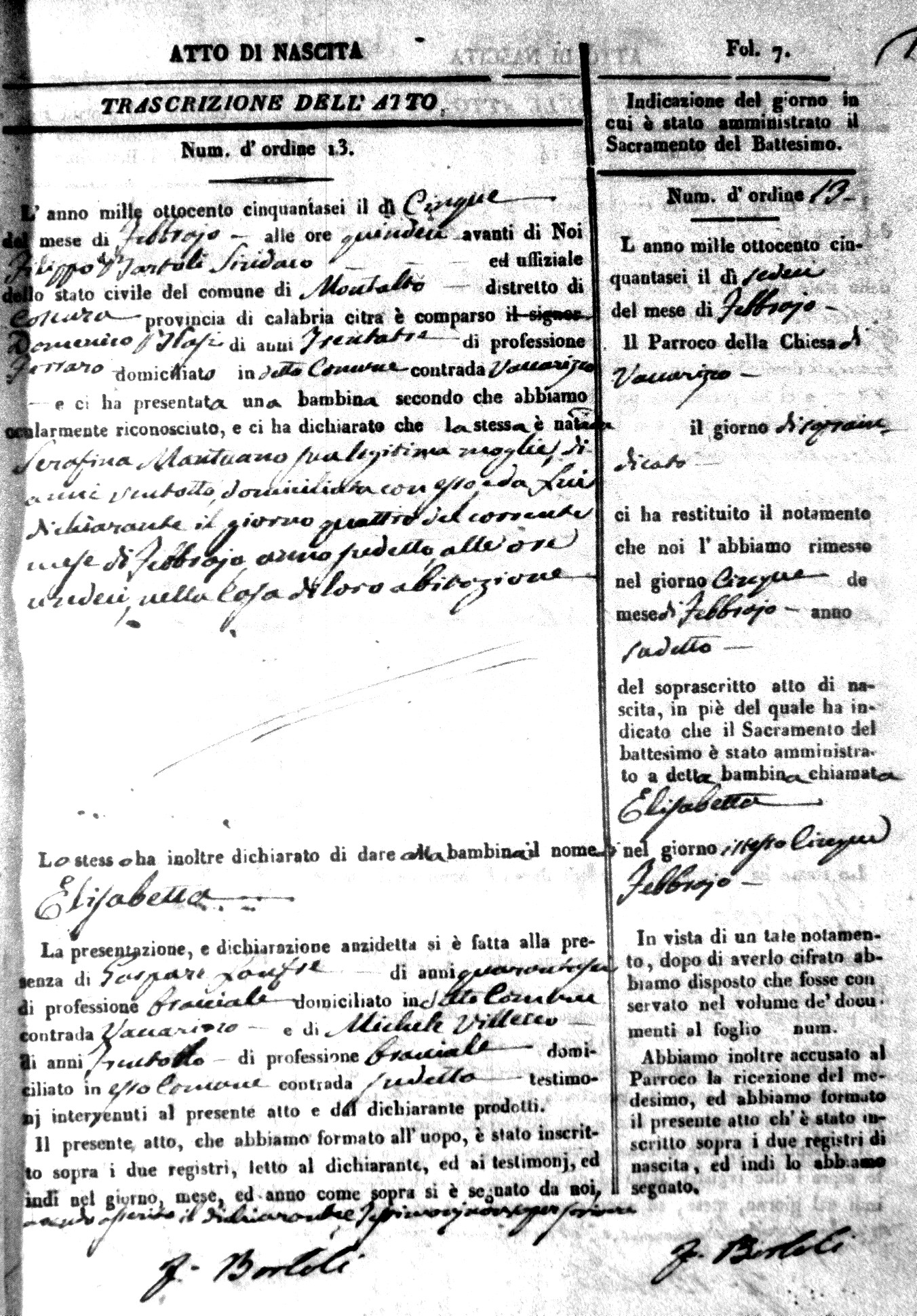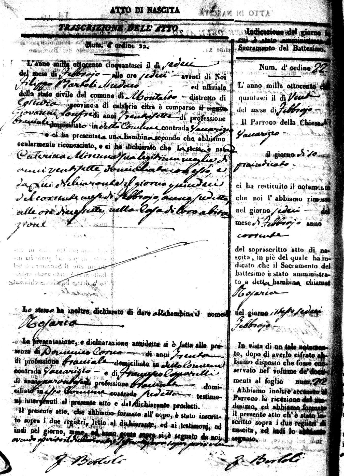 | Avallone | Maria Giuseppa Domenica | Nicolo | 32 | Cirella | Agota | 25 |