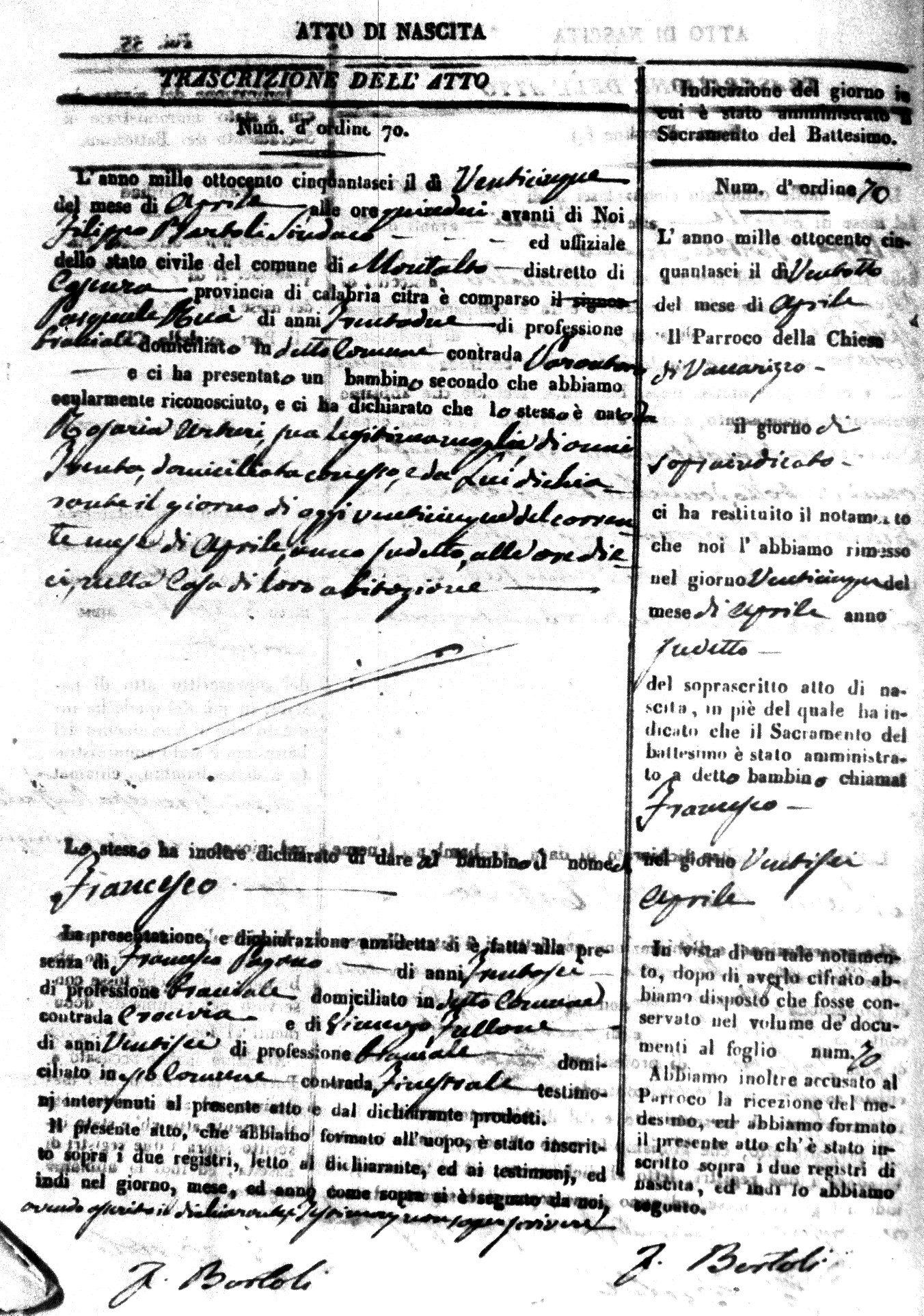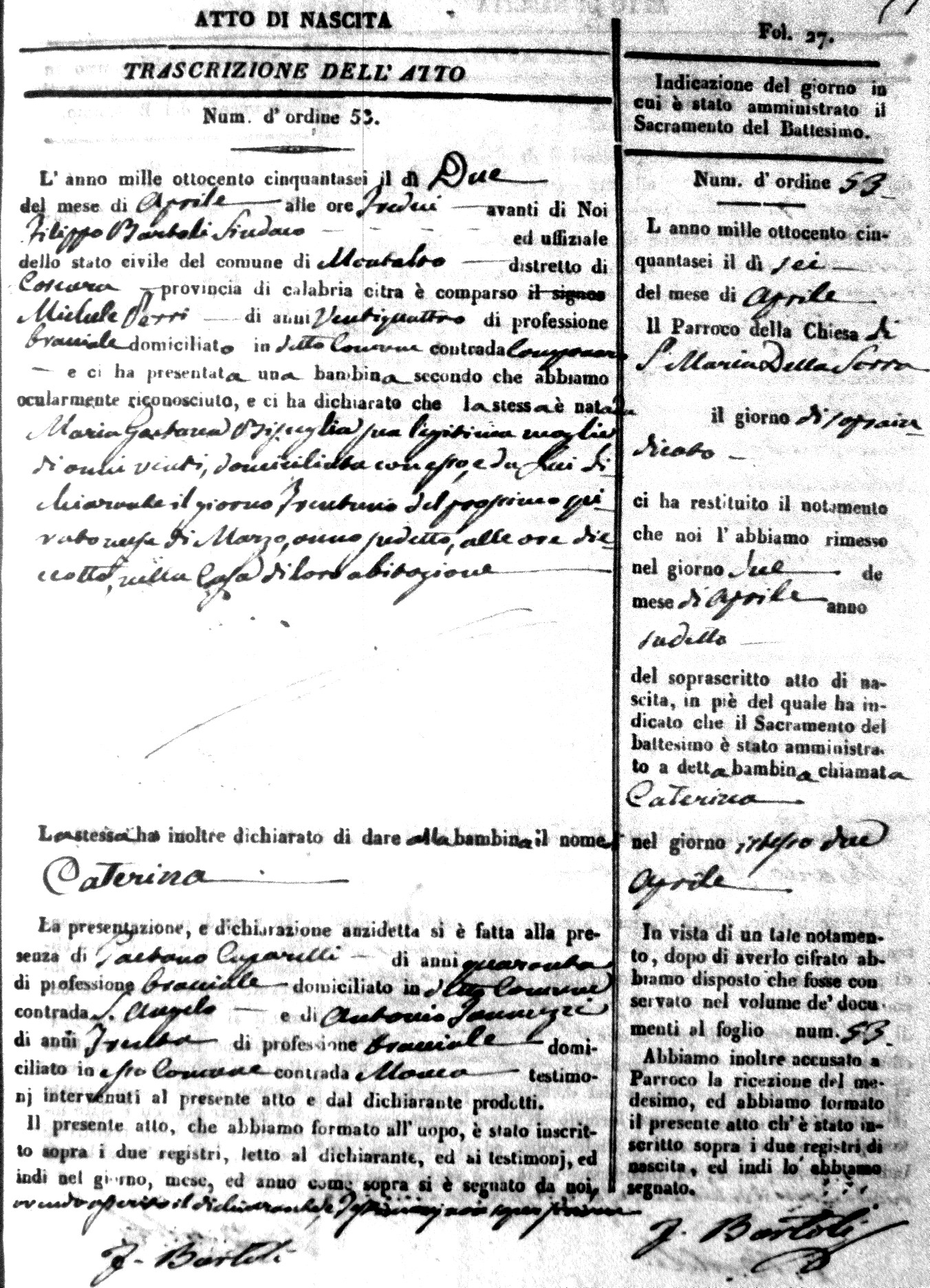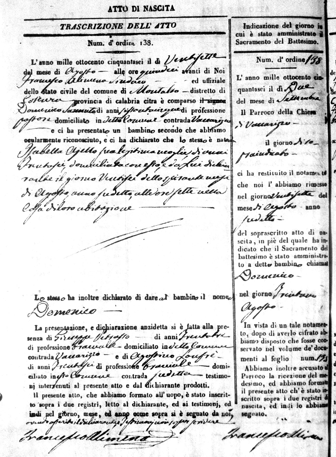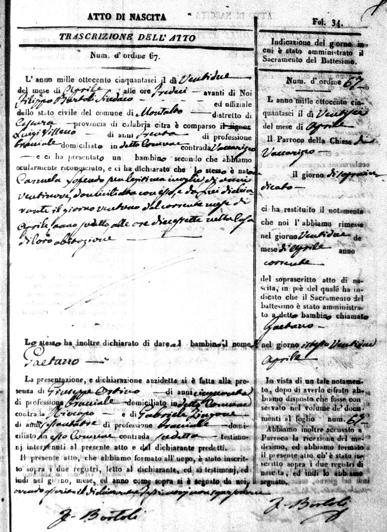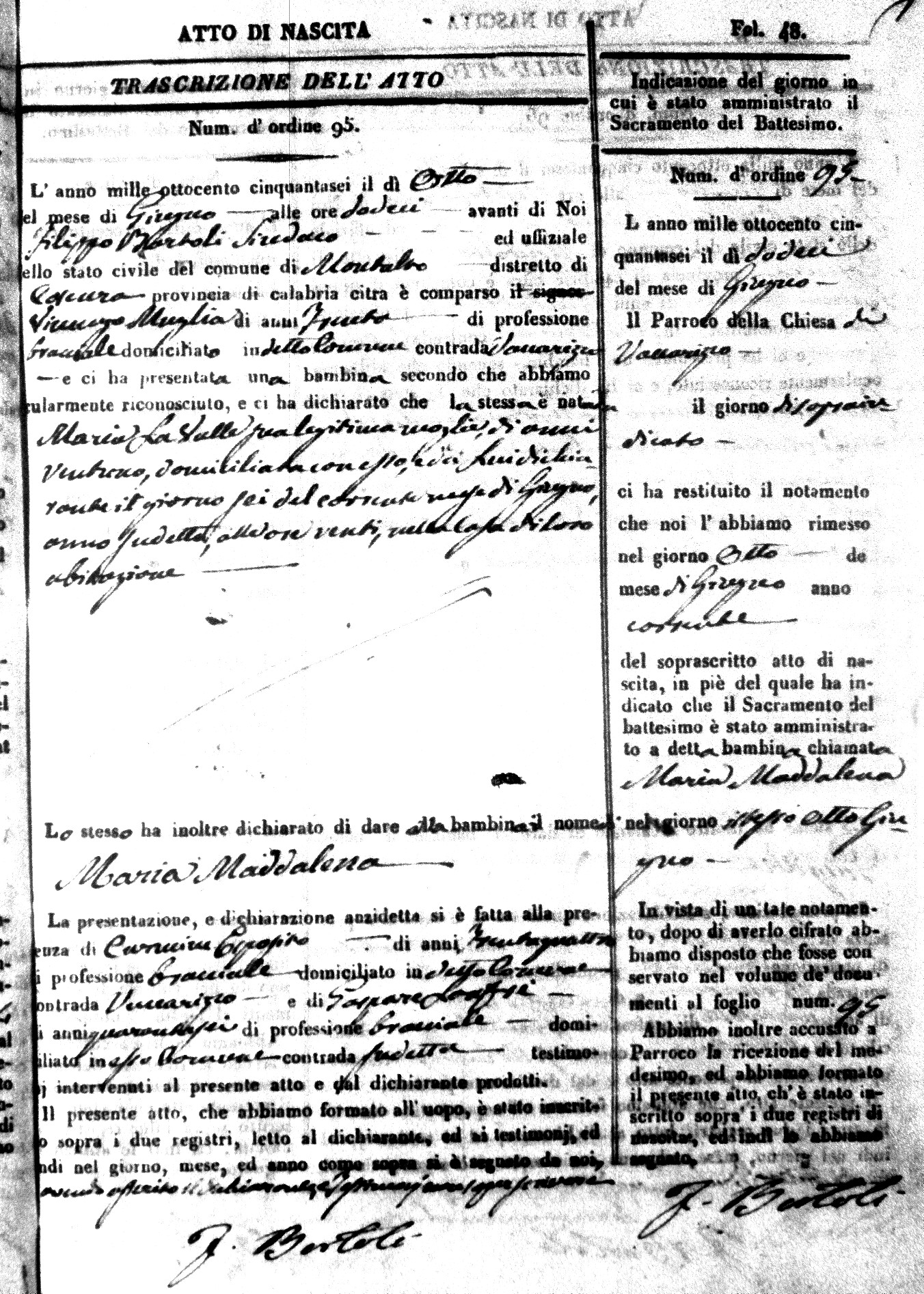 | Avallone | Maria Giuseppa Domenica | Nicolo | 32 | Cirella | Agota | 25 |