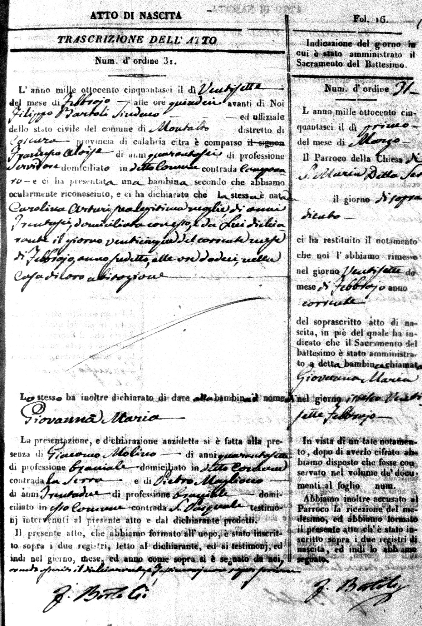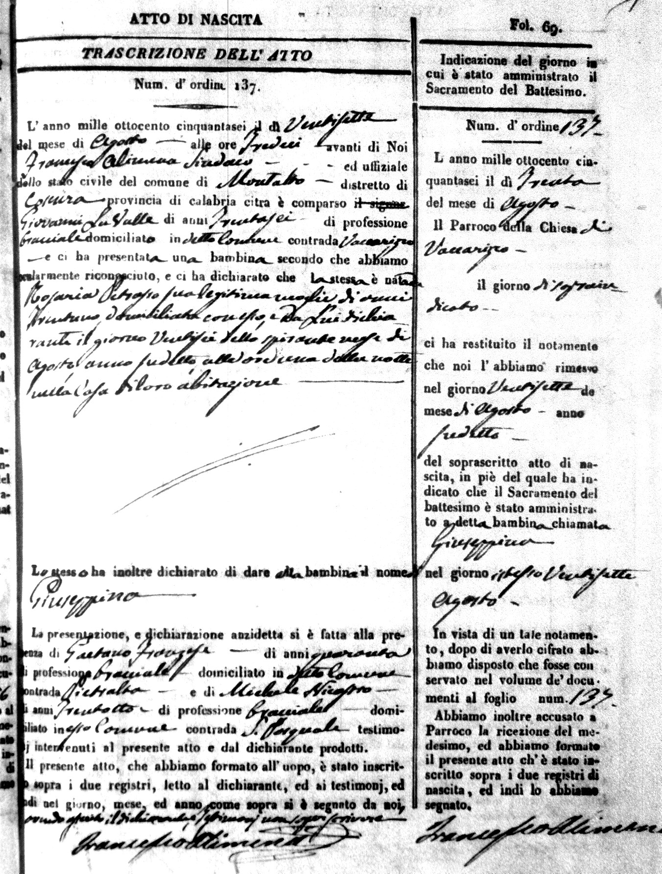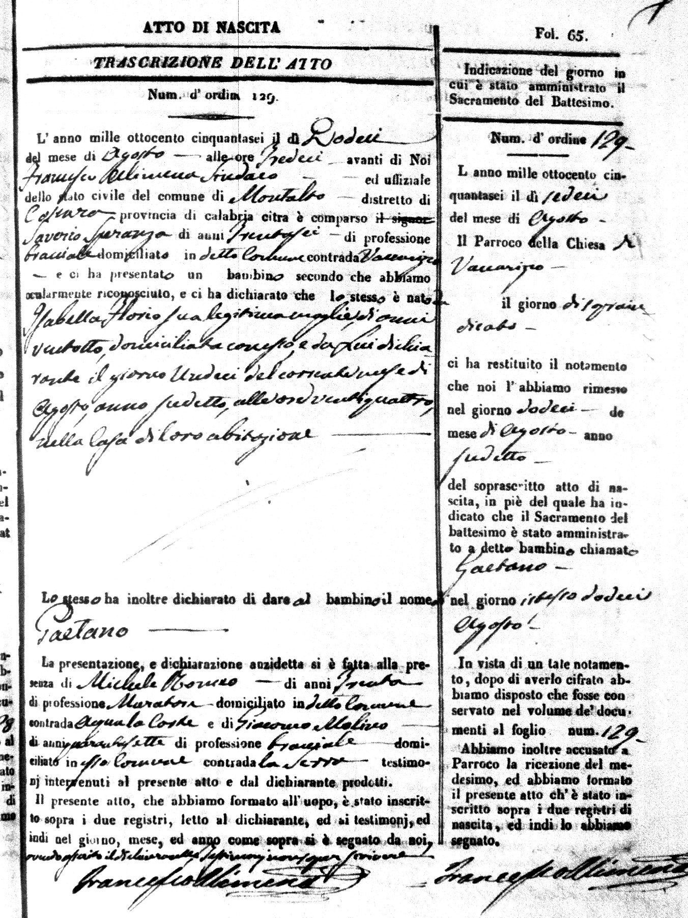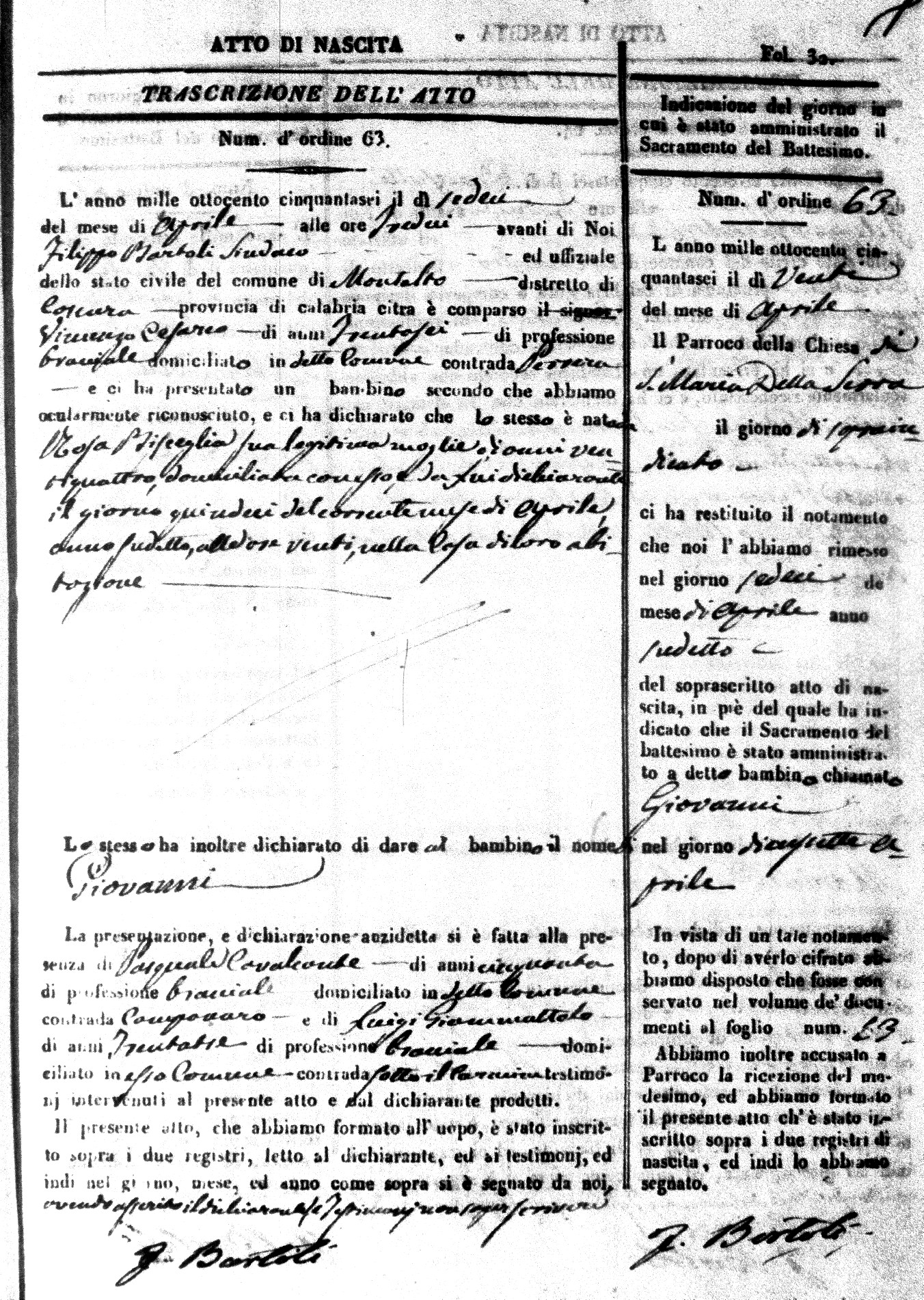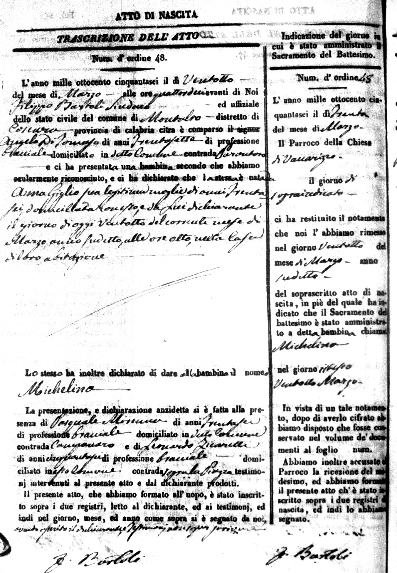 | Avallone | Maria Giuseppa Domenica | Nicolo | 32 | Cirella | Agota | 25 |