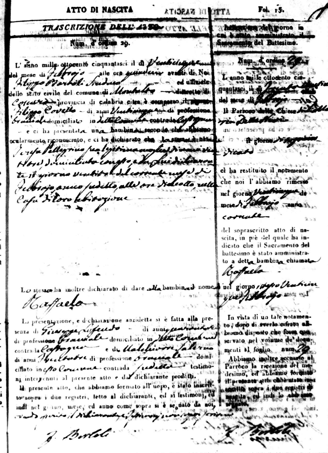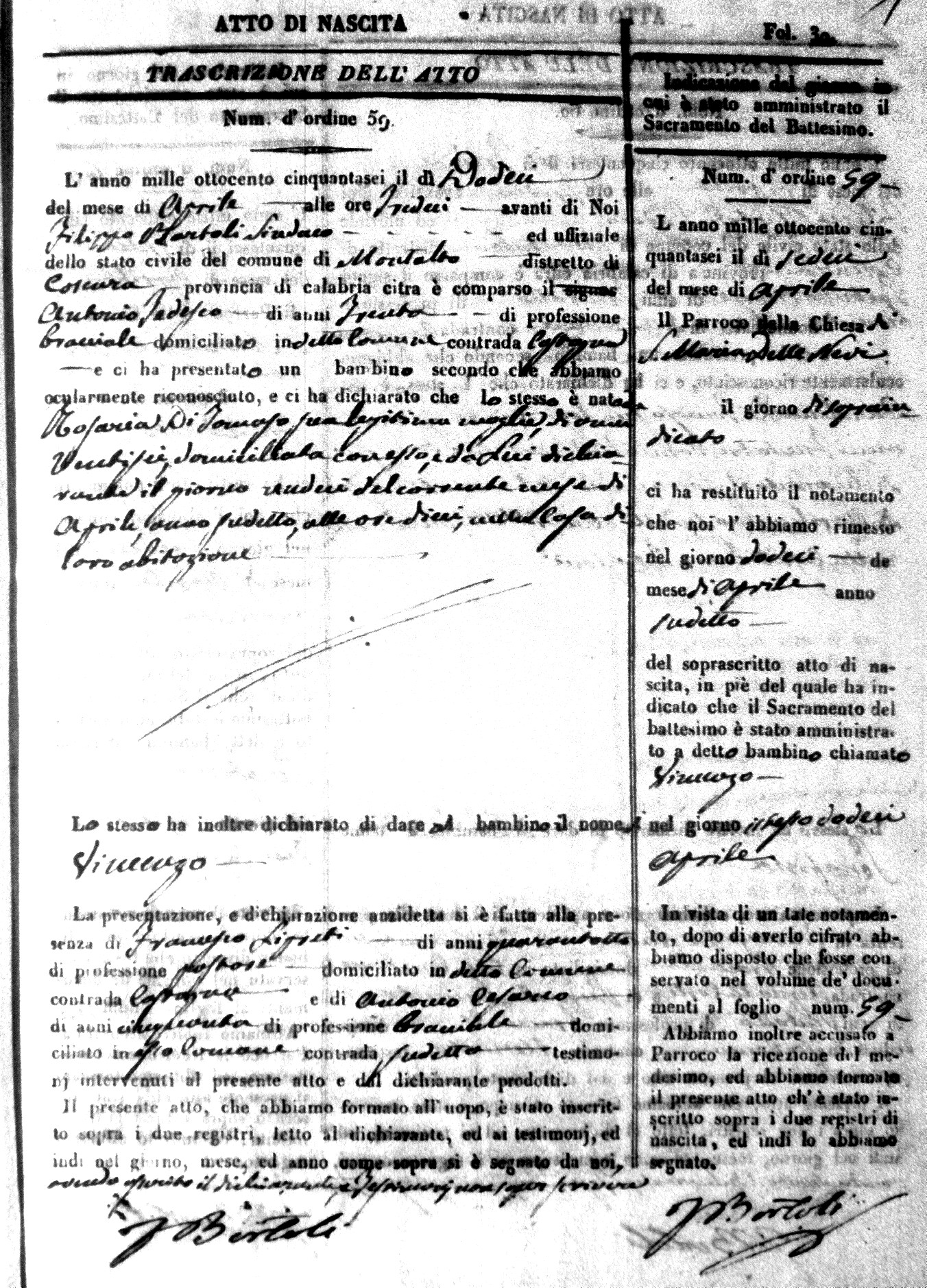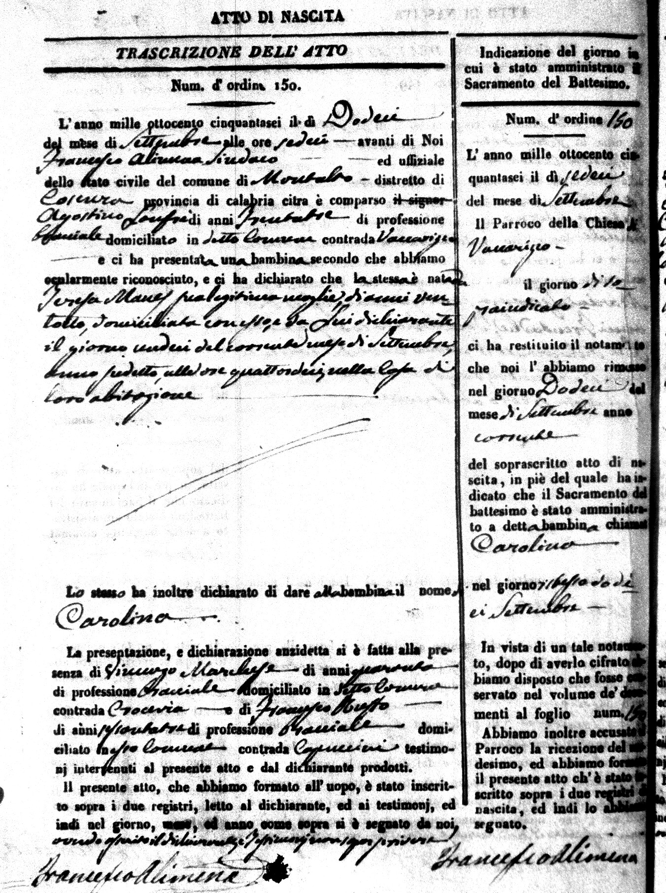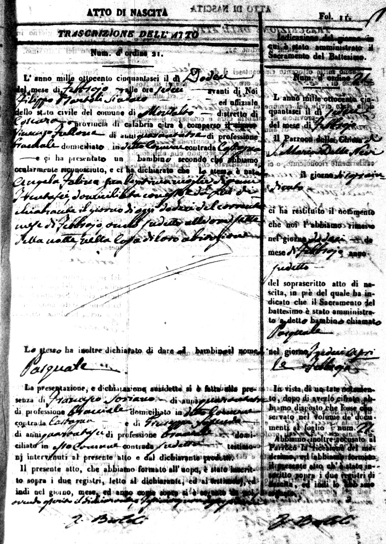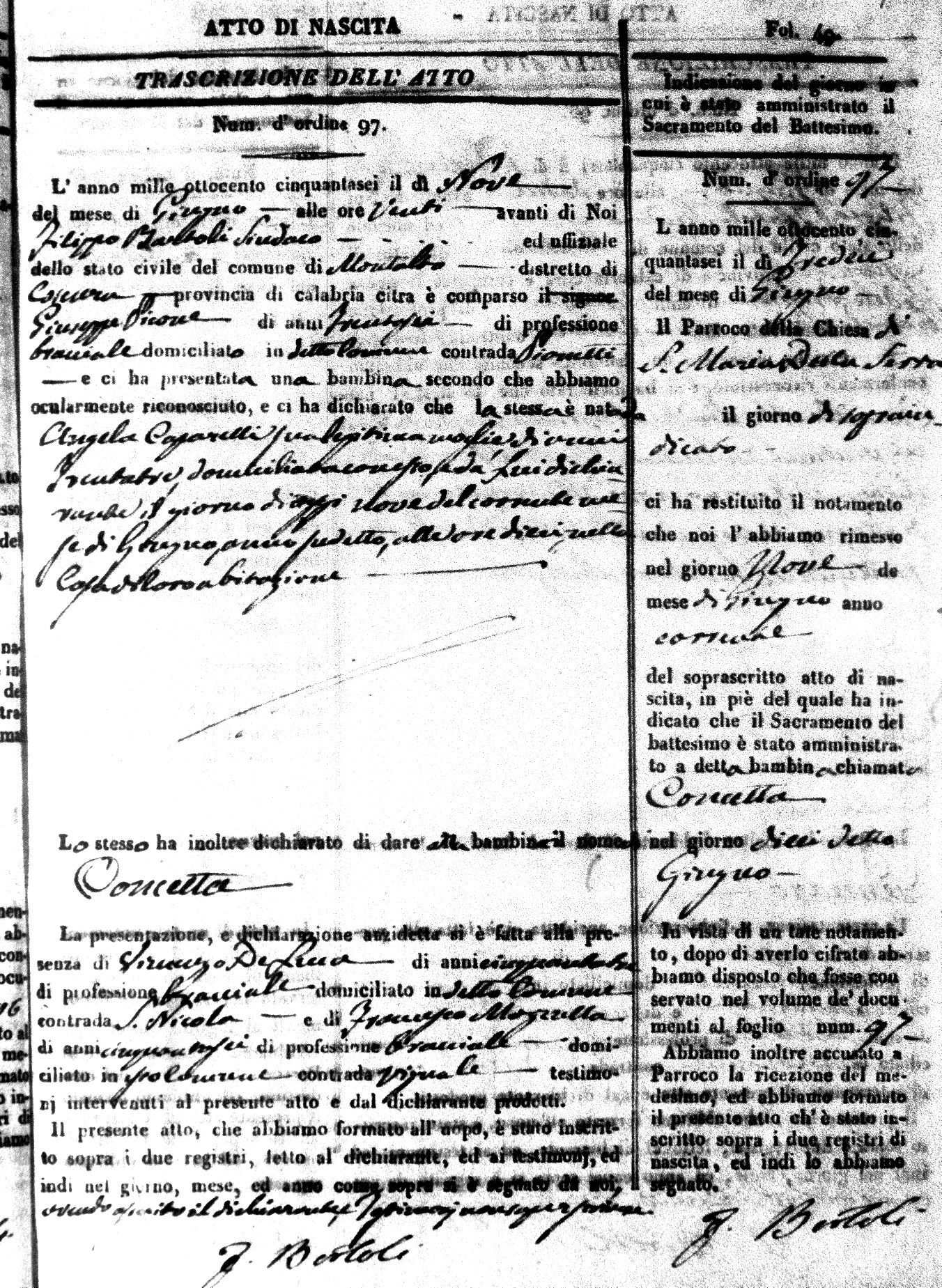 | Avallone | Maria Giuseppa Domenica | Nicolo | 32 | Cirella | Agota | 25 |