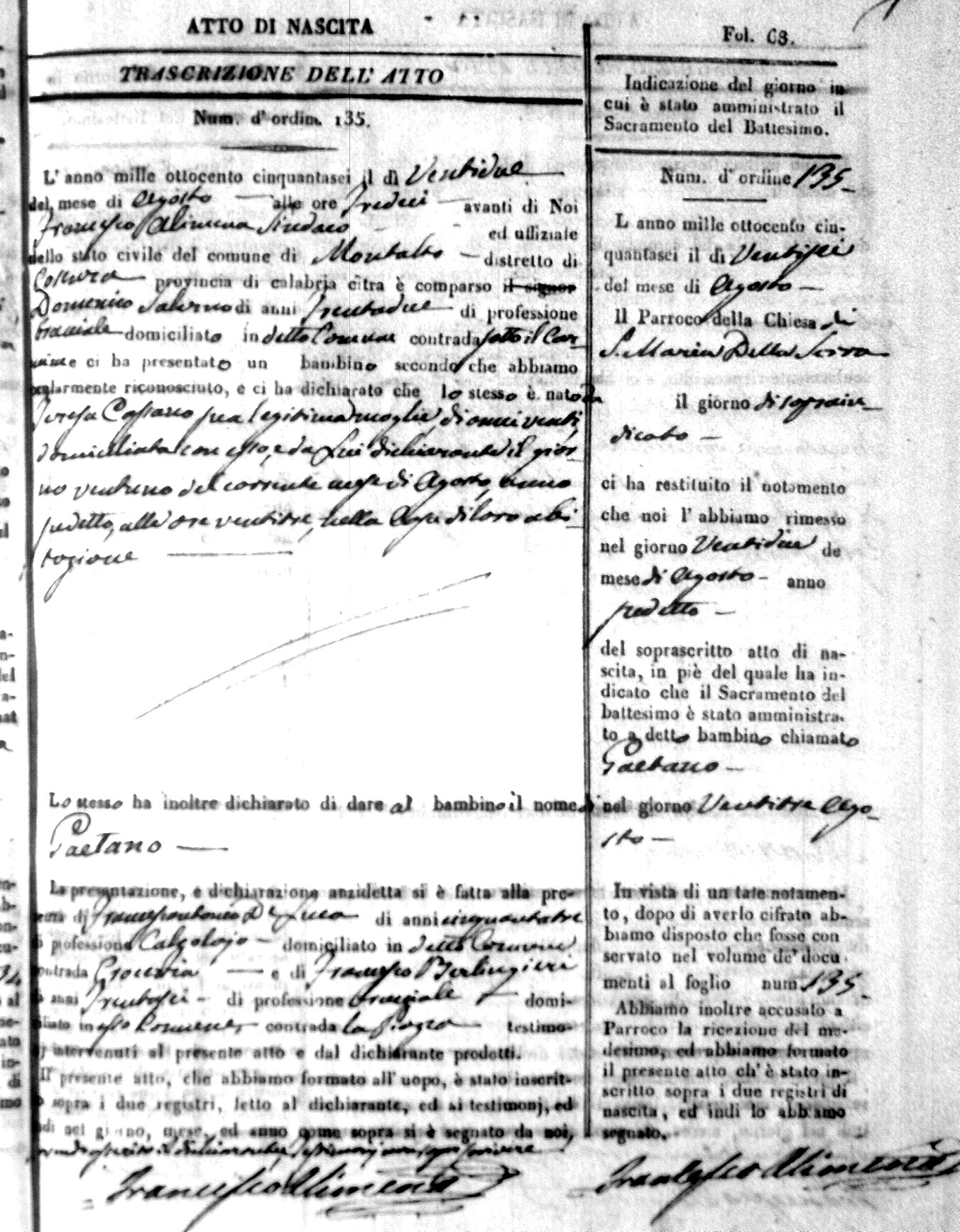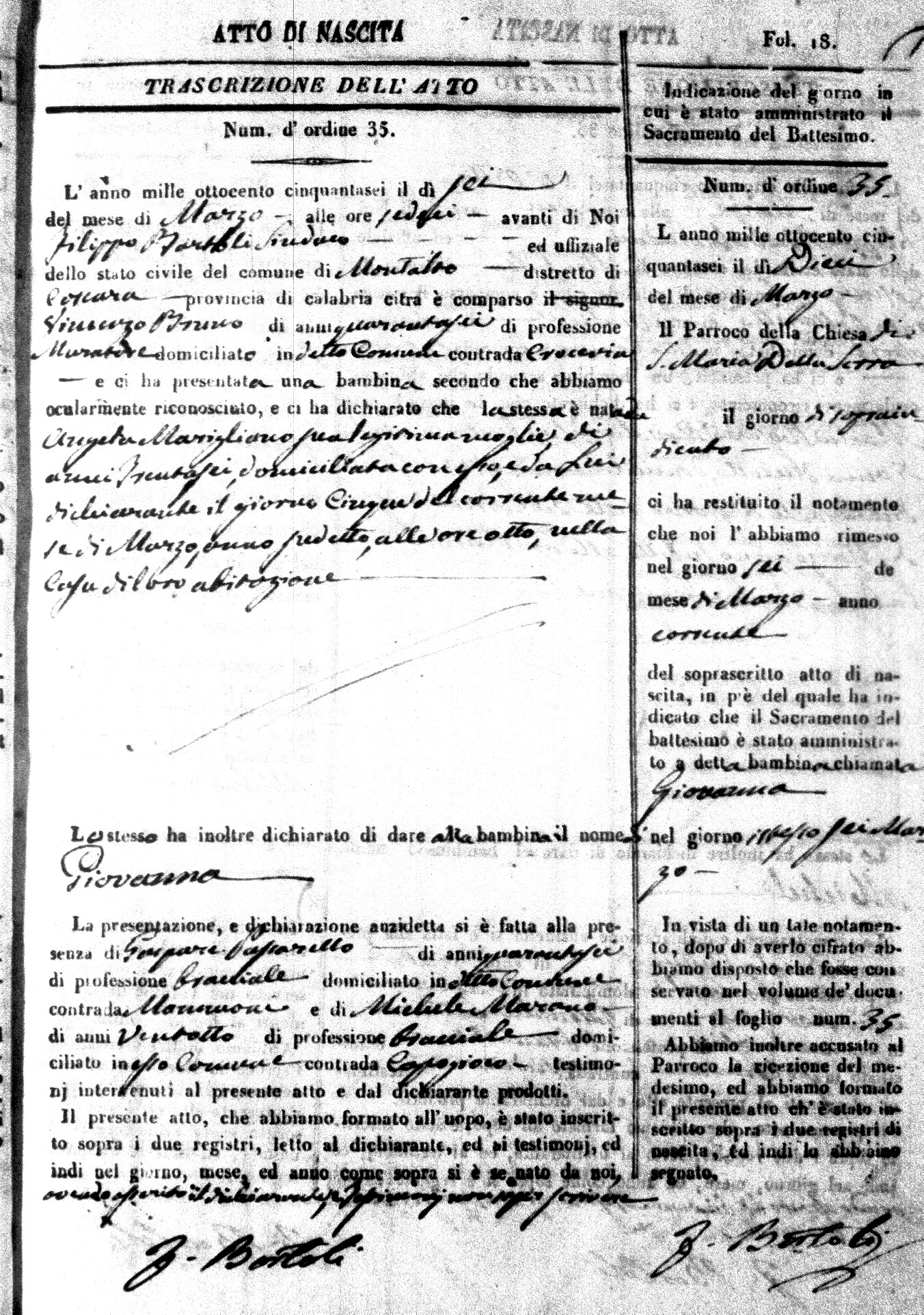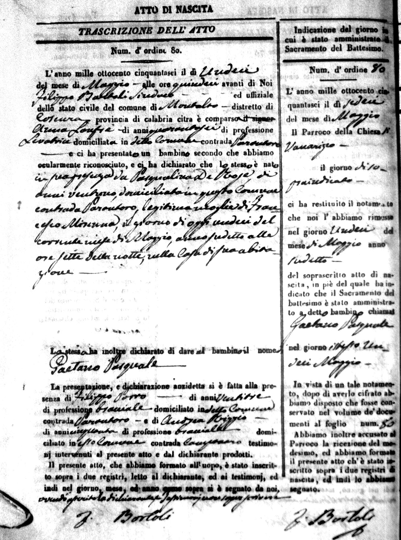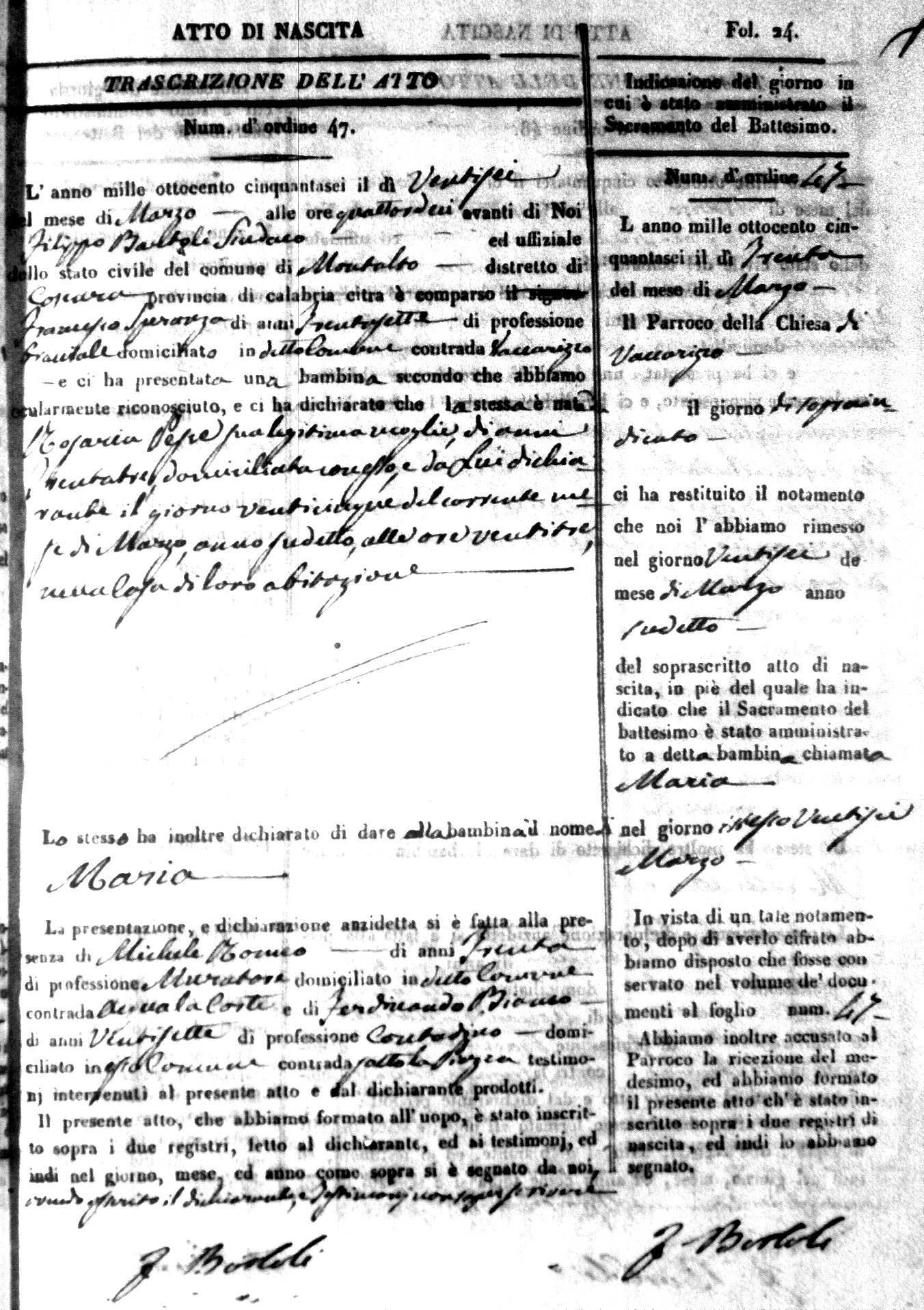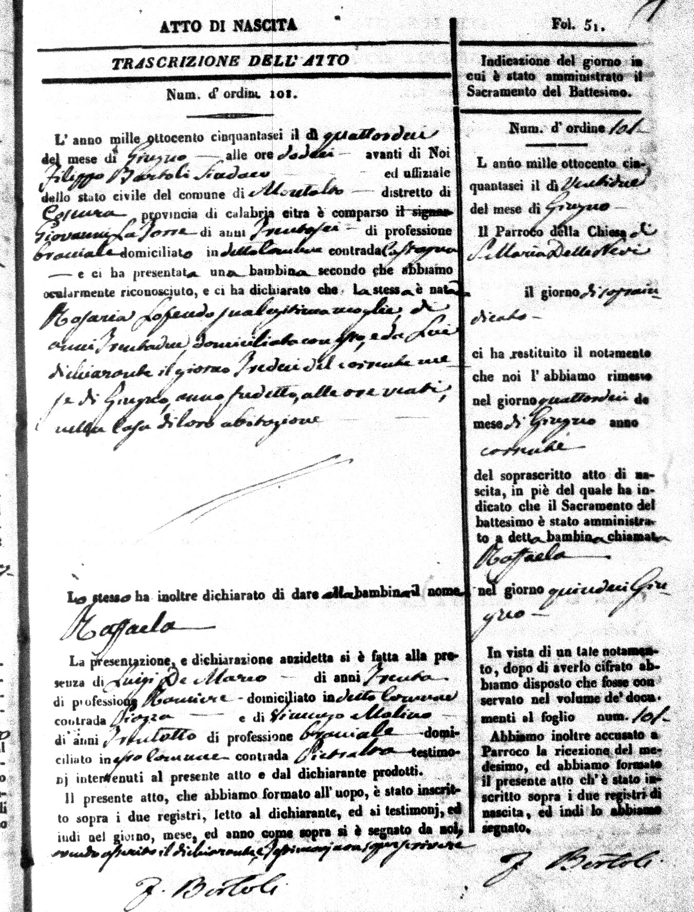 | Avallone | Maria Giuseppa Domenica | Nicolo | 32 | Cirella | Agota | 25 |