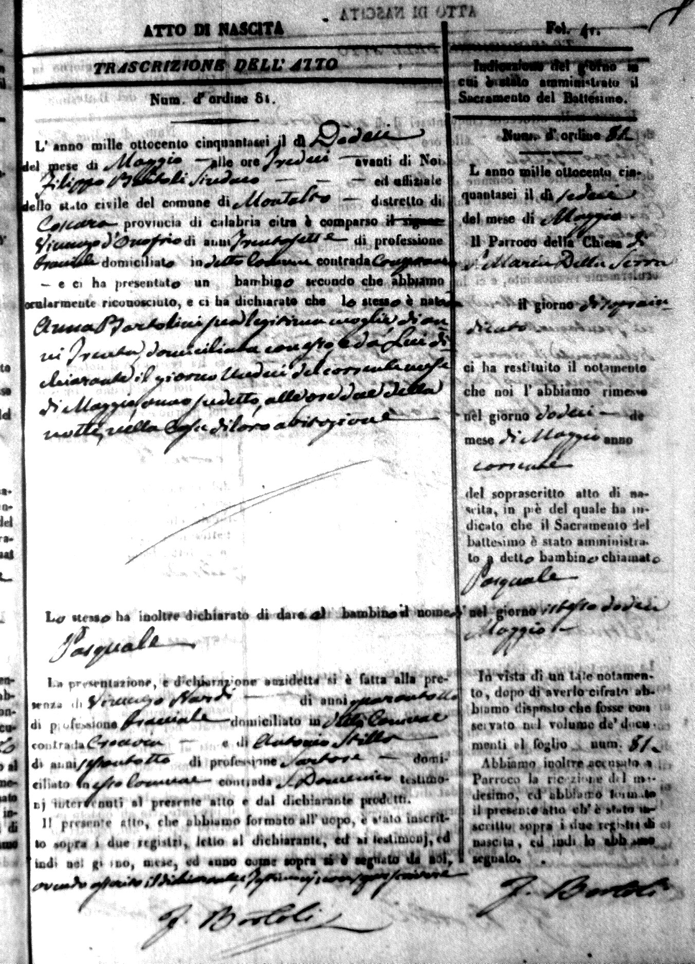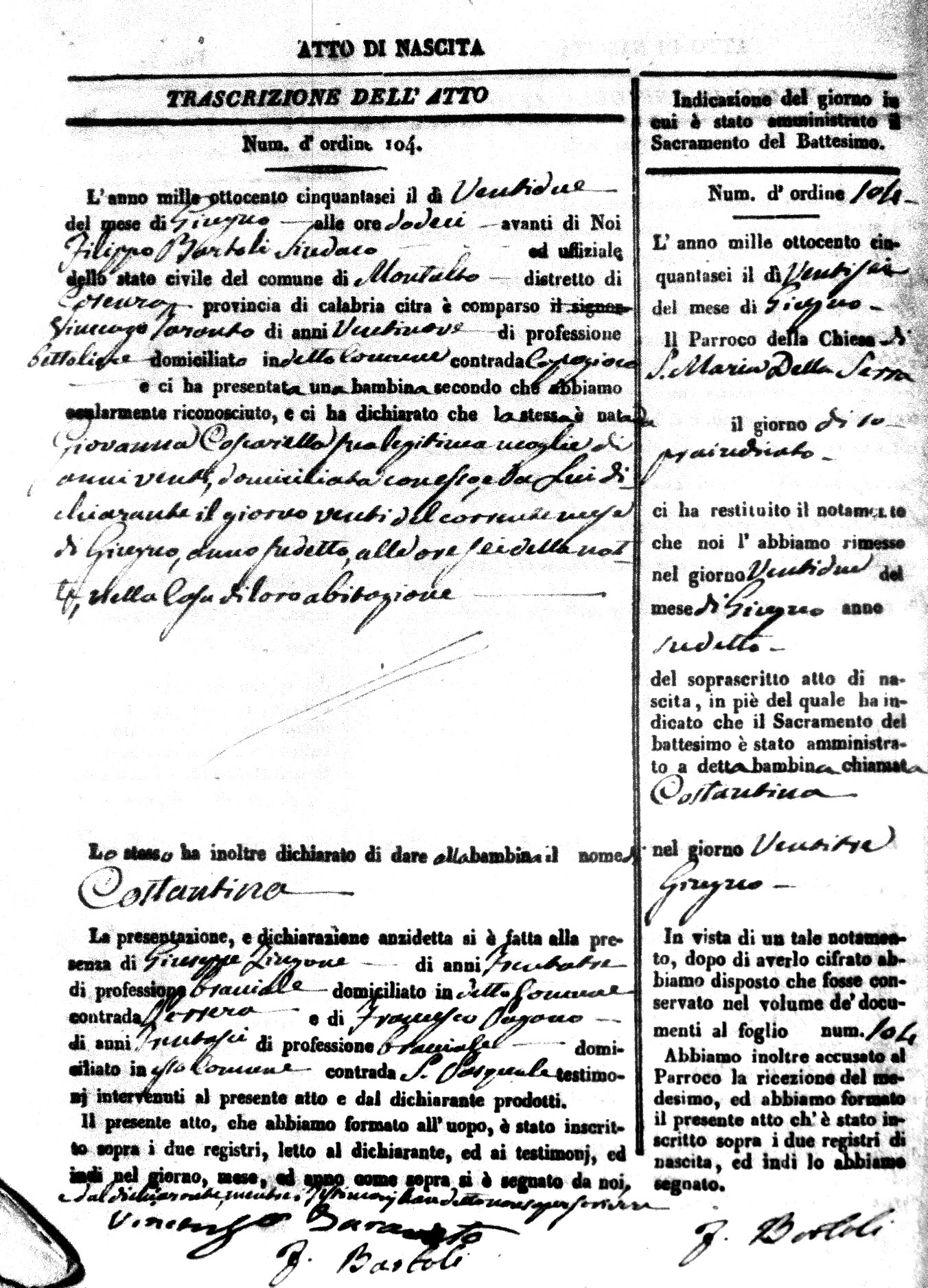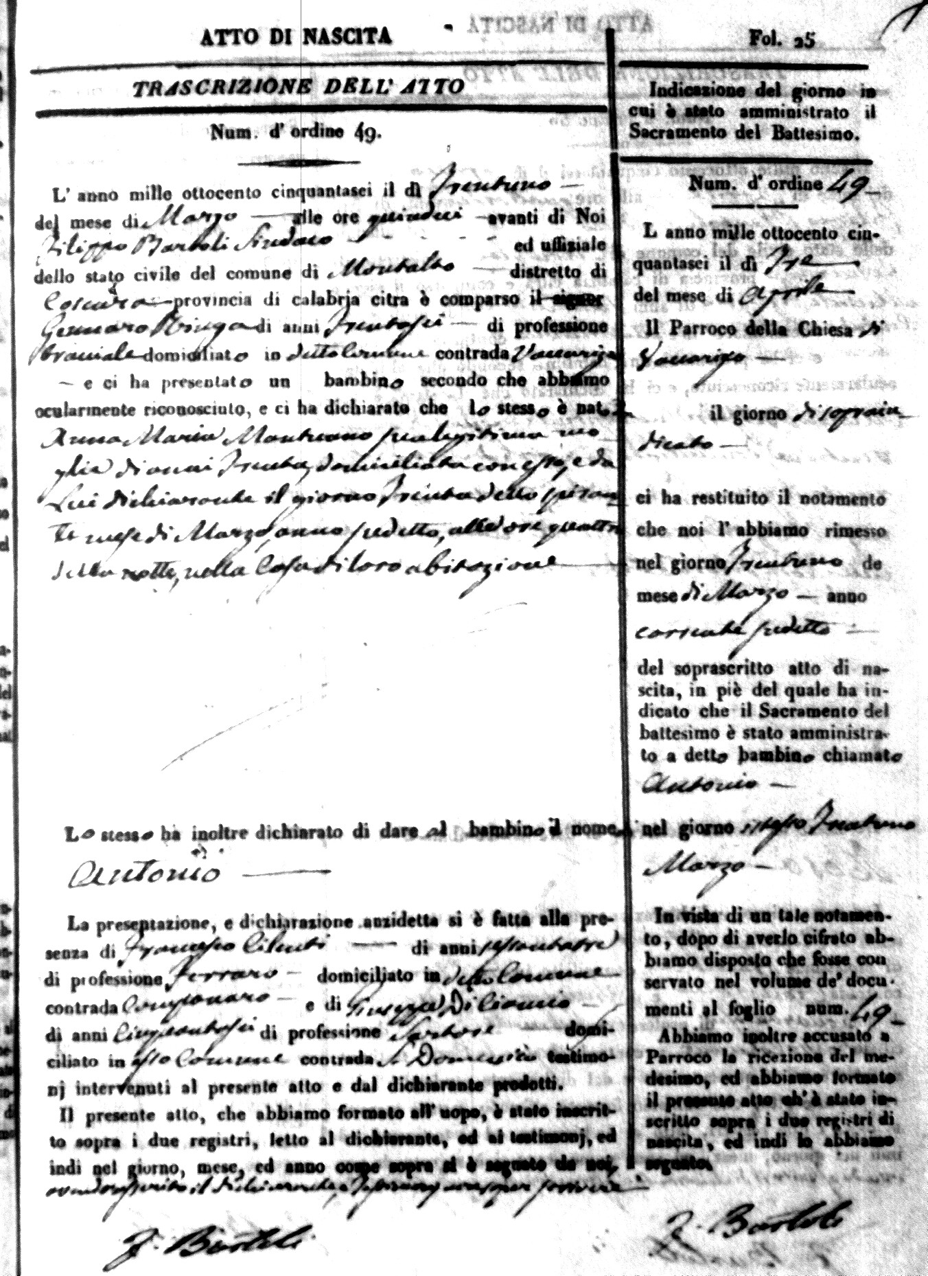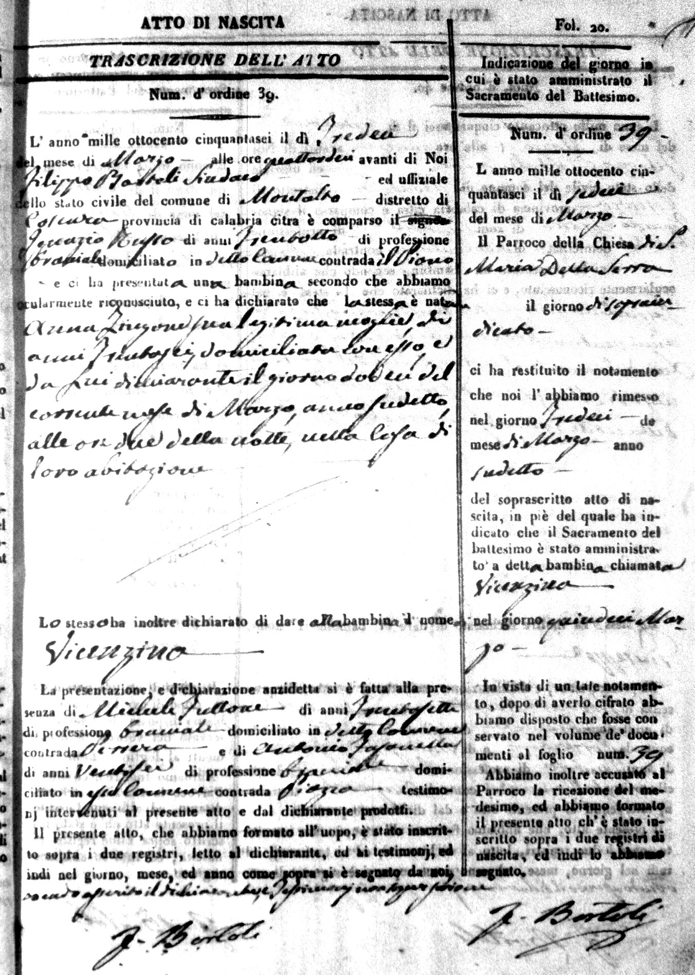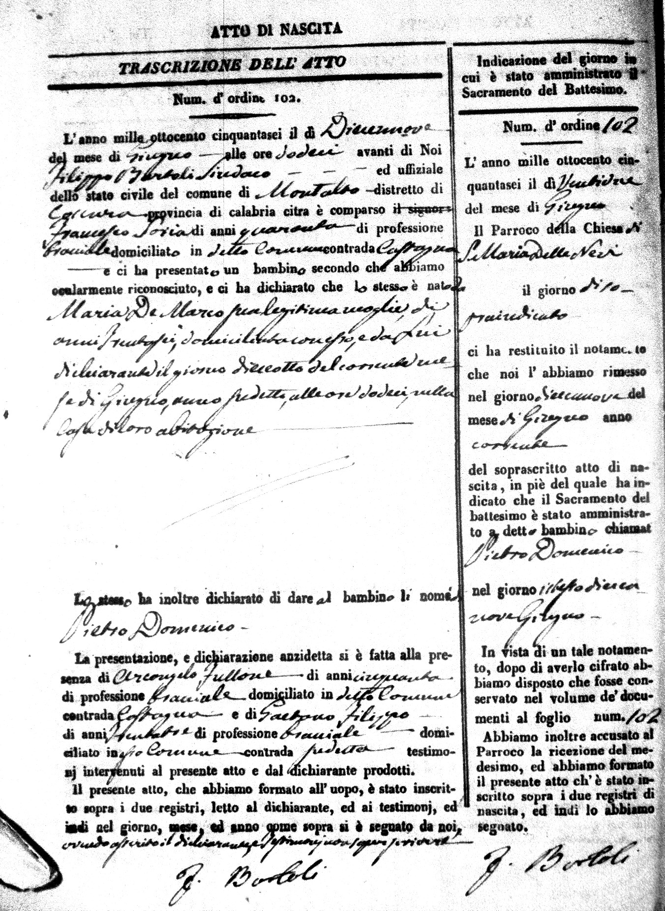 | Avallone | Maria Giuseppa Domenica | Nicolo | 32 | Cirella | Agota | 25 |