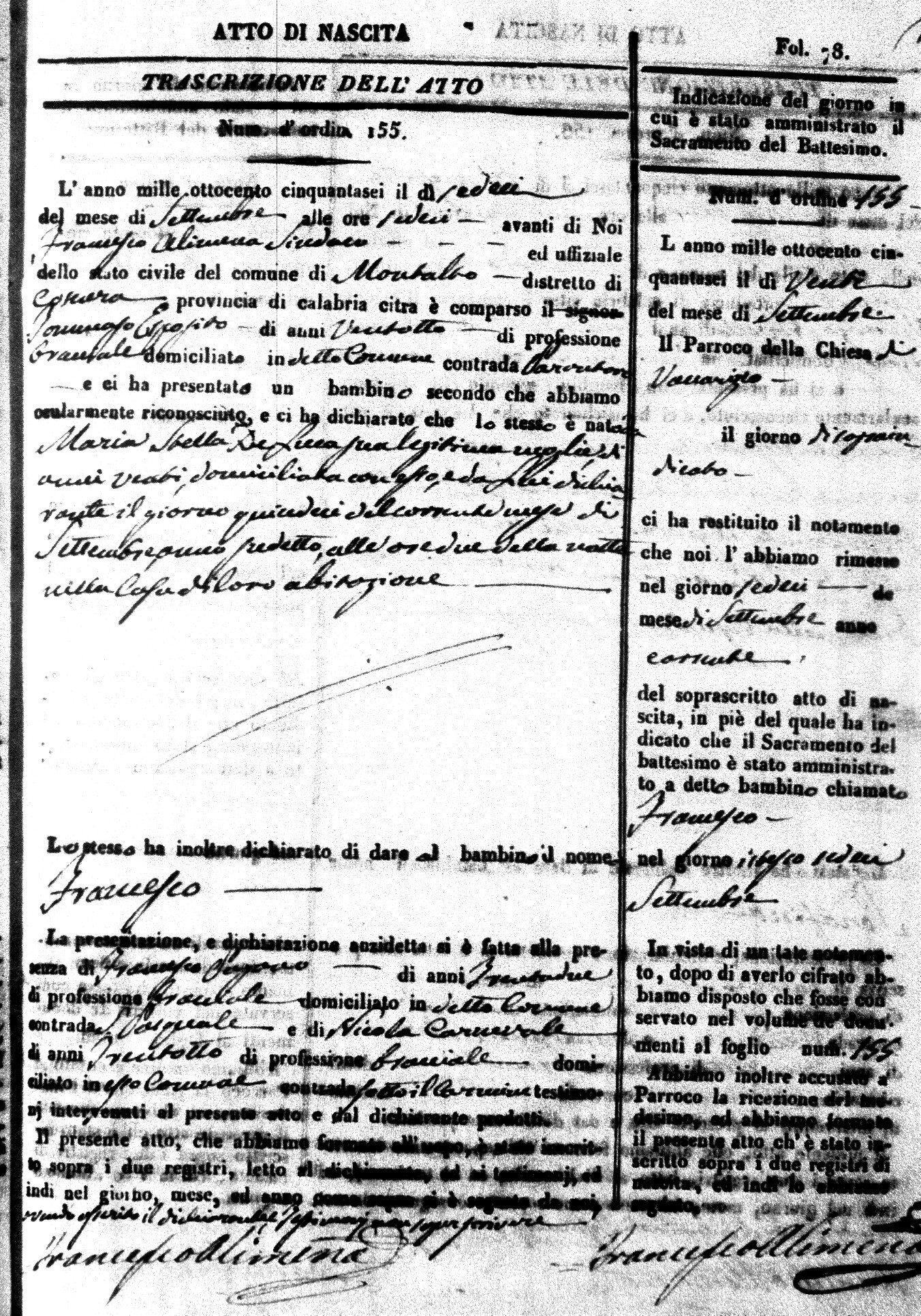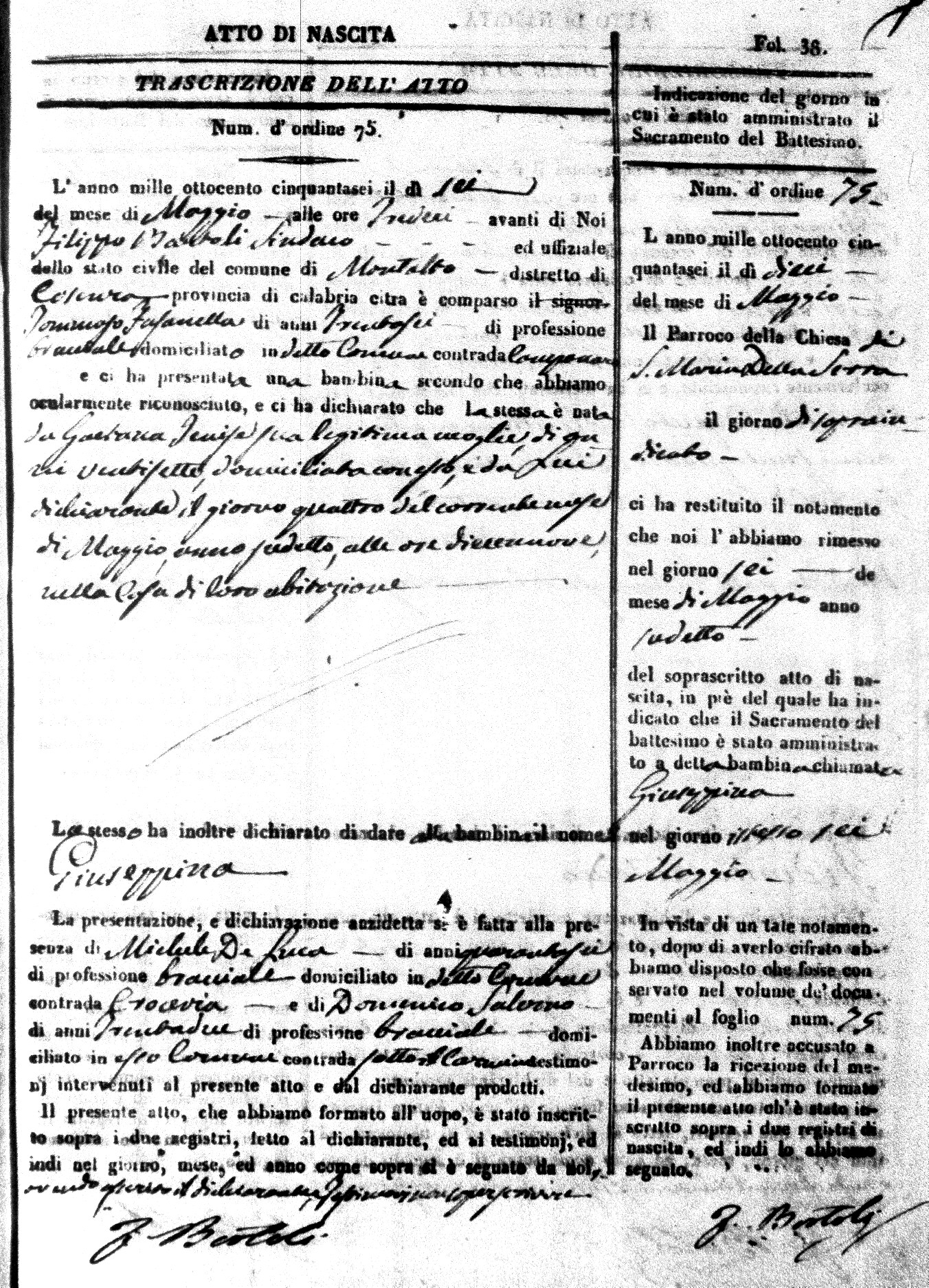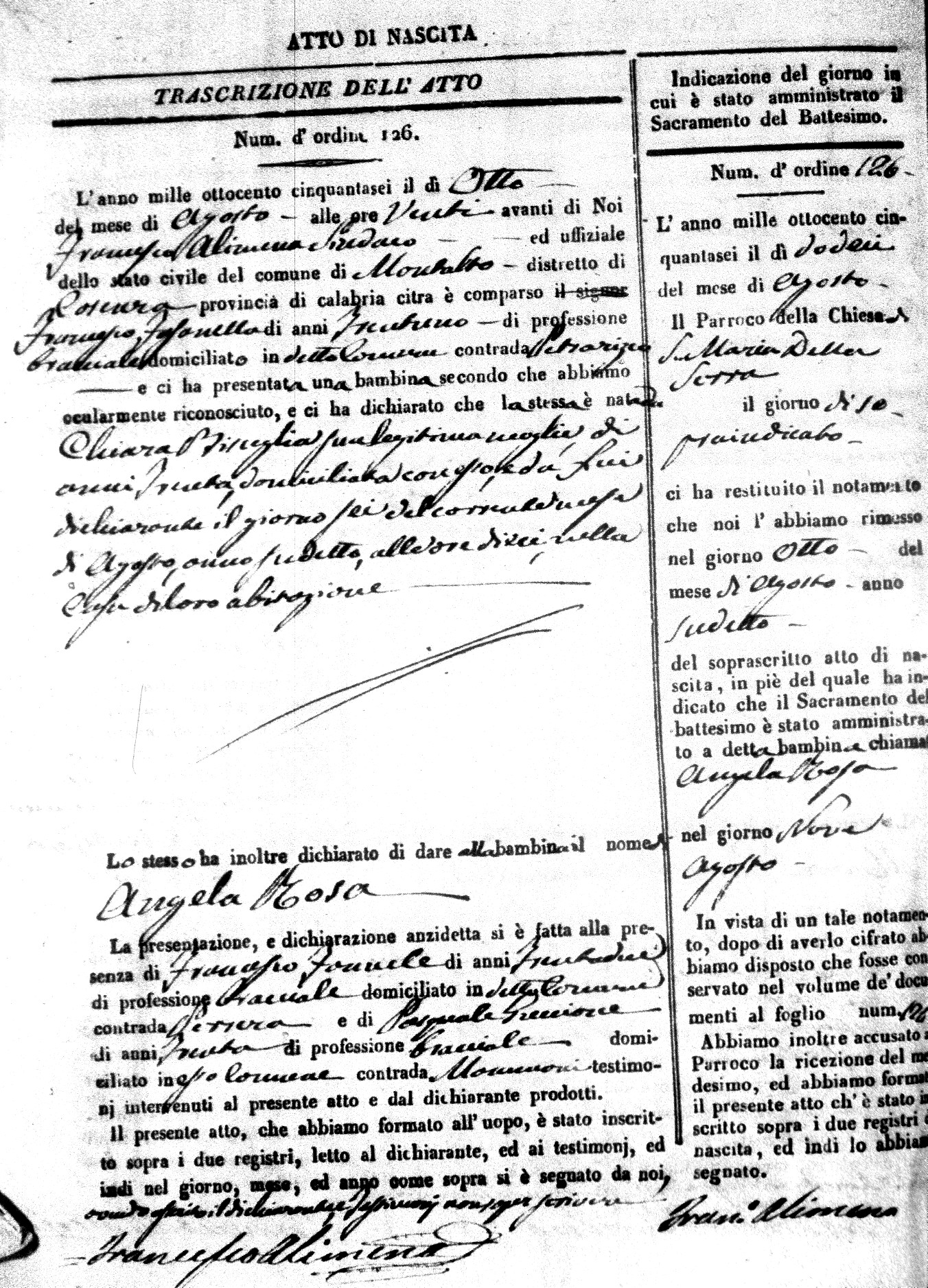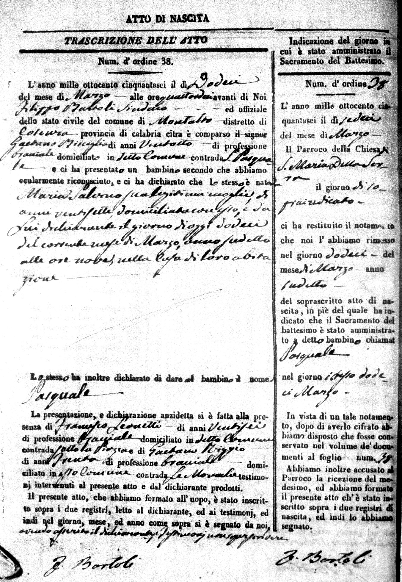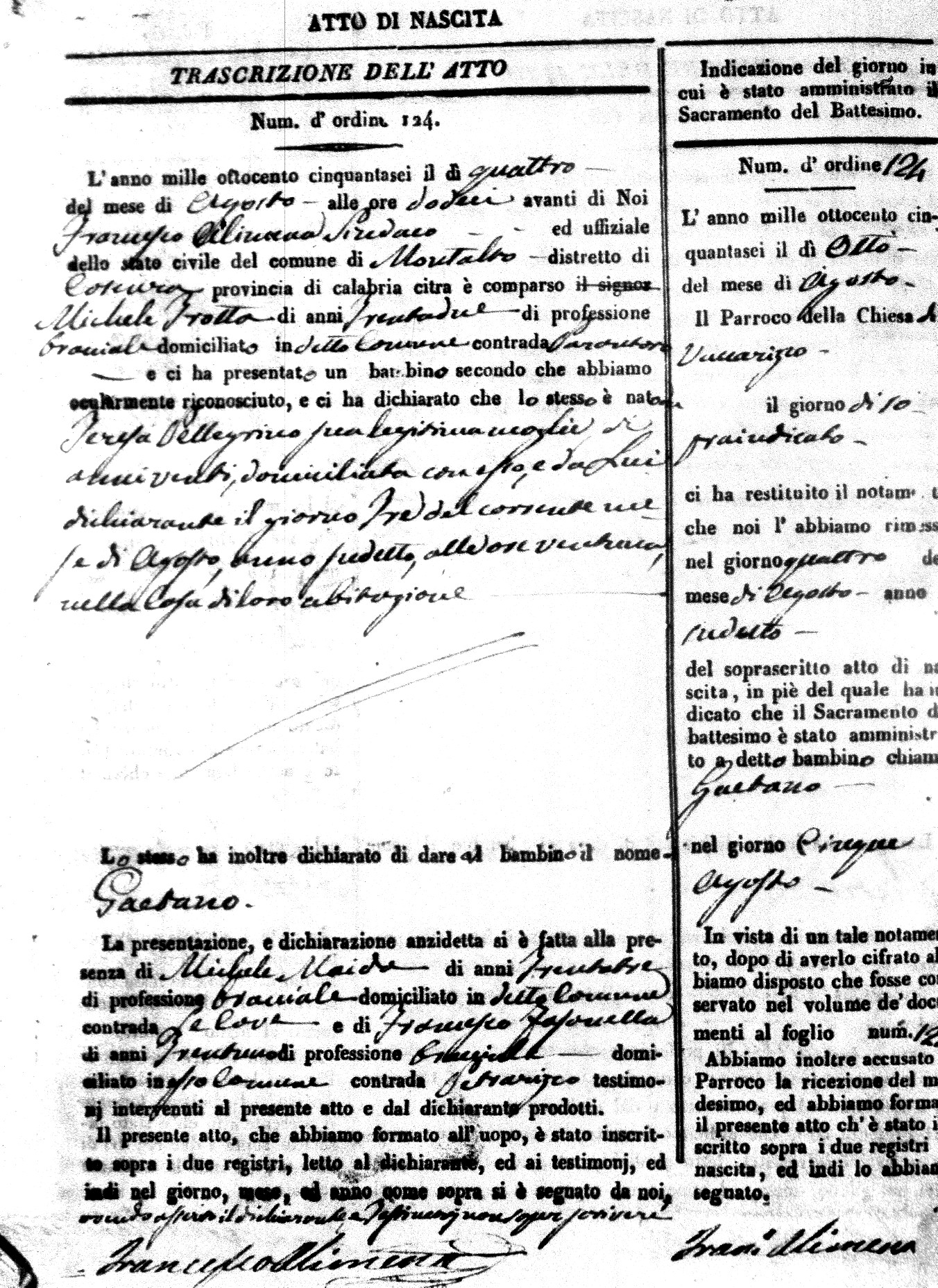 Here are the extractions for the birth acts in 1856 for Montalto Uffugo. Each extraction has a link to a copy of the original document on the baby's surname.