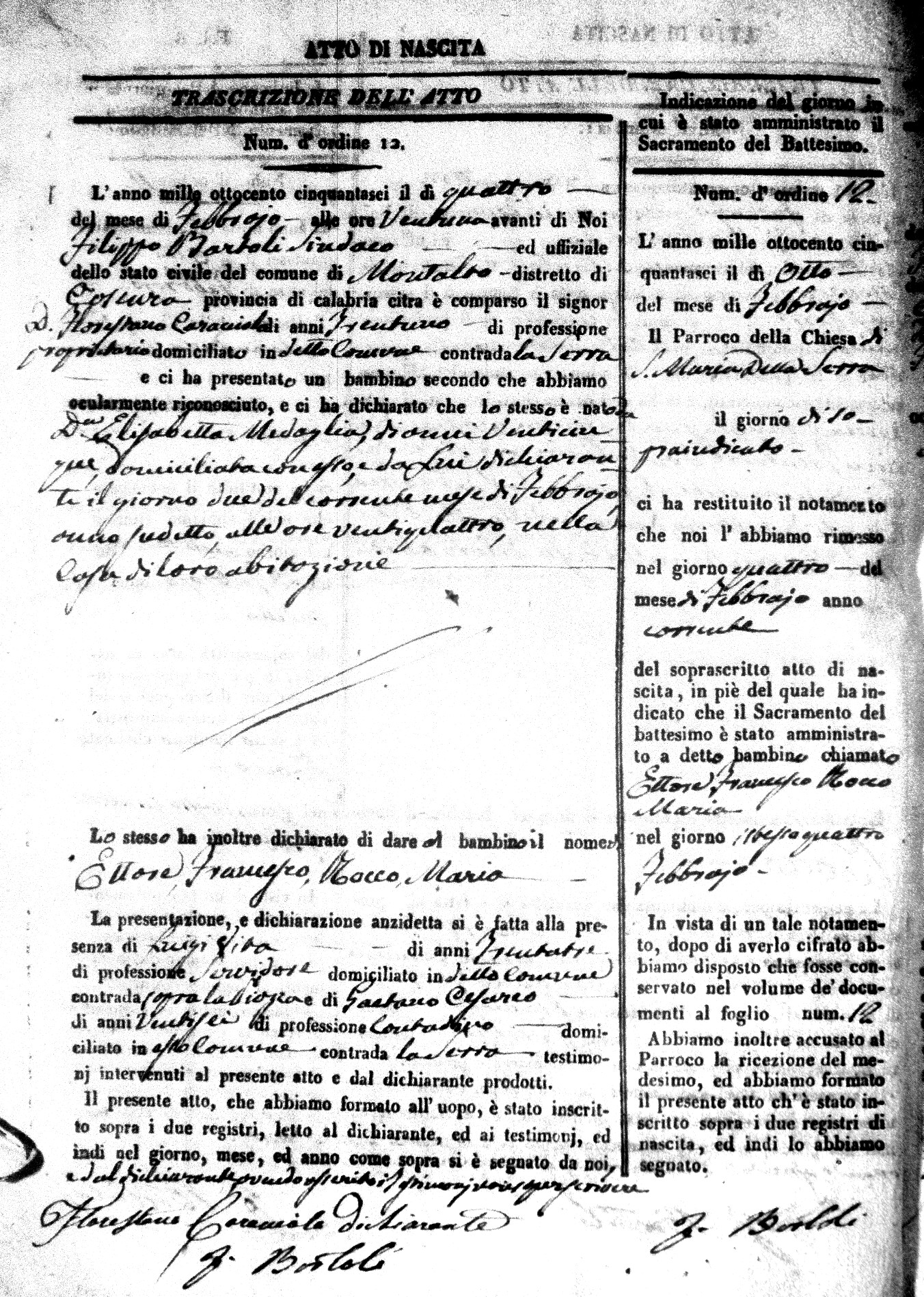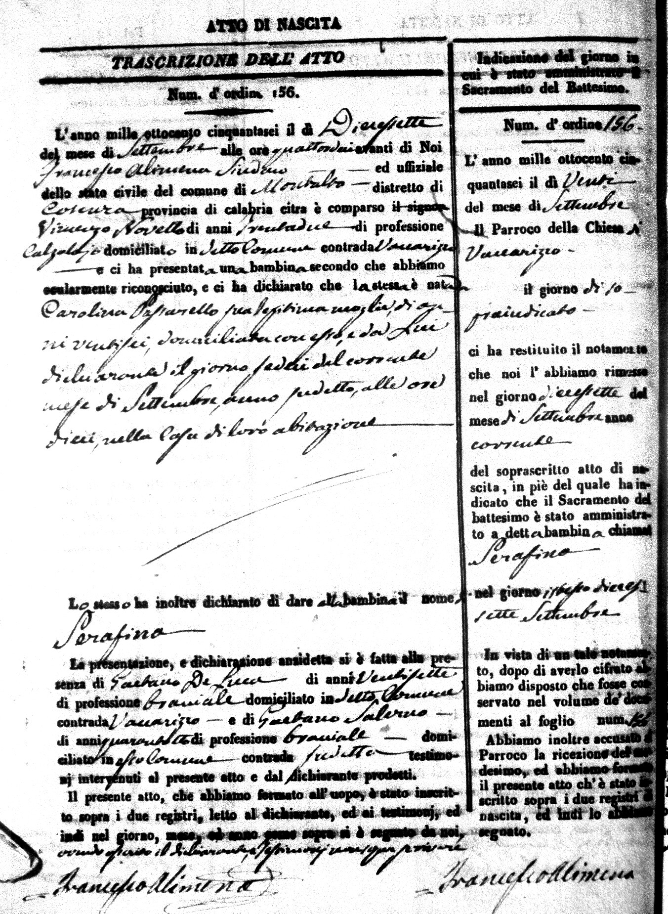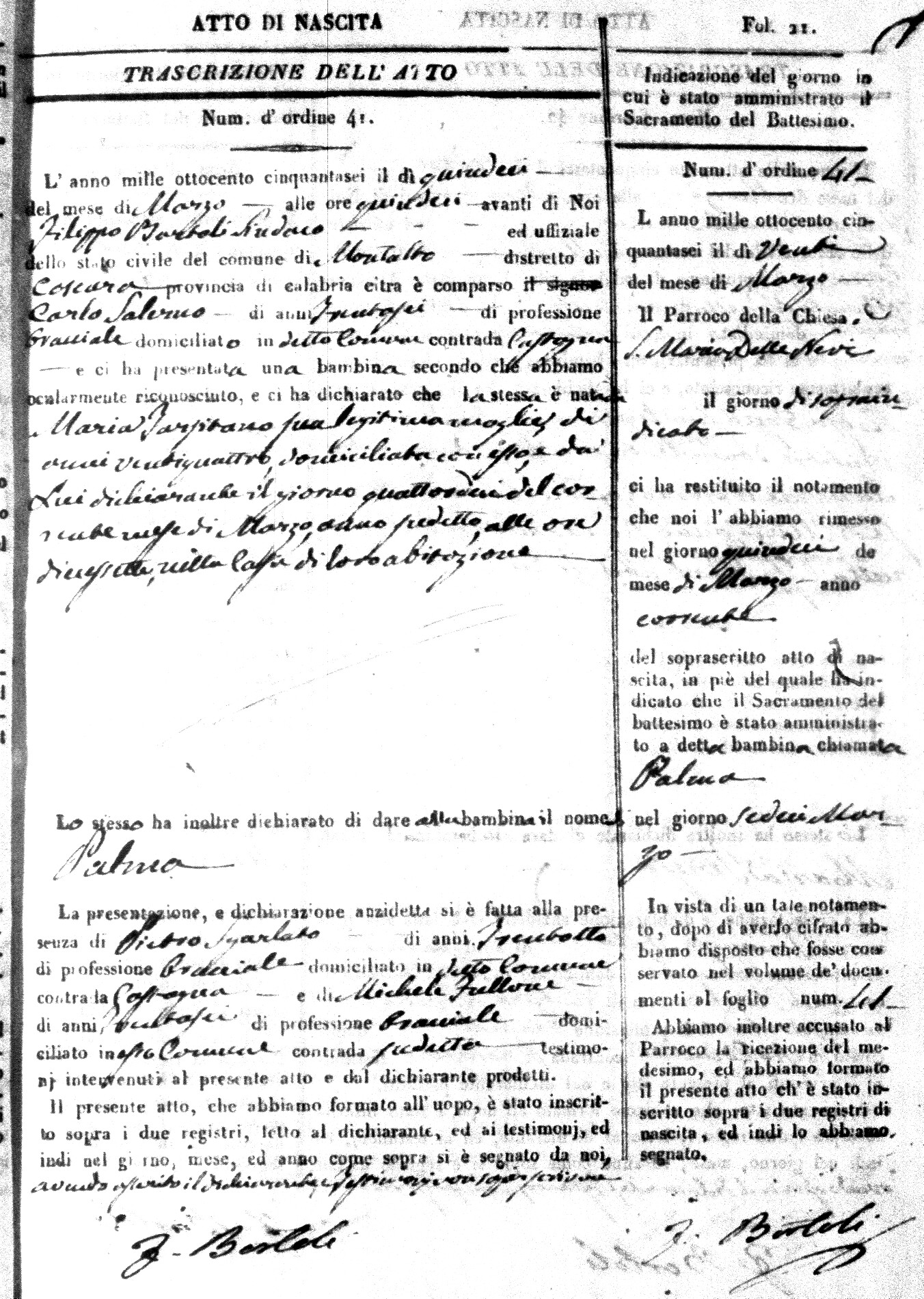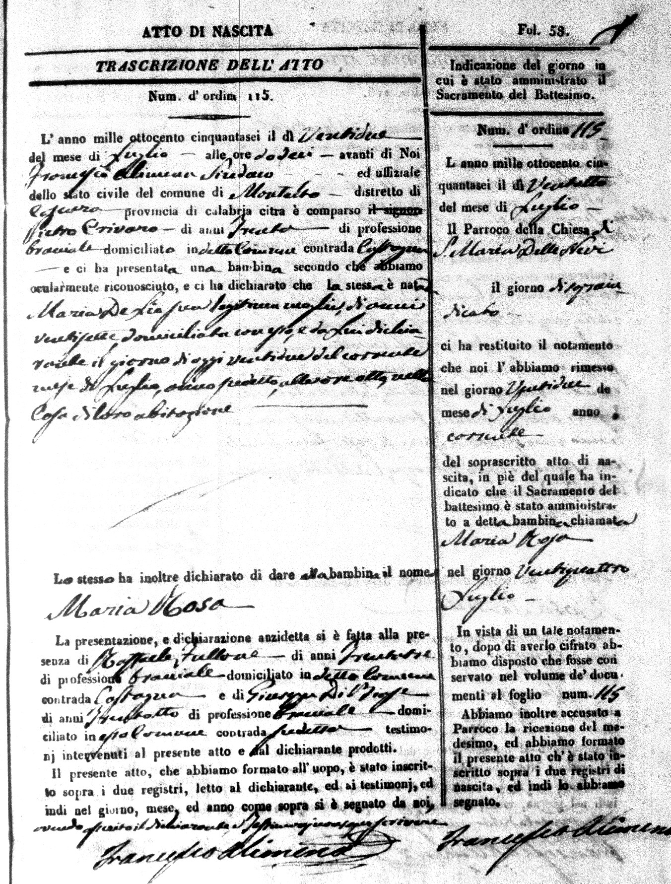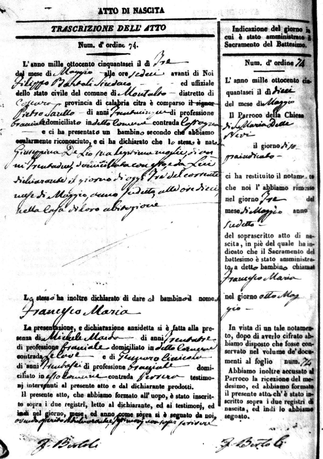 Here are the extractions for the birth acts in 1856 for Montalto Uffugo. Each extraction has a link to a copy of the original document on the baby's surname.