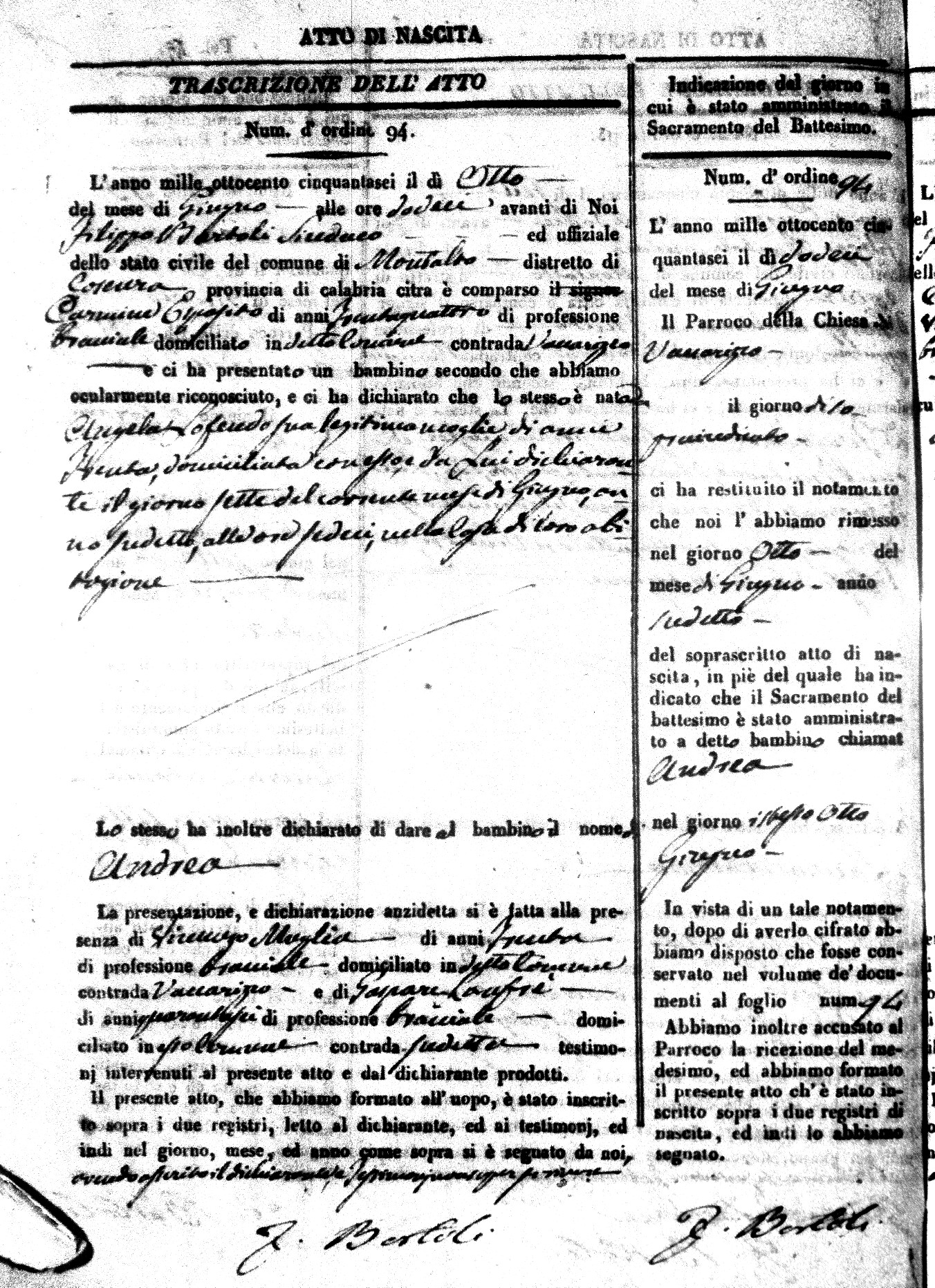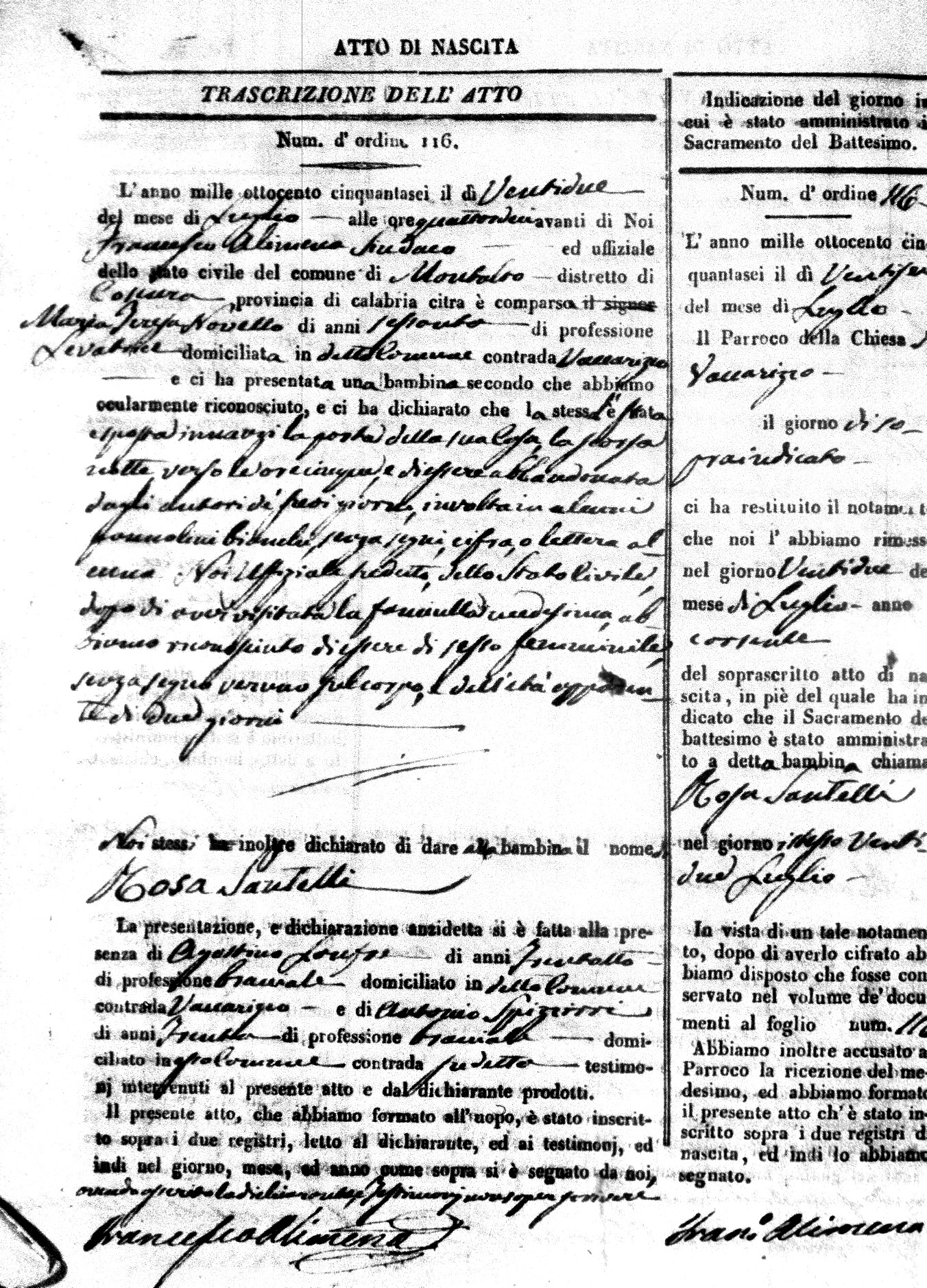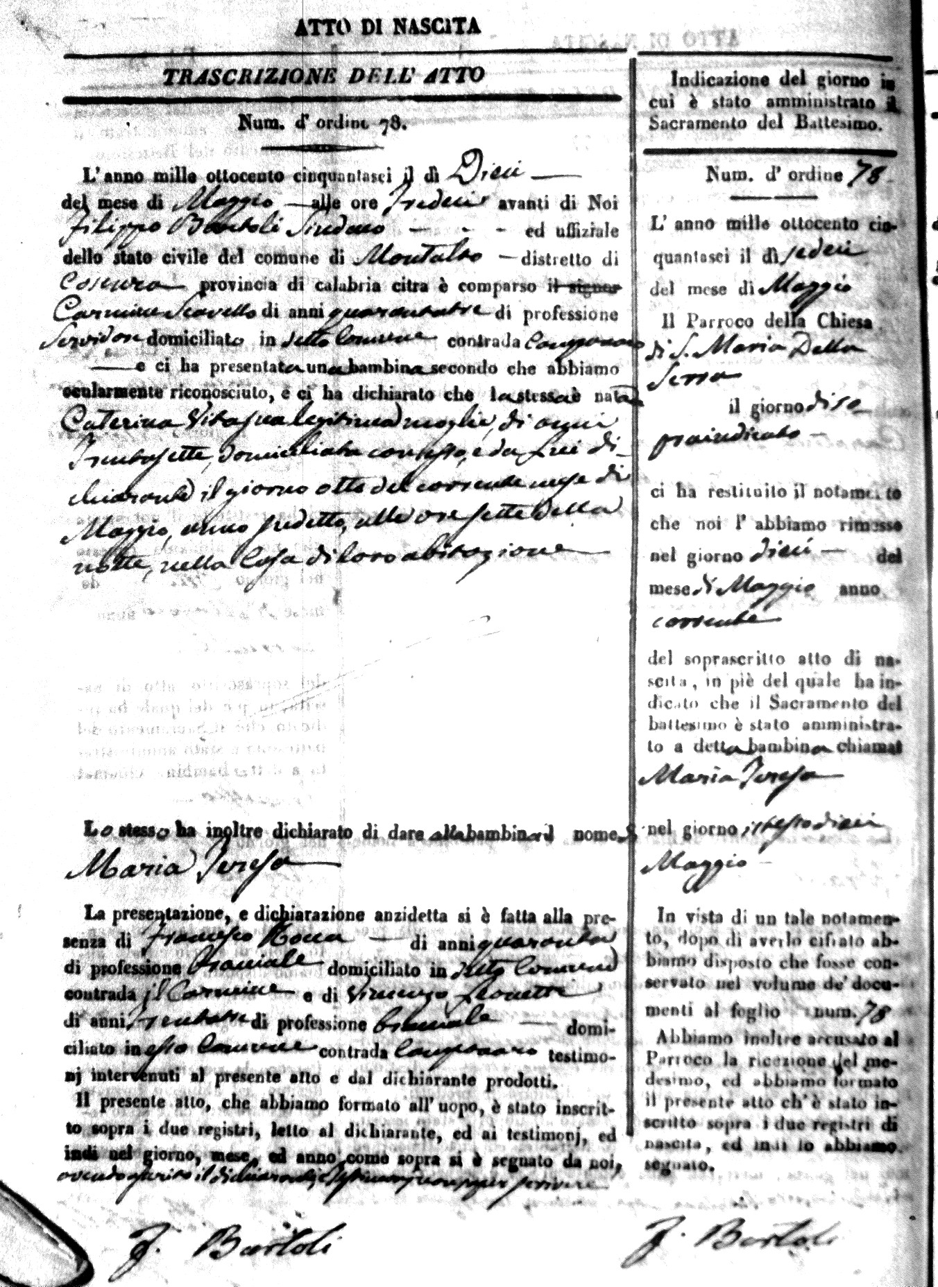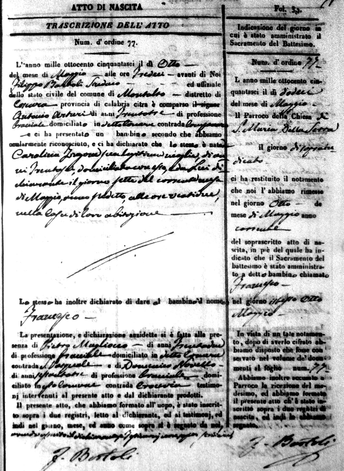 Here are the extractions for the birth acts in 1856 for Montalto Uffugo. Each extraction has a link to a copy of the original document on the baby's surname.