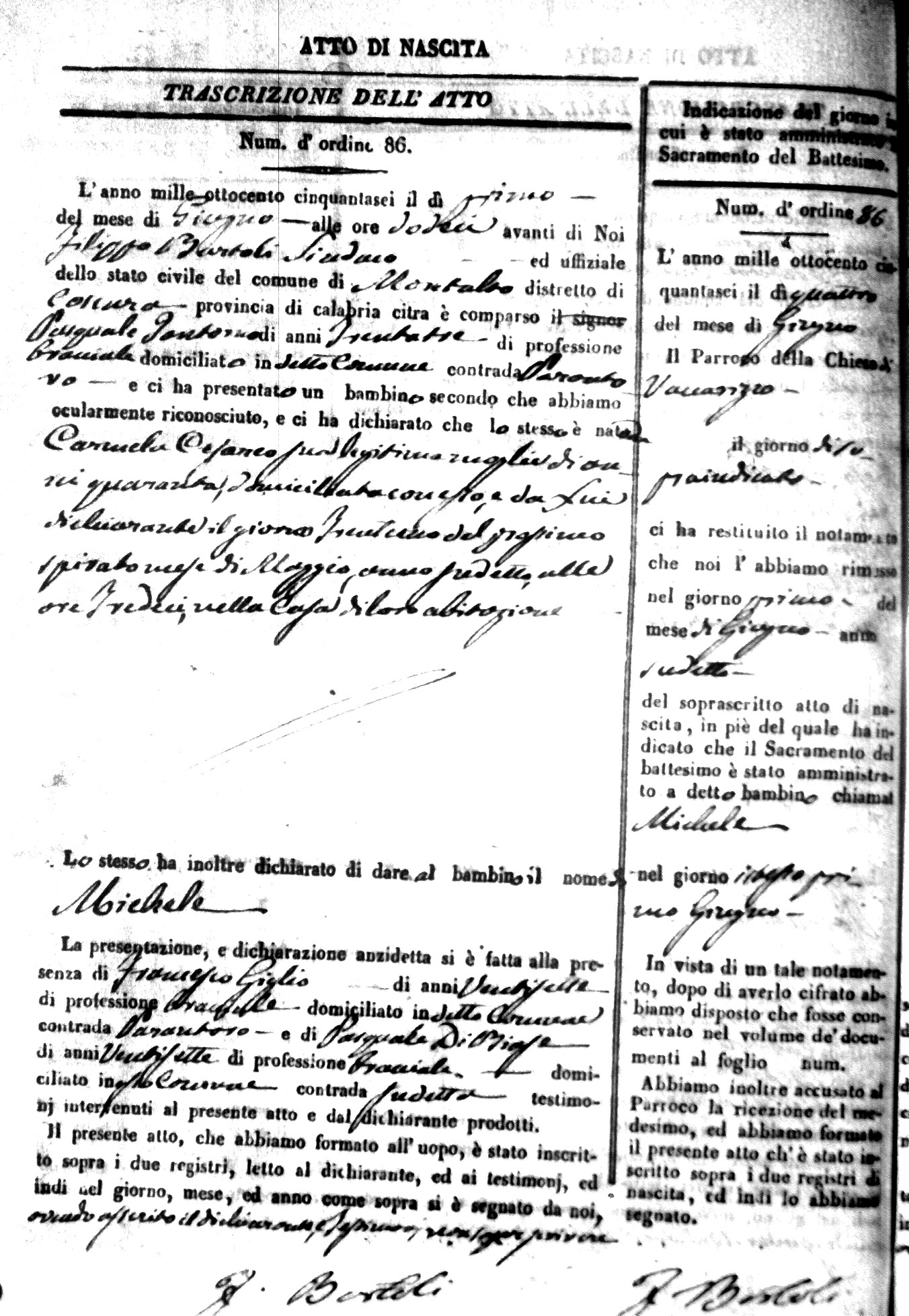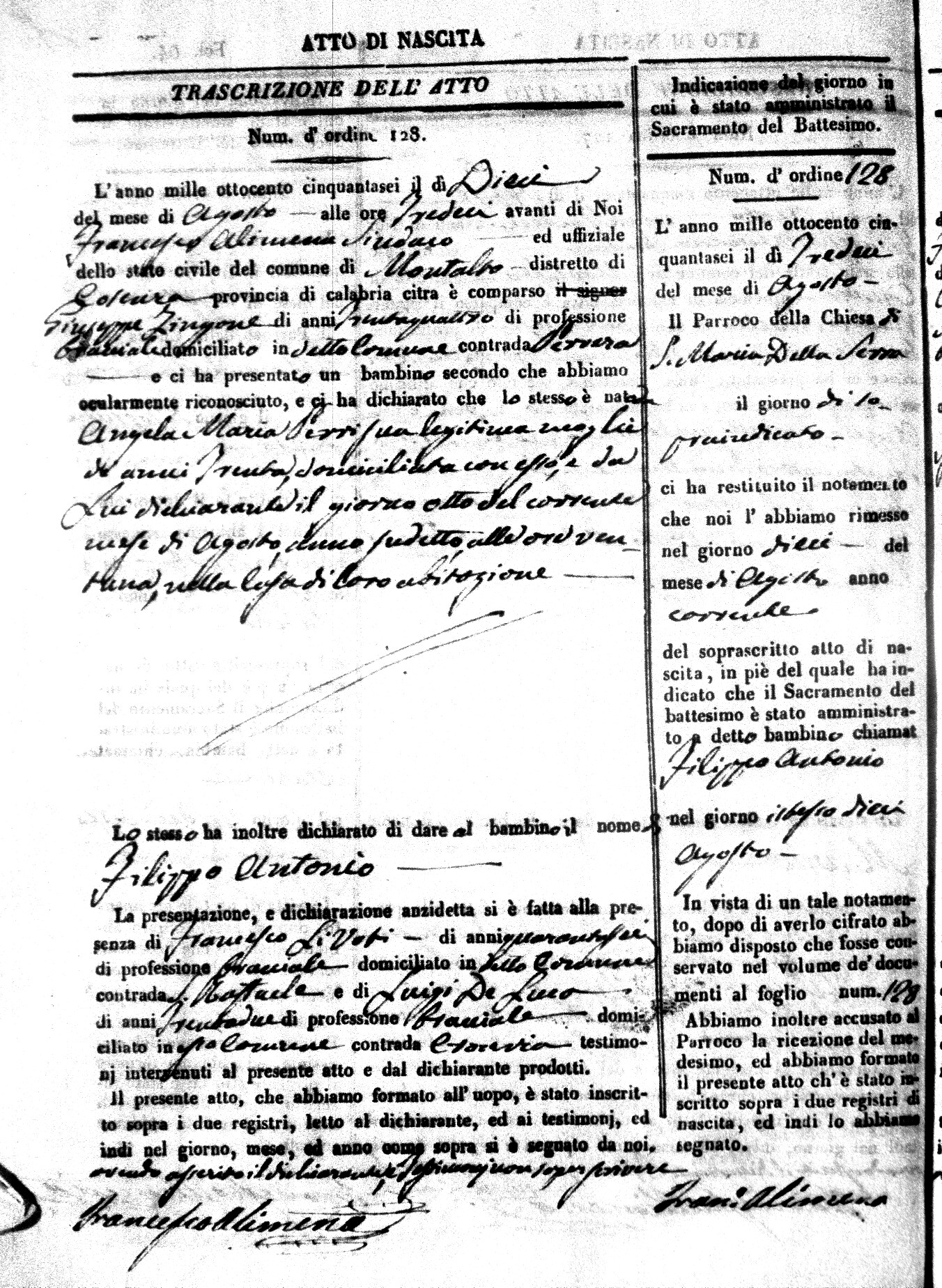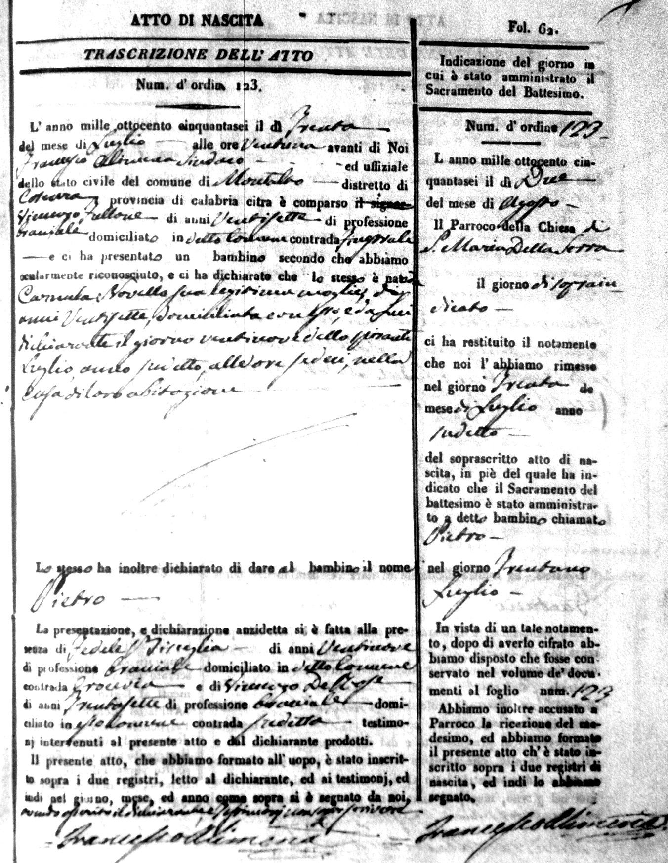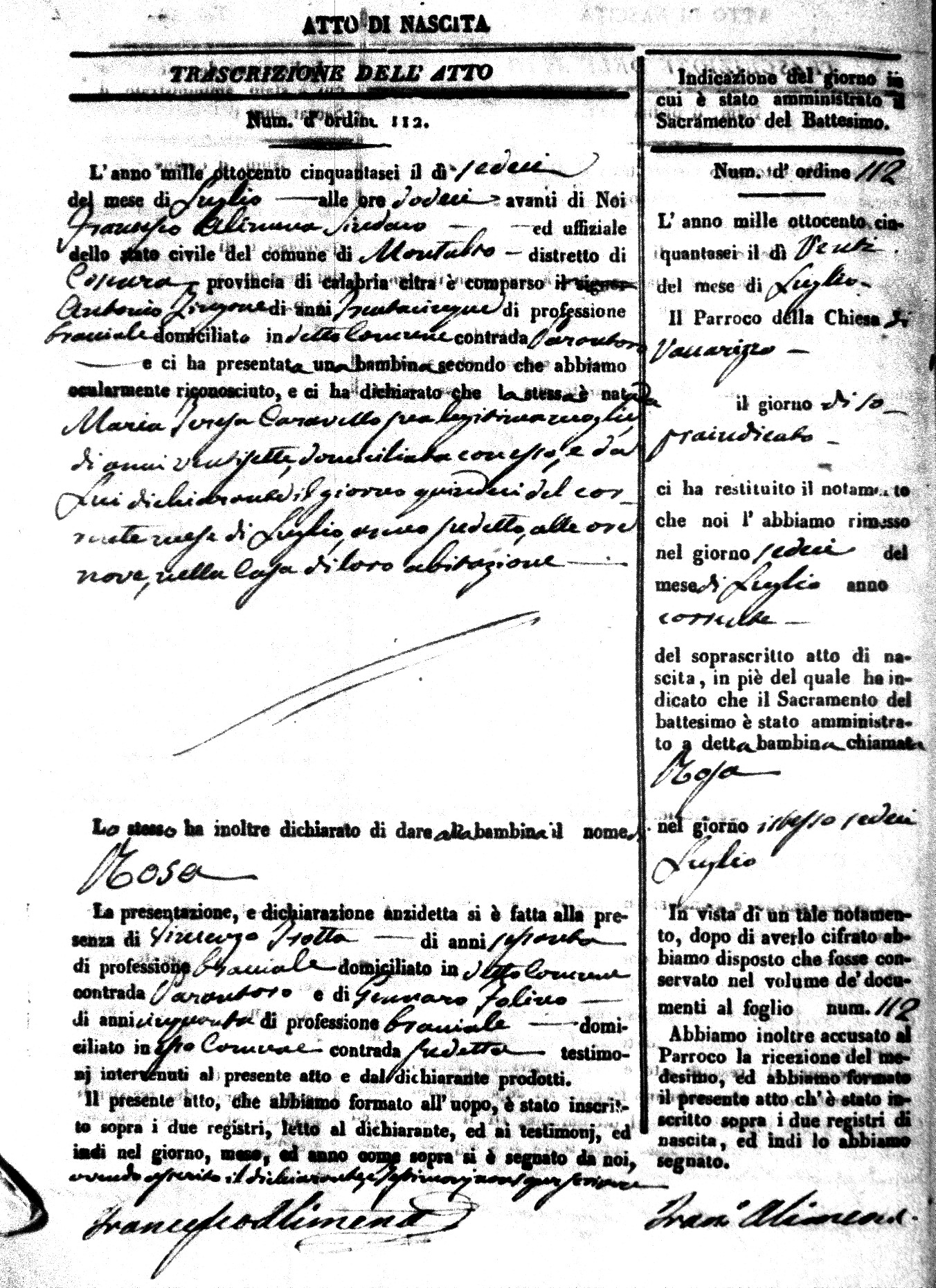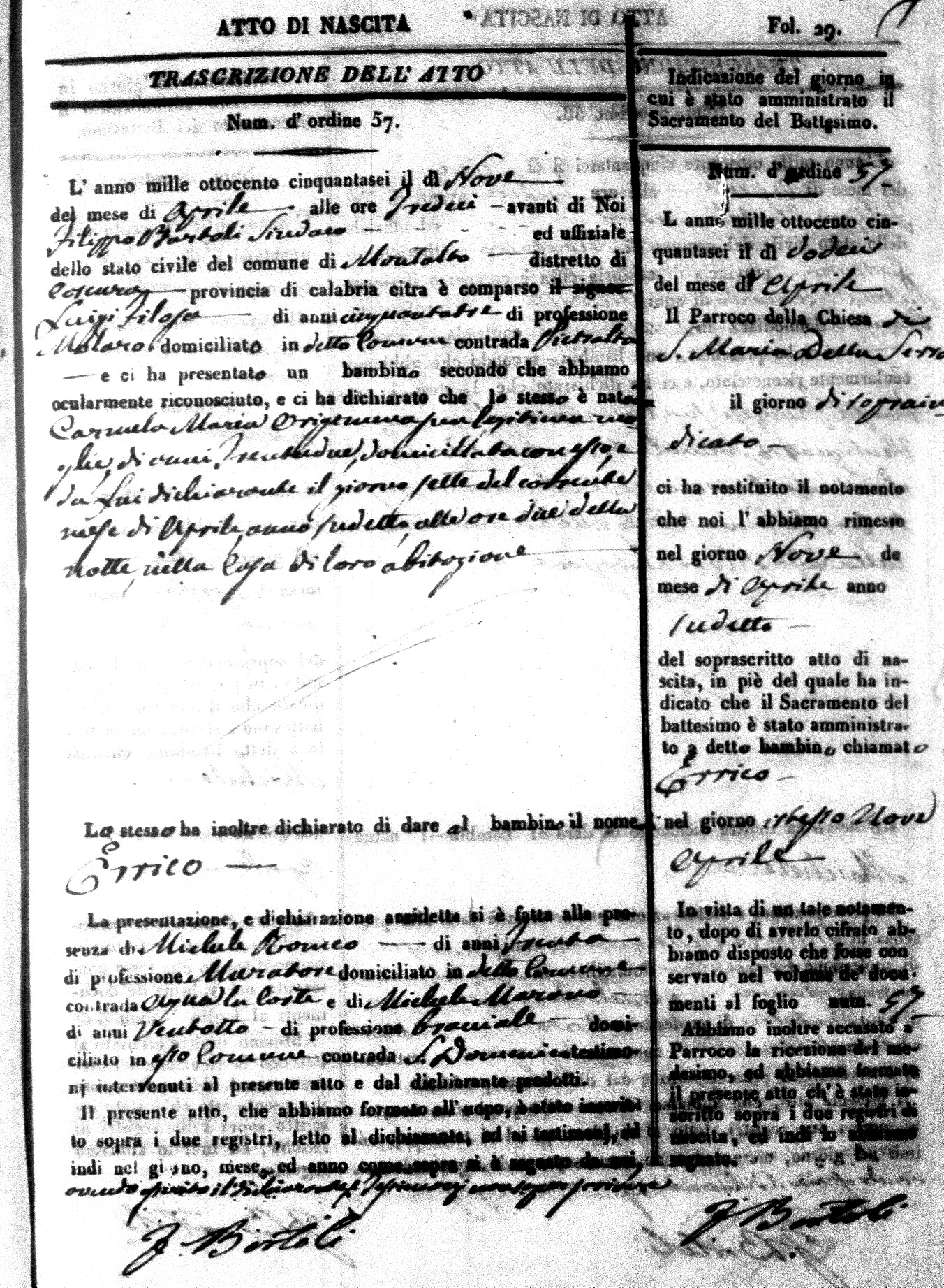Here are the extractions for the birth acts in 1856 for Montalto Uffugo. Each extraction has a link to a copy of the original document on the baby's surname.