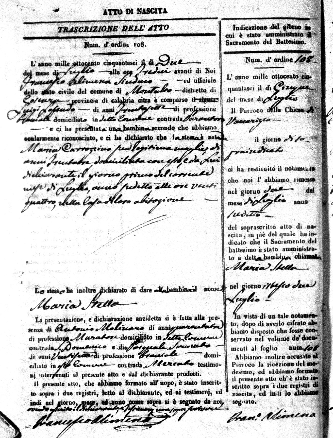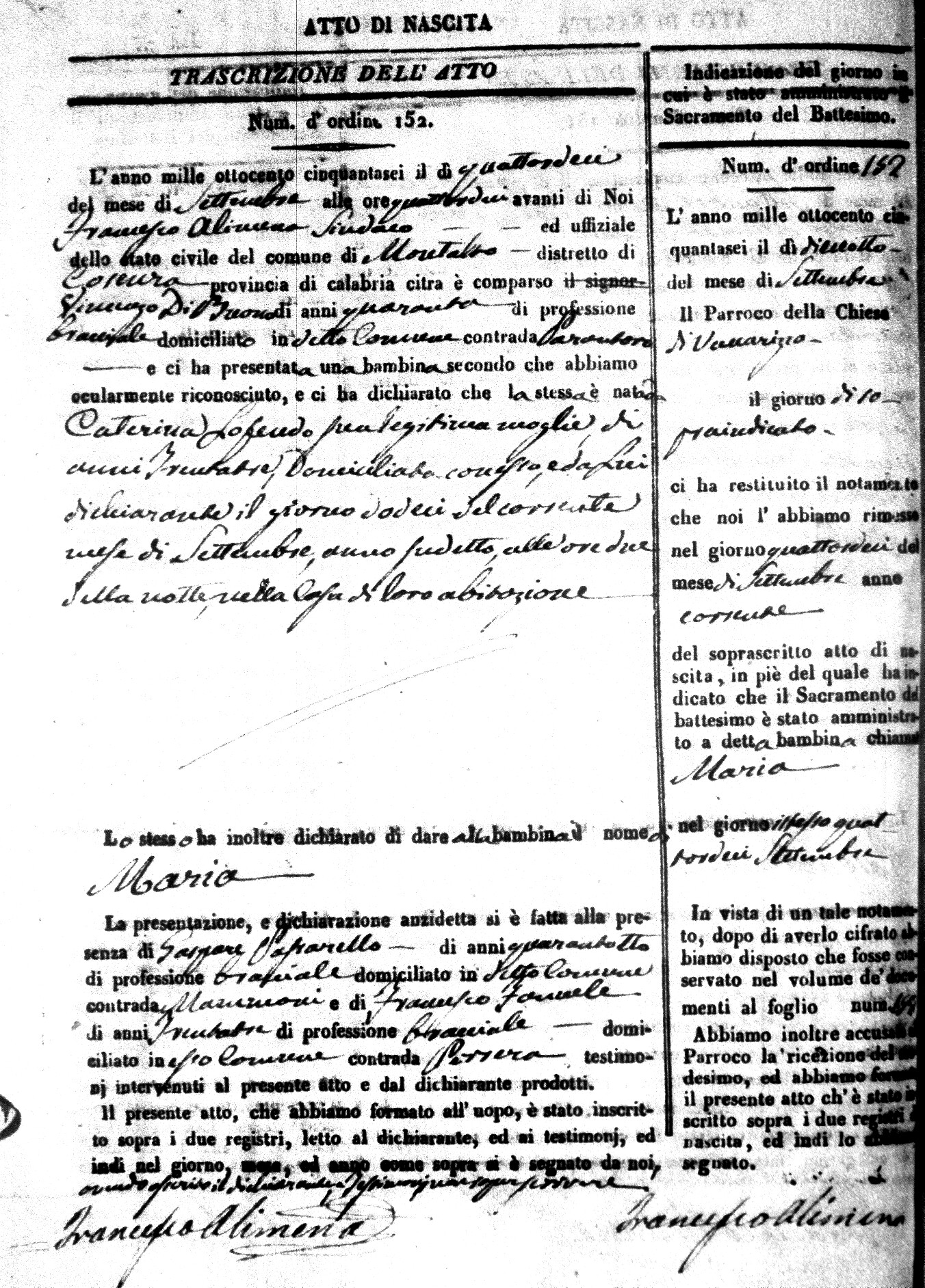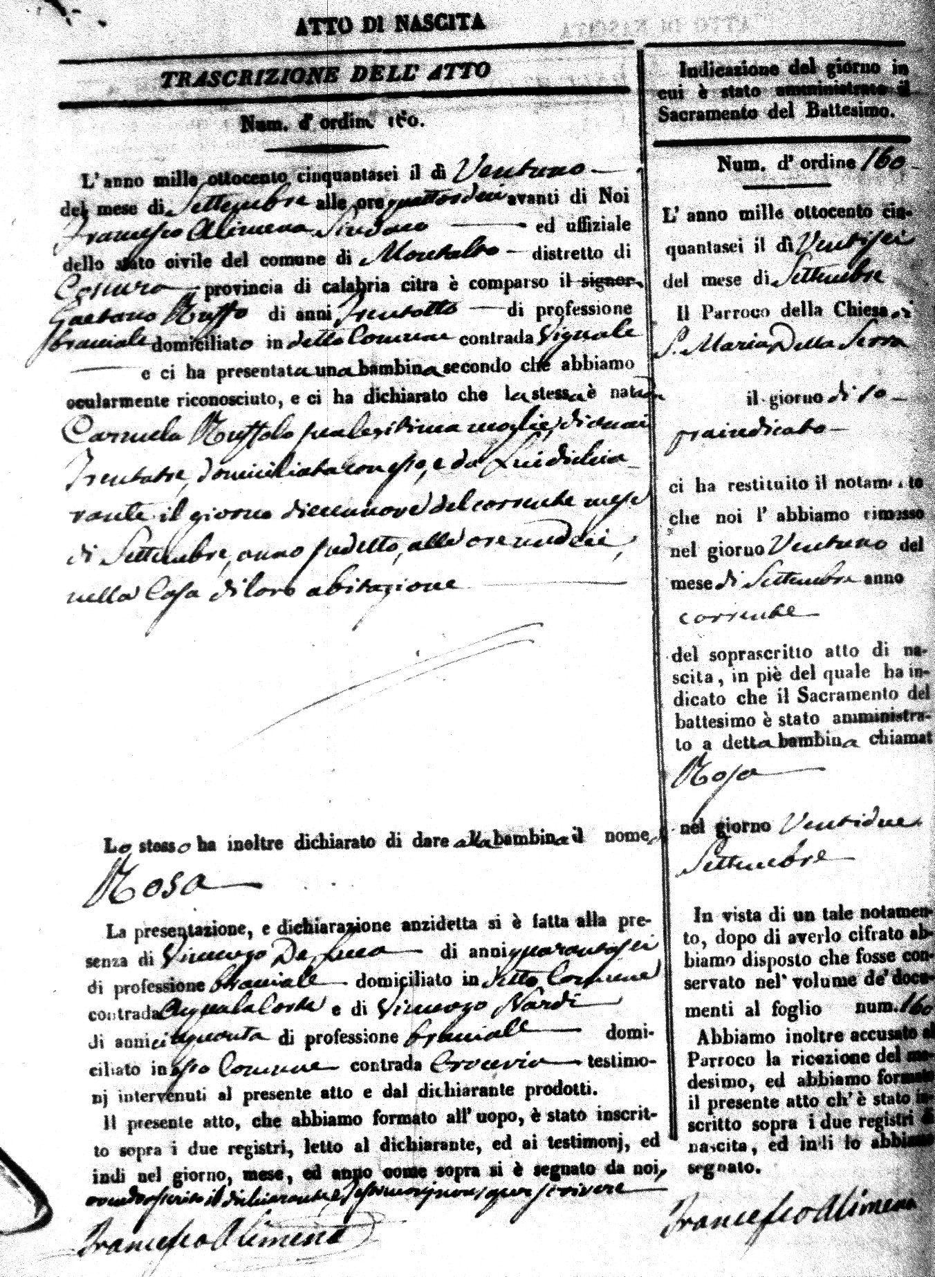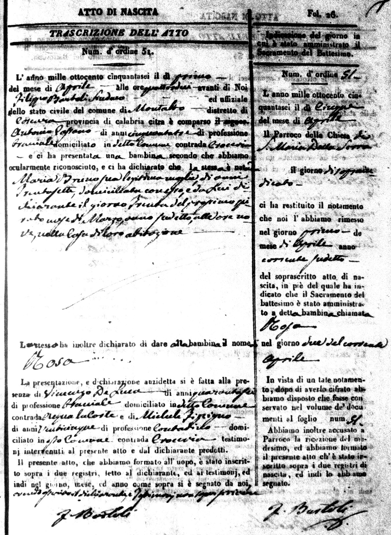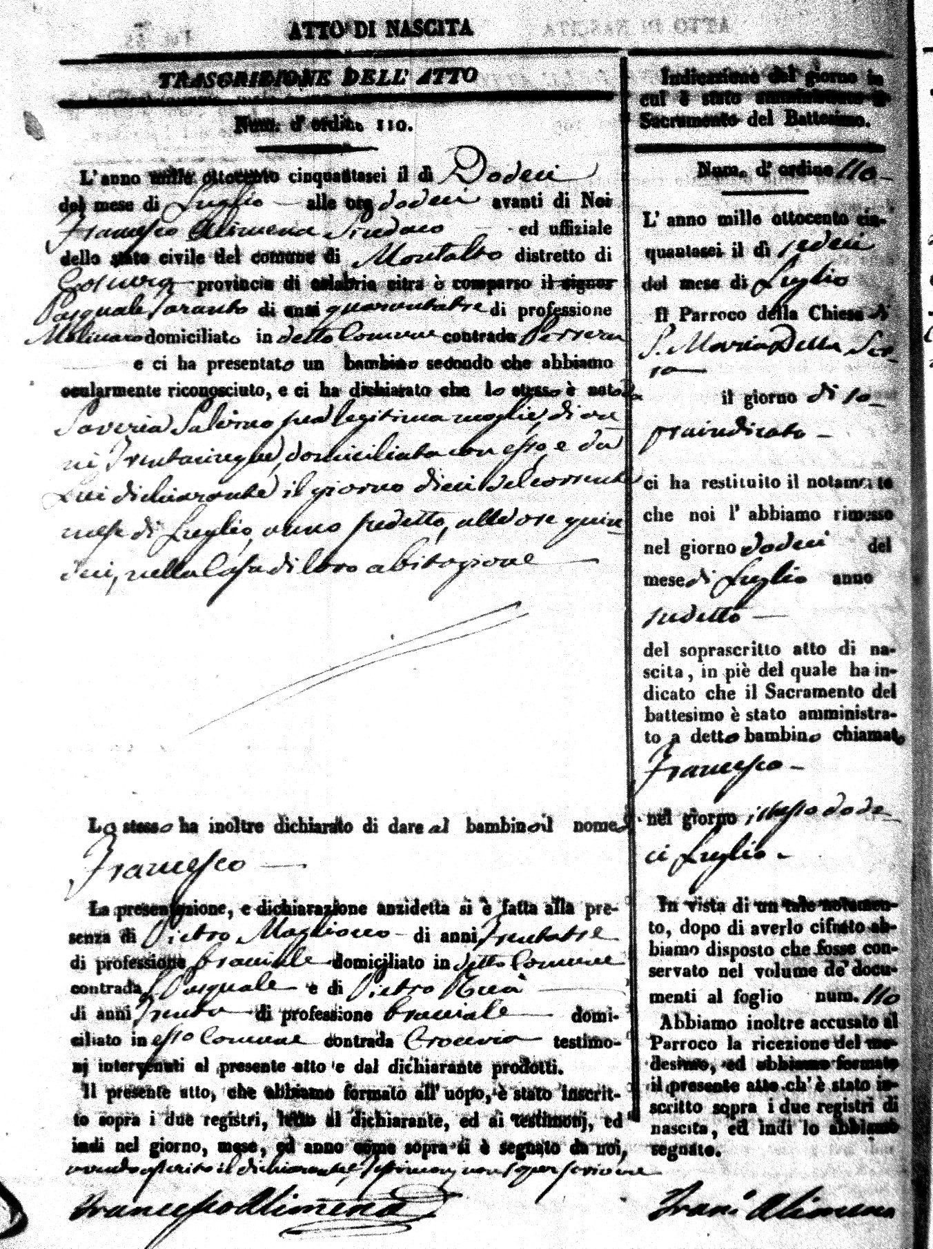 Here are the extractions for the birth acts in 1856 for Montalto Uffugo. Each extraction has a link to a copy of the original document on the baby's surname.