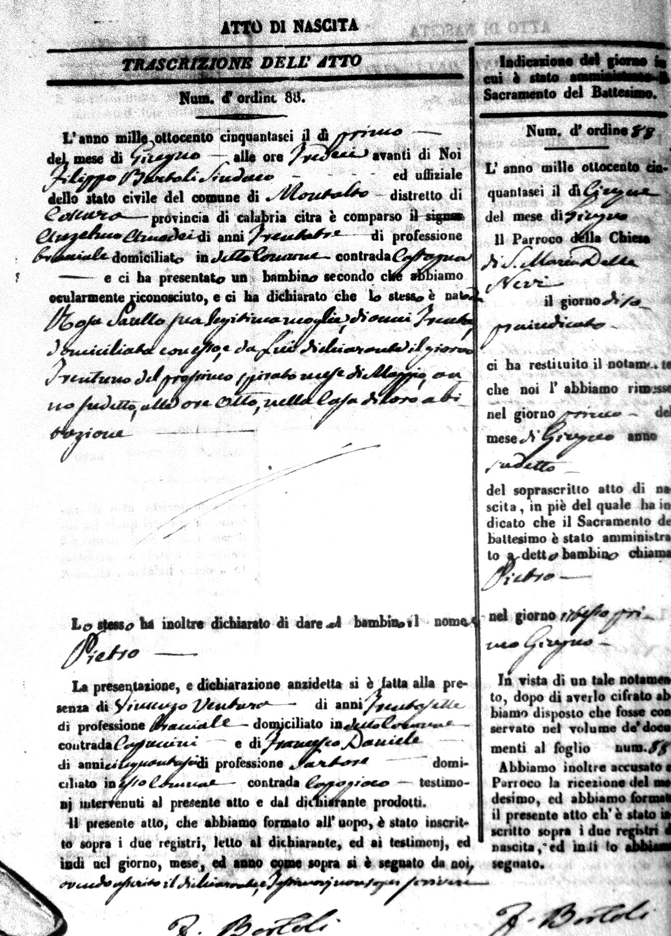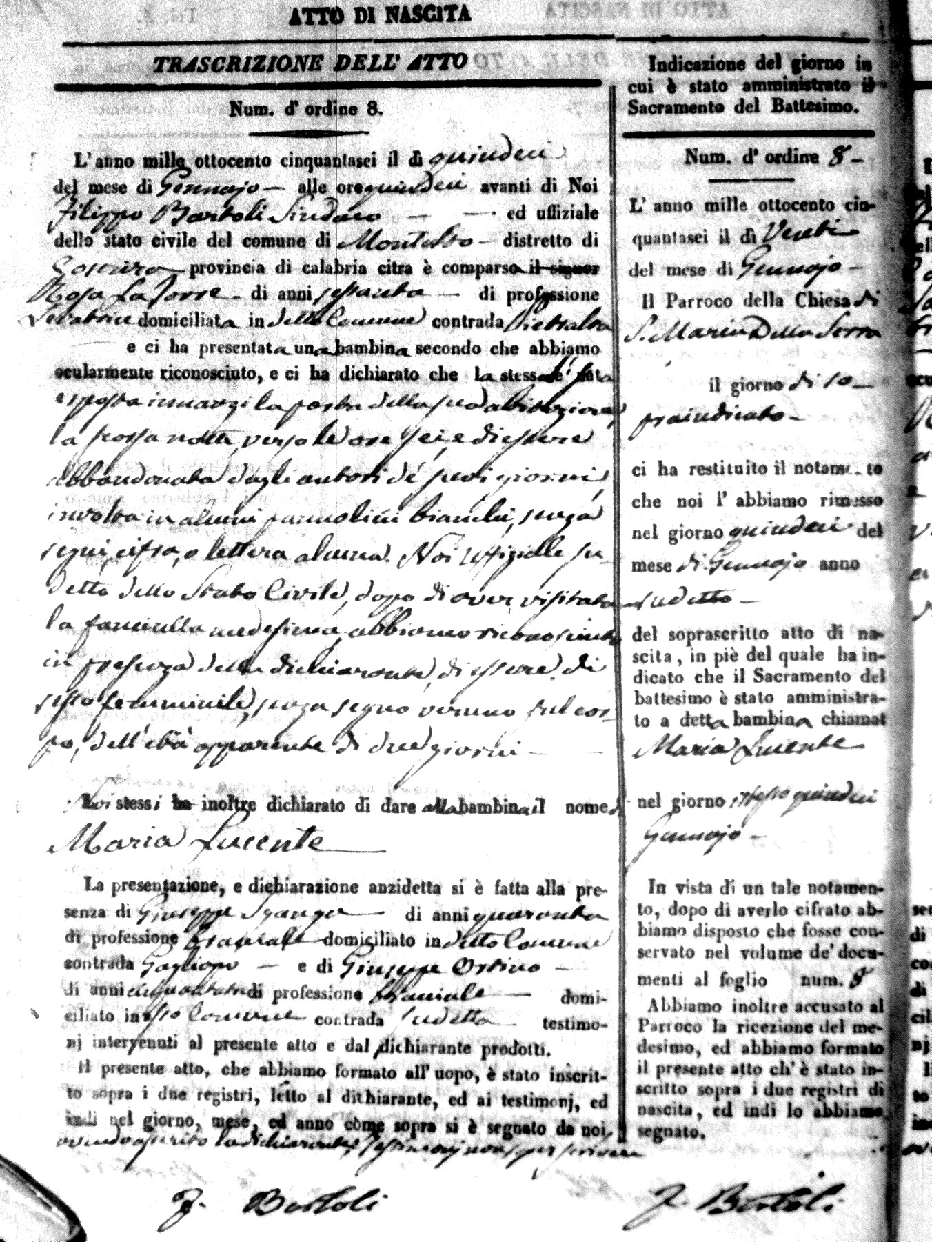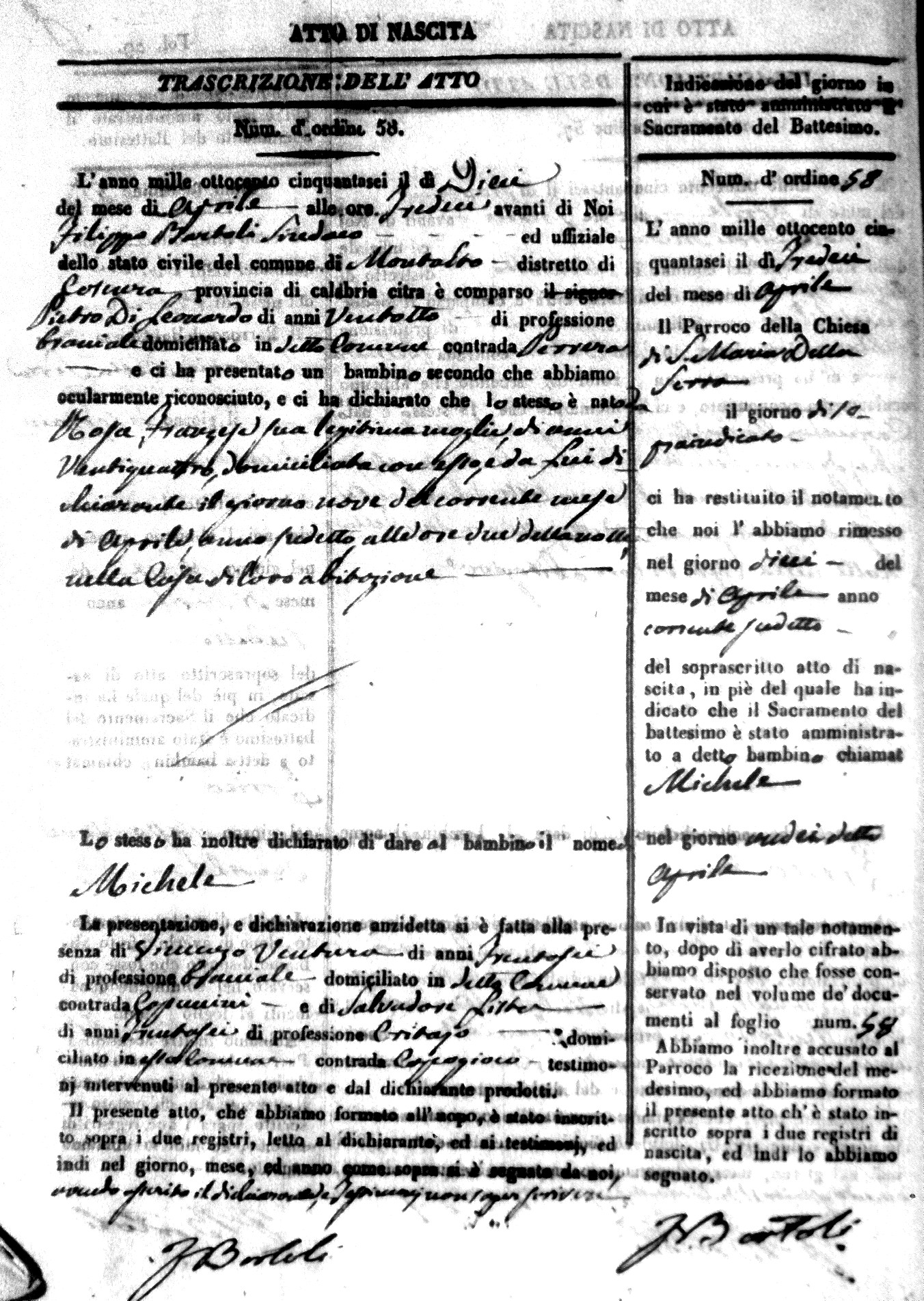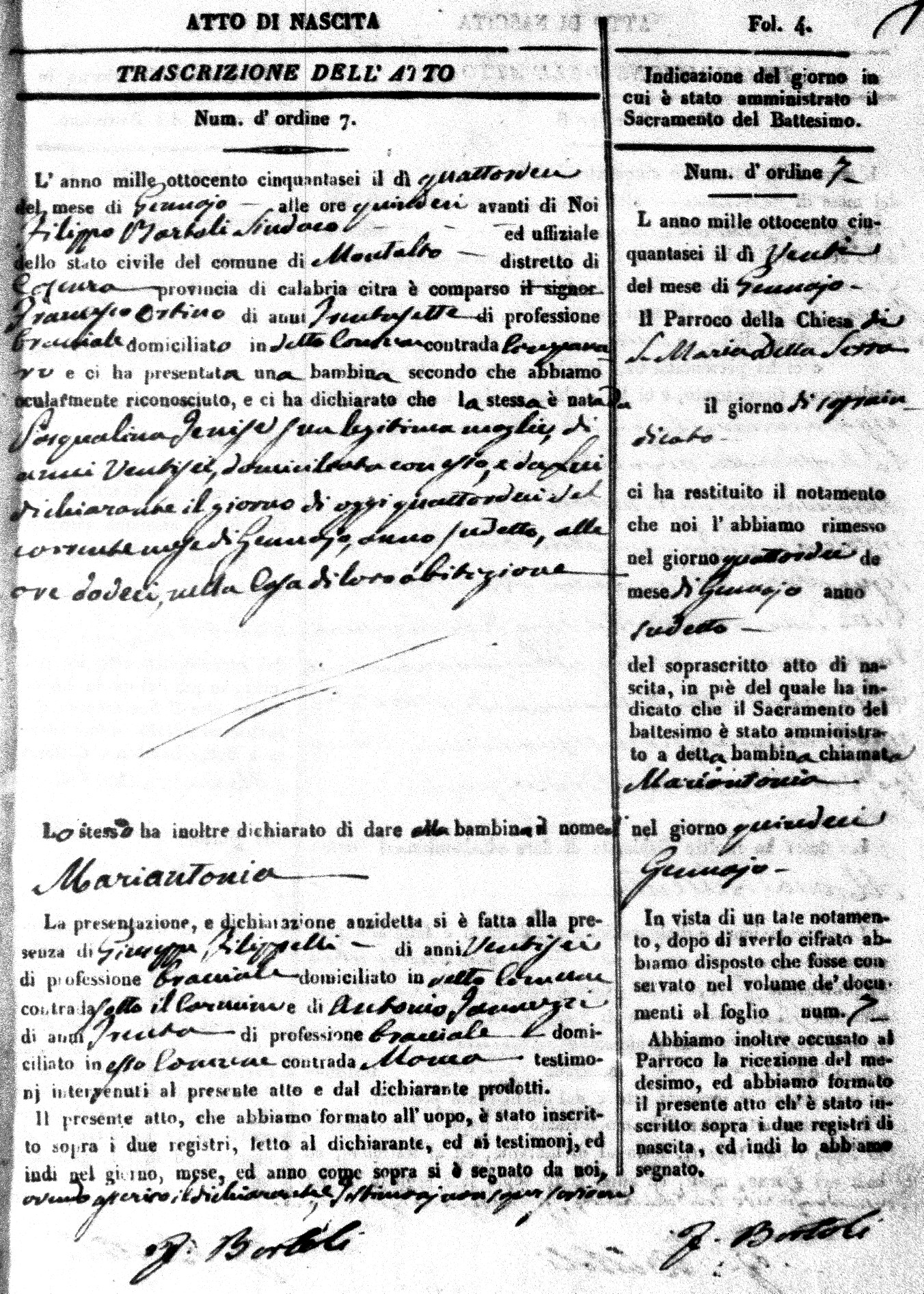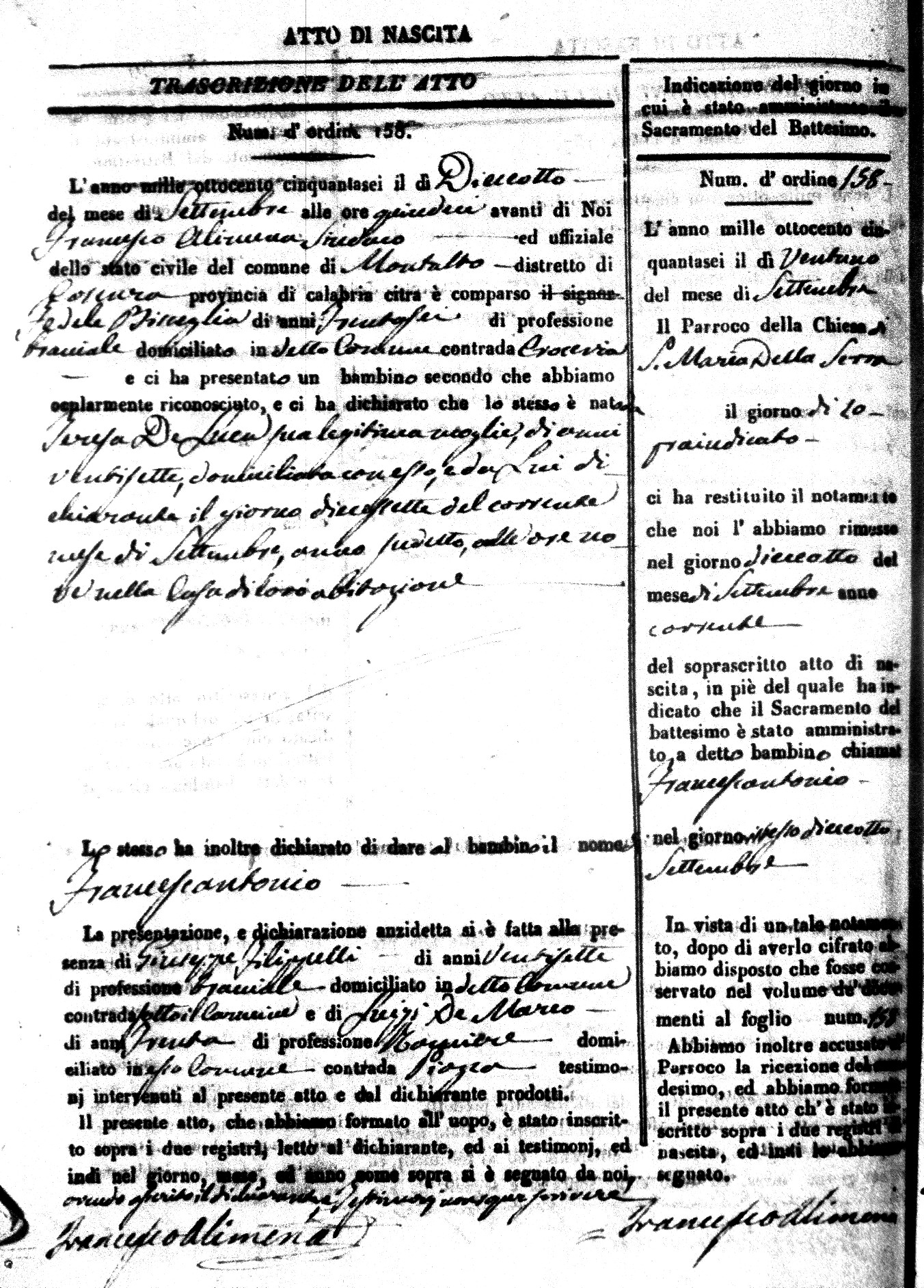 Here are the extractions for the birth acts in 1856 for Montalto Uffugo. Each extraction has a link to a copy of the original document on the baby's surname.