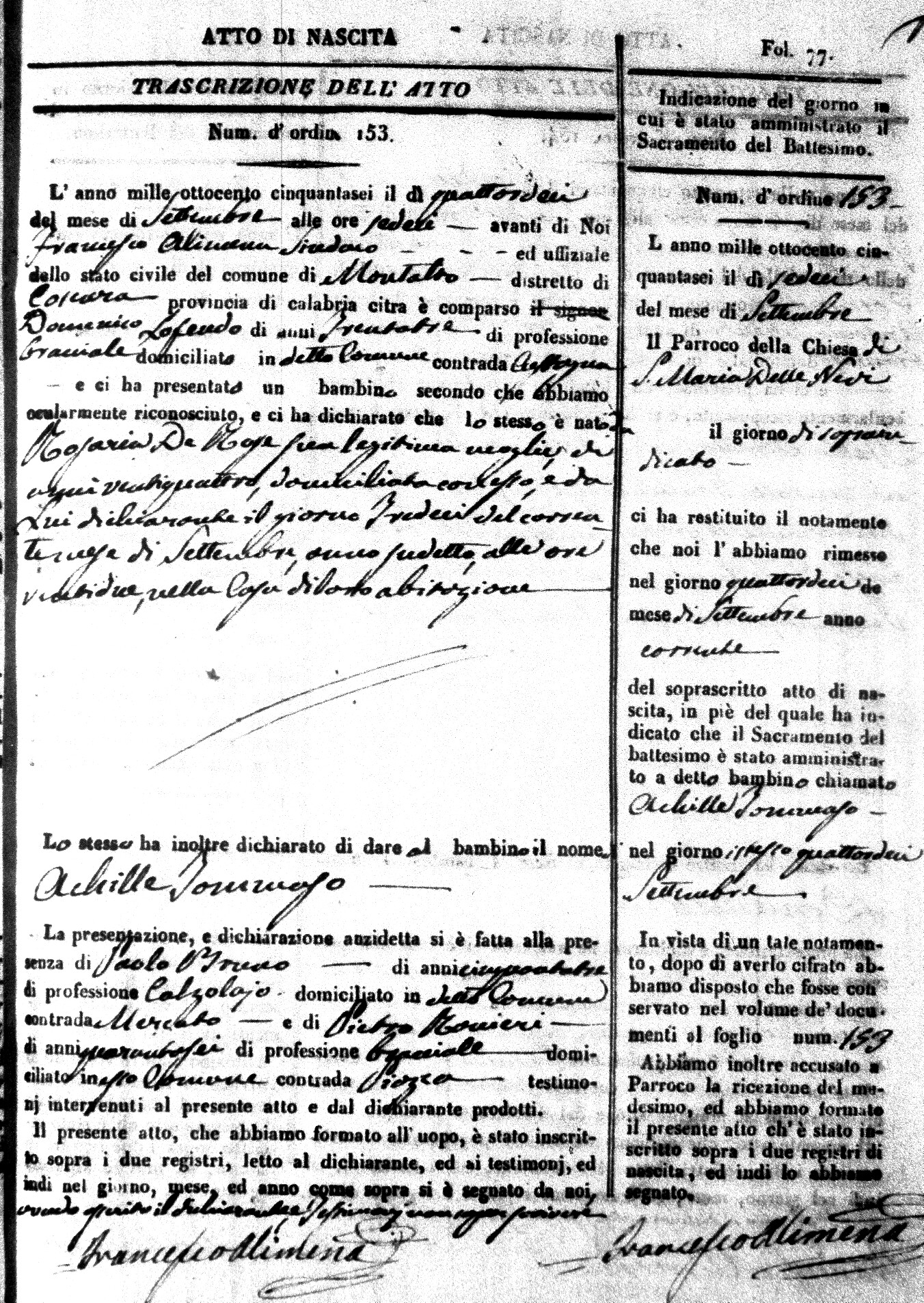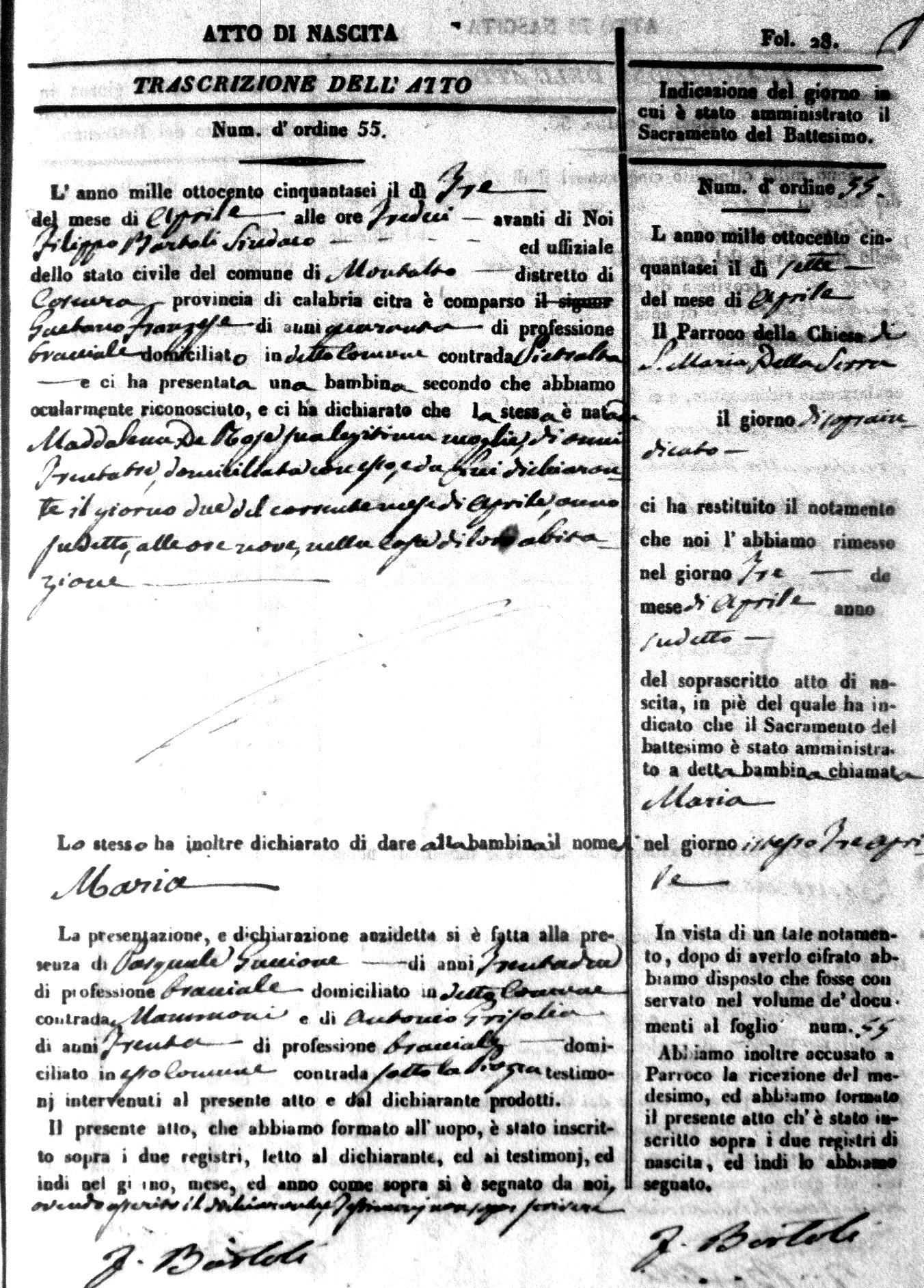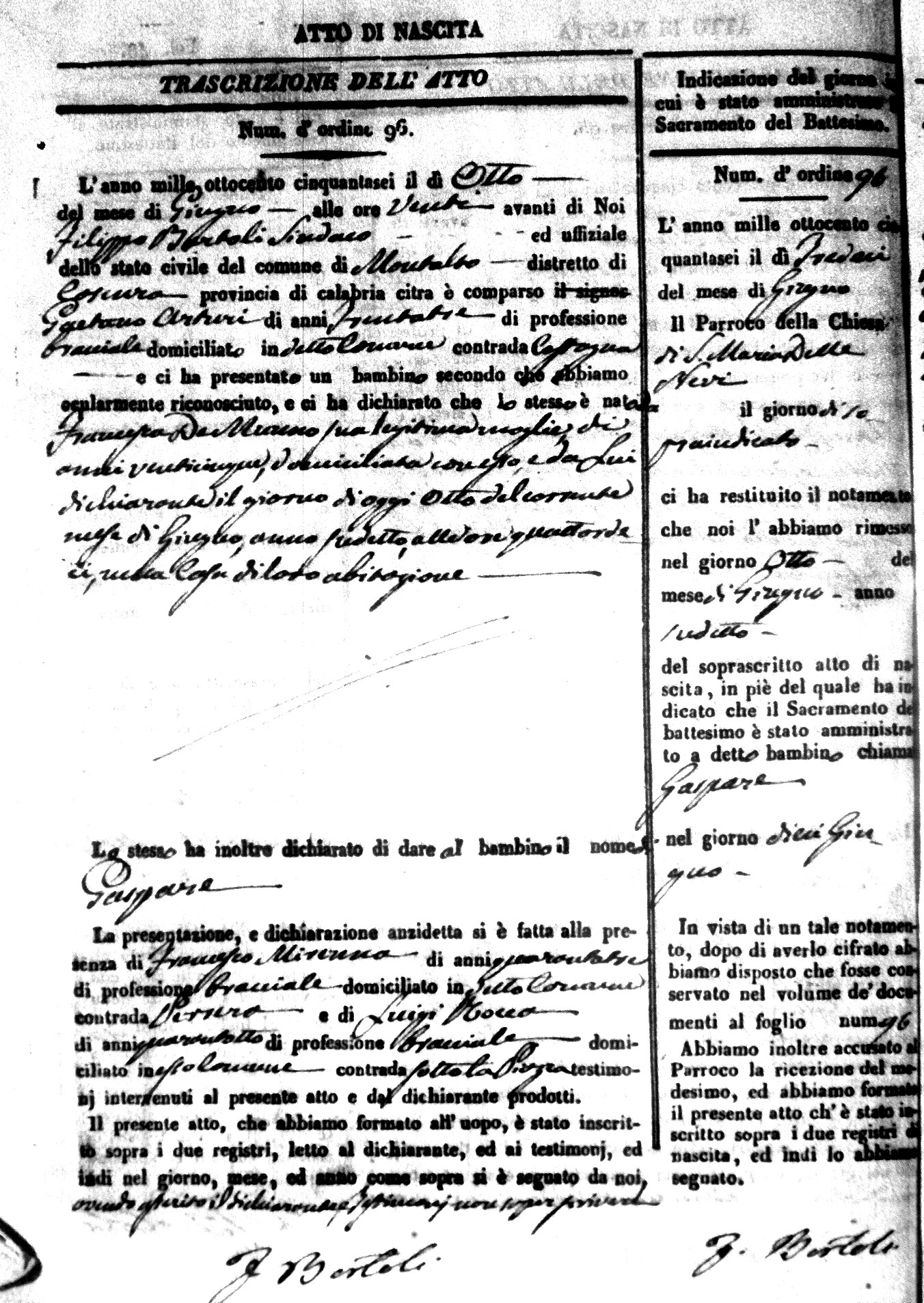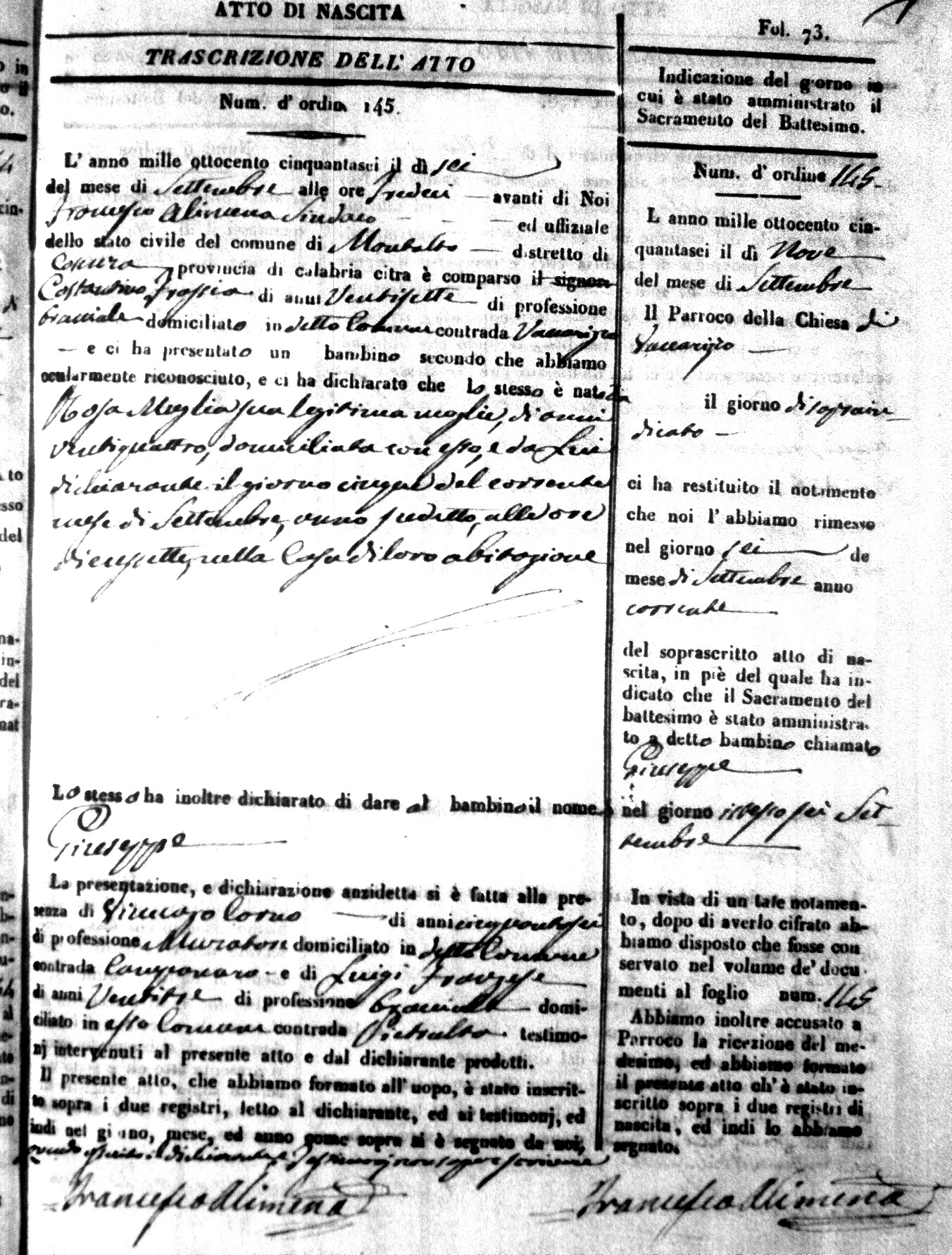 Here are the extractions for the birth acts in 1856 for Montalto Uffugo. Each extraction has a link to a copy of the original document on the baby's surname.