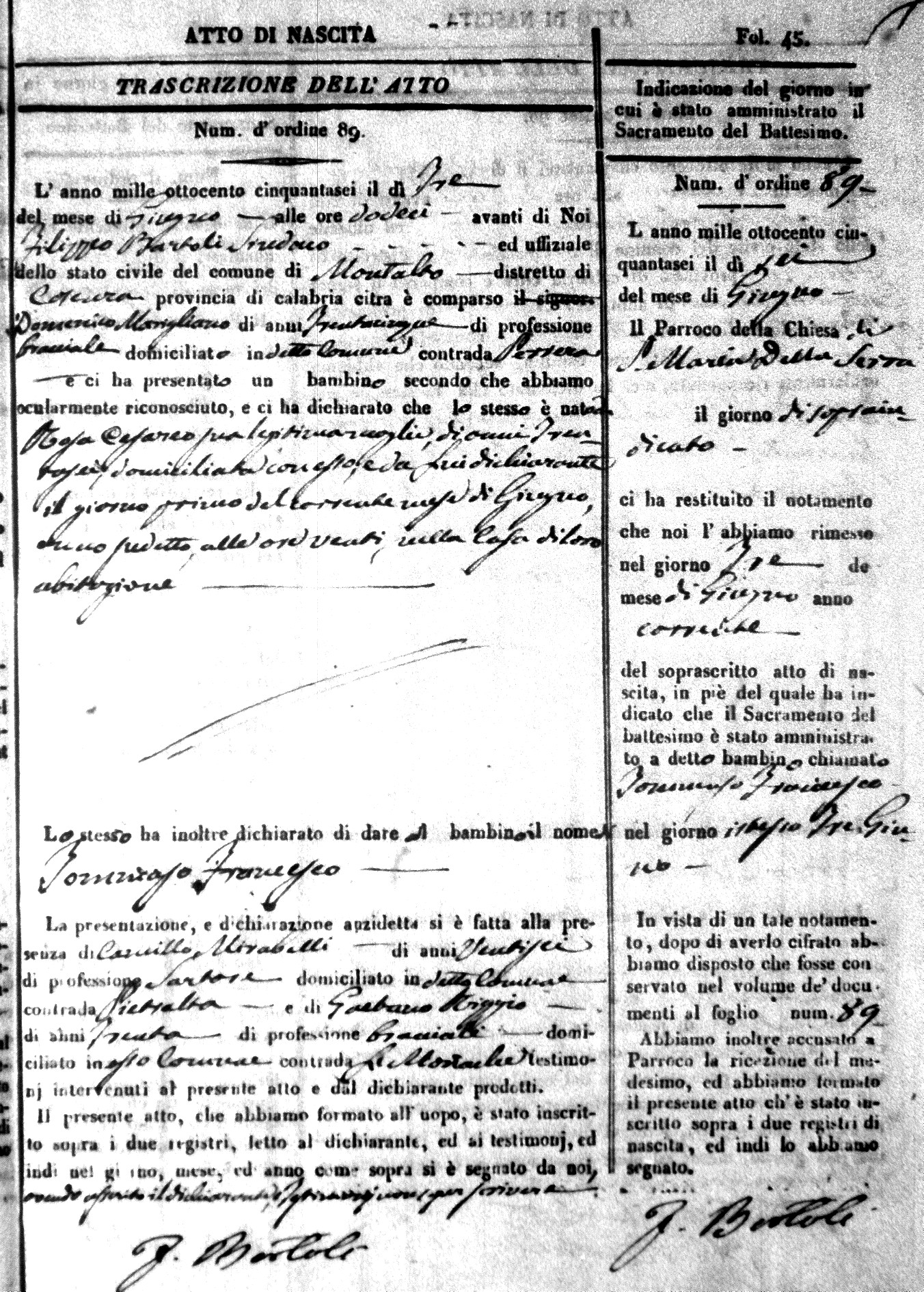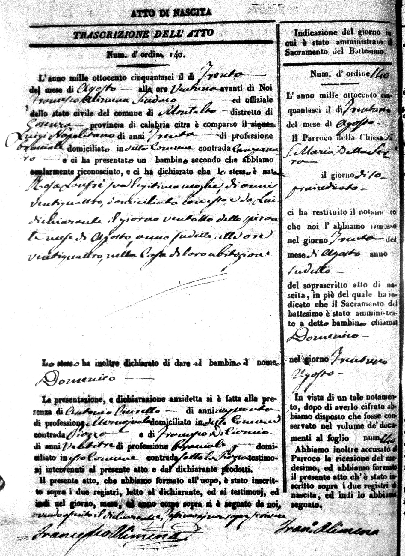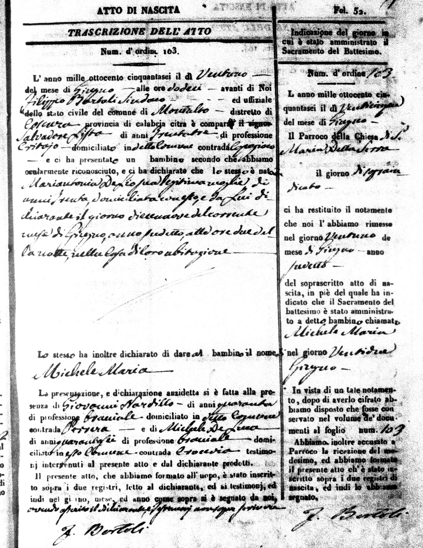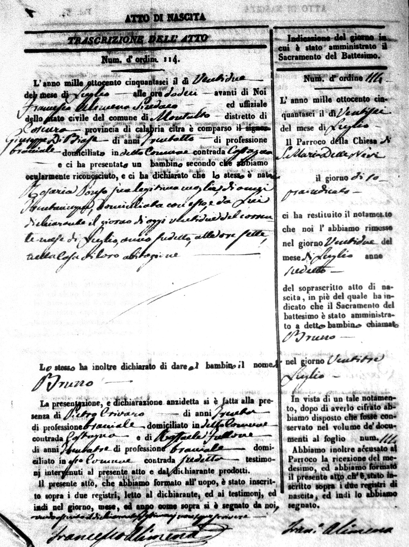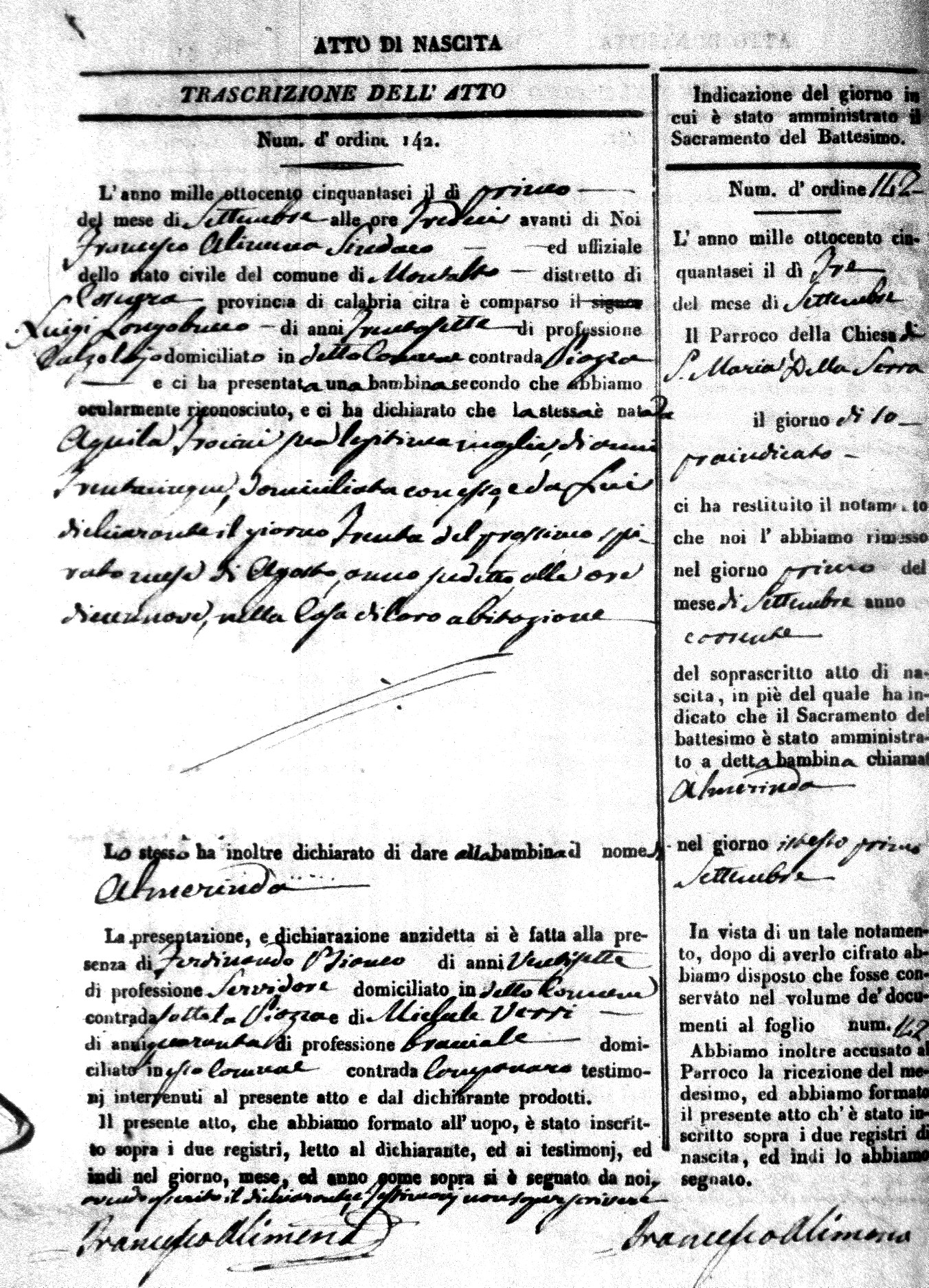 Here are the extractions for the birth acts in 1856 for Montalto Uffugo. Each extraction has a link to a copy of the original document on the baby's surname.
