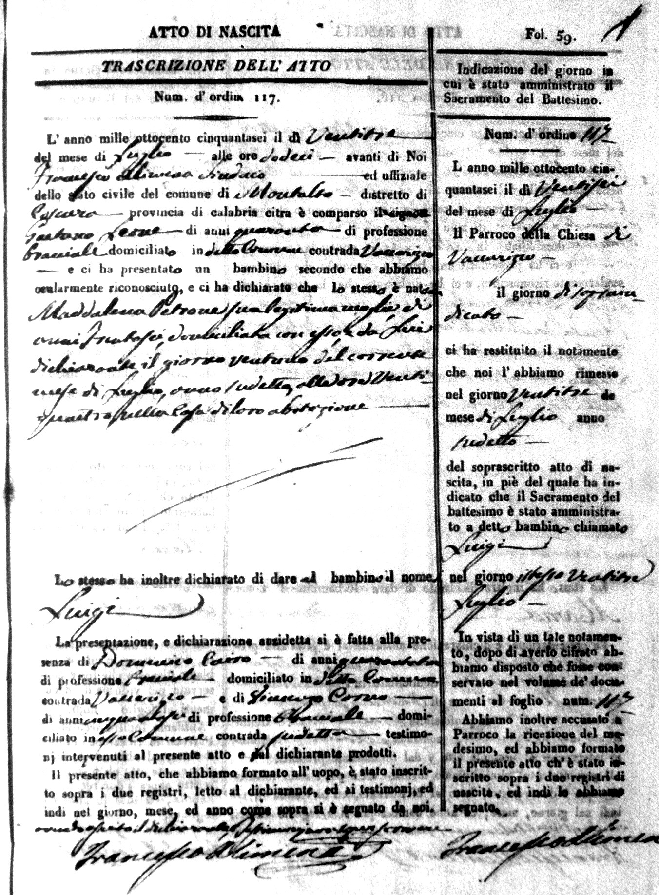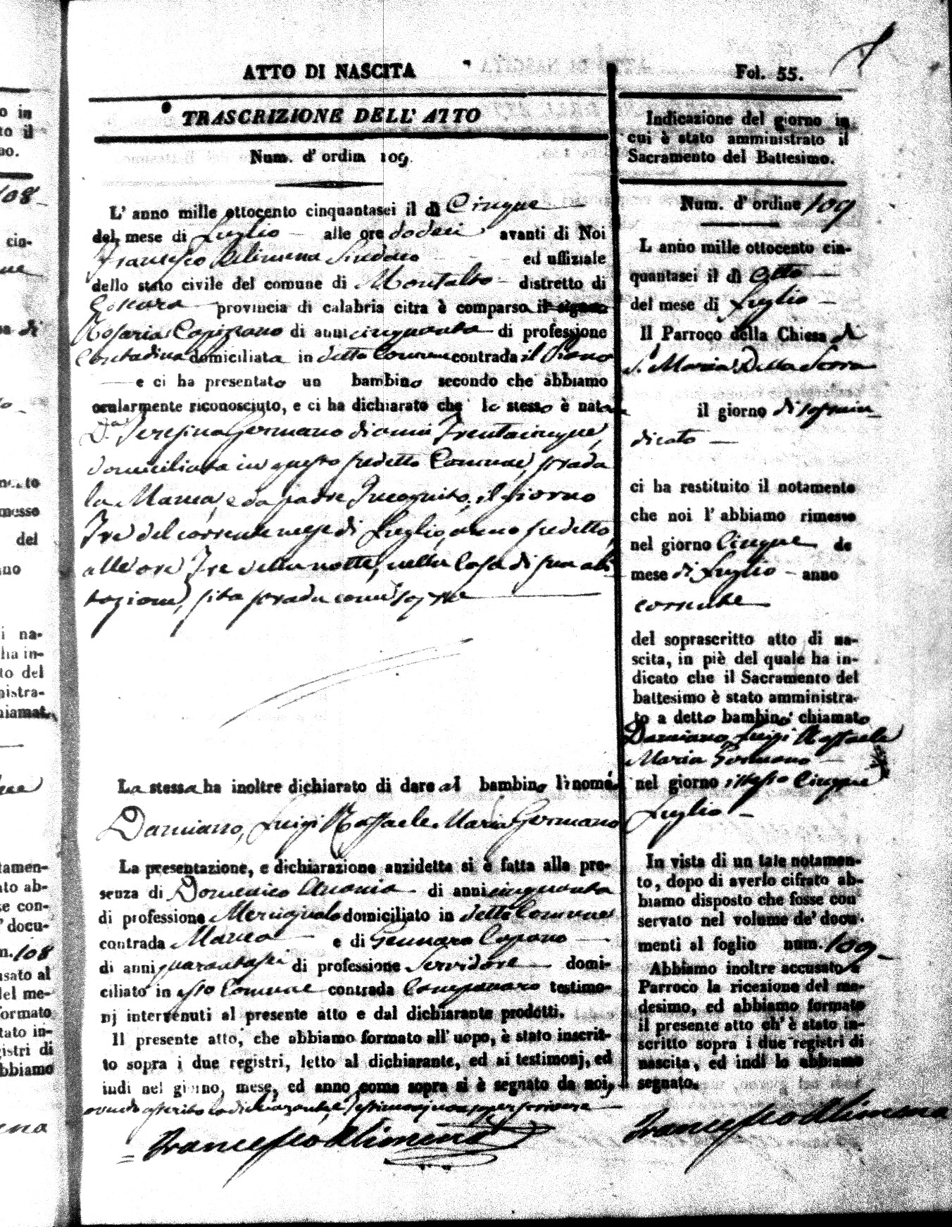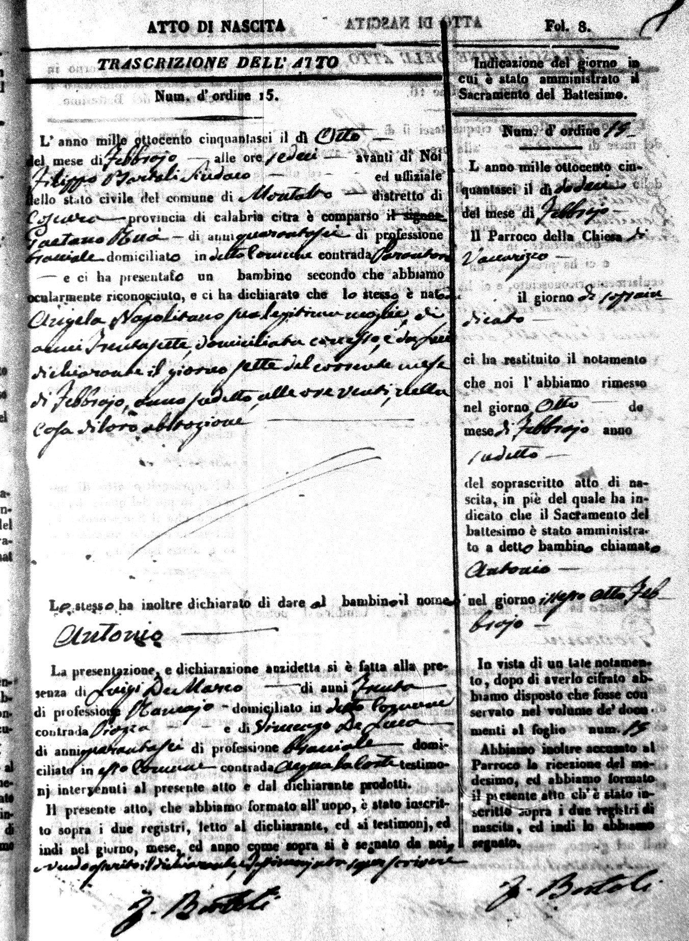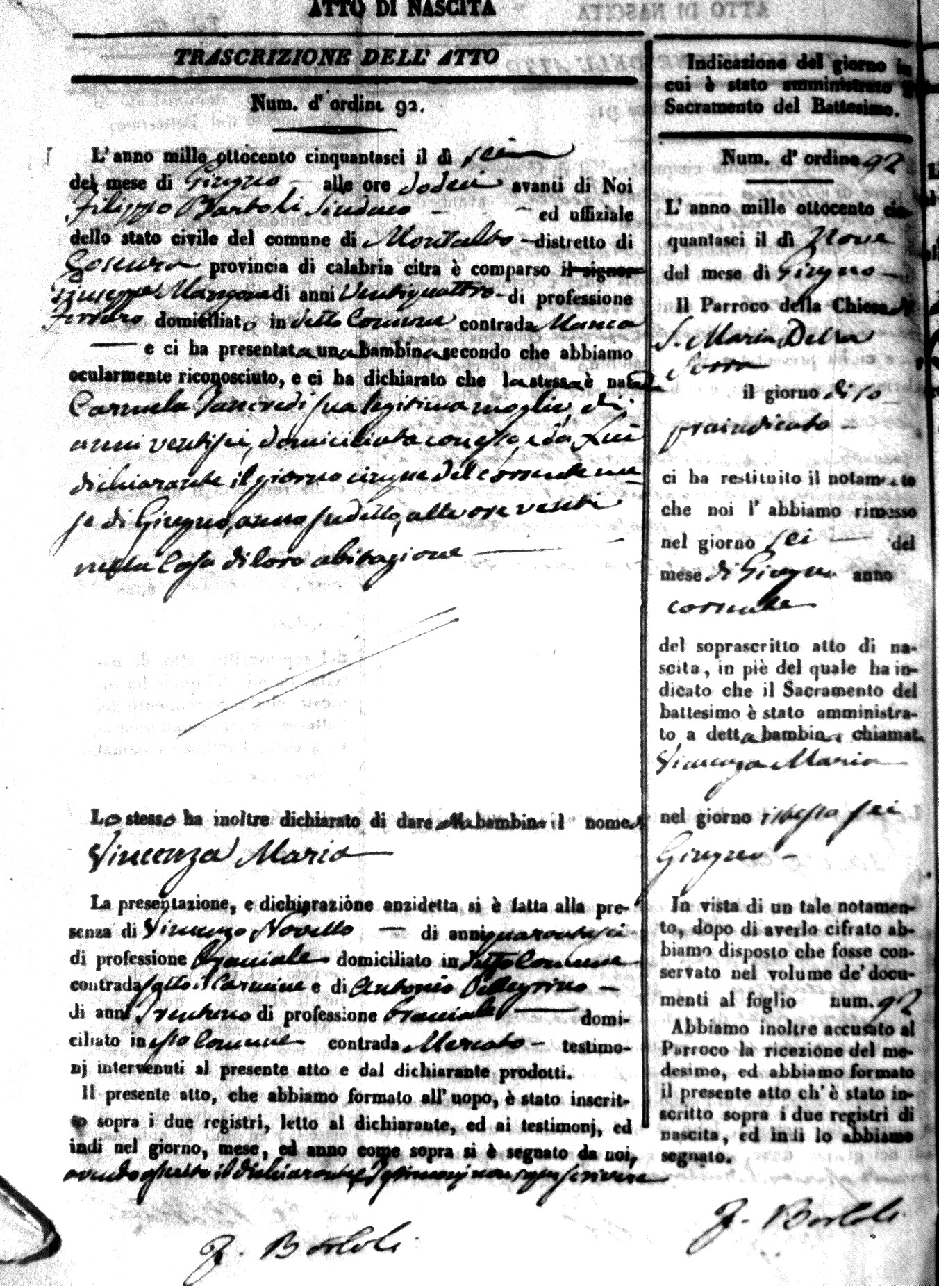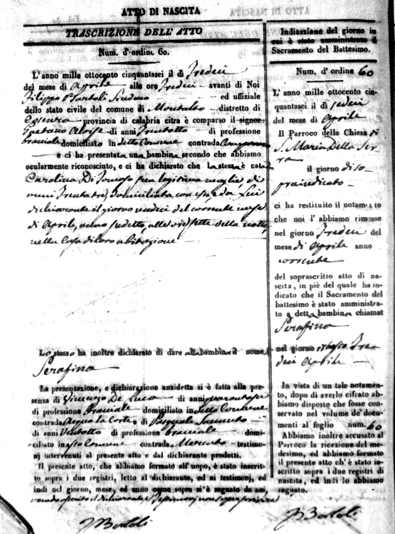 Here are the extractions for the birth acts in 1856 for Montalto Uffugo. Each extraction has a link to a copy of the original document on the baby's surname.
