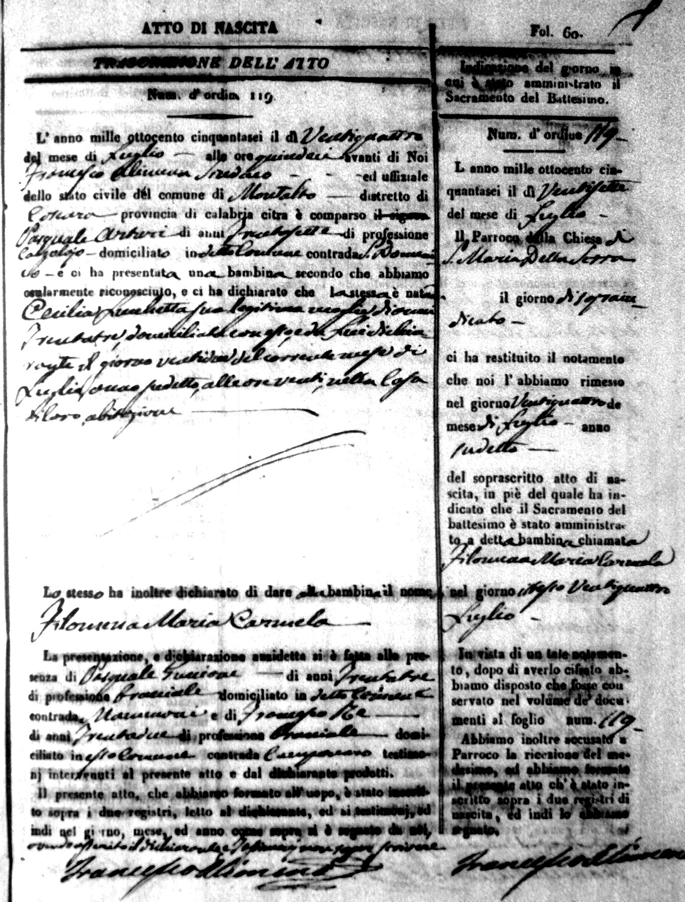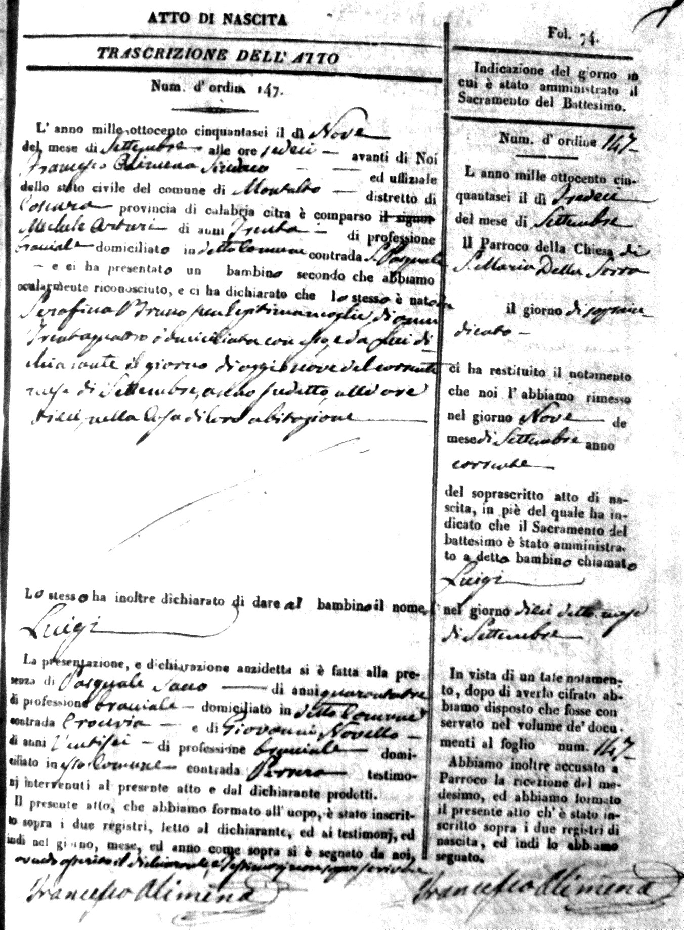 | Arturi | Filomena Maria Carmela | Pasquale | 37 | Lucchetta | Cecilia | 33 |