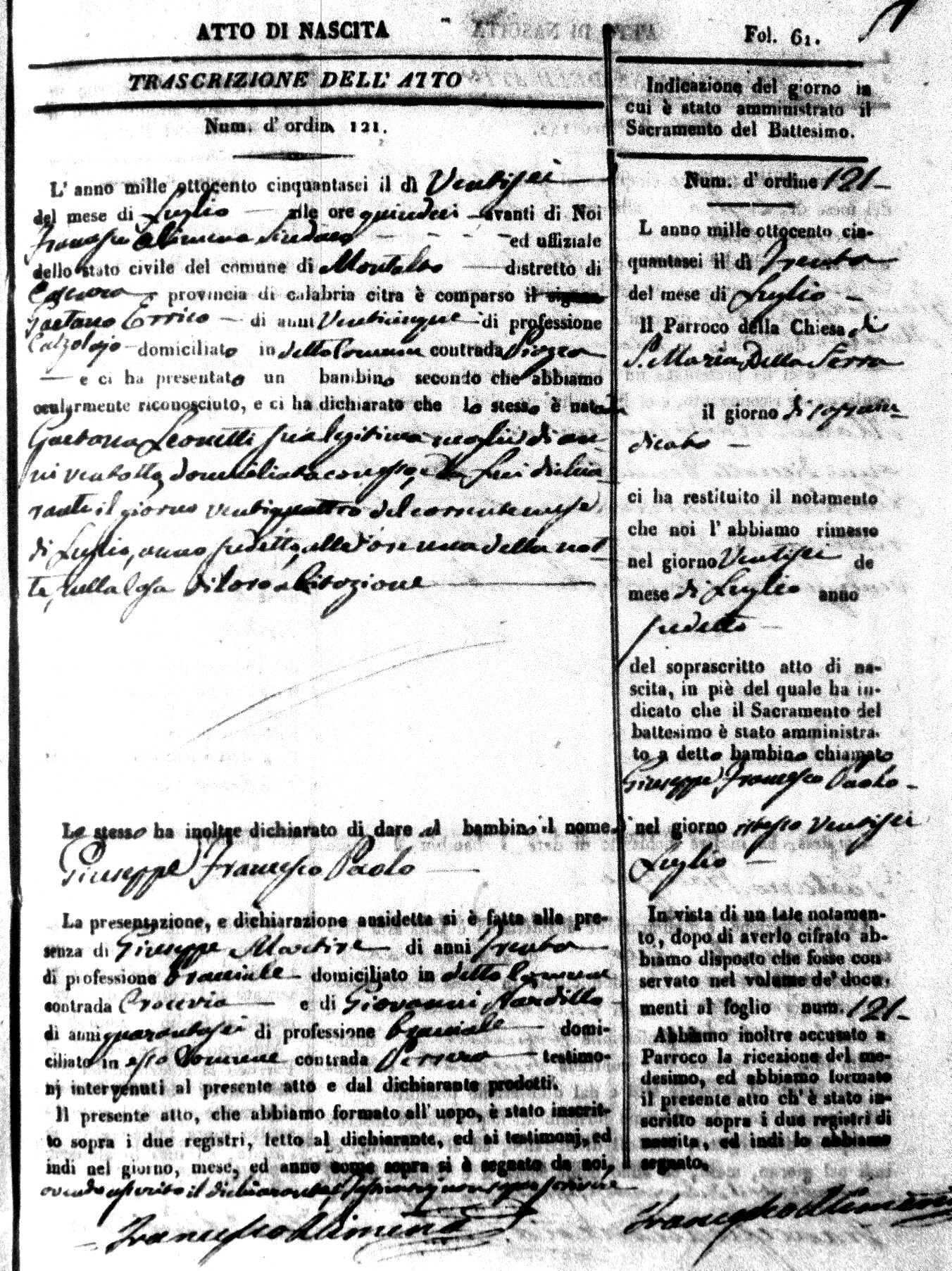 | Errico | Giuseppe Francesco Paolo | Gaetano | 25 | Leonetti | Gaetana | 28 |