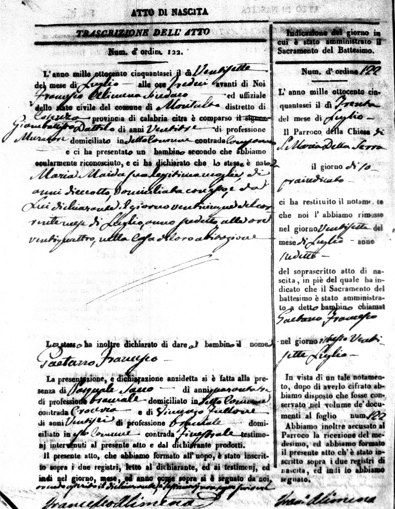 | Dattilo | Gaetano Francesco | GianBattisto | 23 | Maida | Maria | 18 |