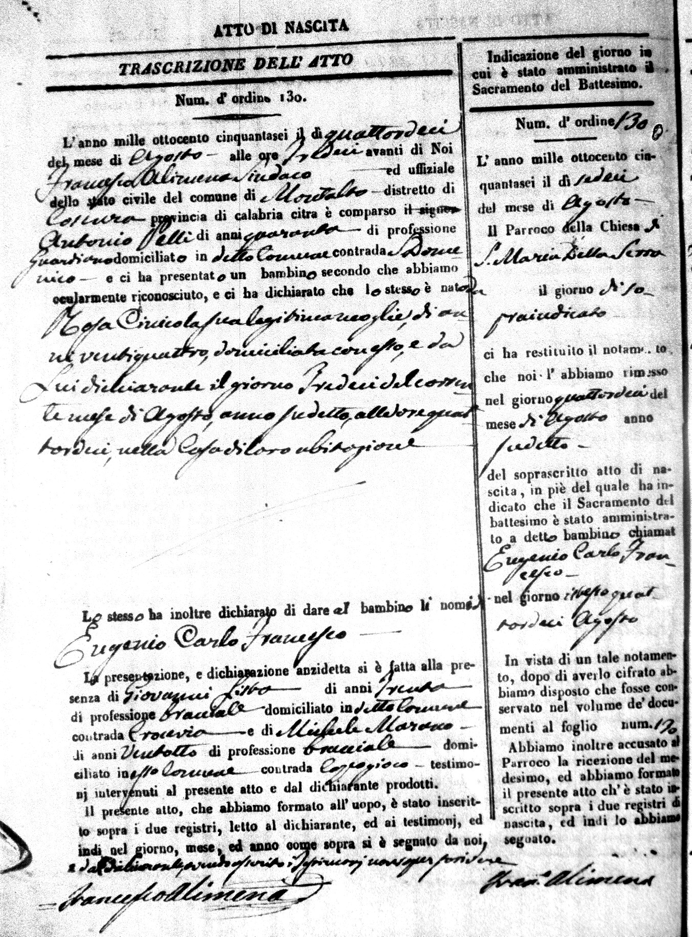 | Pelli | Eugenio Carlo | Antonio | 40 | Ciricola | Rosa | 24 |