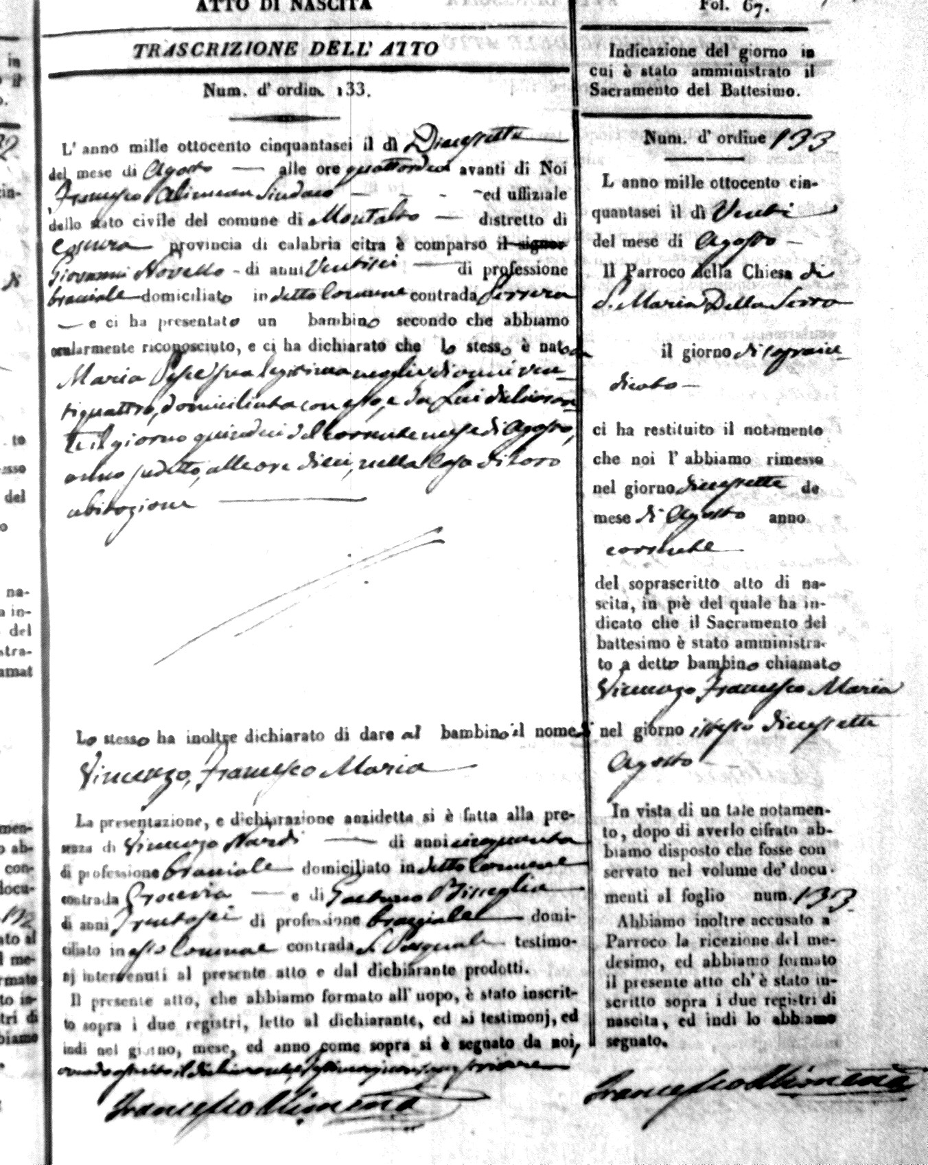 | Novello | Vincenzo Francesco Mario | Giovanni | 26 | ?? | Maria | 24 |