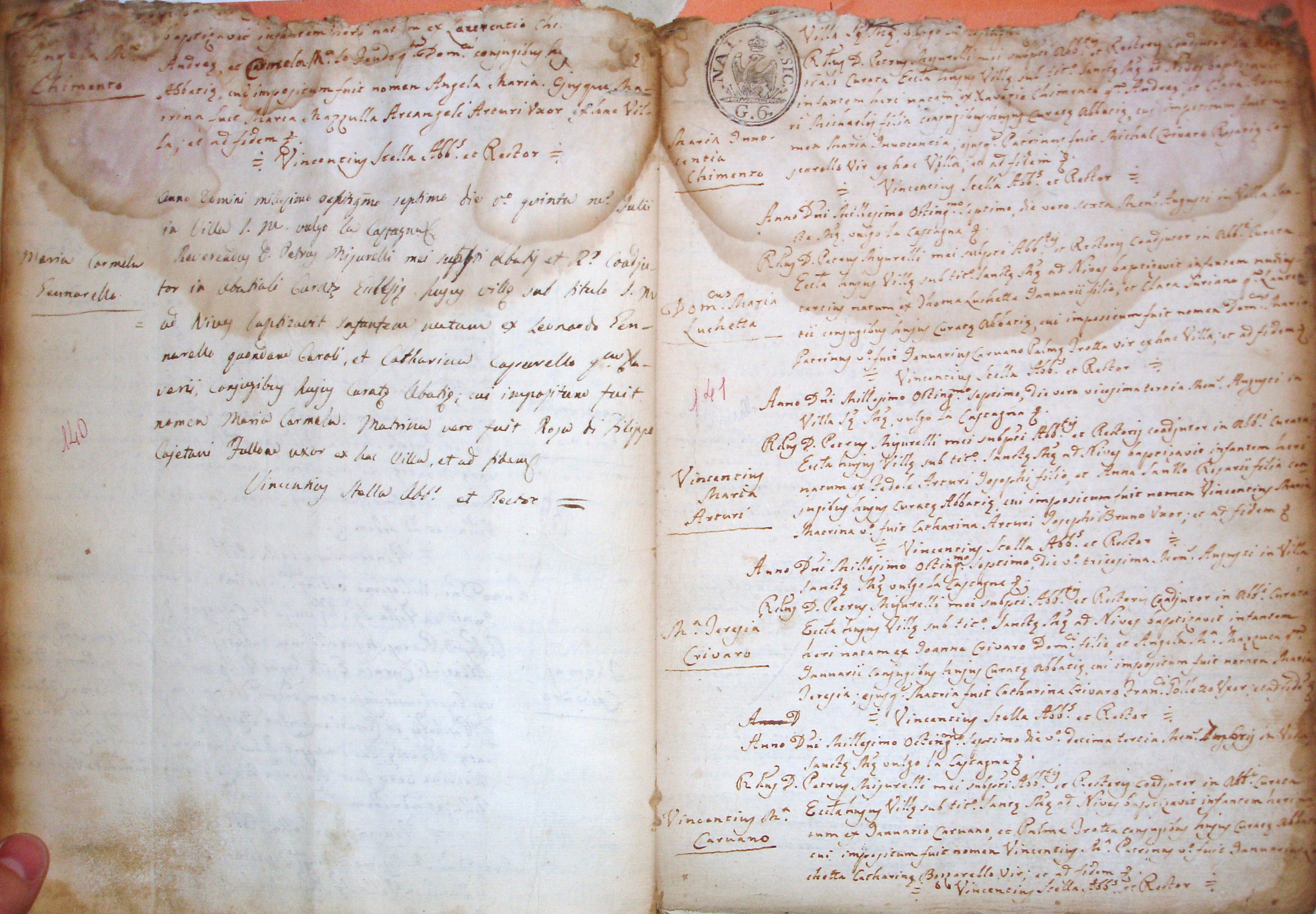 | 17 Jul 1808 | Guccione | Carmela Maria | Rosario | Salerno | Teresa | Rua | Chiara | Calomino | Pietro |