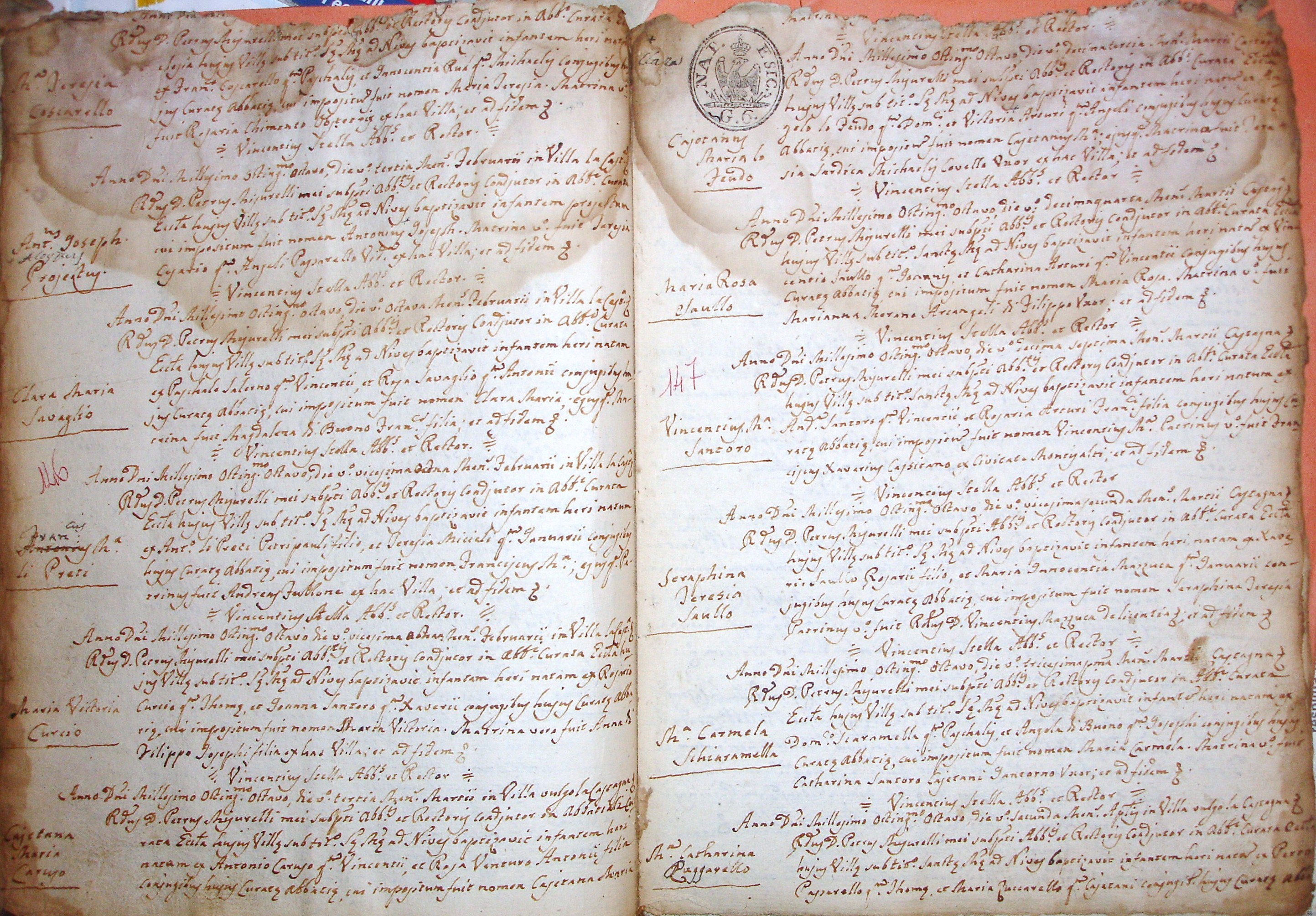 | 2? Feb 1808 | Curcio | Maria Vittoria | Rosario | Santoro | Giovanna | diFilippo | Anna | none | none |