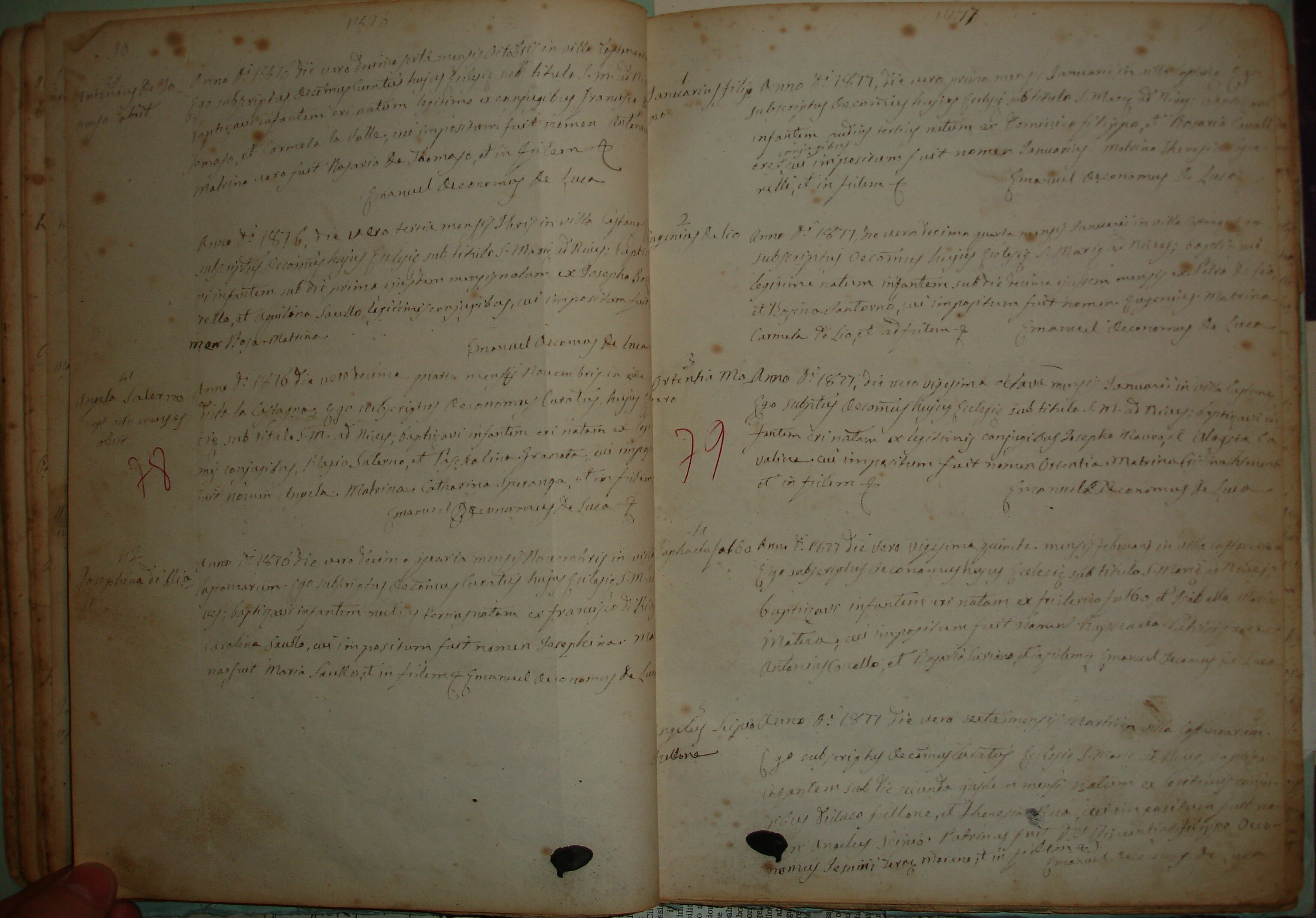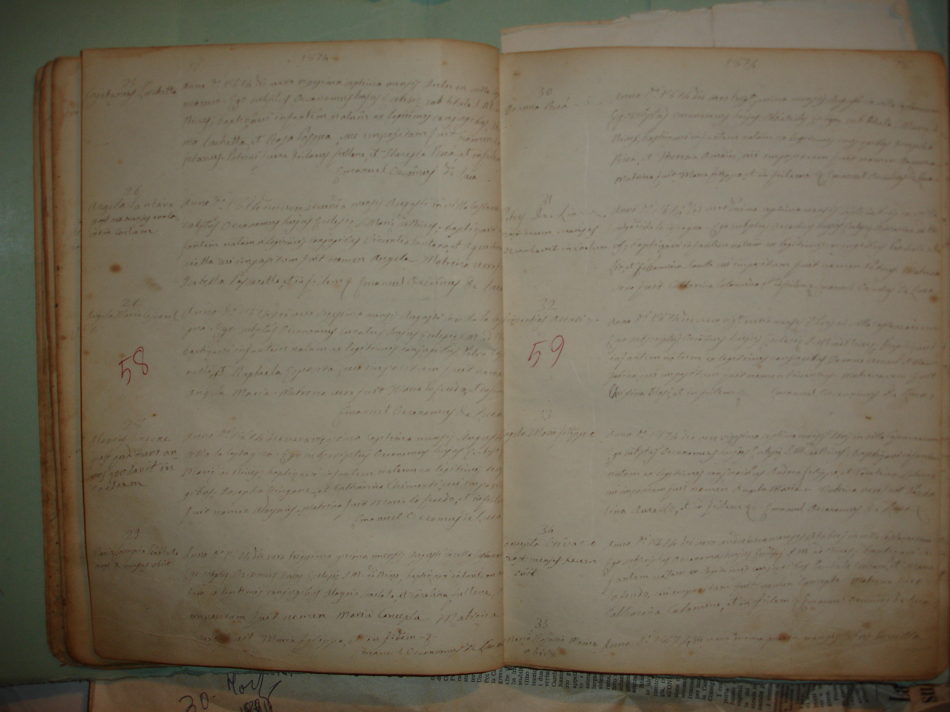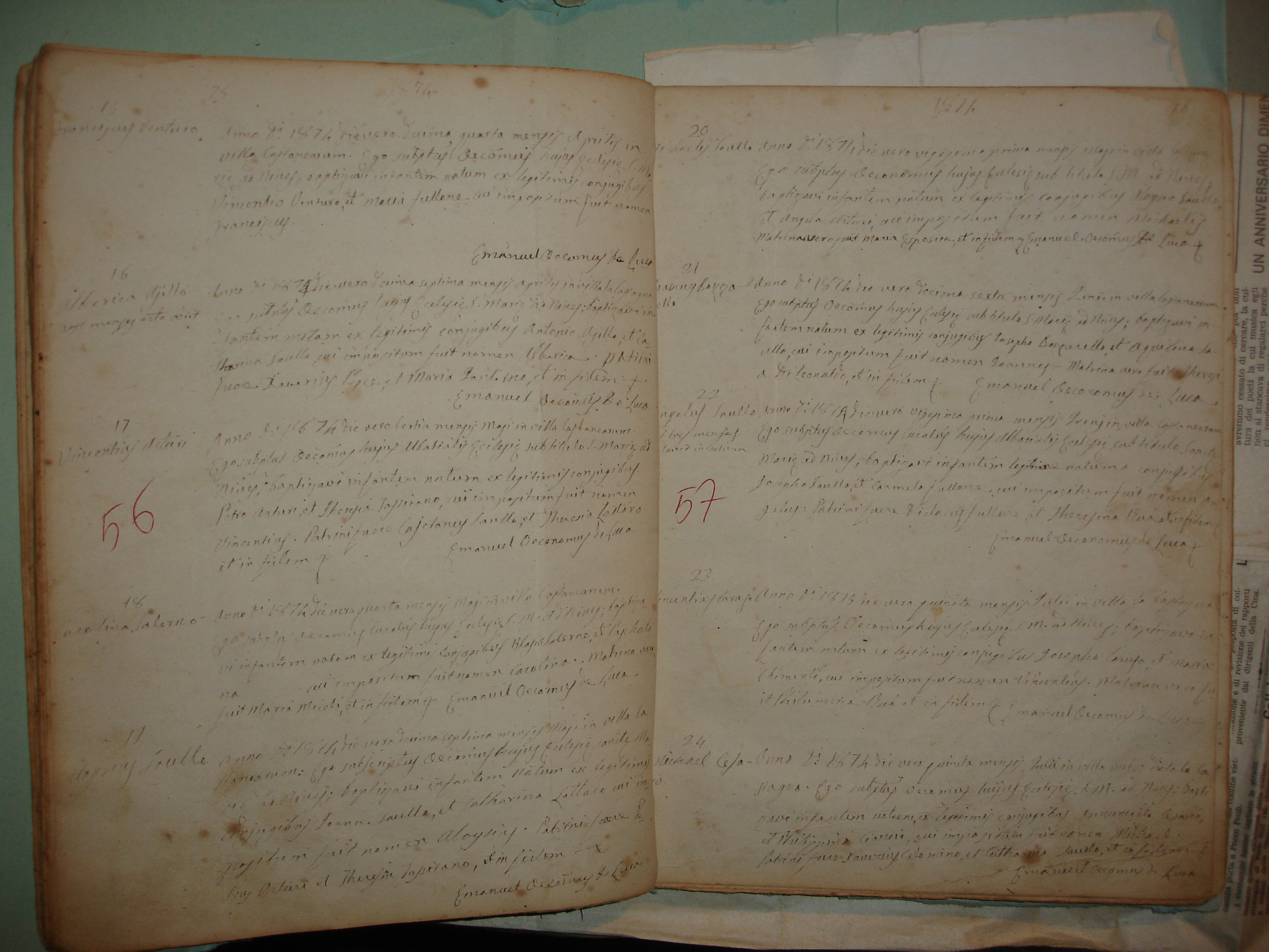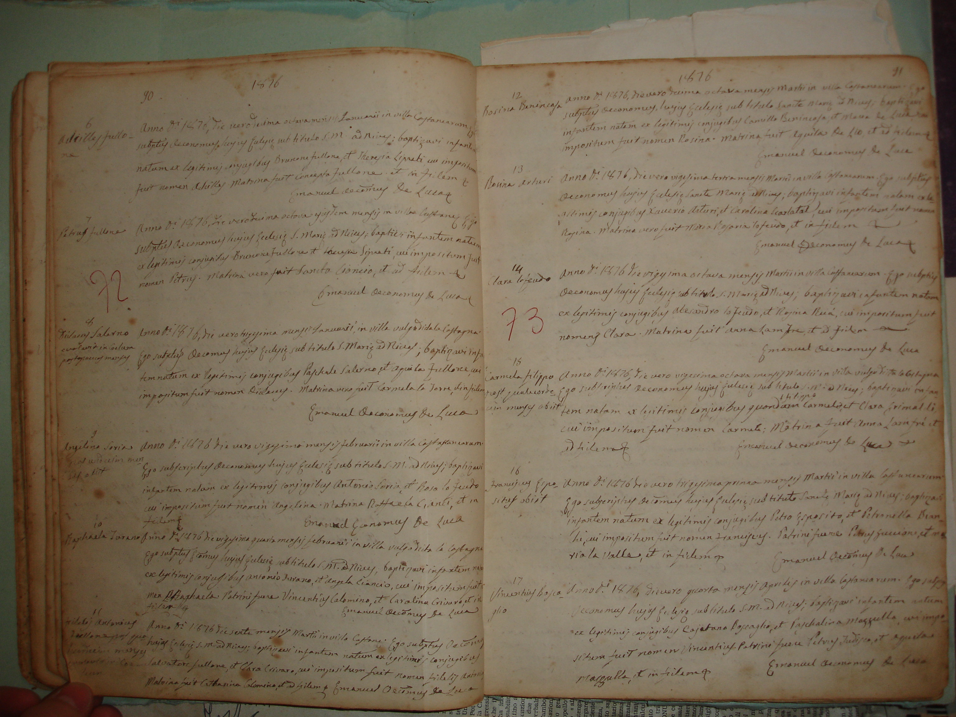 | ? Sep 1874 | Arturi | Vincenzo | Gaspare | Folino | Maria | none | none | Blasi | Cristina | 27 Sep 1874 | Filippo | Angela Maria | Andrea | Salerno | Carolina | none | none | Aurello | Pasqualina | ? Oct 1874 | Crivaro | Concetta | Pasquale | LoFeudo | Maria | none | none | Calomino | Caterina | 13 Oct 1874 | Mauro | Maria Rosaria | Giuseppe (Esposito) | Cavaliere | Maria | none | none | Suriano | Raffaela | 20 Oct 1874 | Folino | Saverio Francesco | Benedetto | Bosceglio | Carolina | none | none | Sanna | Palma | 1 Nov 1874 | Fullone | Luigi Santo | Francesco | Riso | Rosina | Catanzaro | Vincenzo | none | none |