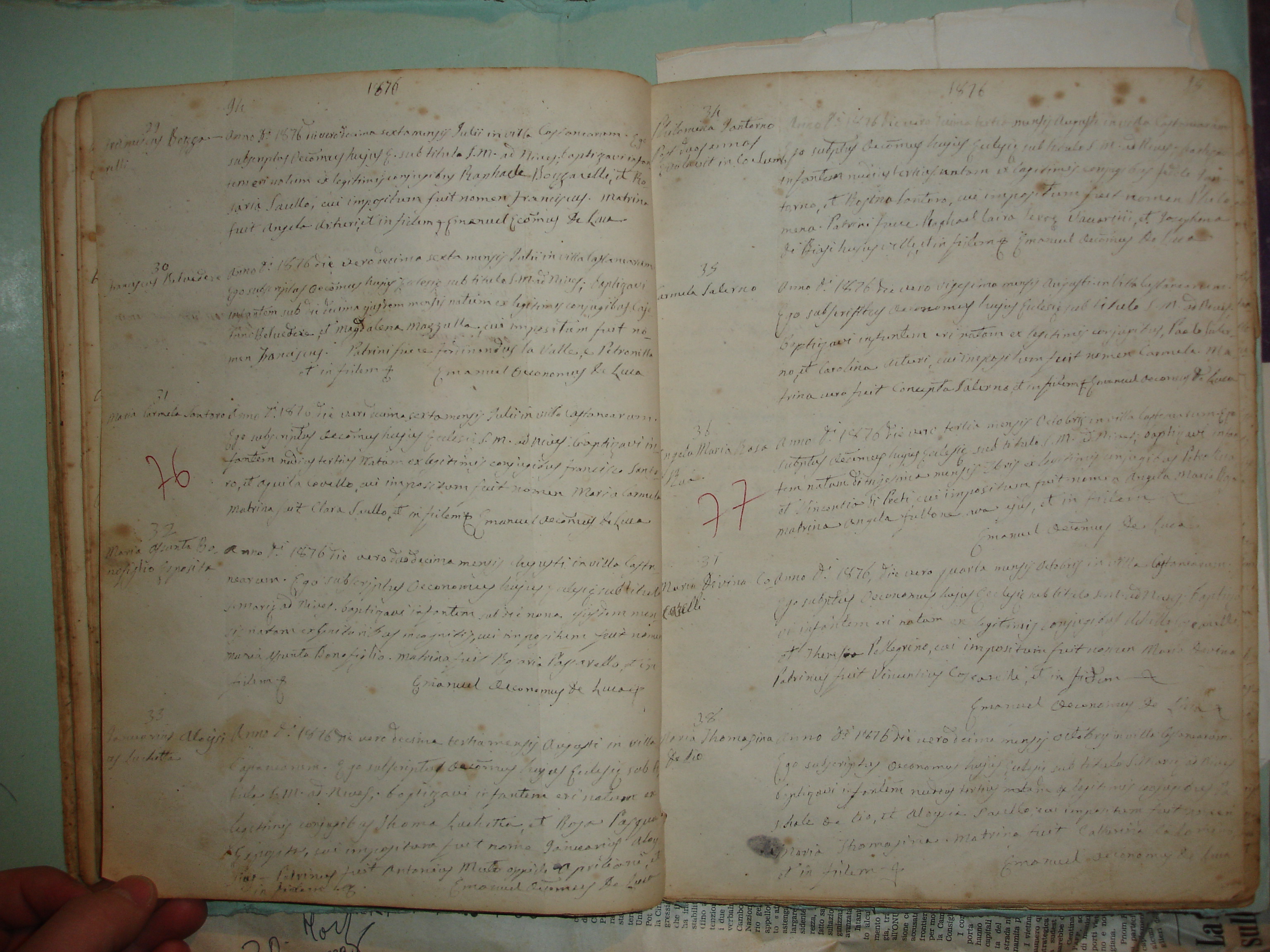 On this page you will find the baptisms recorded that were done during the years from 1874 through 1876 in the frazione of Santa Maria La Castagna. The names and dates have been extracted from Latin for your convenience.