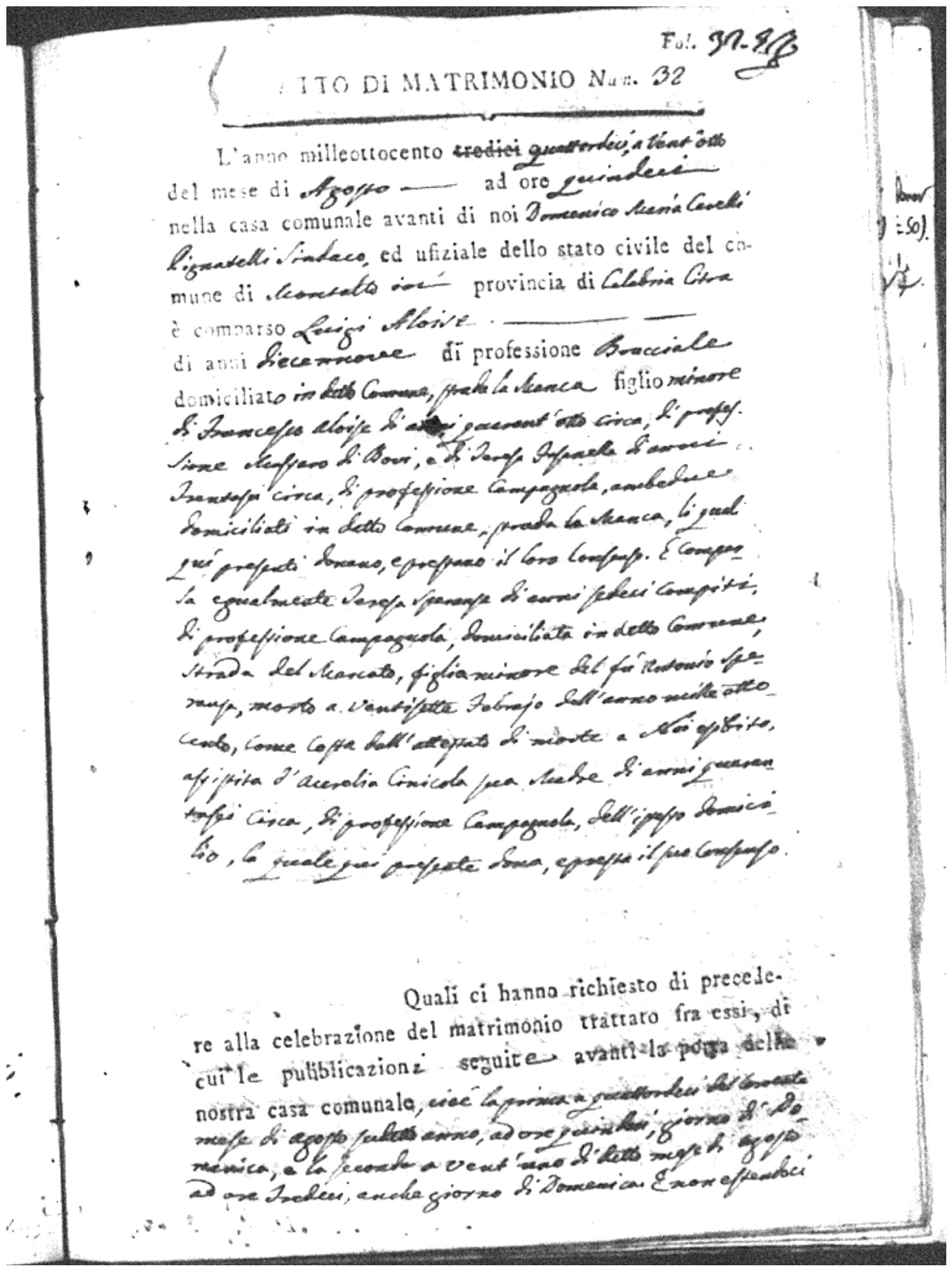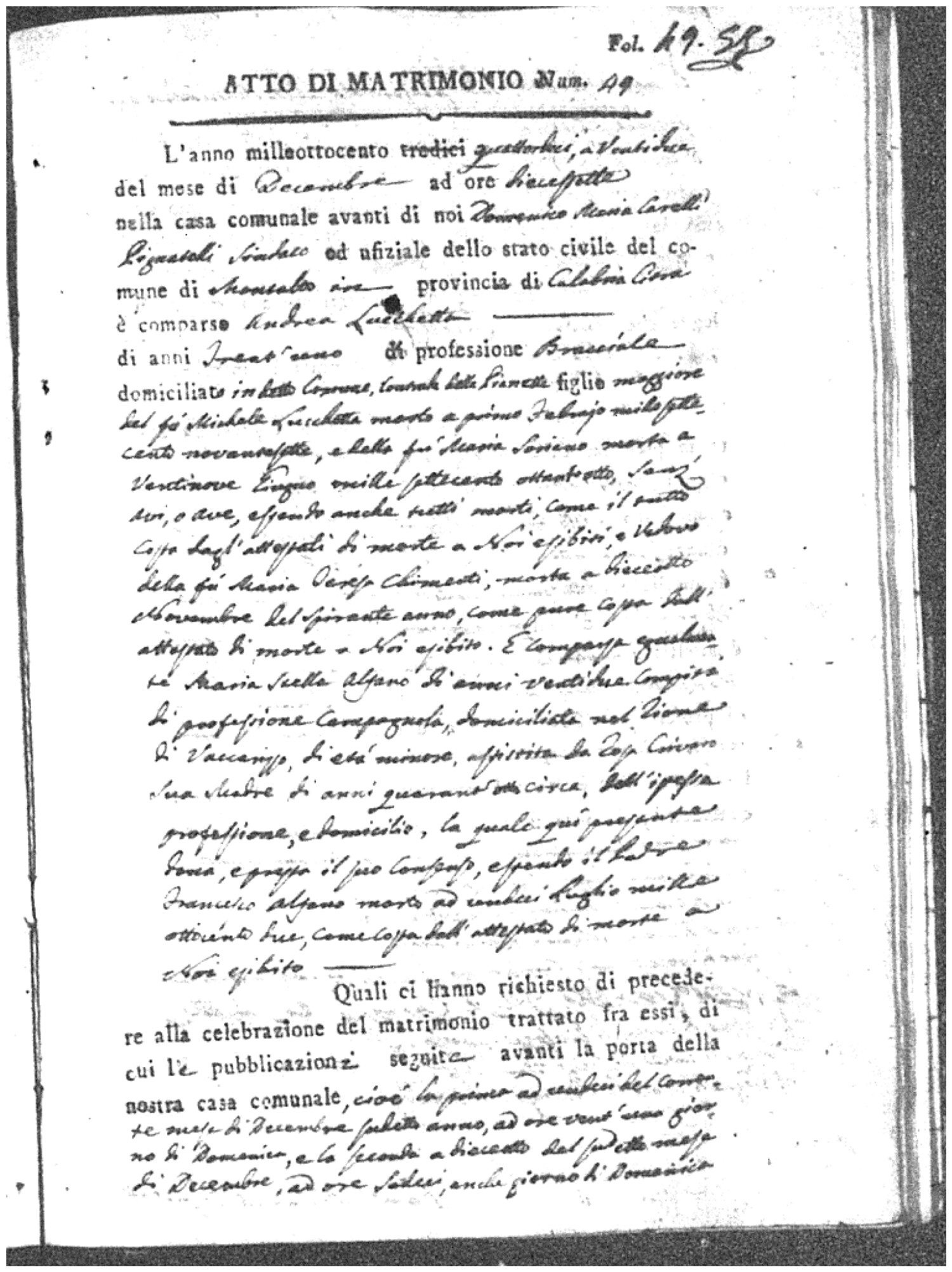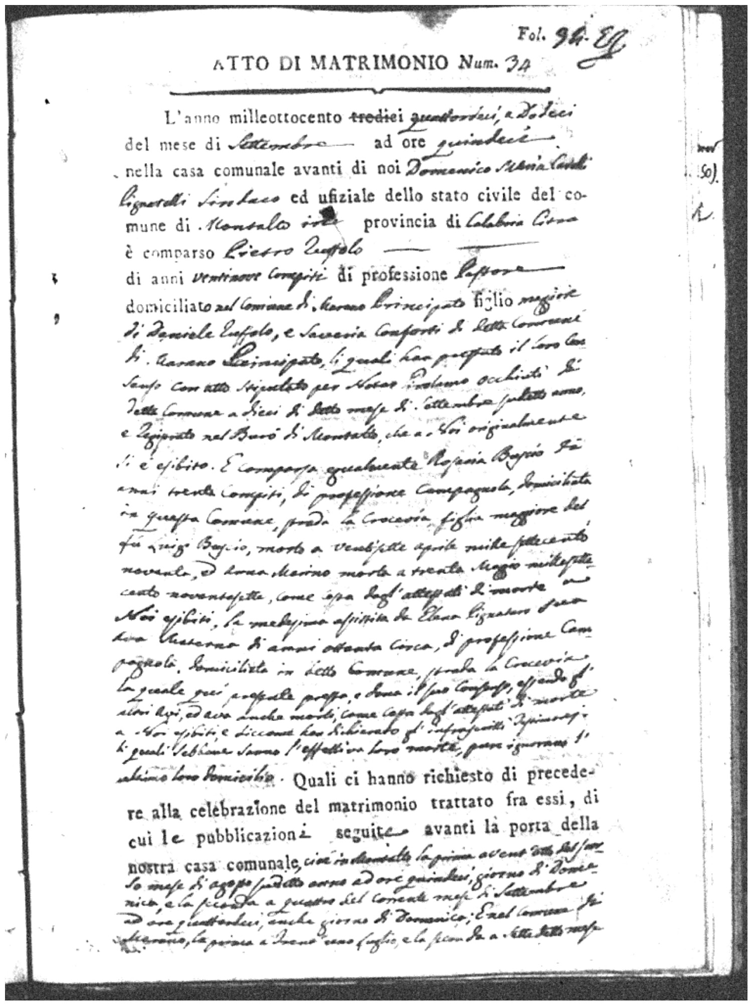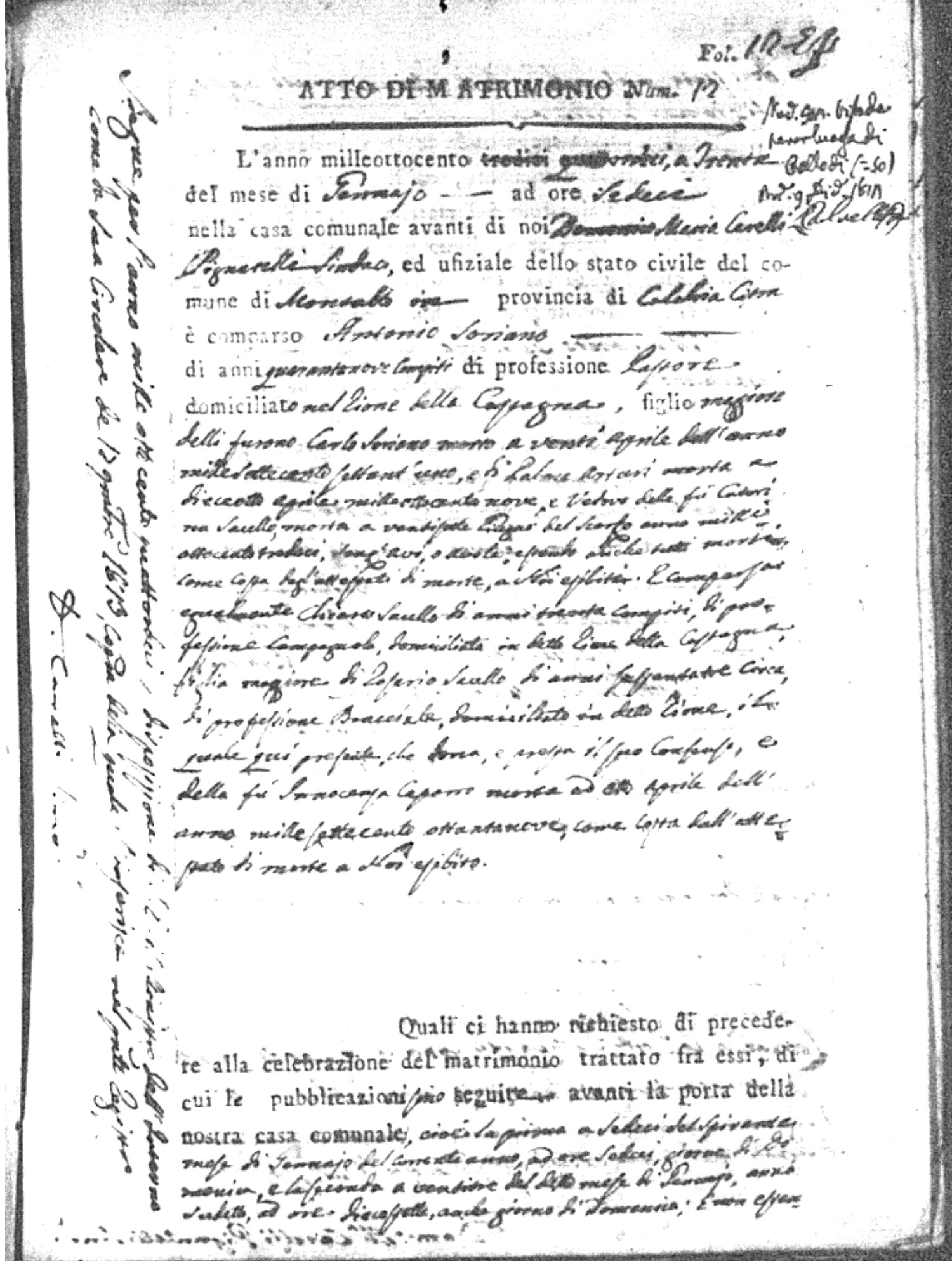 | Chianello | Gennaro | Giovanni (fu) | Bosceglio | Marianna (fu) | Soriano | Innocenza | Giuseppe | Gentile | Maria |