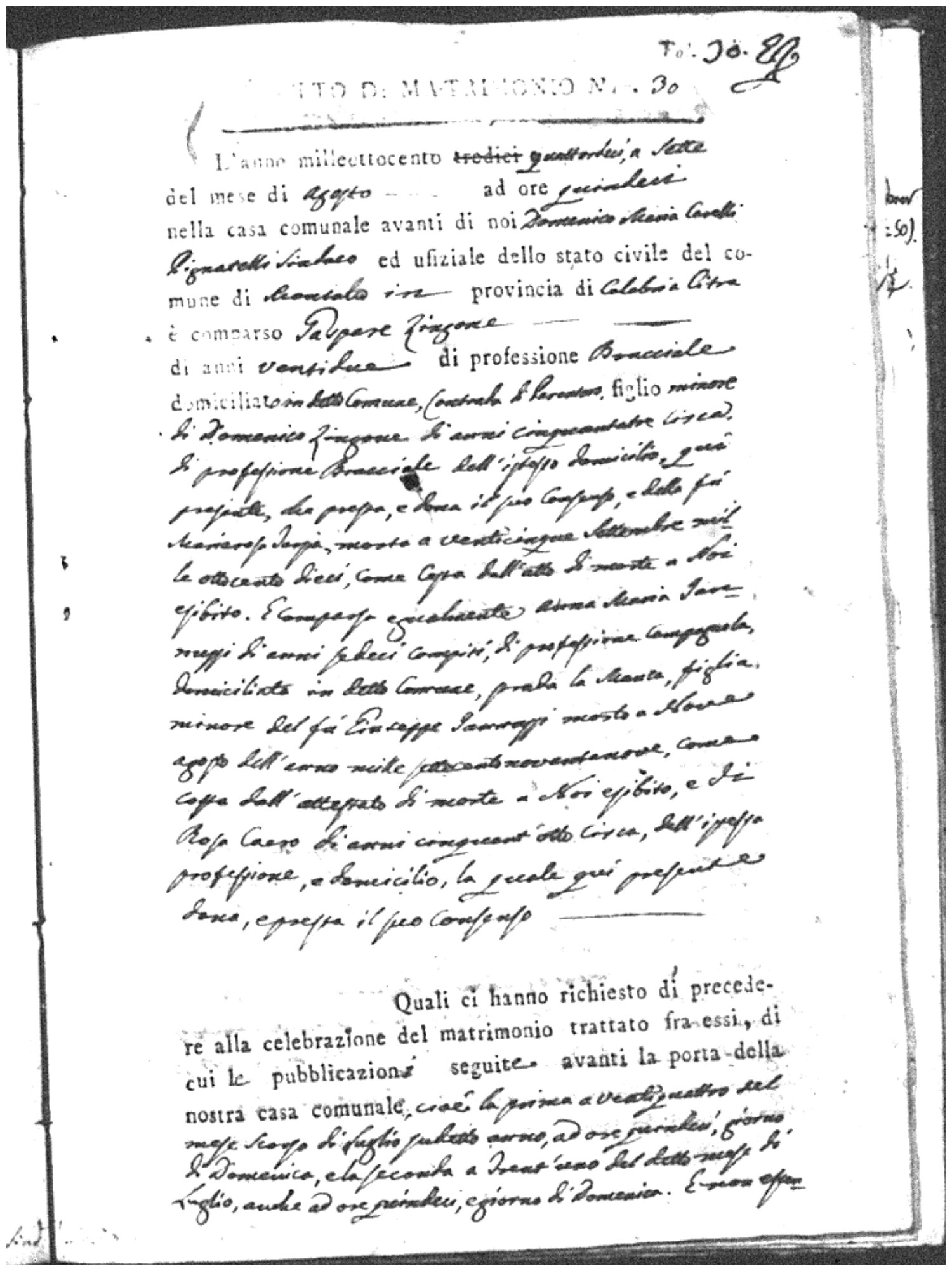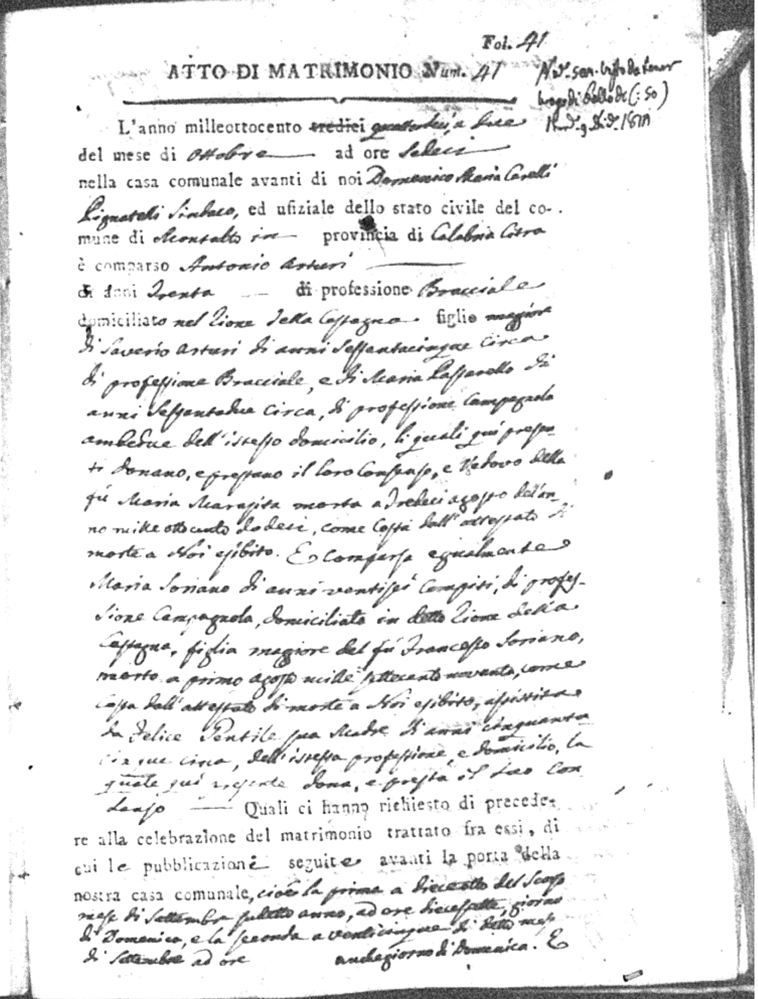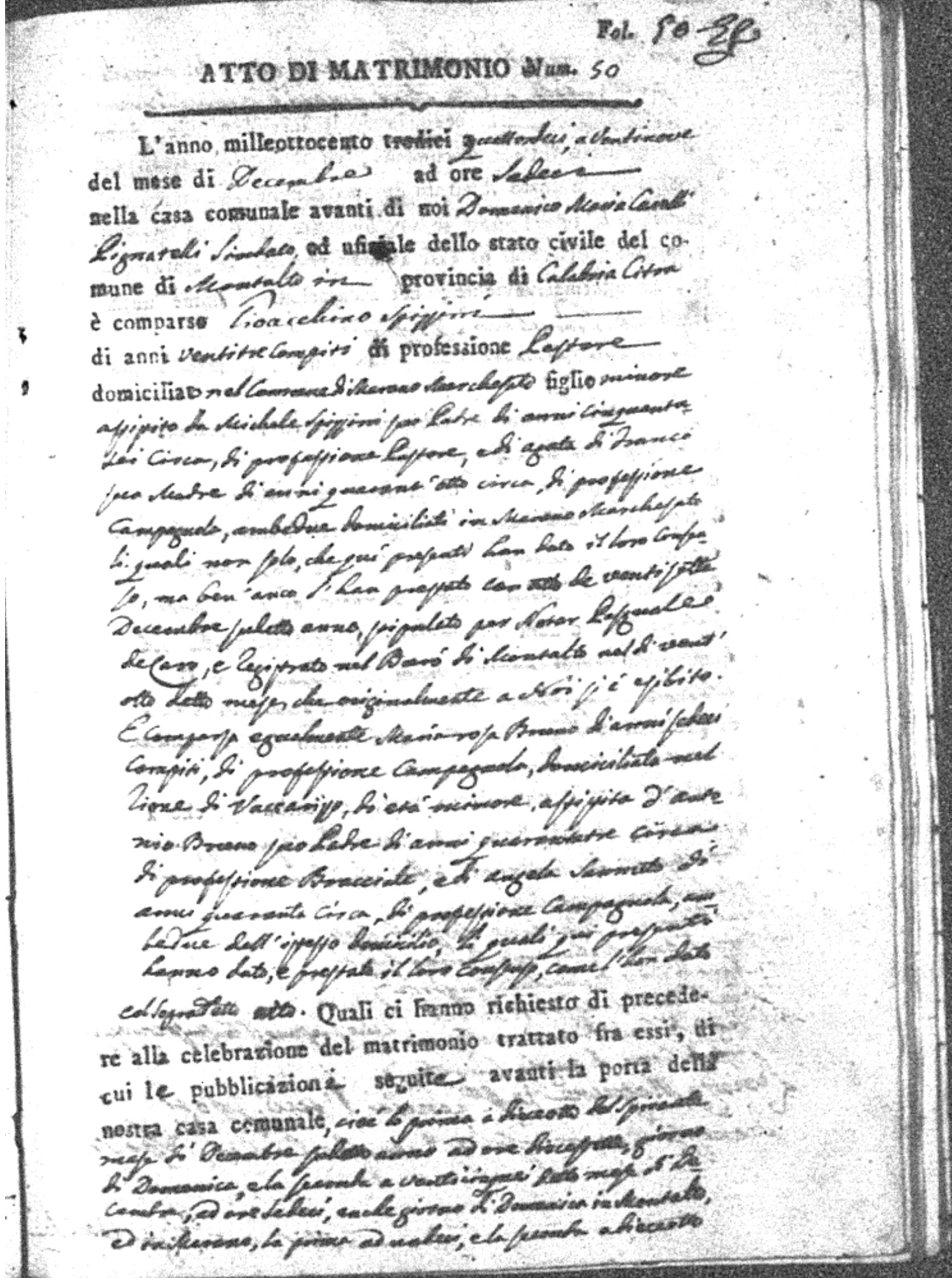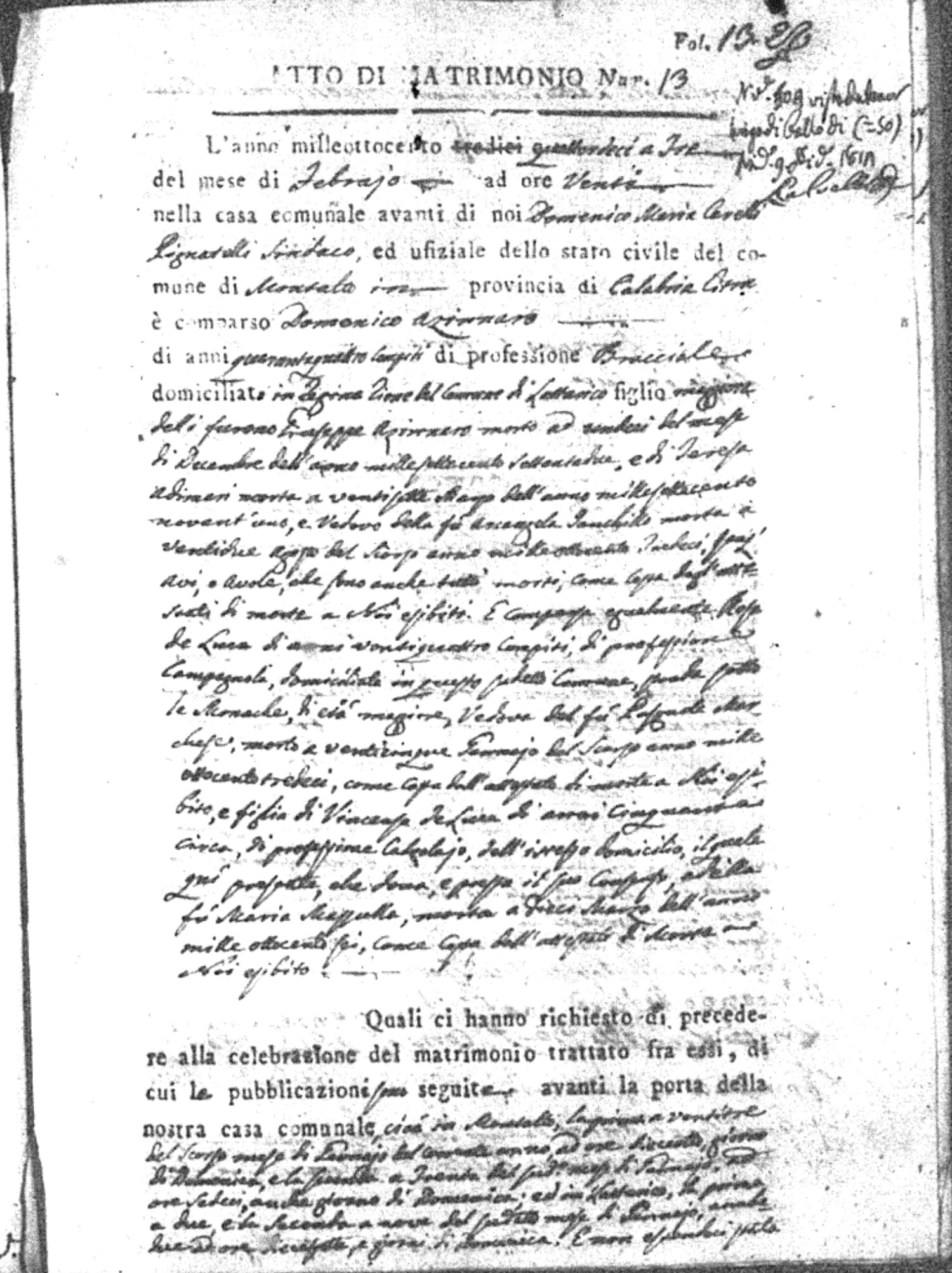 | Chianello | Gennaro | Giovanni (fu) | Bosceglio | Marianna (fu) | Soriano | Innocenza | Giuseppe | Gentile | Maria |