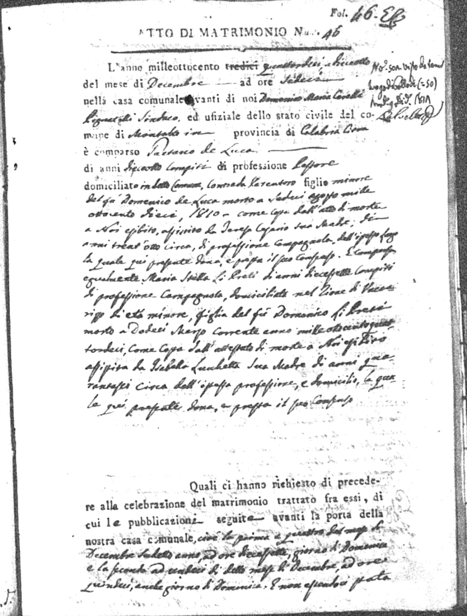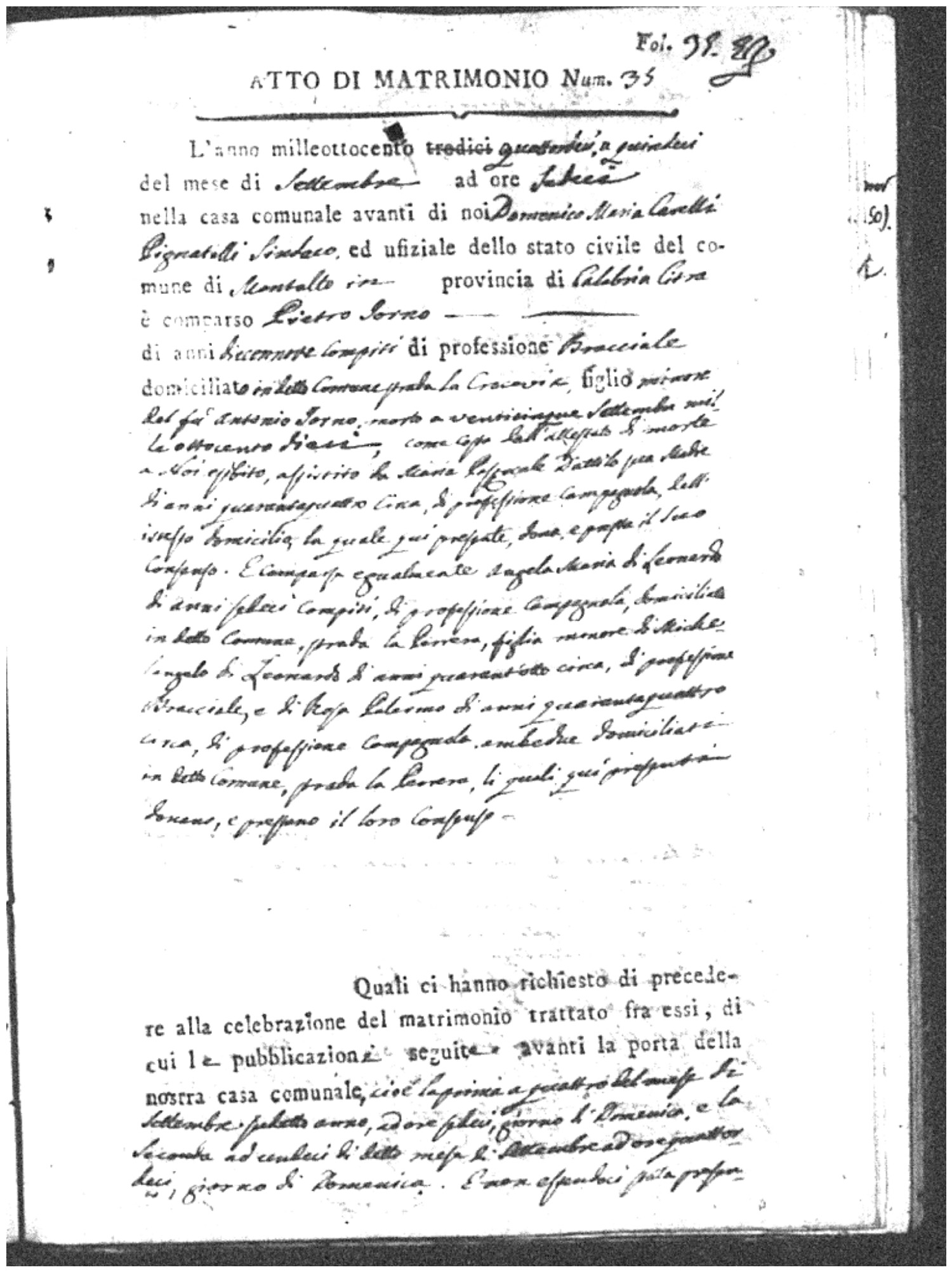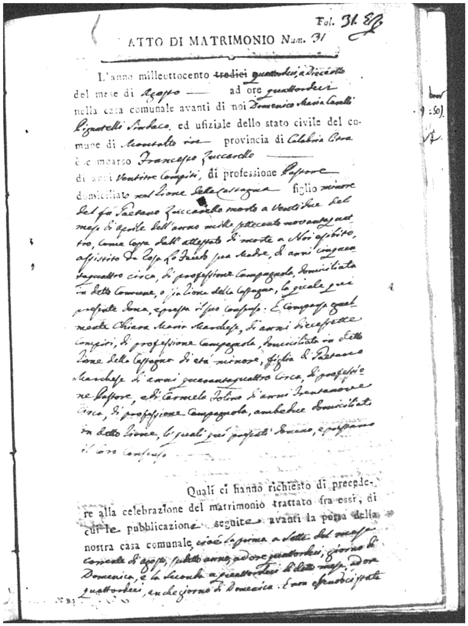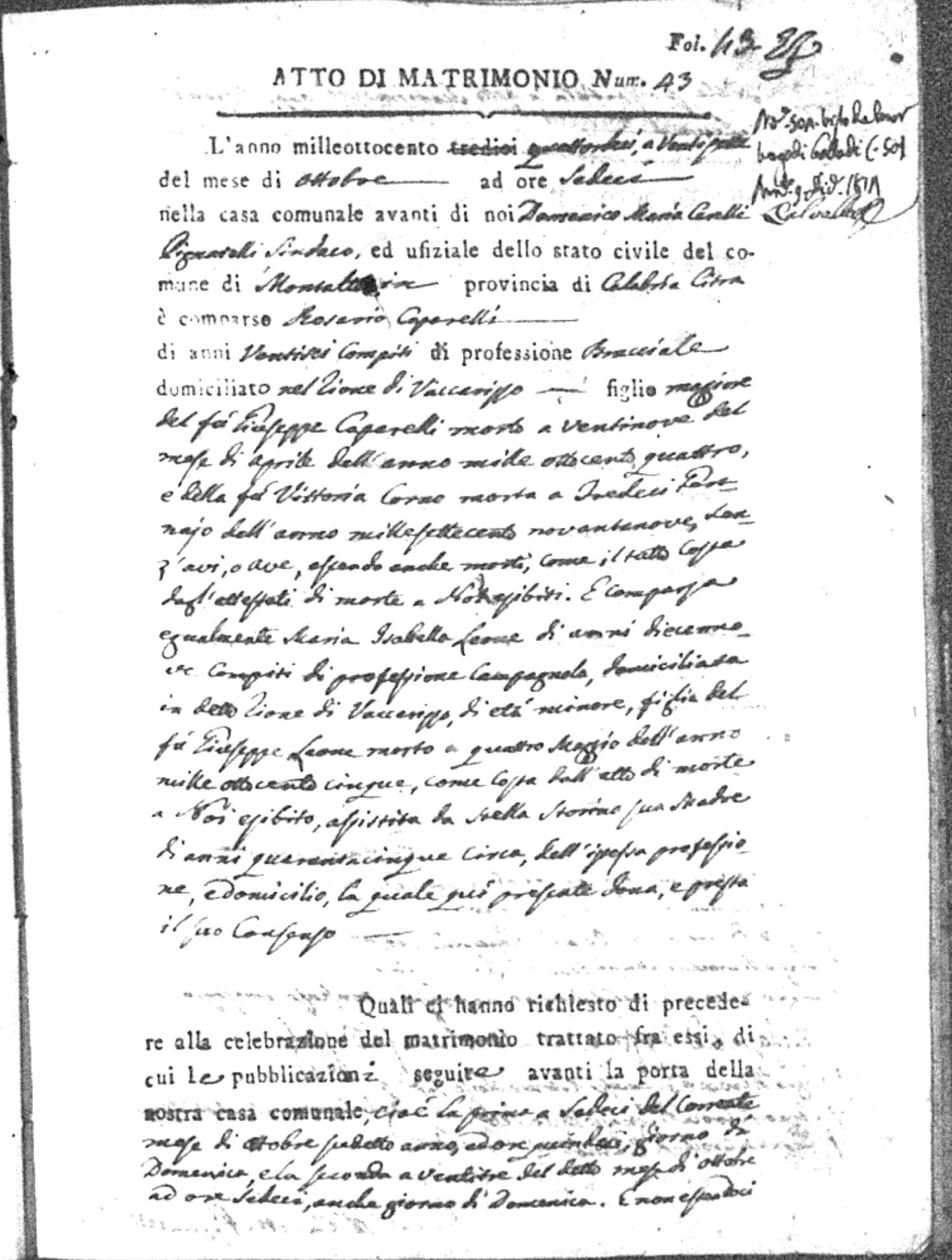 | Chianello | Gennaro | Giovanni (fu) | Bosceglio | Marianna (fu) | Soriano | Innocenza | Giuseppe | Gentile | Maria |
