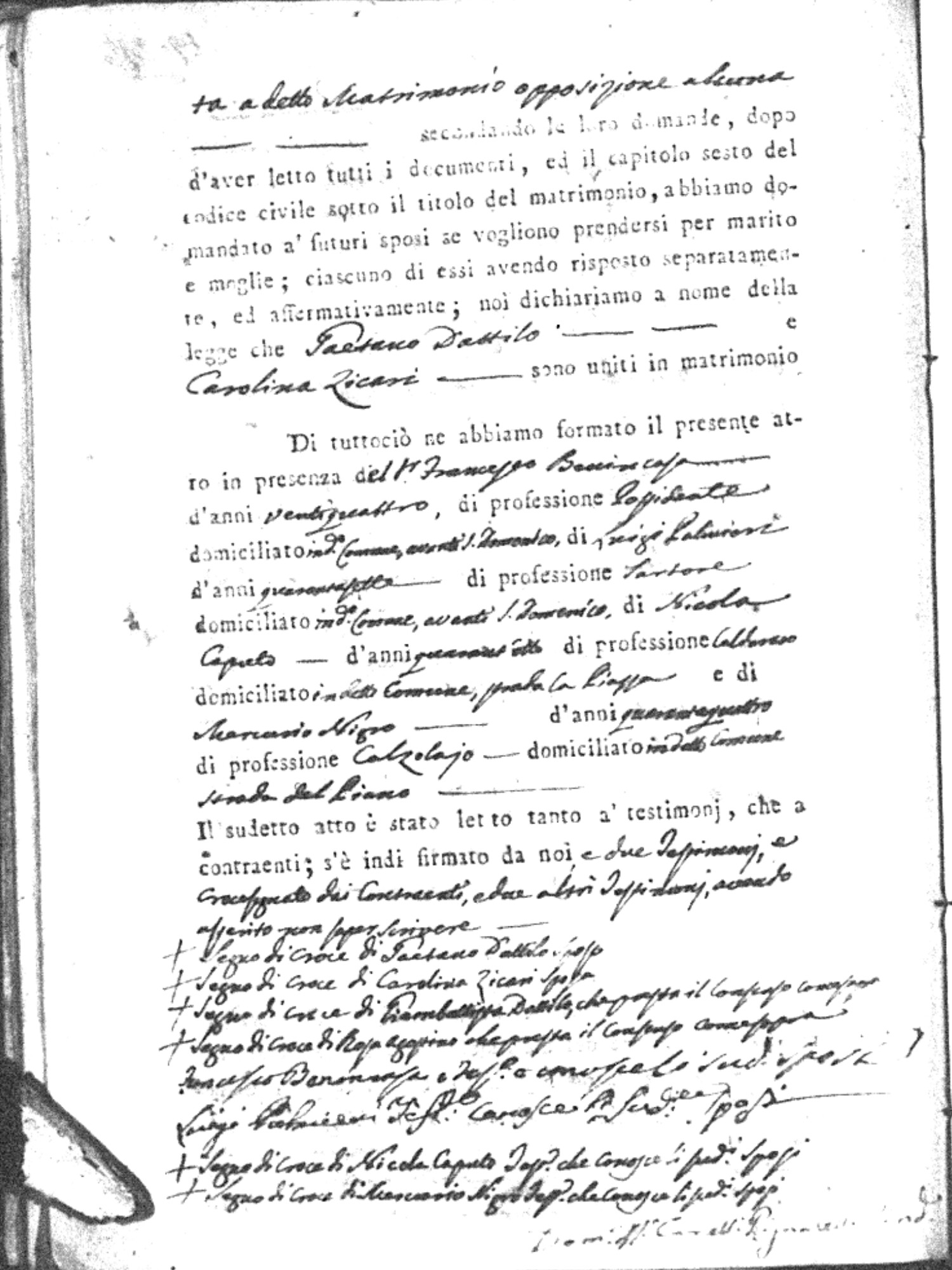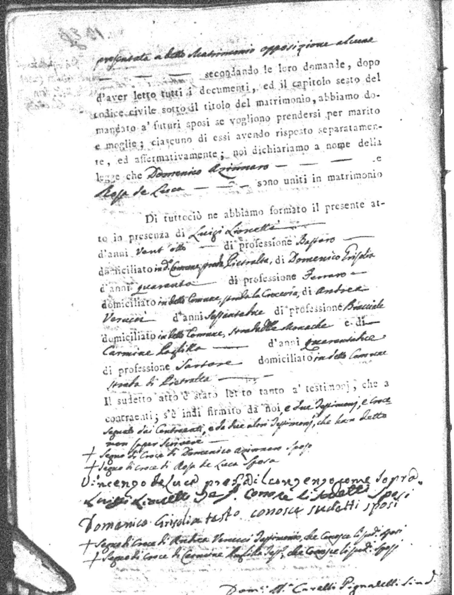 | Napolitano | Francesco Saverio | Arcangelo (fu) | Crivaro | Chiara (fu) | Zingone | Maria Maddalena | Antonio | Cuscino | Maria |