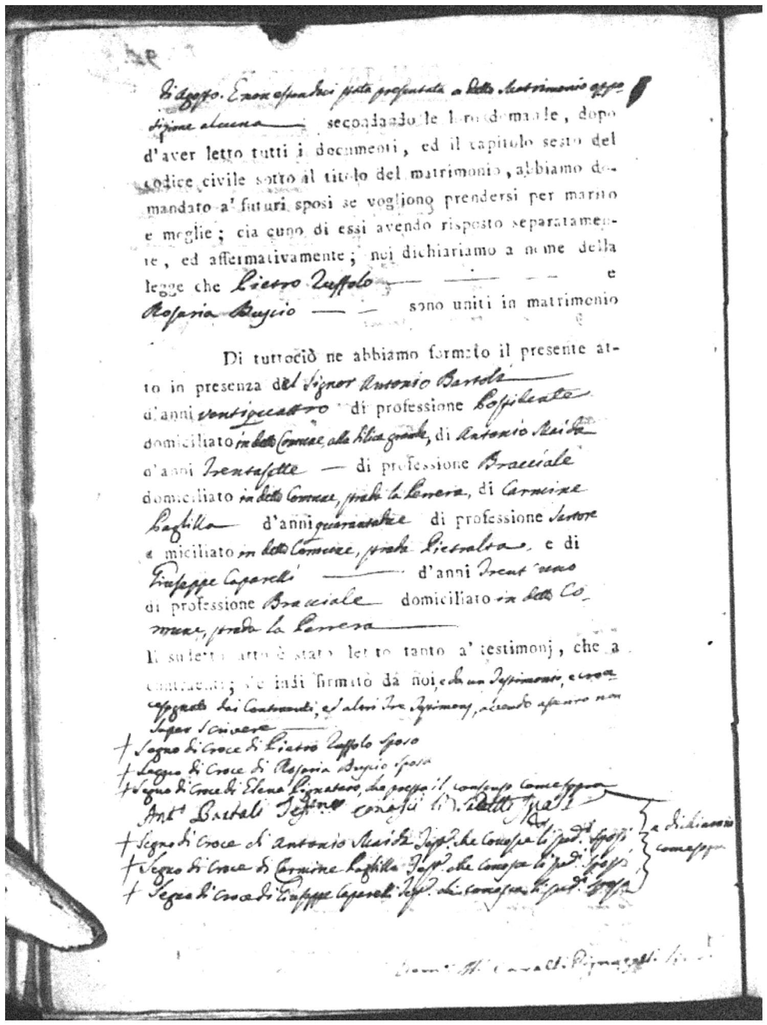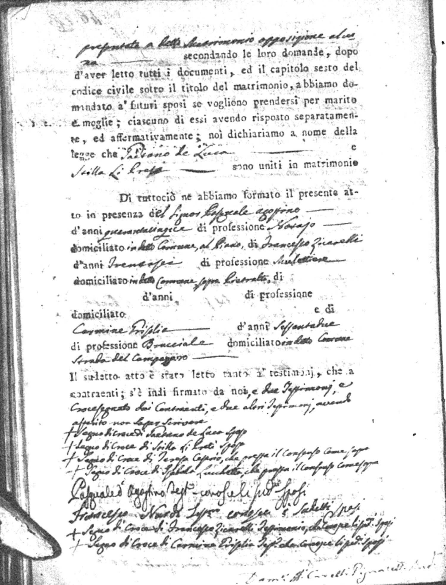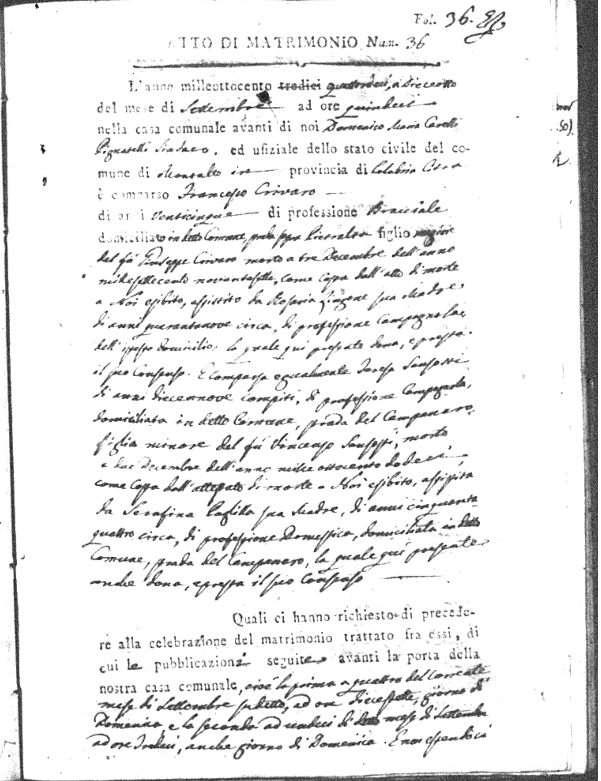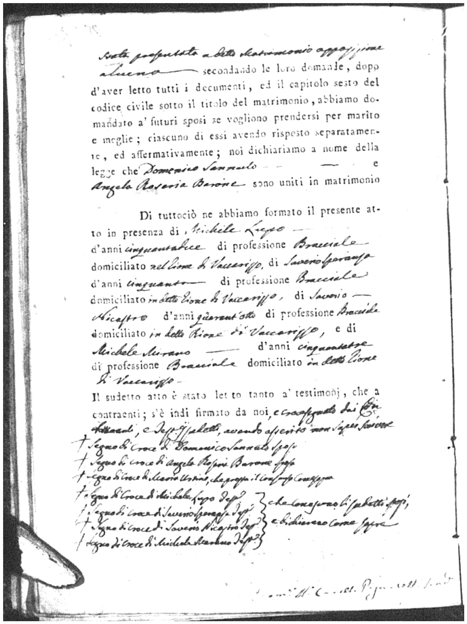 | Sannuto | Domenico | Serofino (fu) | Caparello | Maria (fu) | Barone | Angela Rosaria | Vincenzo (fu) | Mosciaro | Agata (fu) |