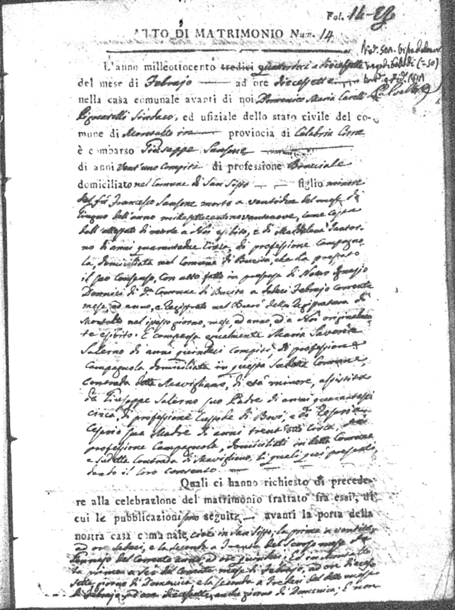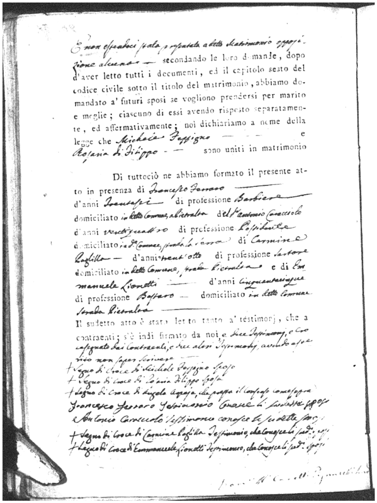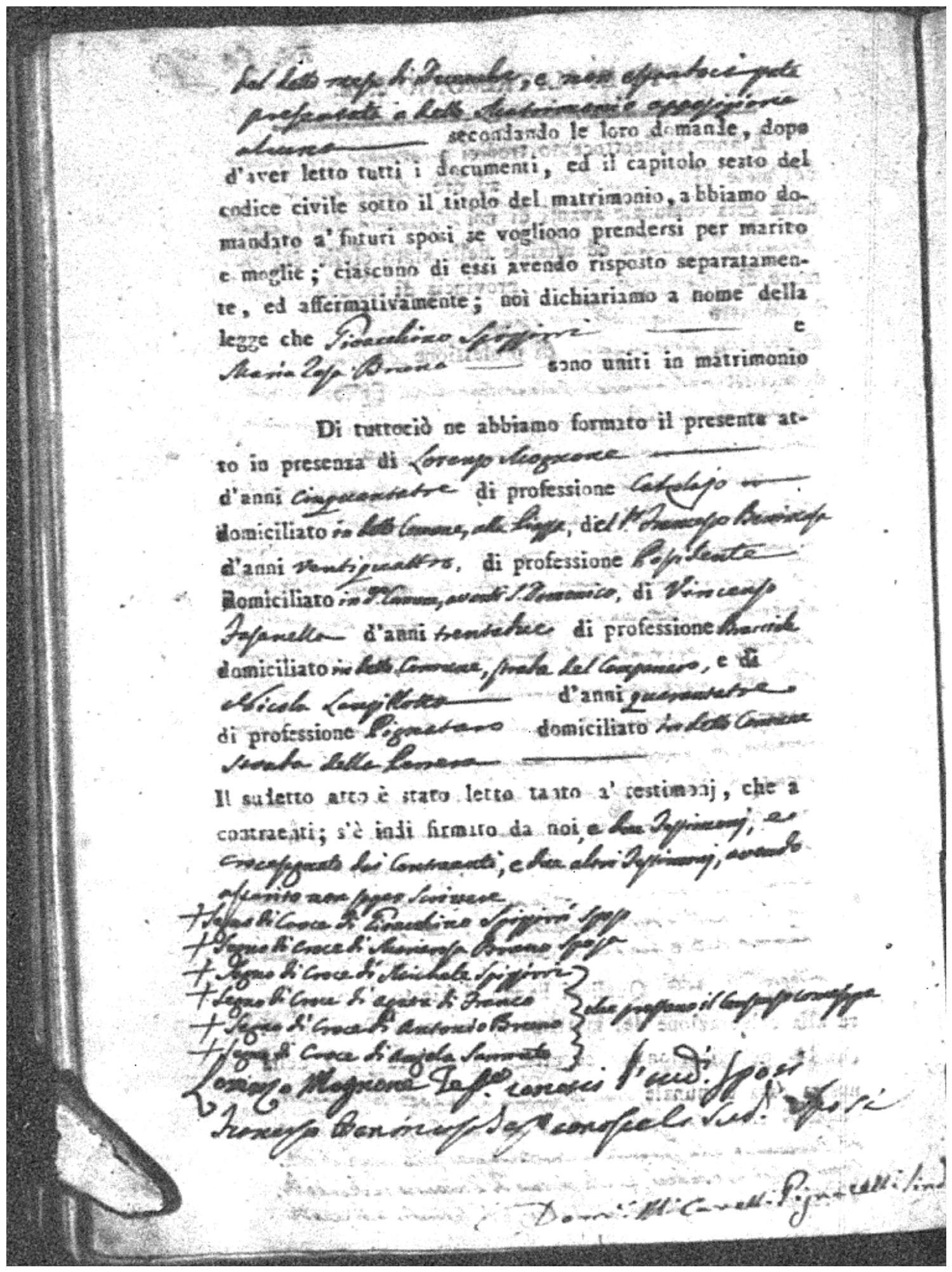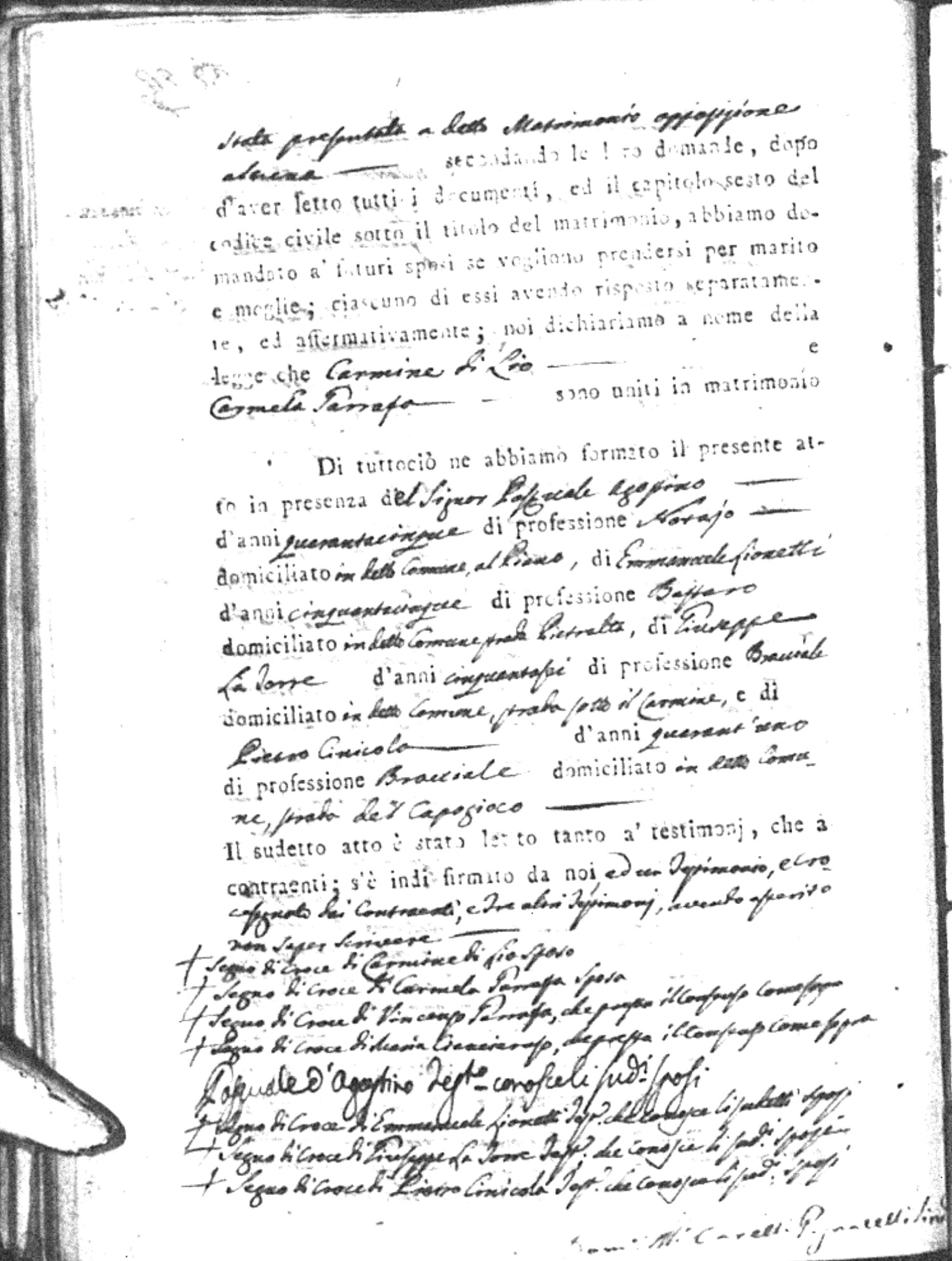 | Sannuto | Domenico | Serofino (fu) | Caparello | Maria (fu) | Barone | Angela Rosaria | Vincenzo (fu) | Mosciaro | Agata (fu) |