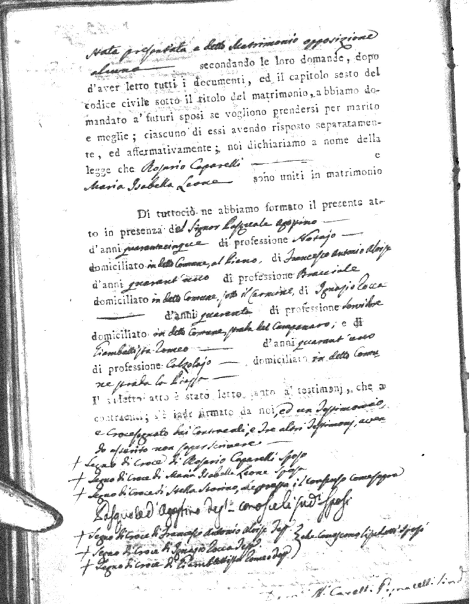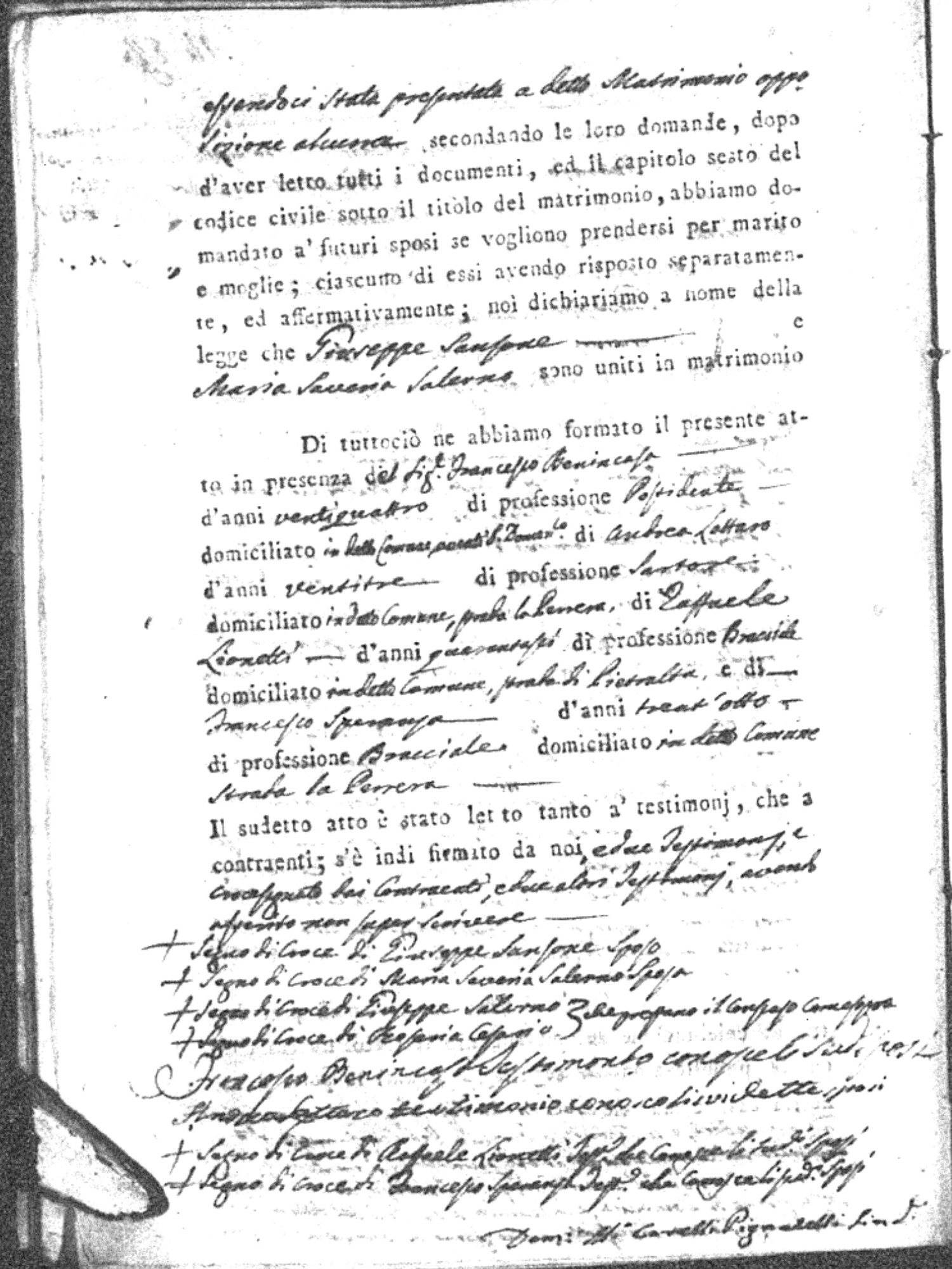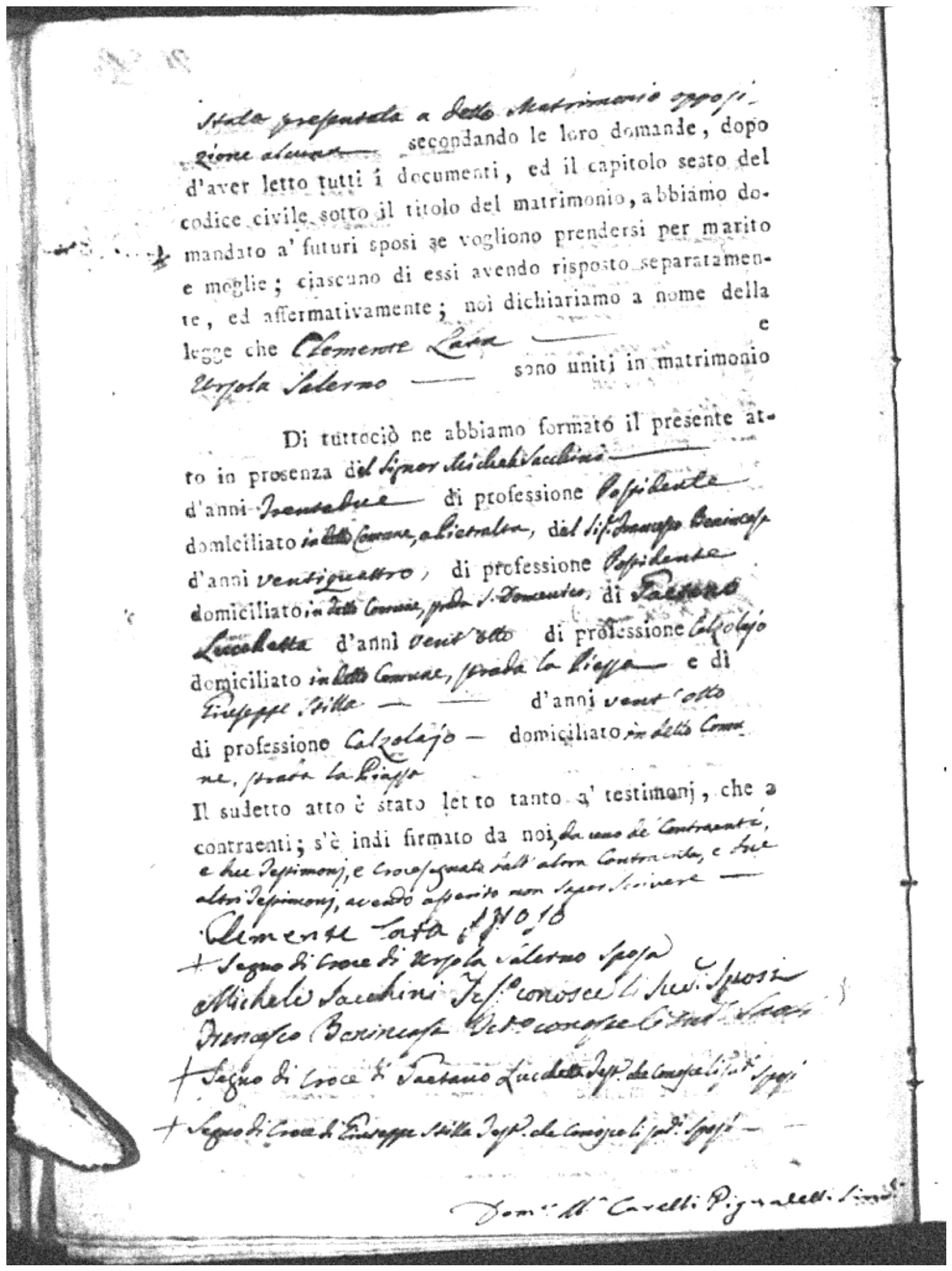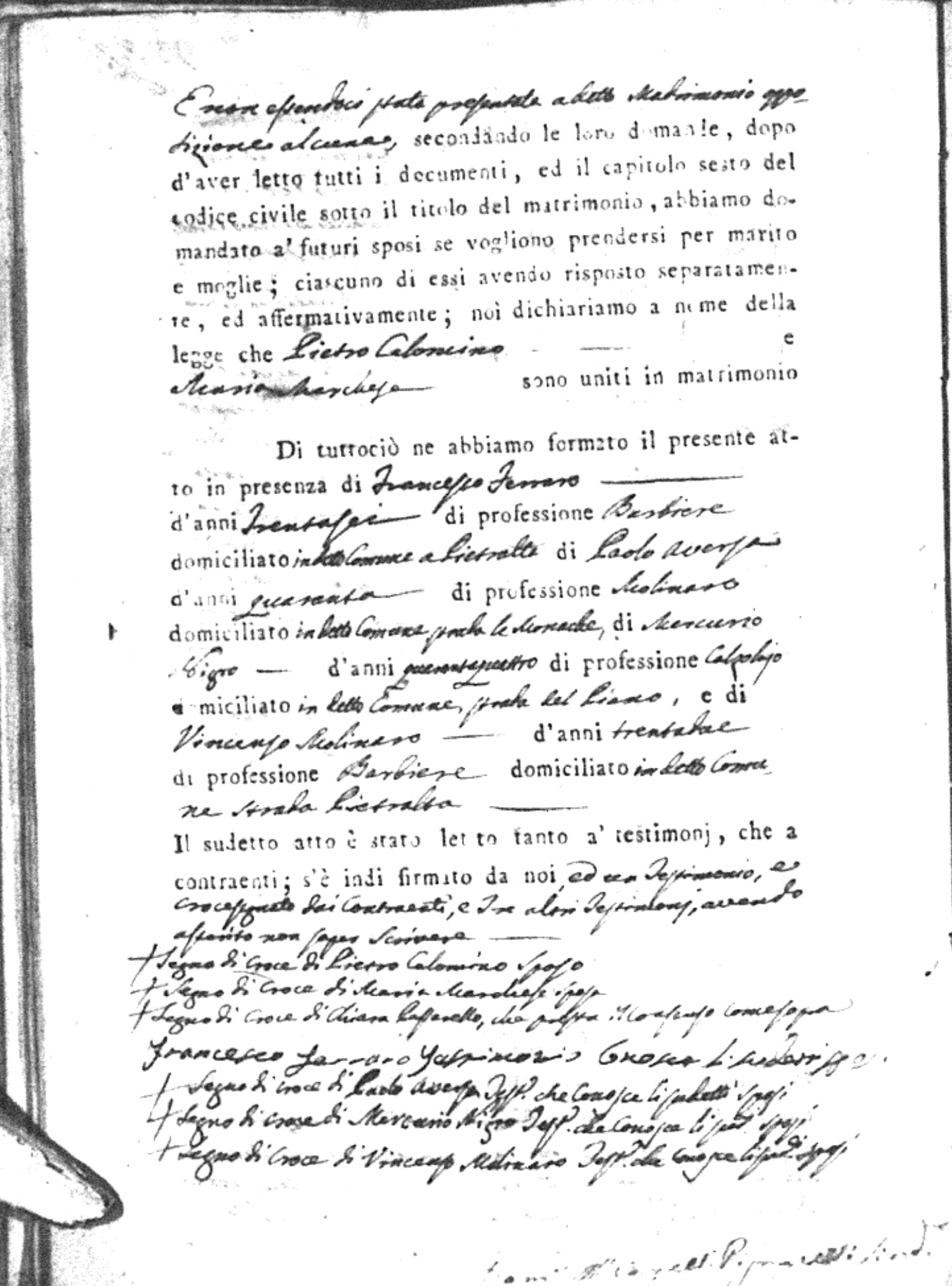 | Sannuto | Domenico | Serofino (fu) | Caparello | Maria (fu) | Barone | Angela Rosaria | Vincenzo (fu) | Mosciaro | Agata (fu) |