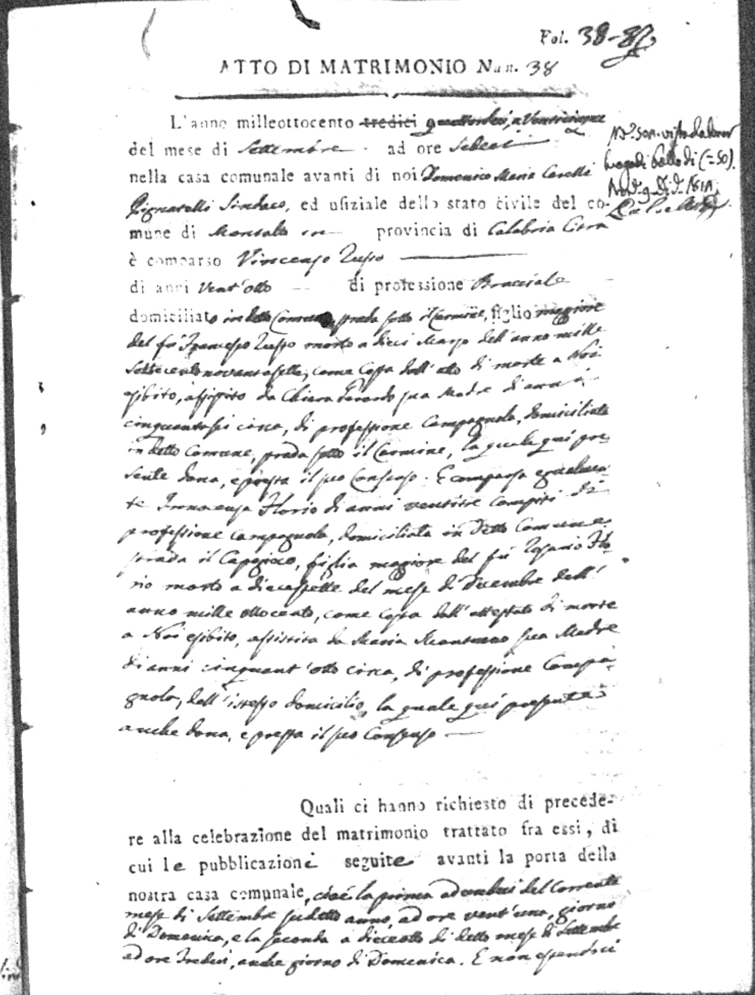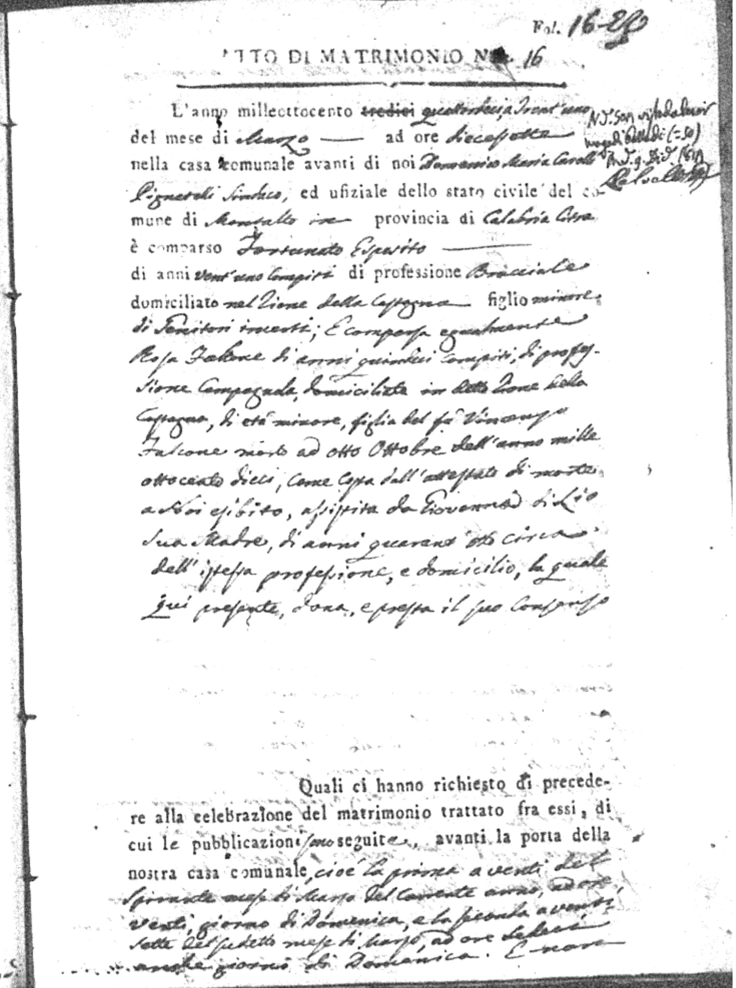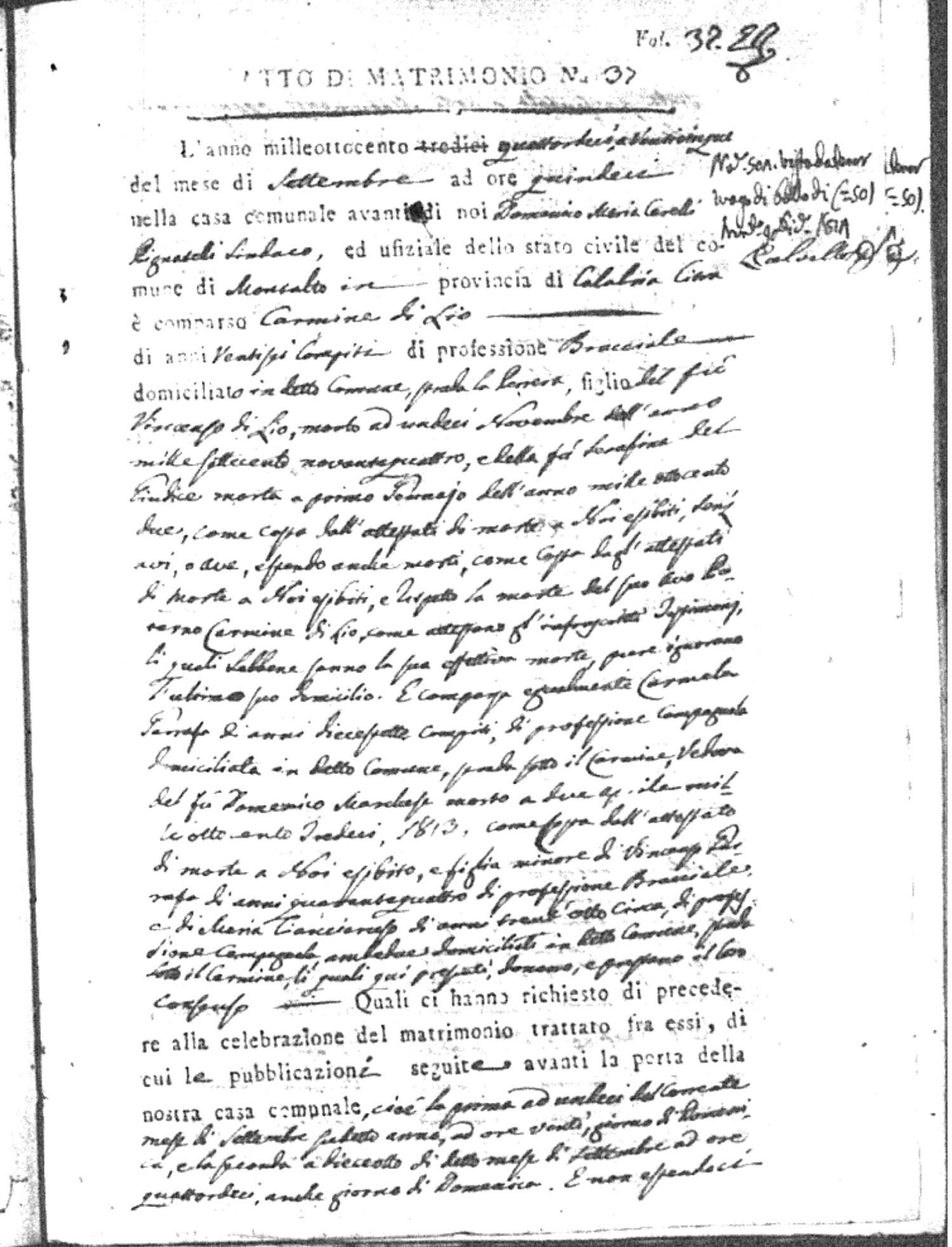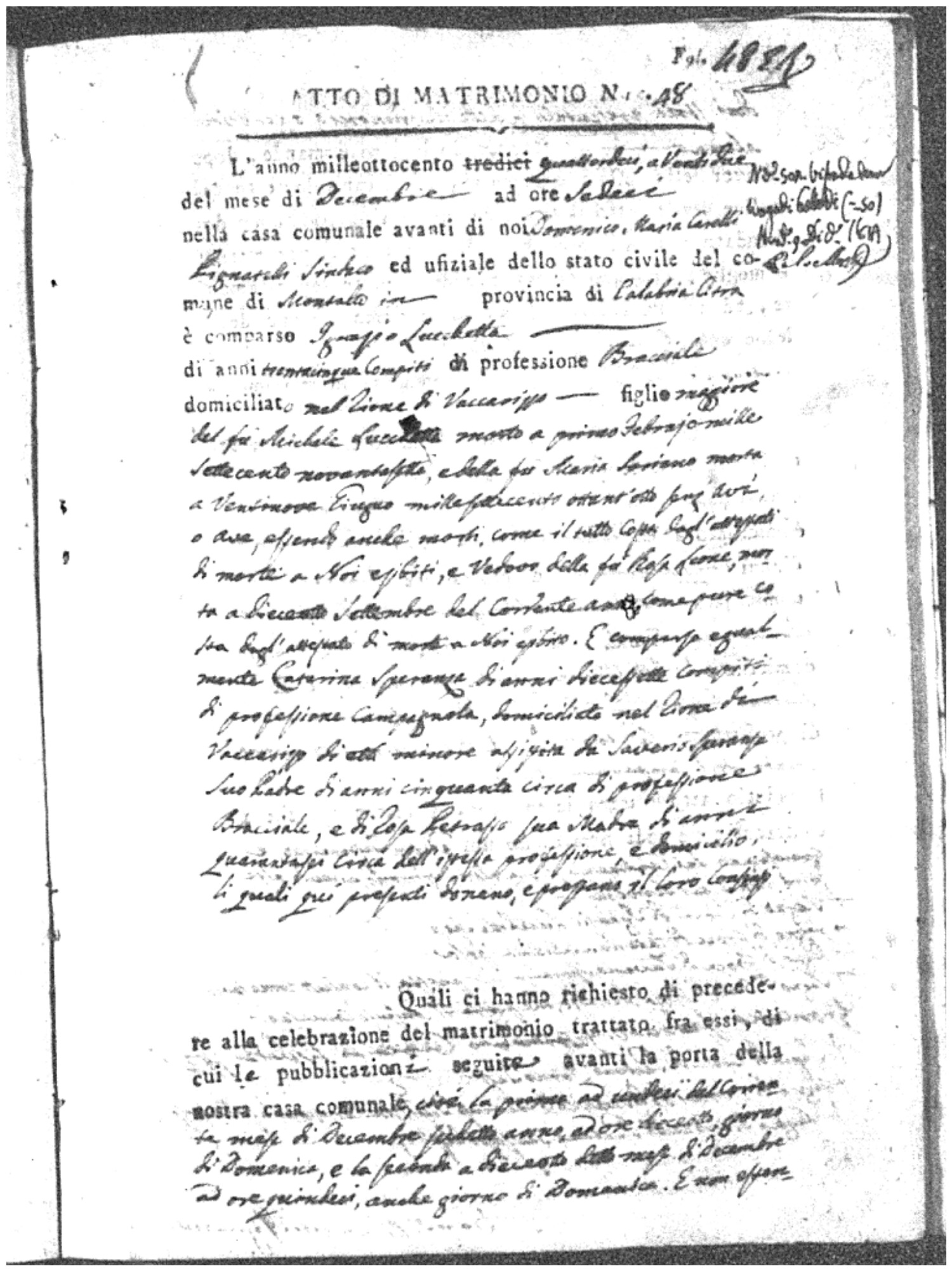 Here are the extractions for all the marriage acts in 1814 for Montalto Uffugo. This year is complete. For more information, click on the groom's surname to view a copy of the original document.