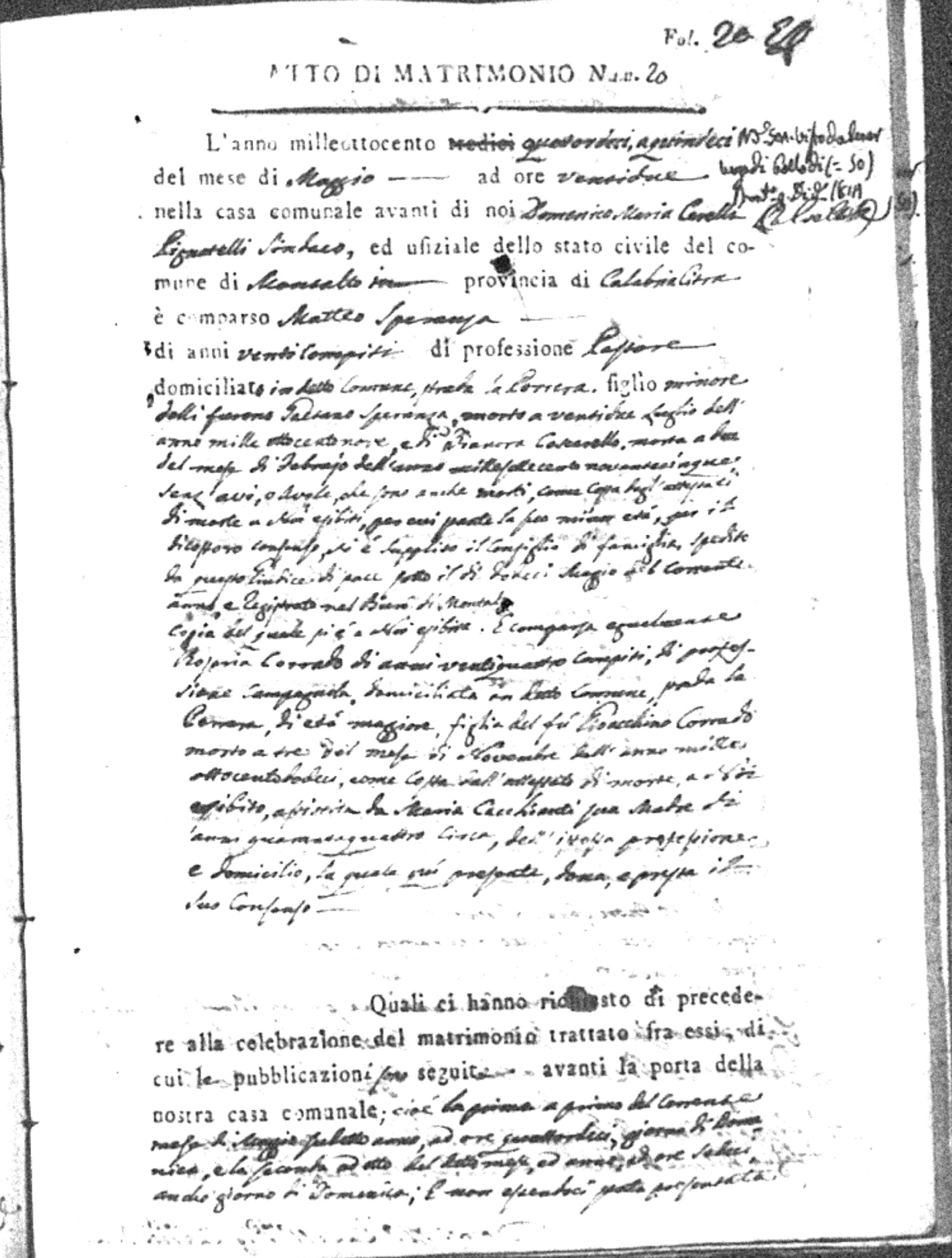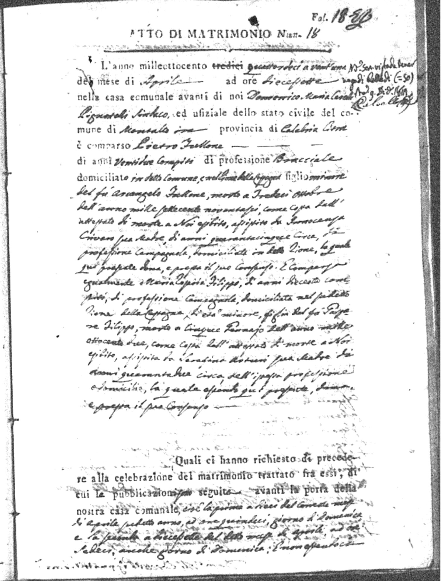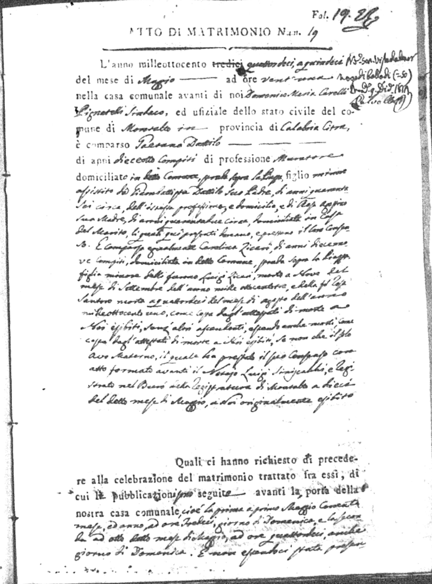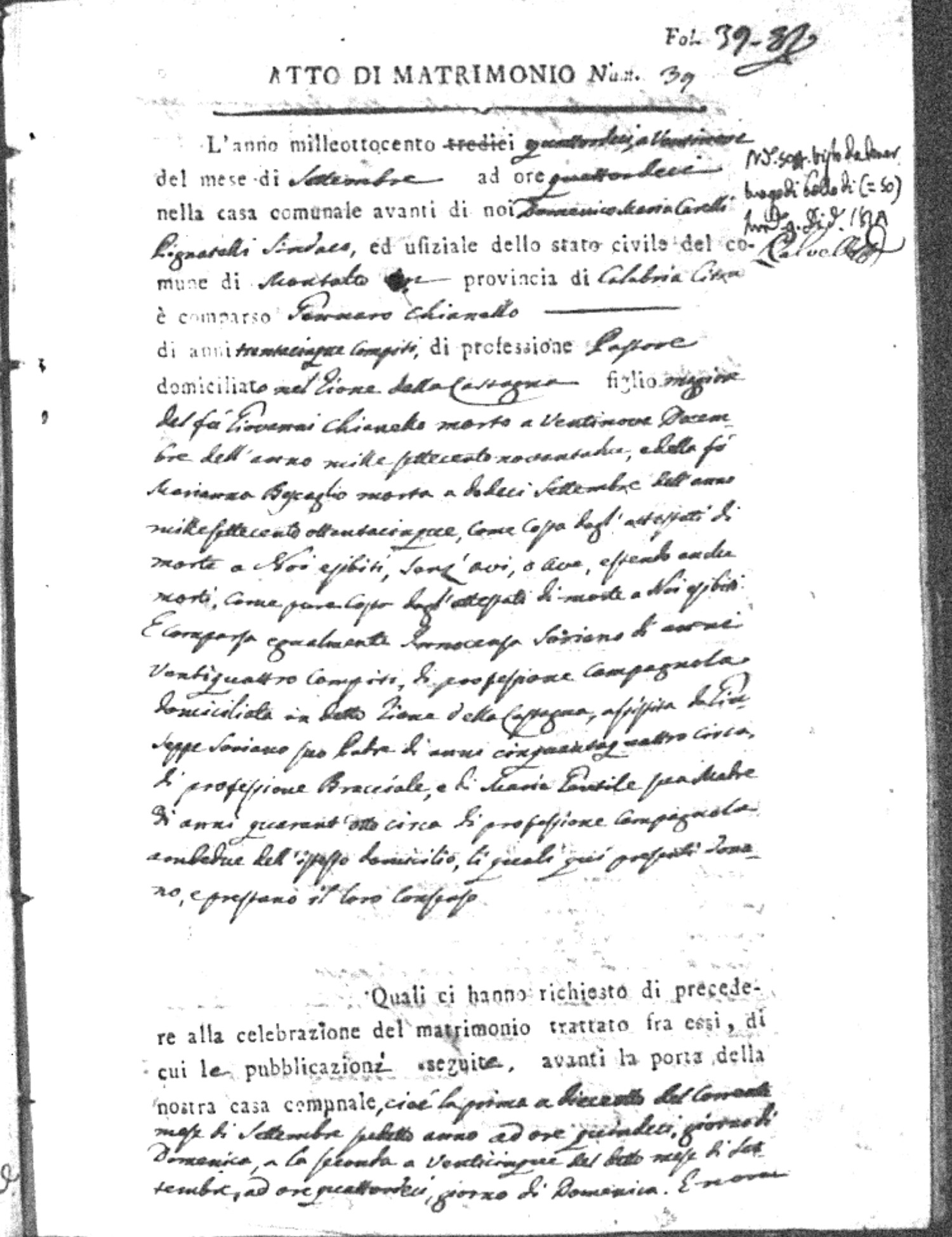 Here are the extractions for all the marriage acts in 1814 for Montalto Uffugo. This year is complete. For more information, click on the groom's surname to view a copy of the original document.