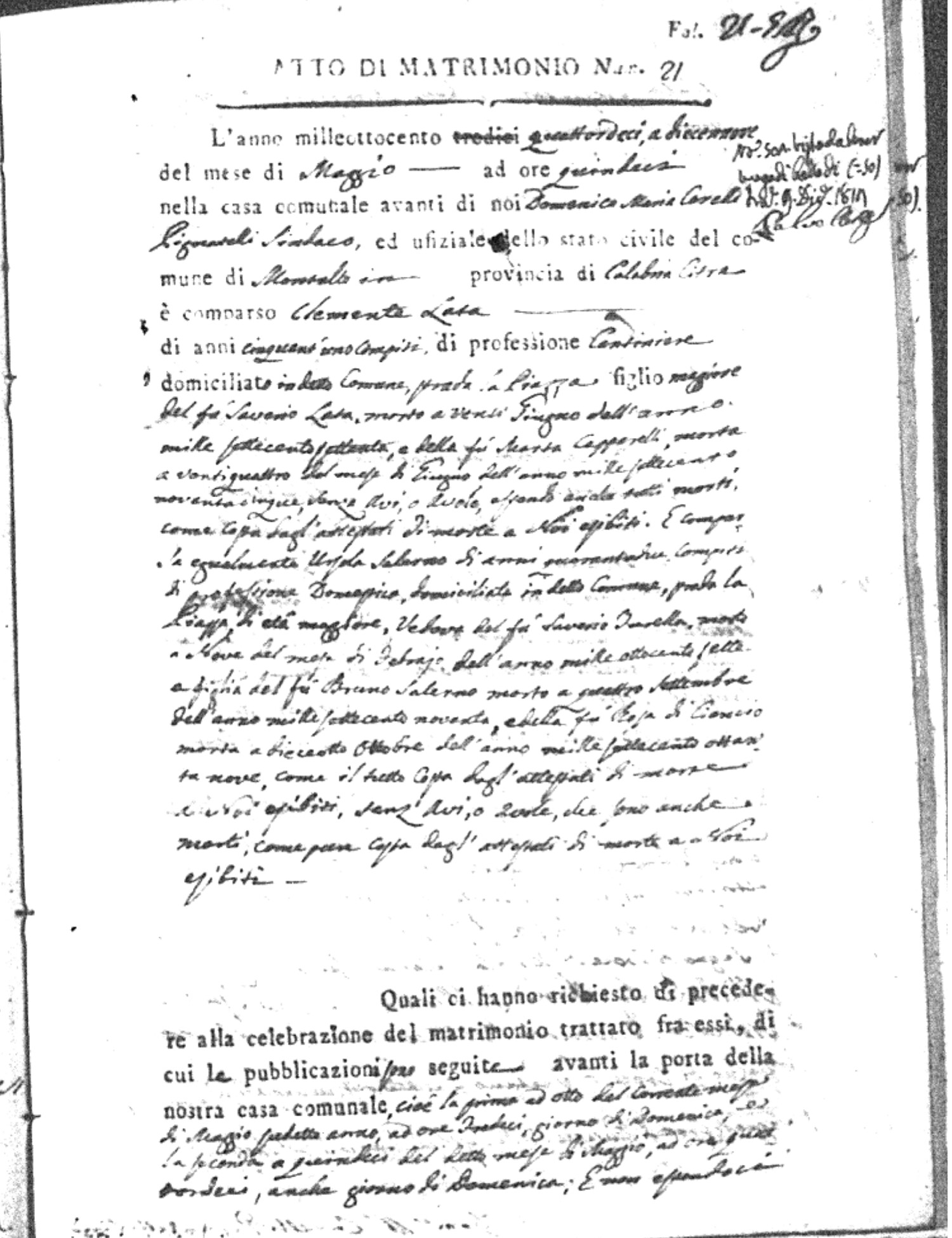 | Lato | Clemente | Saverio (fu) | Caparelli | maria (fu) | Salerno | Orsola | Bruno (fu) | DiCiancio | Rosa (fu) |