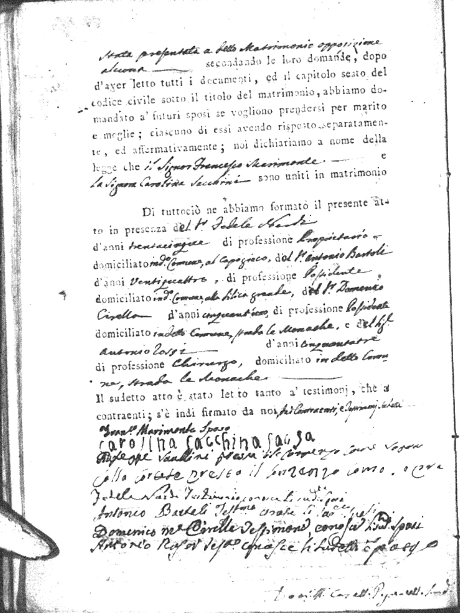 | Marimonte | Francesco Maria | Pasquale (fu) | Correse | Laura | Sacchini | Carolina | Giuseppe | diPaola | Teadora (fu) |
