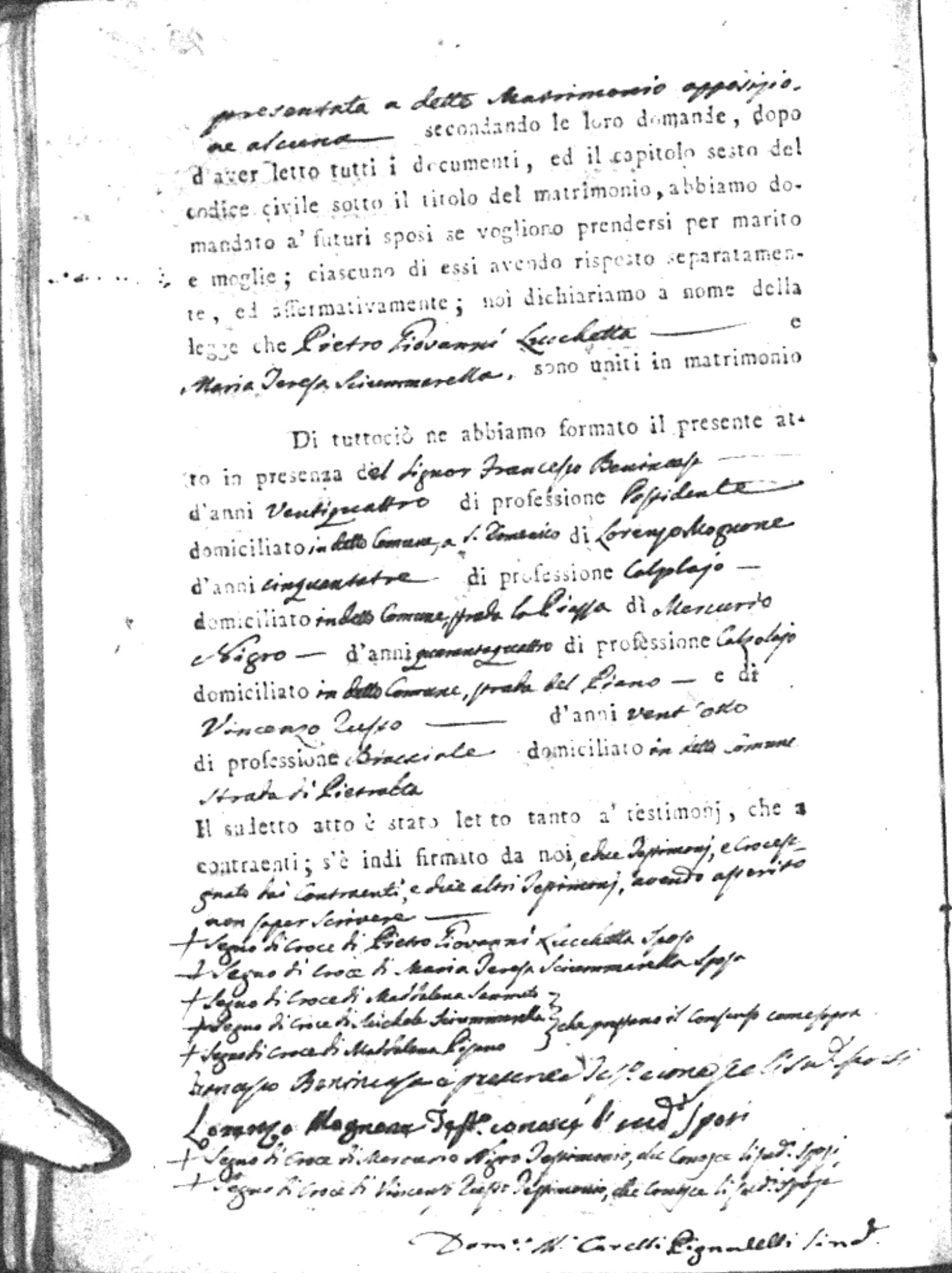 | Lucchetta | Pietro Giovanni | Vincenzo (fu) | Sannuto | Maddalena | Sciommarello | Maria Teresa | Michele | Pisano | Maddalena |