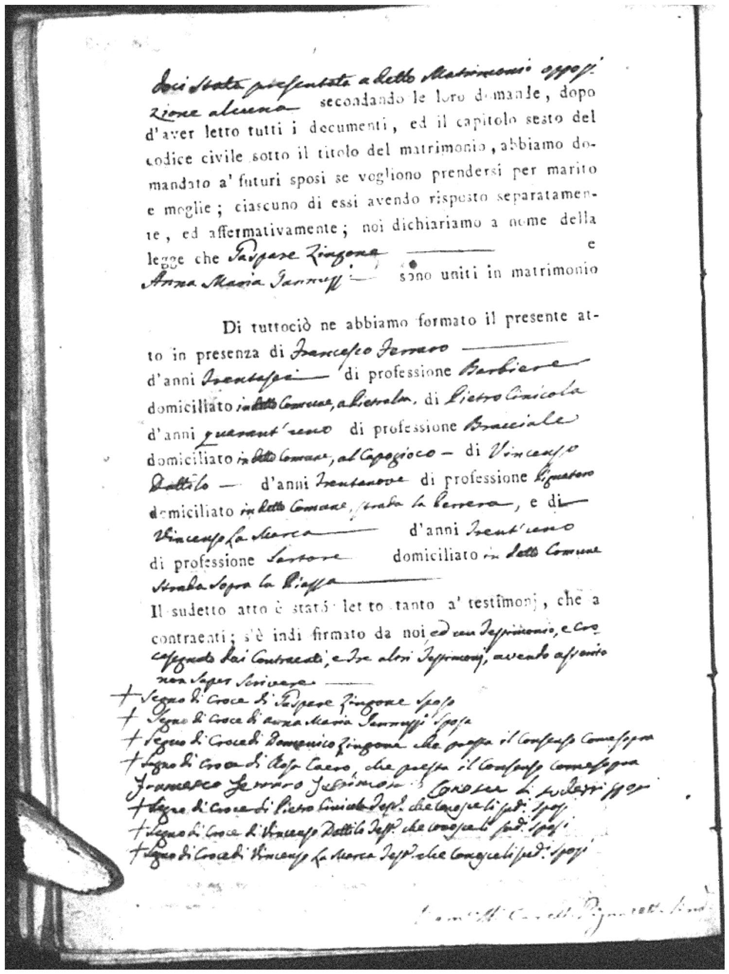 | Crivaro | Francesco | Giuseppe (fu) | Zingone | Rosaria | Sansosti | Teresa | Vincenzo (fu) | Paglilla | Serafina |