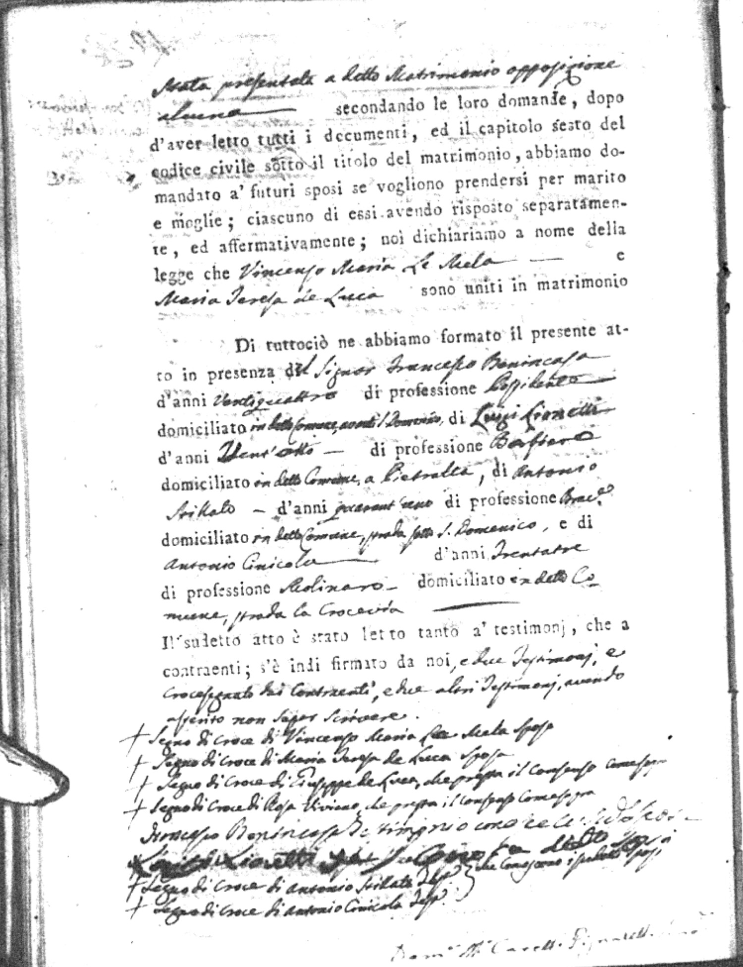 | Speranza | Matteo | Gaetano (fu) | Coscarello | Dianora (fu) | Corrado | Rosaria | Giocchino (fu) | Cacchianti | Maria |