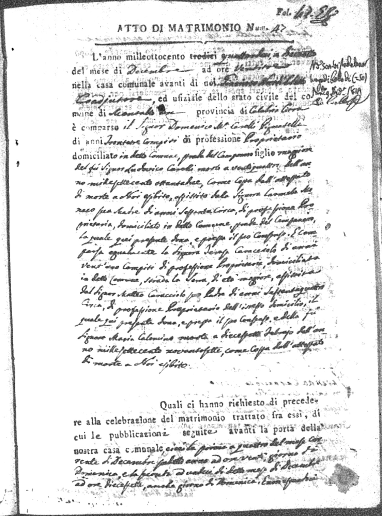 | Covelli Pignatelli | Domenico Maria | Ludevico (fu) | Monaco | Cermela | Caracciolo | Teresa | Matteo | Calomino | Maria (fu) |