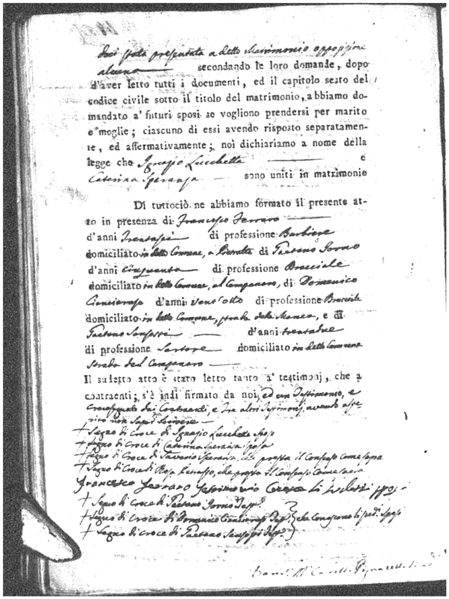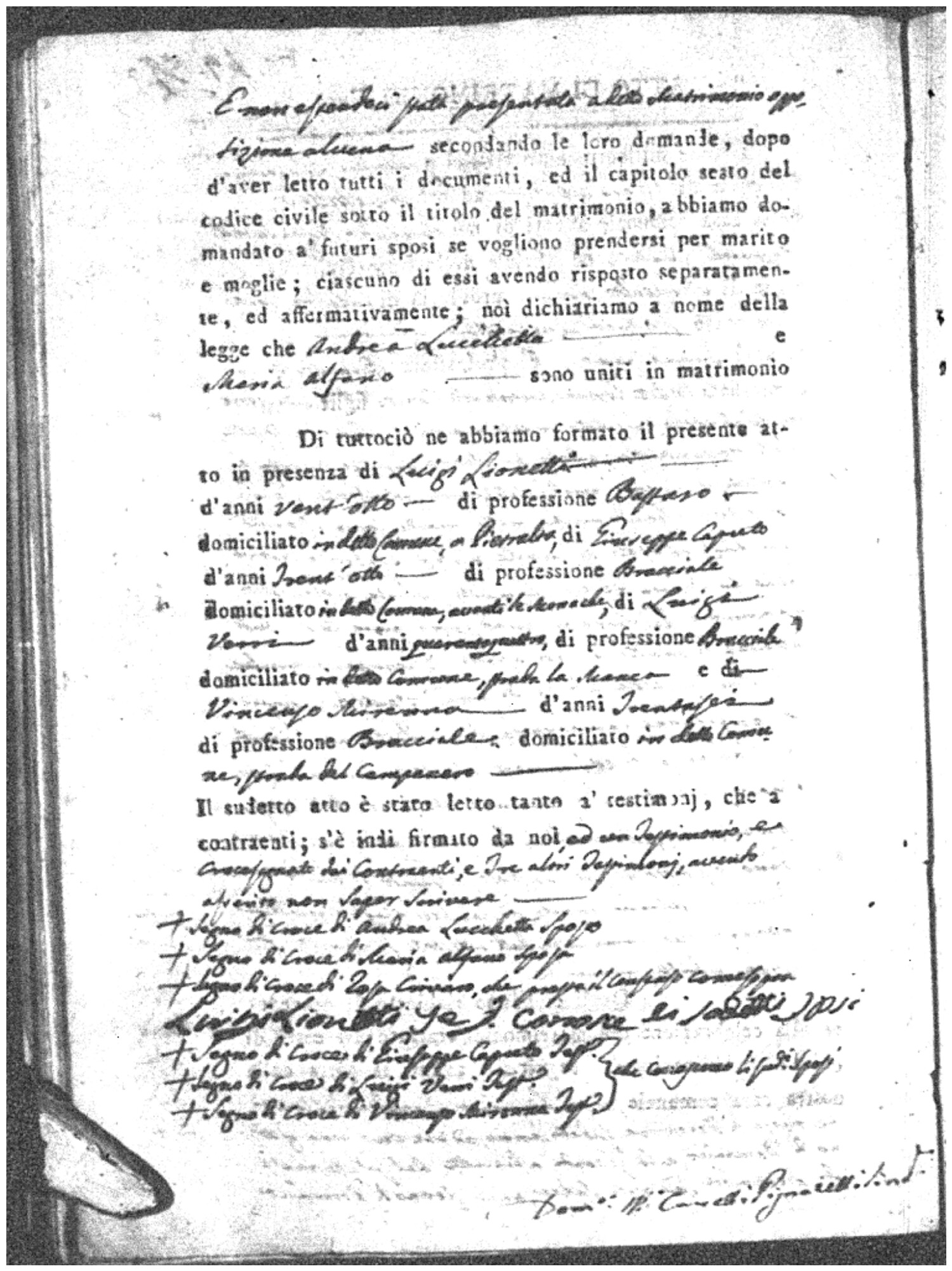 | Lucchetta | Andrea | Michele (fu) | Soriano | Maria (fu) | Alfano | Maria Stella | Francesco (fu) | Crivaro | Rosa |