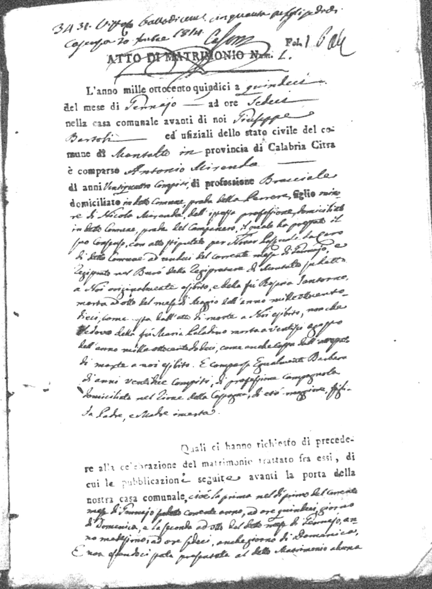 | Mirabelli | Francesco | Antonio (fu) | LaTorre | Gaetana | Santoro | Anna Teresa | Bartolo (fu) | Maida | Innocenza |