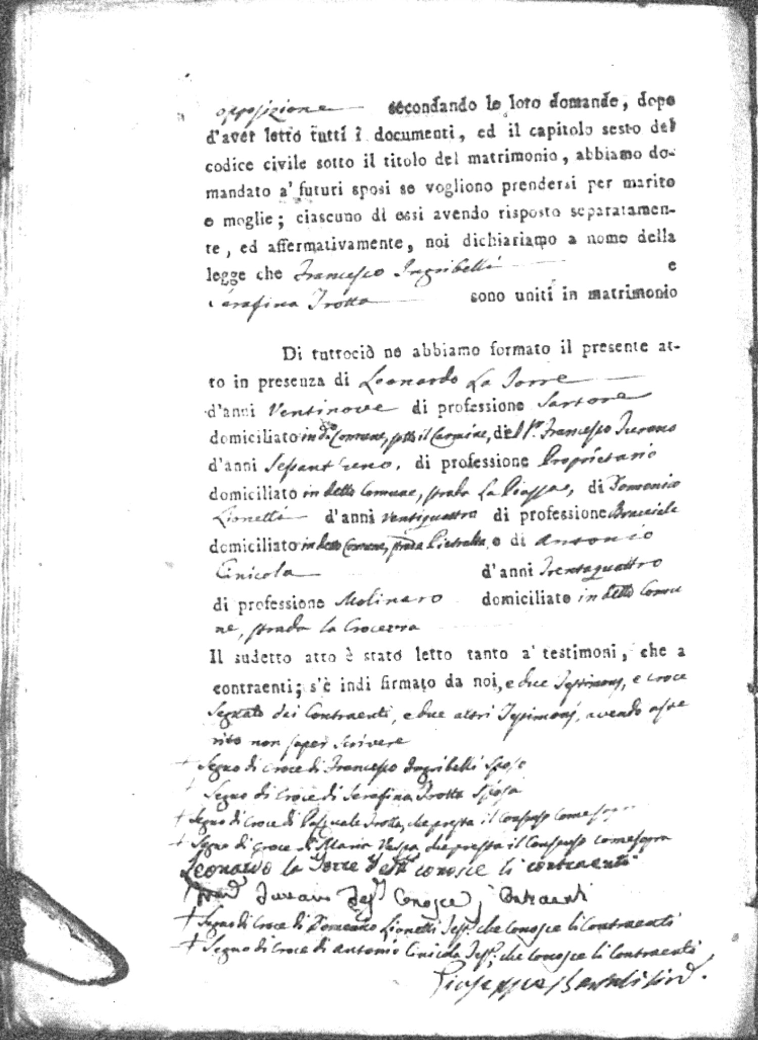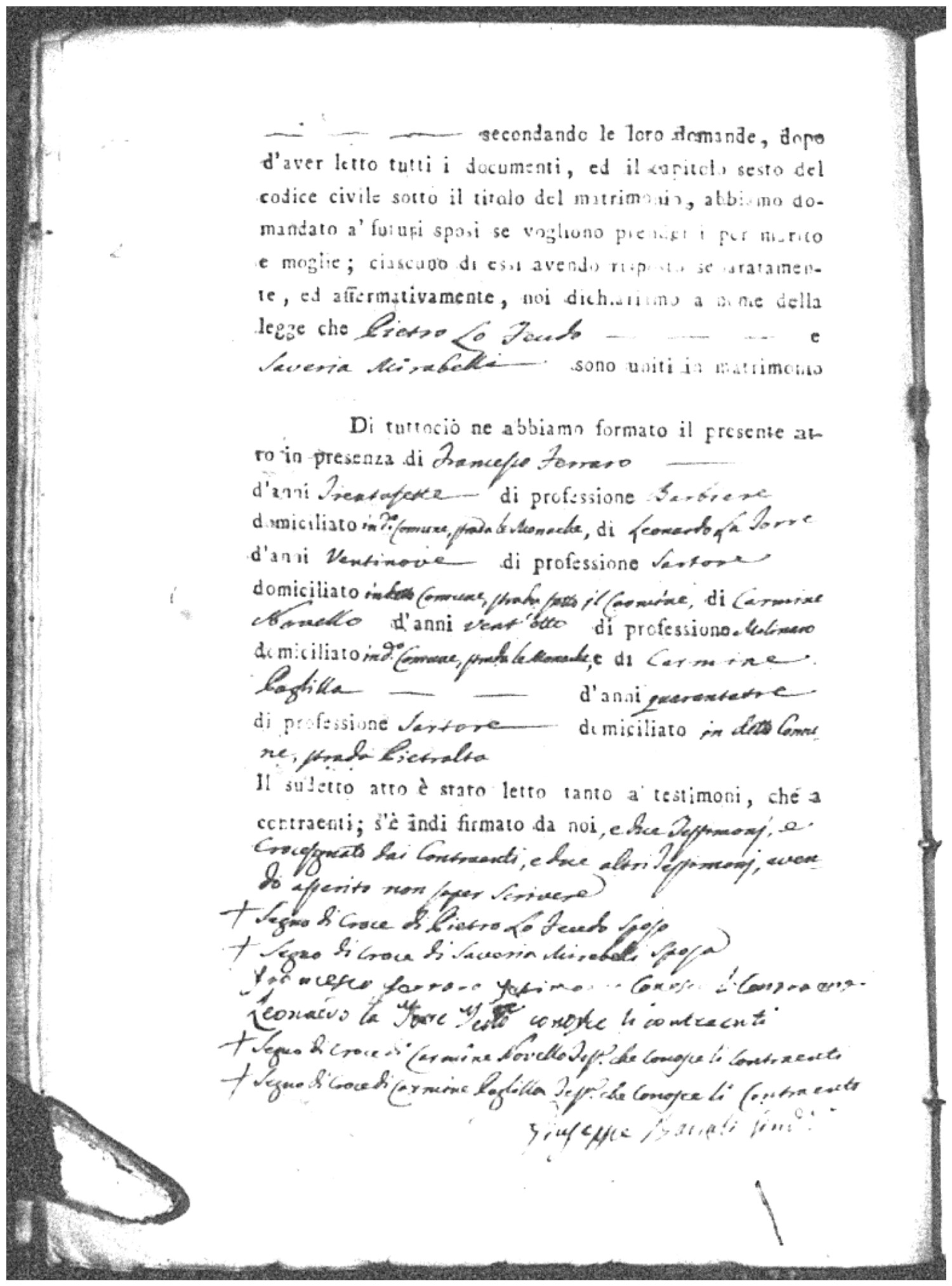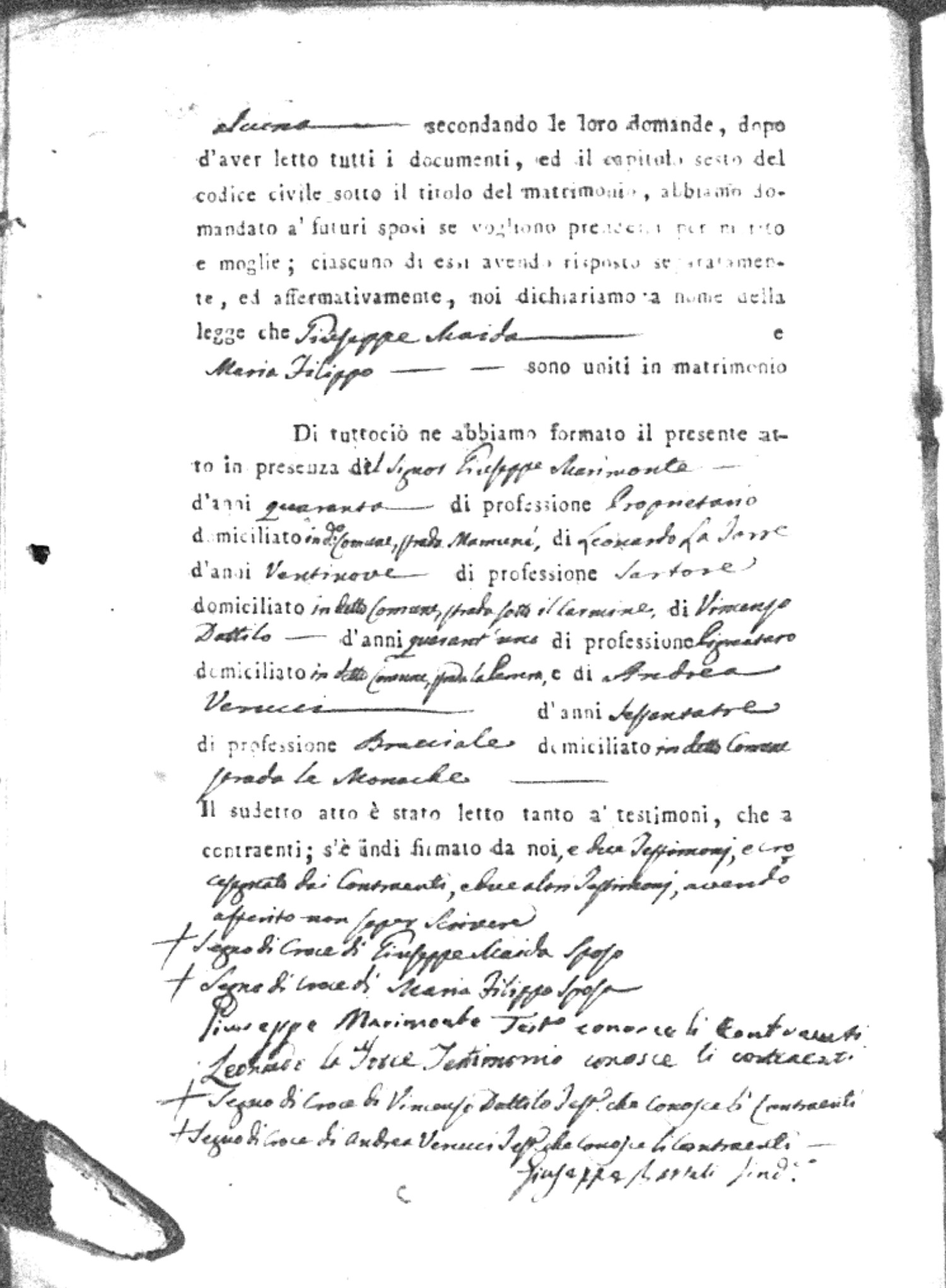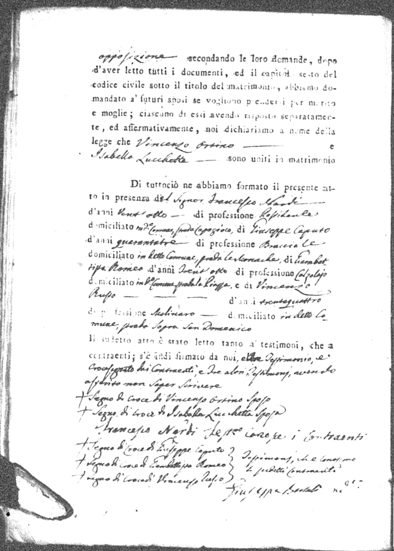 | Esposito | Ignazio | unknown | unknown | unknown | Marchese | Angela Maria | Gennaro (fu) | Passarello | Rosaria |